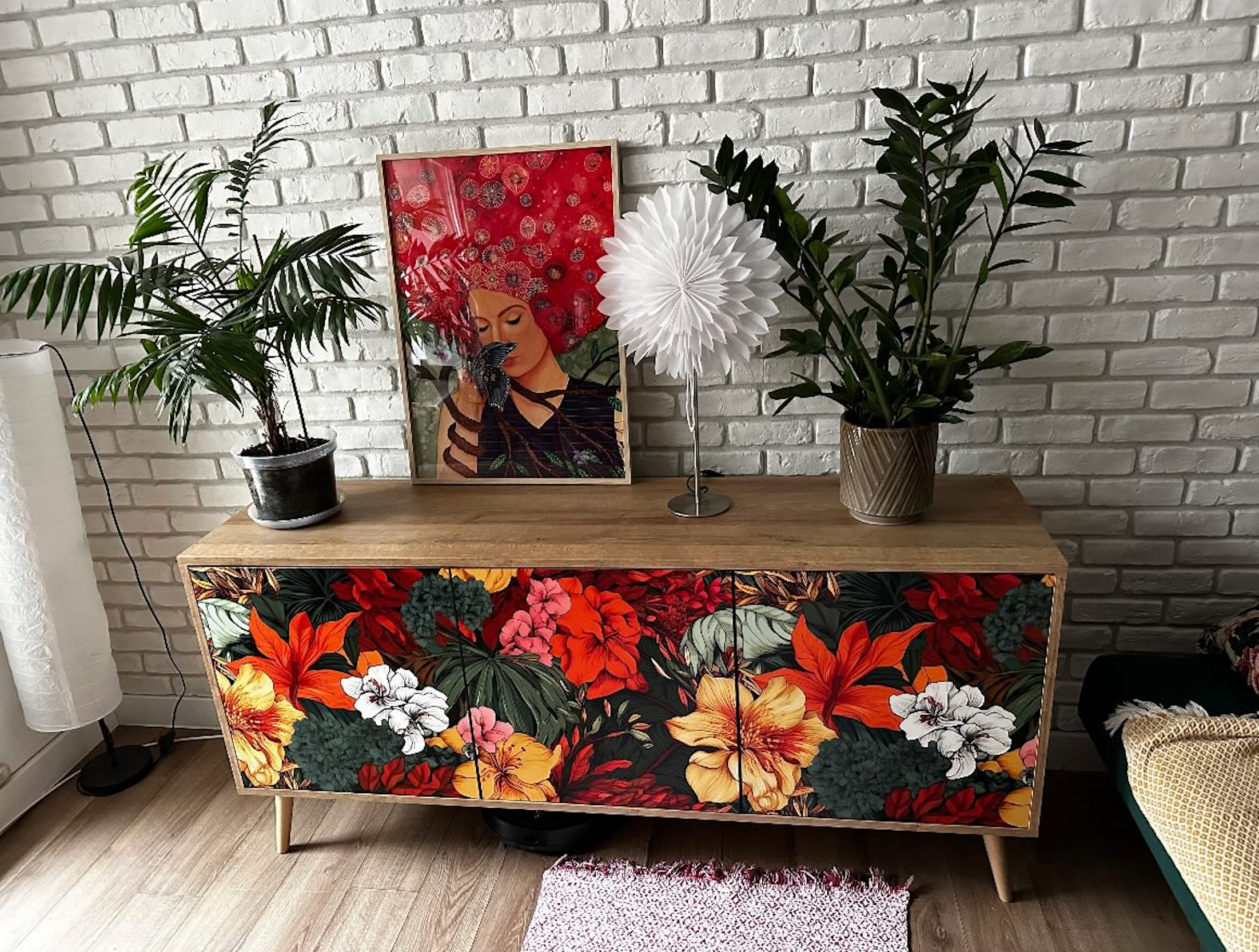 Cómoda preciosa,original,parece un cuadro.Como tengo la de amapola,la recomiendo.mano de obra esmerada,se abre cómodamente.Empresa muy confiable,durante el transporte el mensajero perdió un paquete,sin ningún problema ni costes adicionales recibí los artículos faltantes.Gracias.