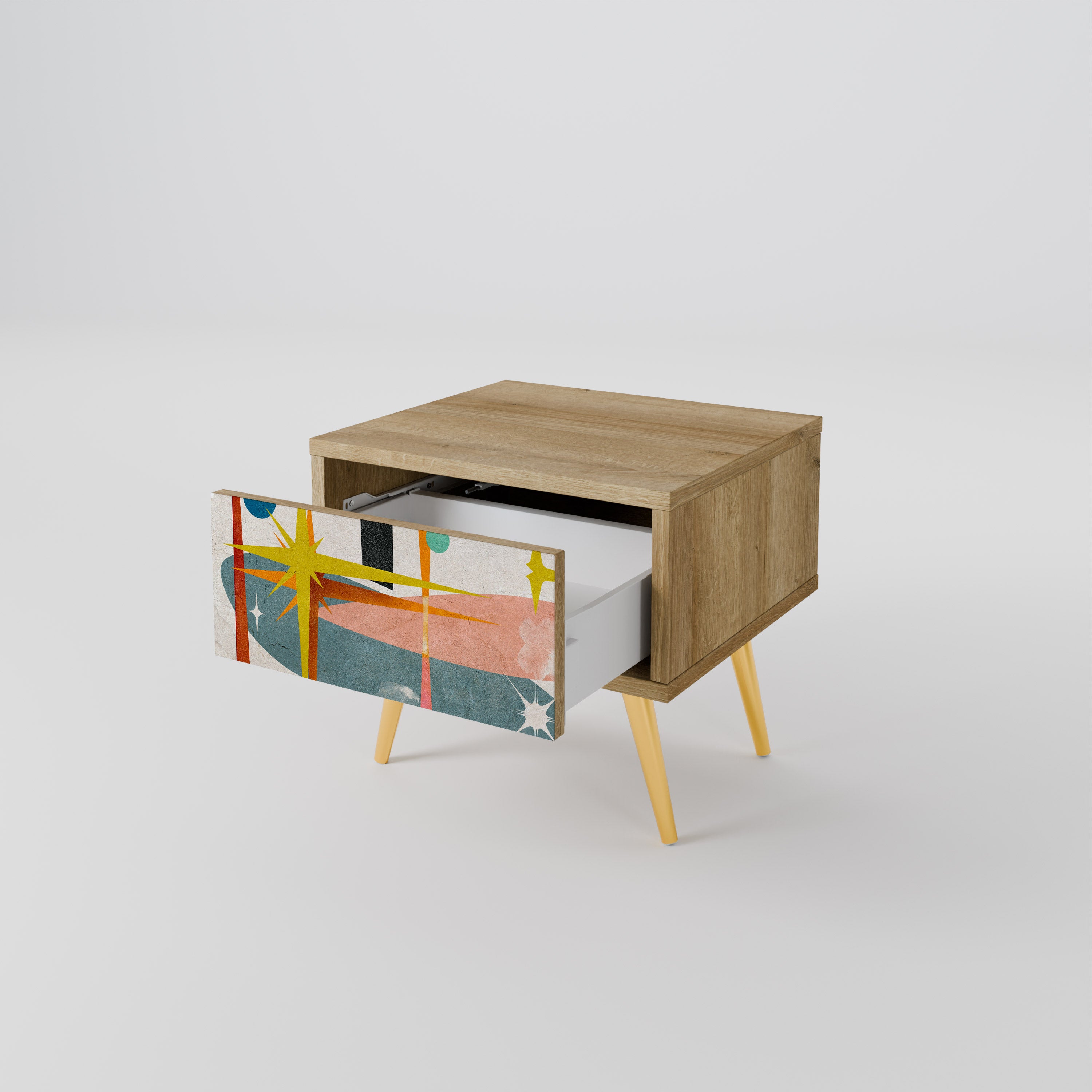 Mesita de noche INTERSTELLAR VIBES en efecto roble Mesita de noche INTERSTELLAR VIBES en efecto roble