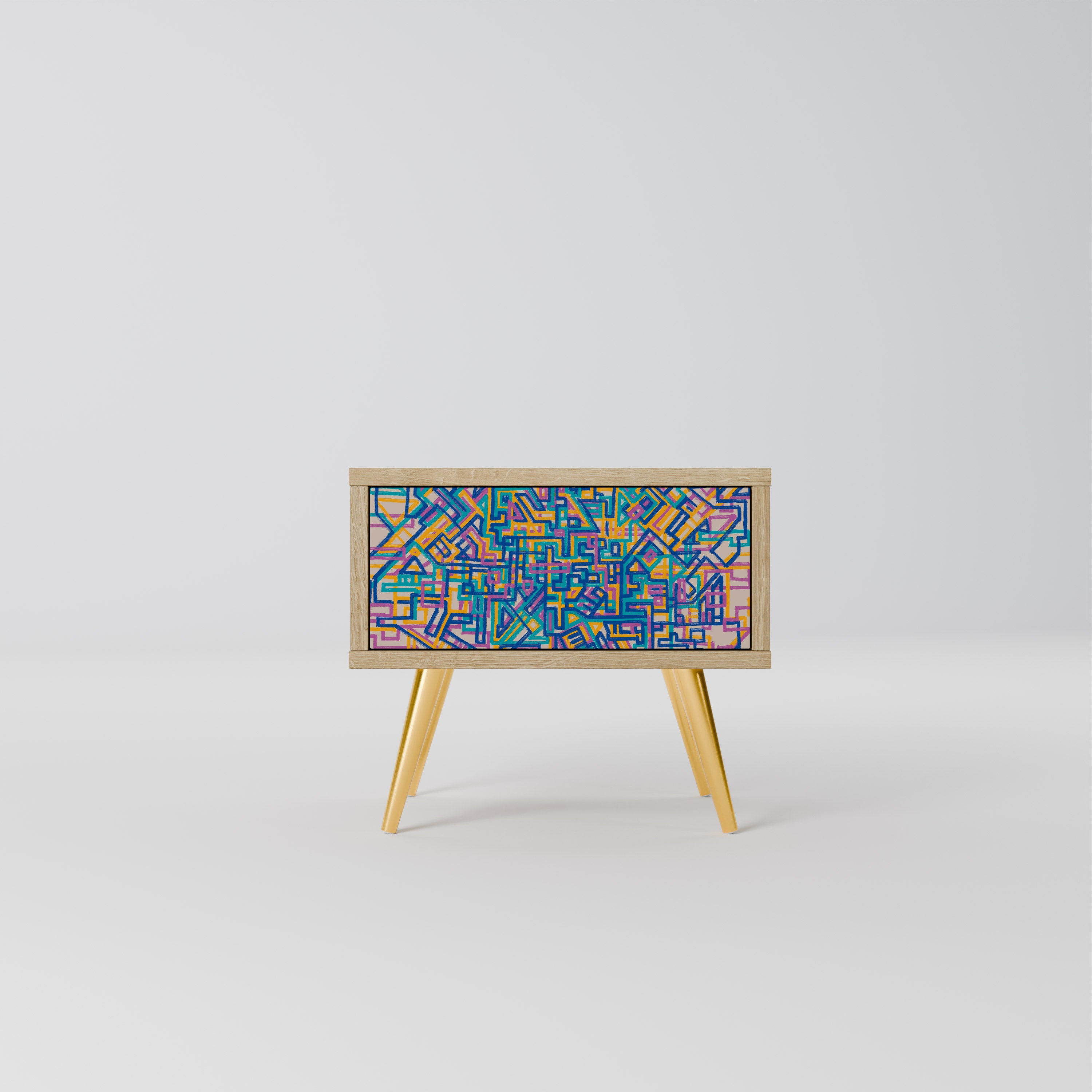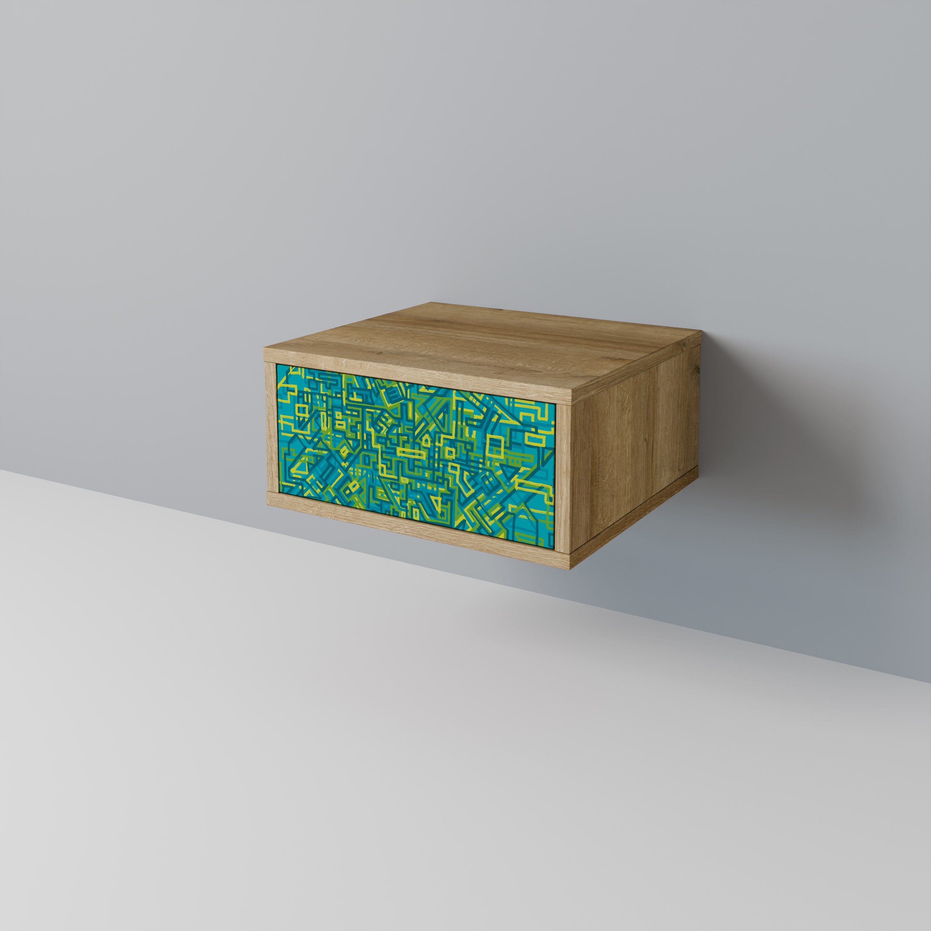 Mesita de noche RECTÁNGULOS TURQUESA Efecto Roble Mesita de noche RECTÁNGULOS TURQUESA Efecto Roble