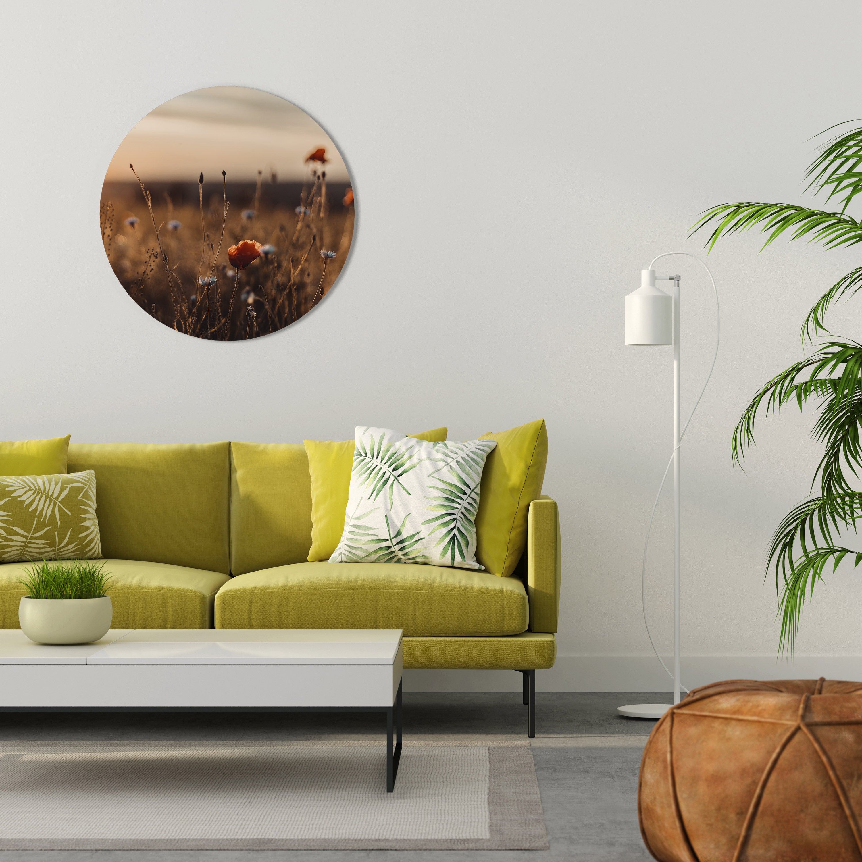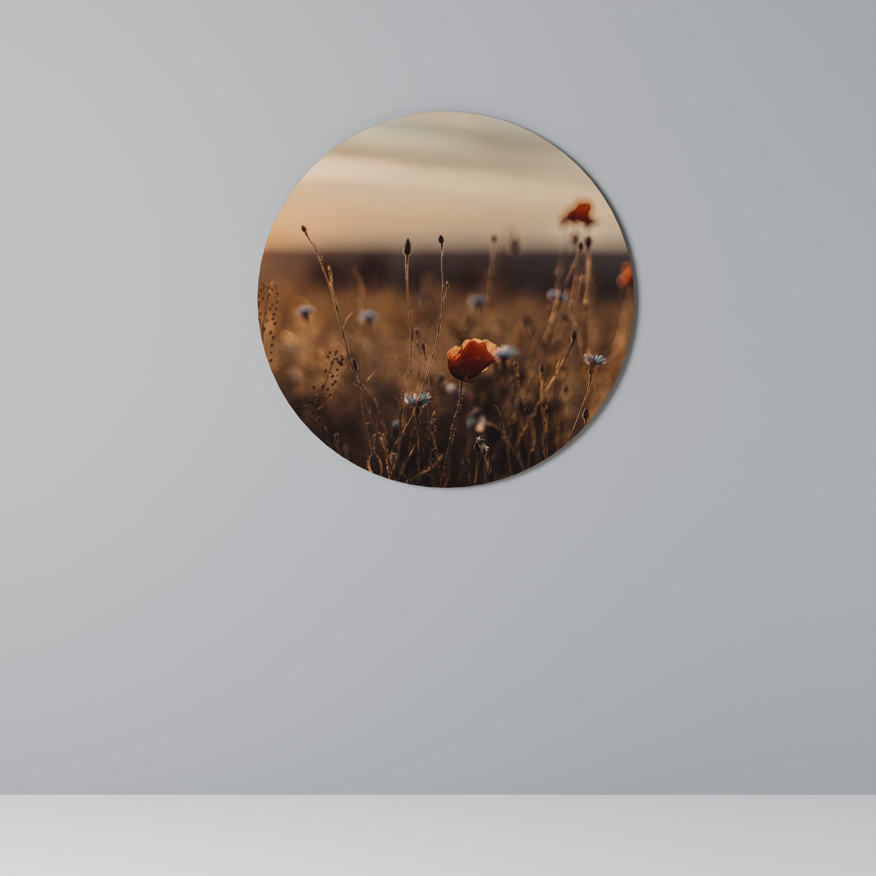 PRADOS BRILLANTES AL ANOCHECER Arte de pared redondo PRADOS BRILLANTES AL ANOCHECER Arte de pared redondo