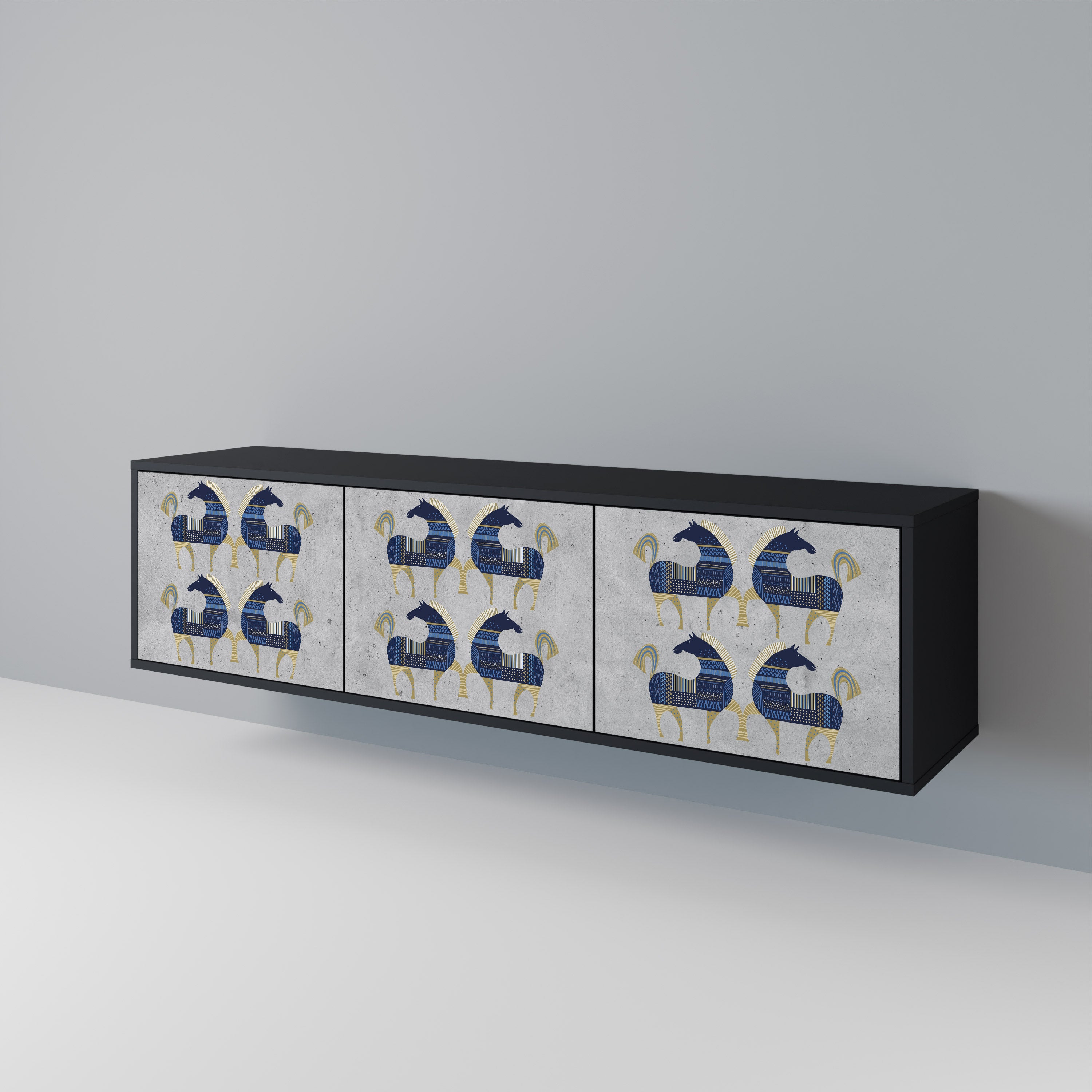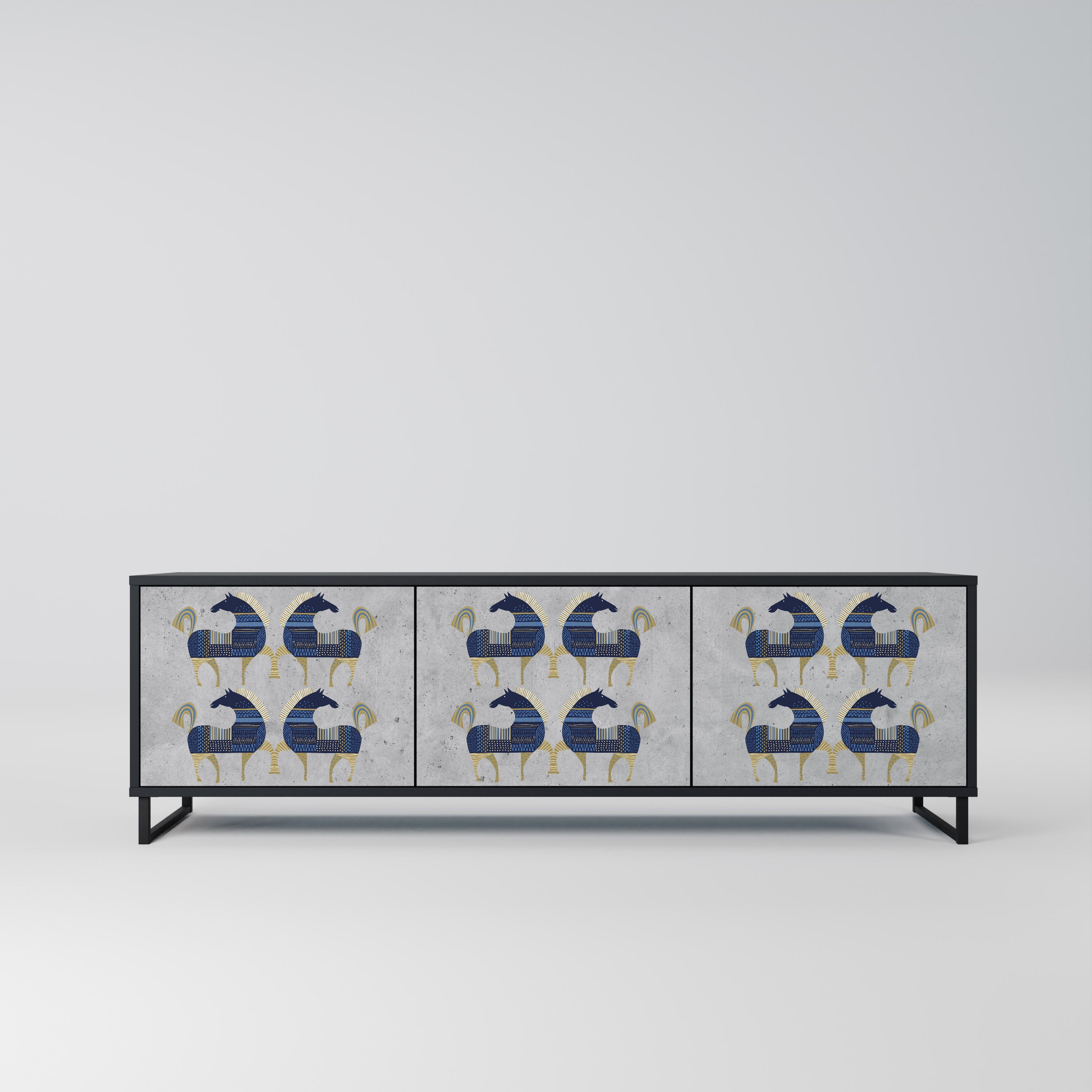Mueble de TV MAJESTIC STEED de 3 puertas con acabado negro Mueble de TV MAJESTIC STEED de 3 puertas con acabado negro