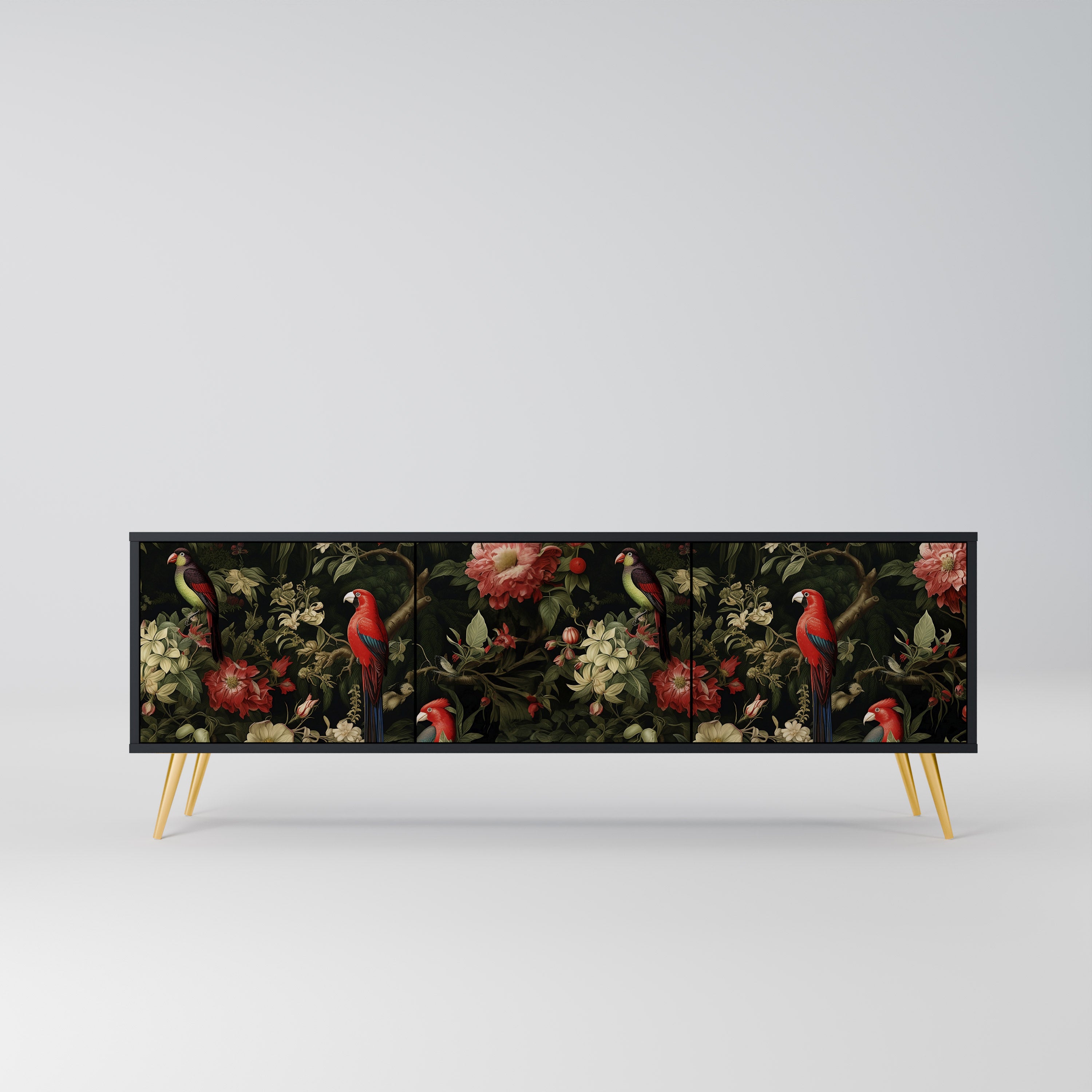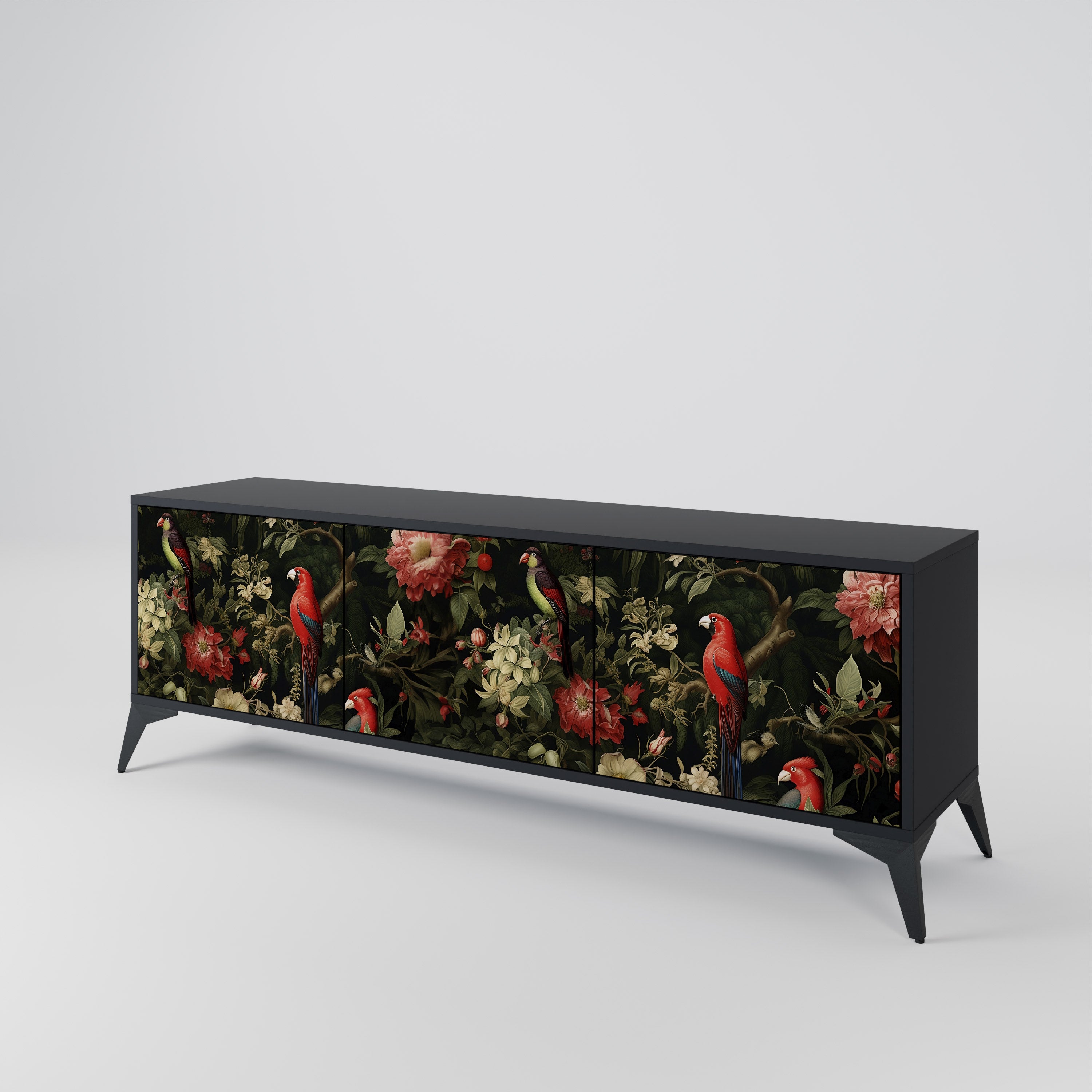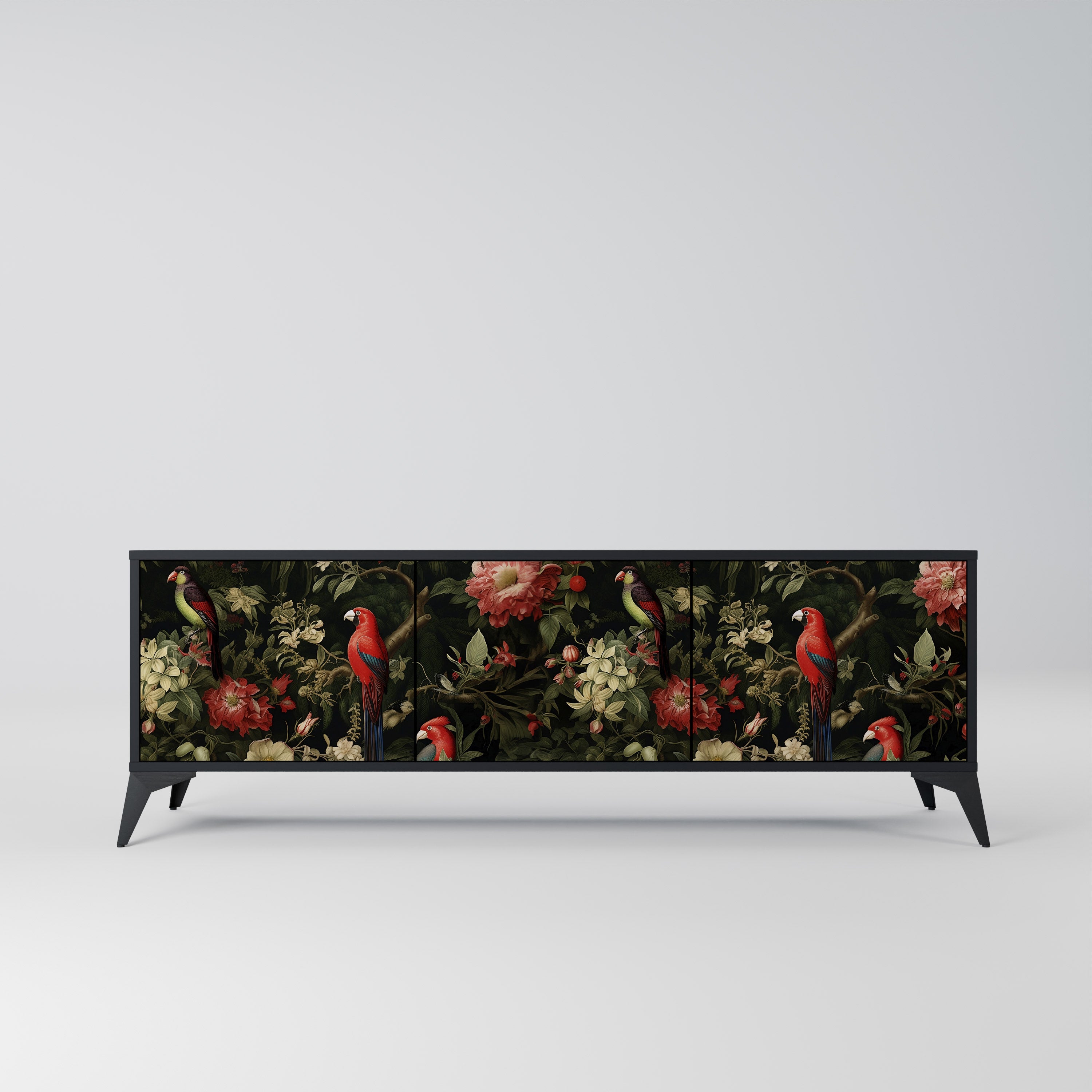 Mueble de TV de 3 puertas AVIAN GREENERY con acabado negro Mueble de TV de 3 puertas AVIAN GREENERY con acabado negro