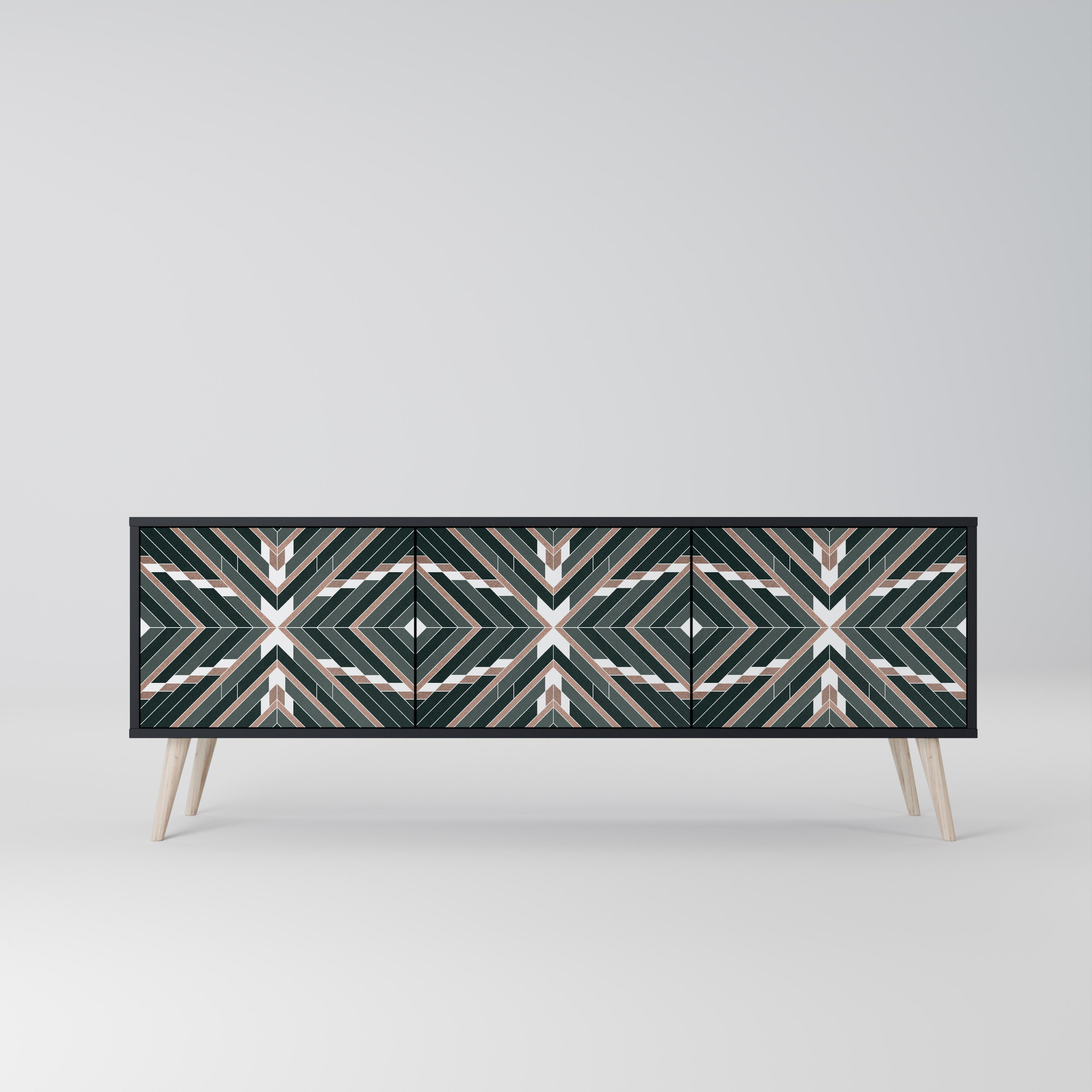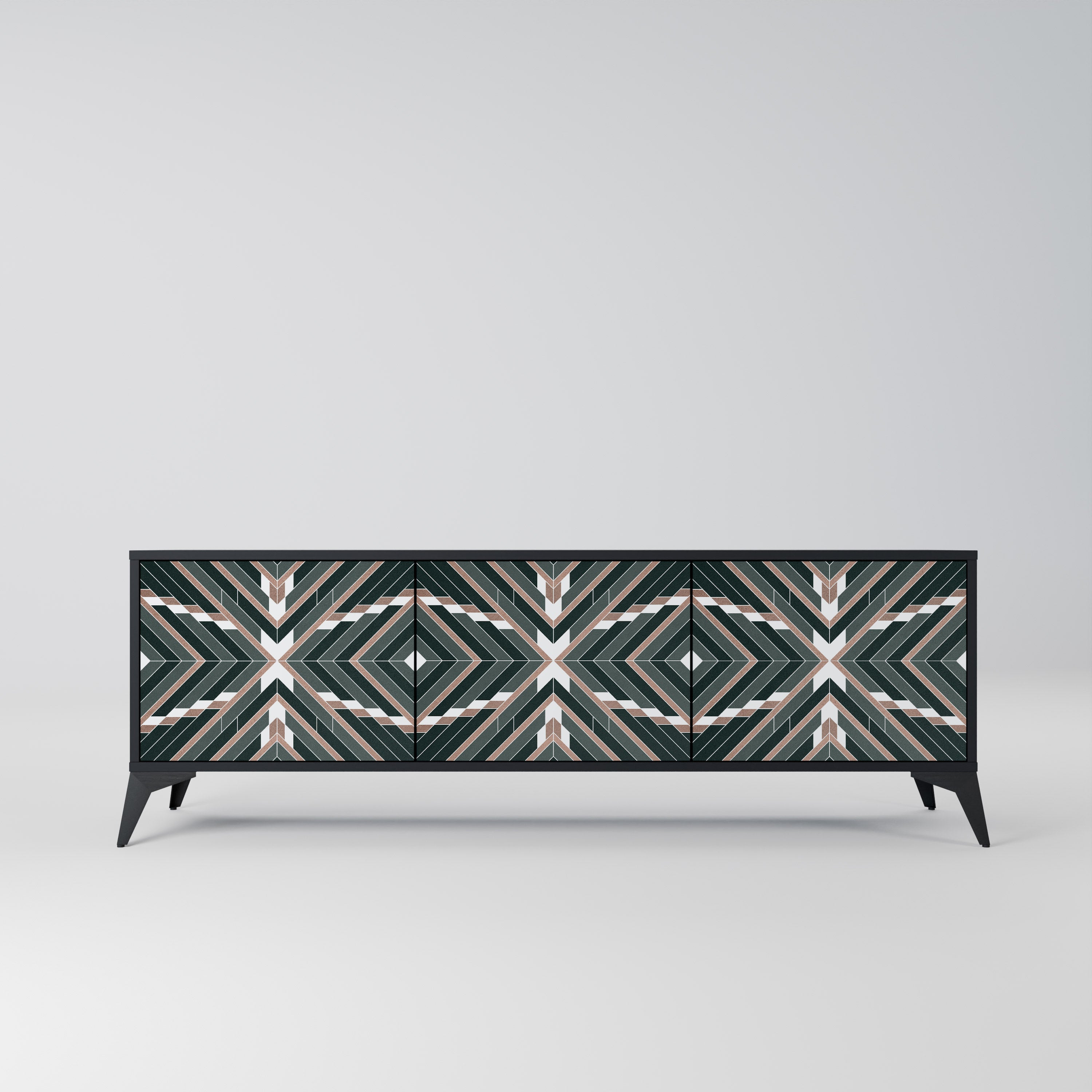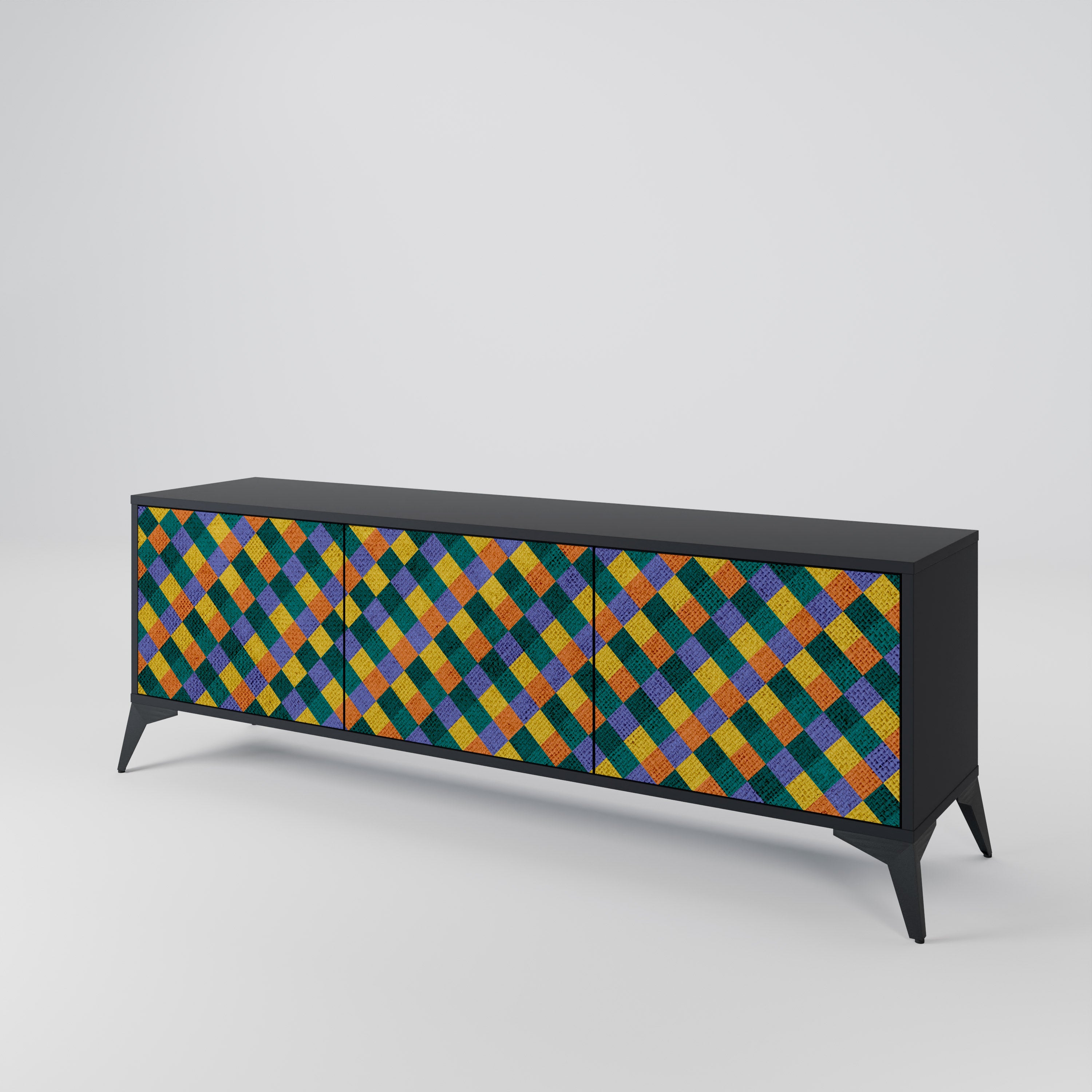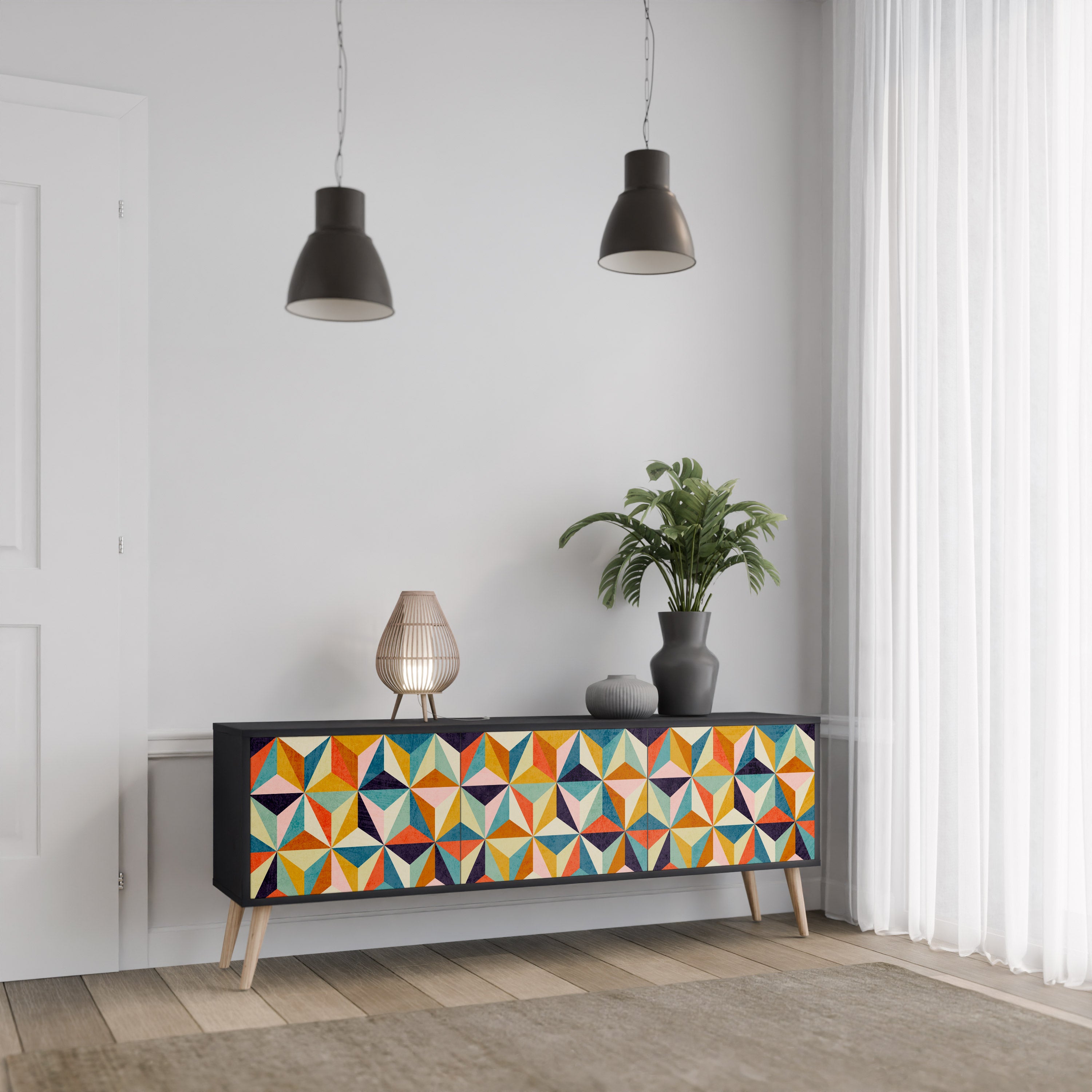 Mueble de TV de 3 puertas COLORFUL TRIANGLES en acabado negro Mueble de TV de 3 puertas COLORFUL TRIANGLES en acabado negro