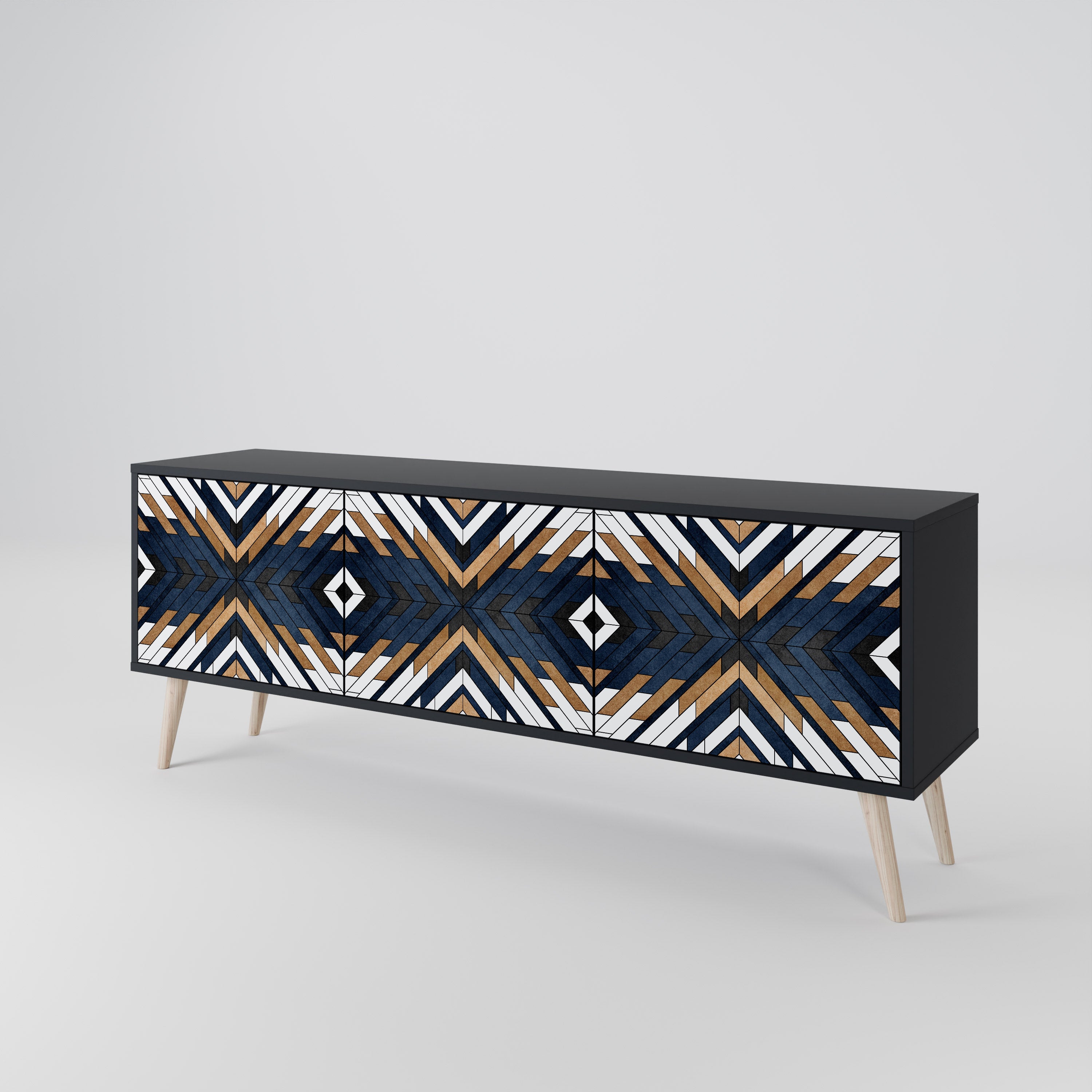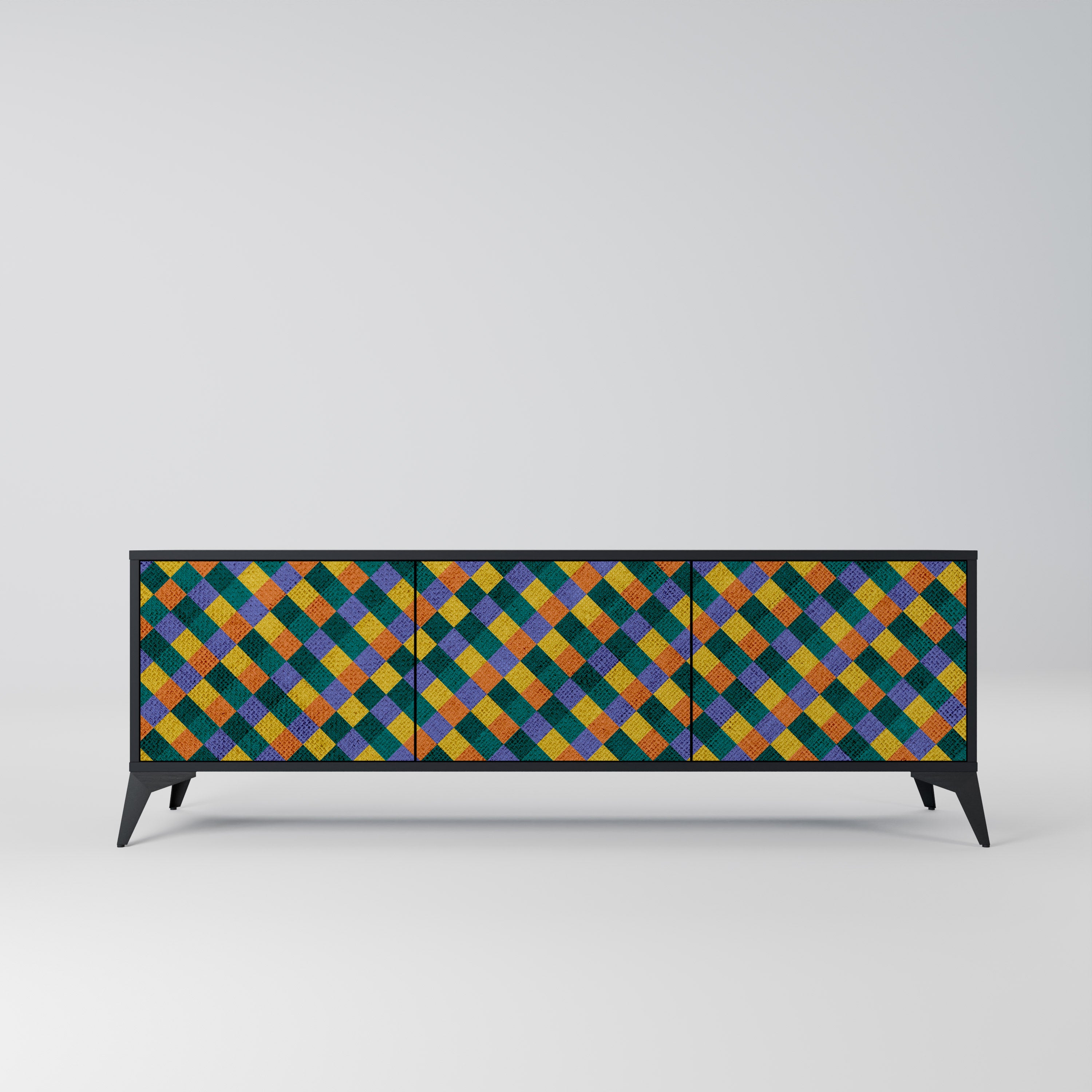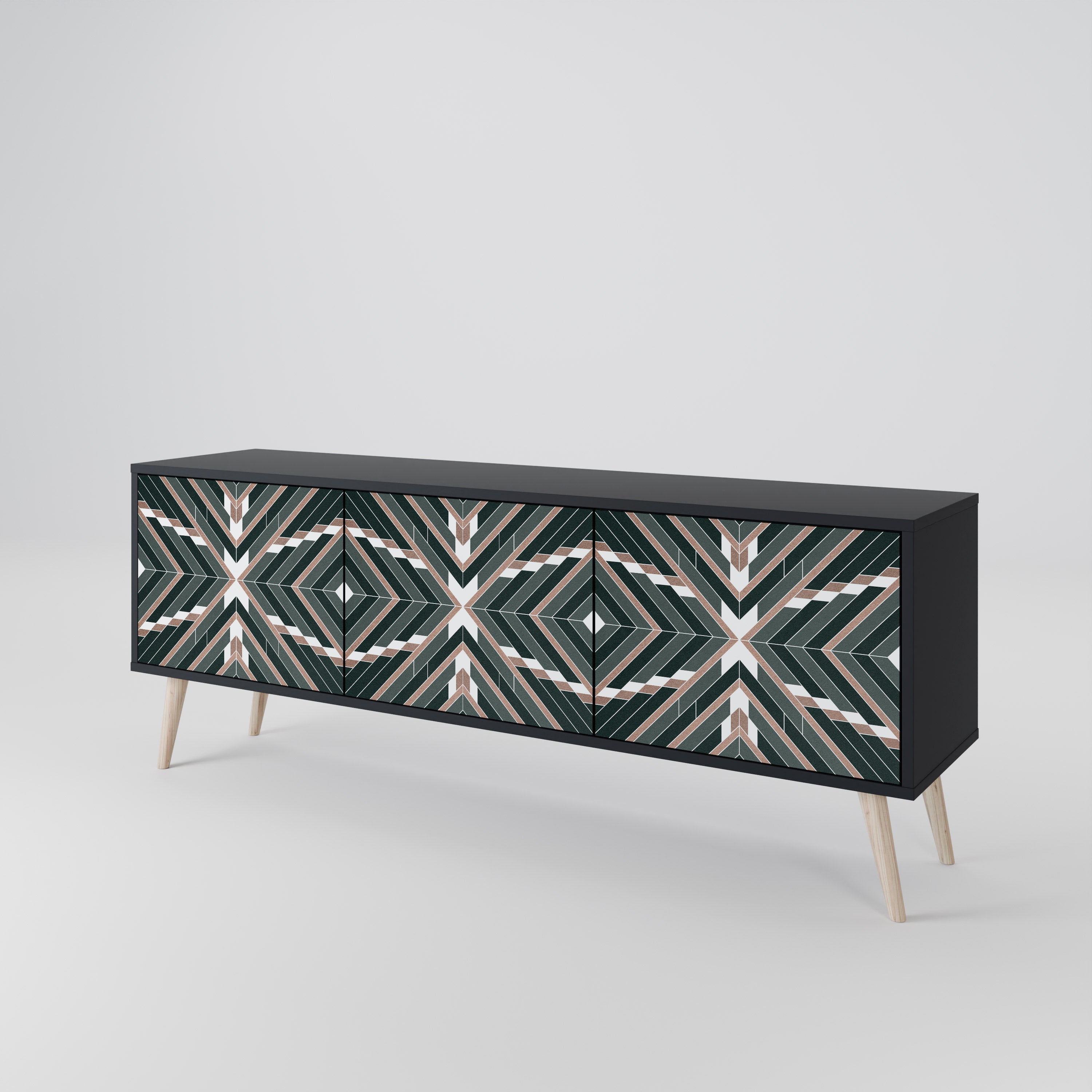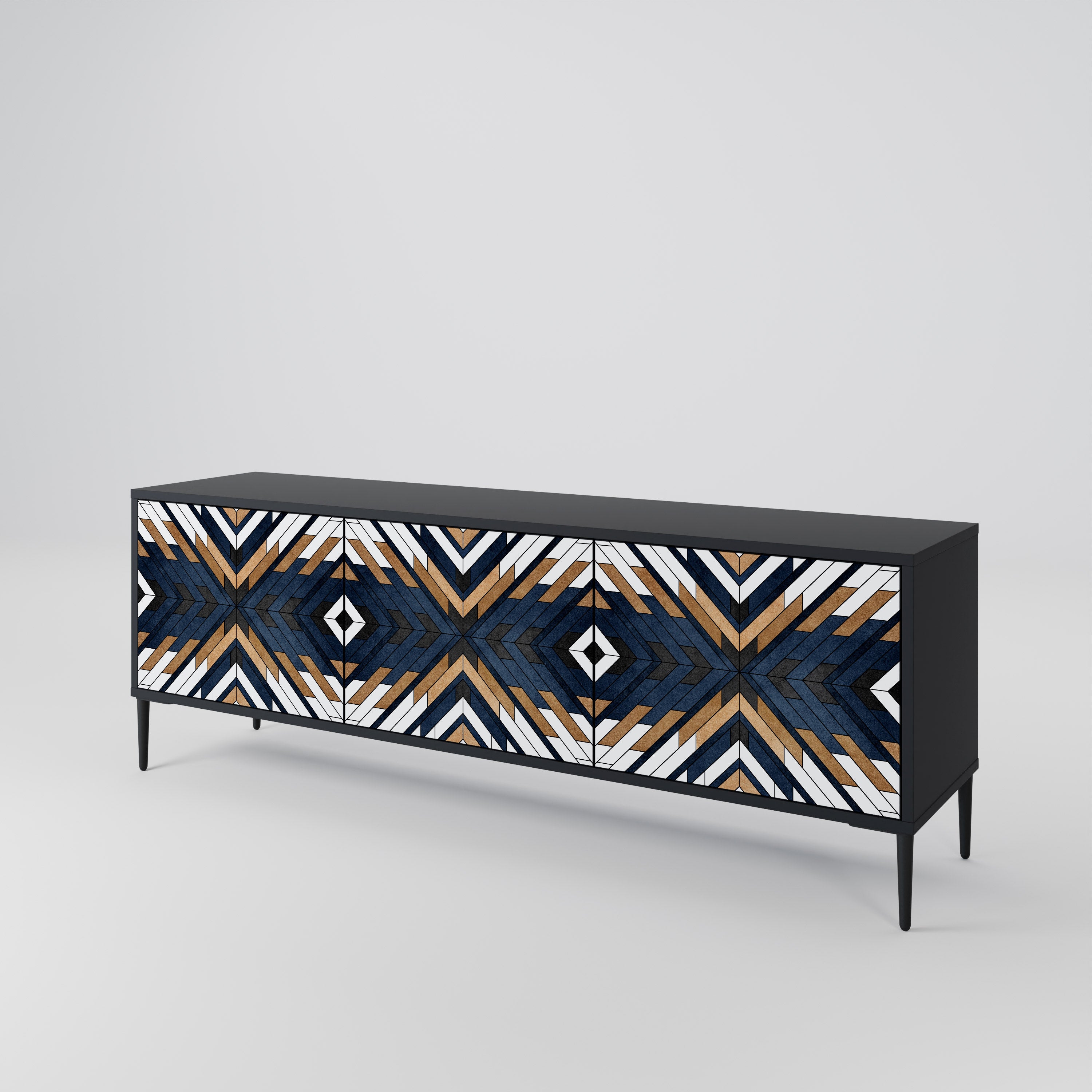 Mueble de TV de 3 puertas COLORFUL TRIANGLES en acabado negro Mueble de TV de 3 puertas COLORFUL TRIANGLES en acabado negro