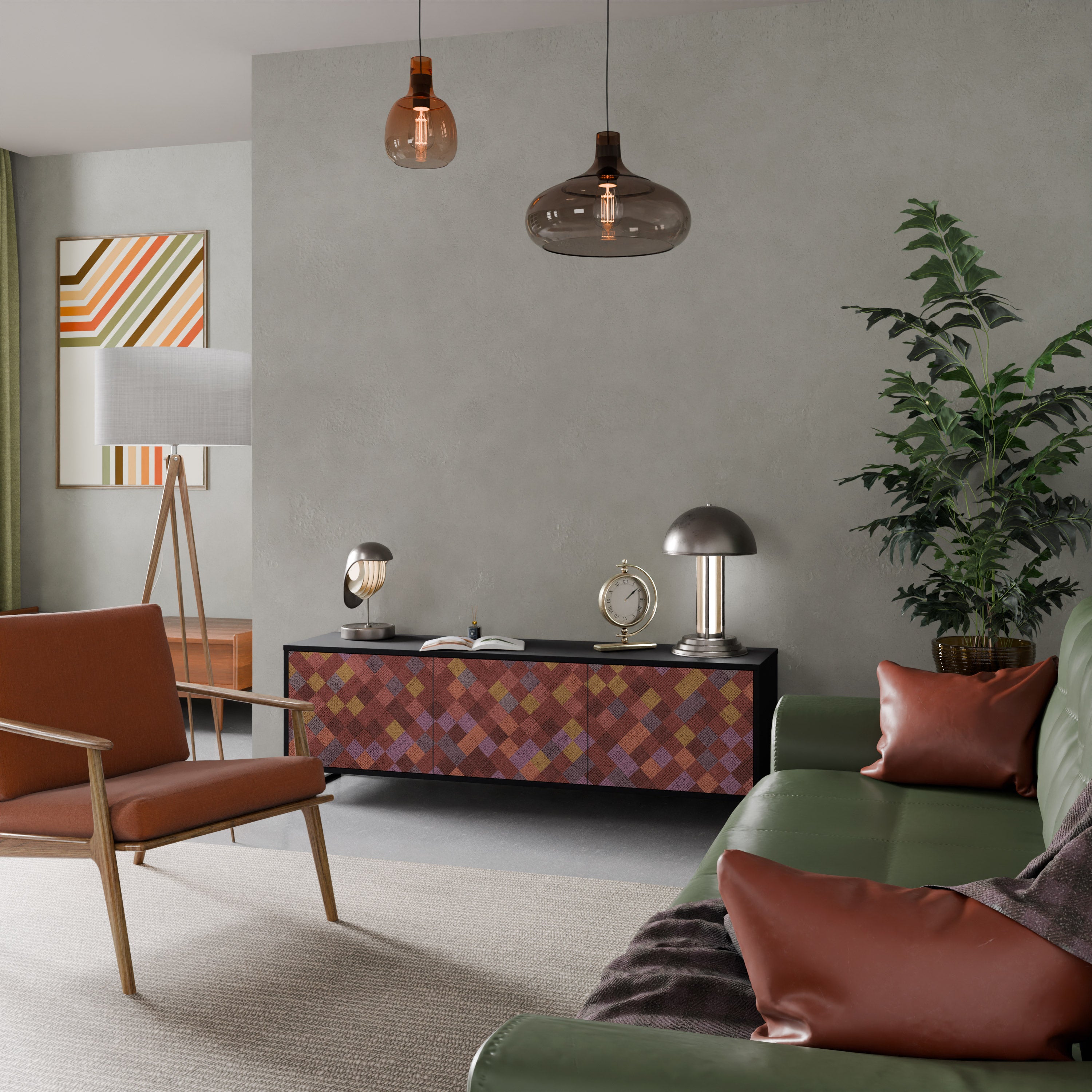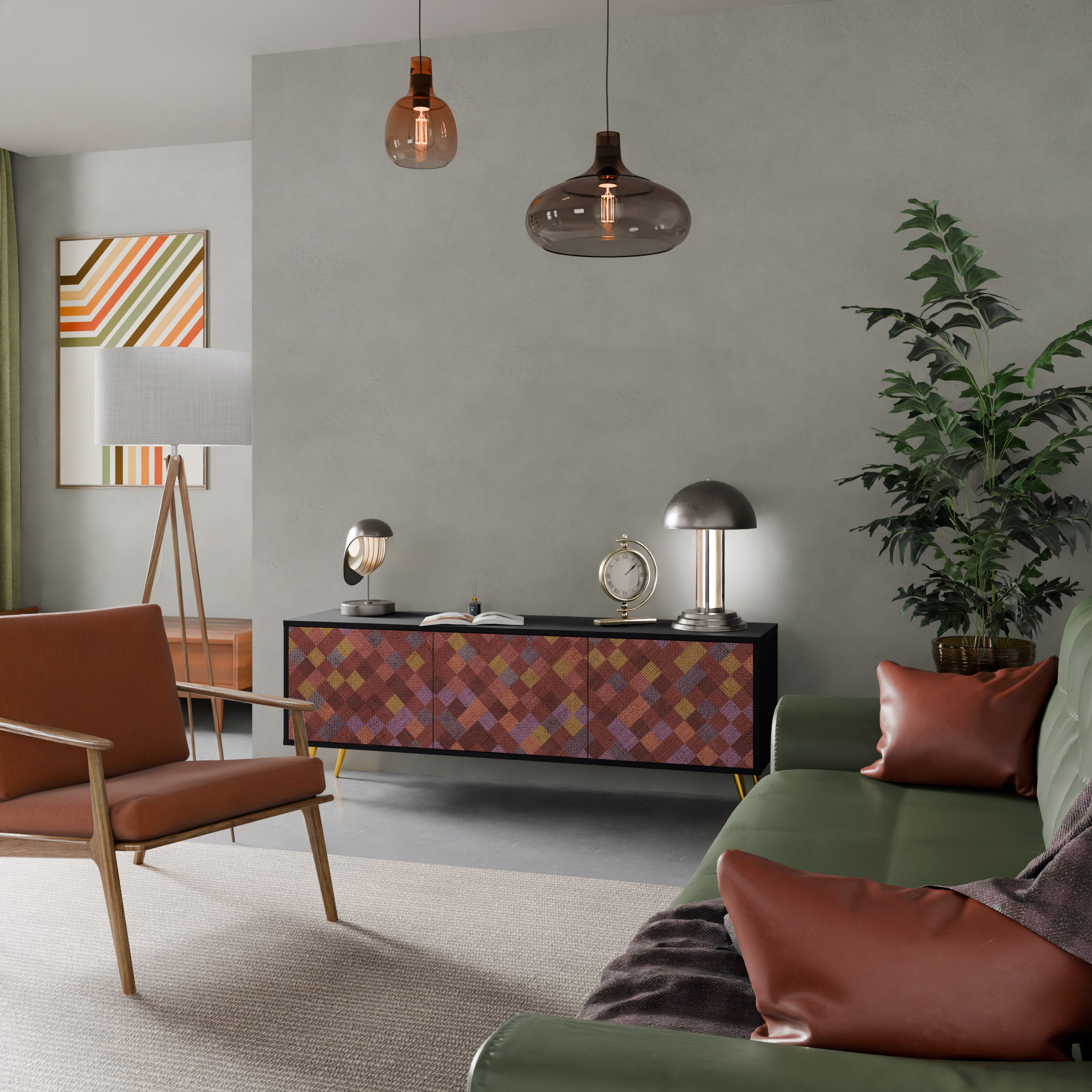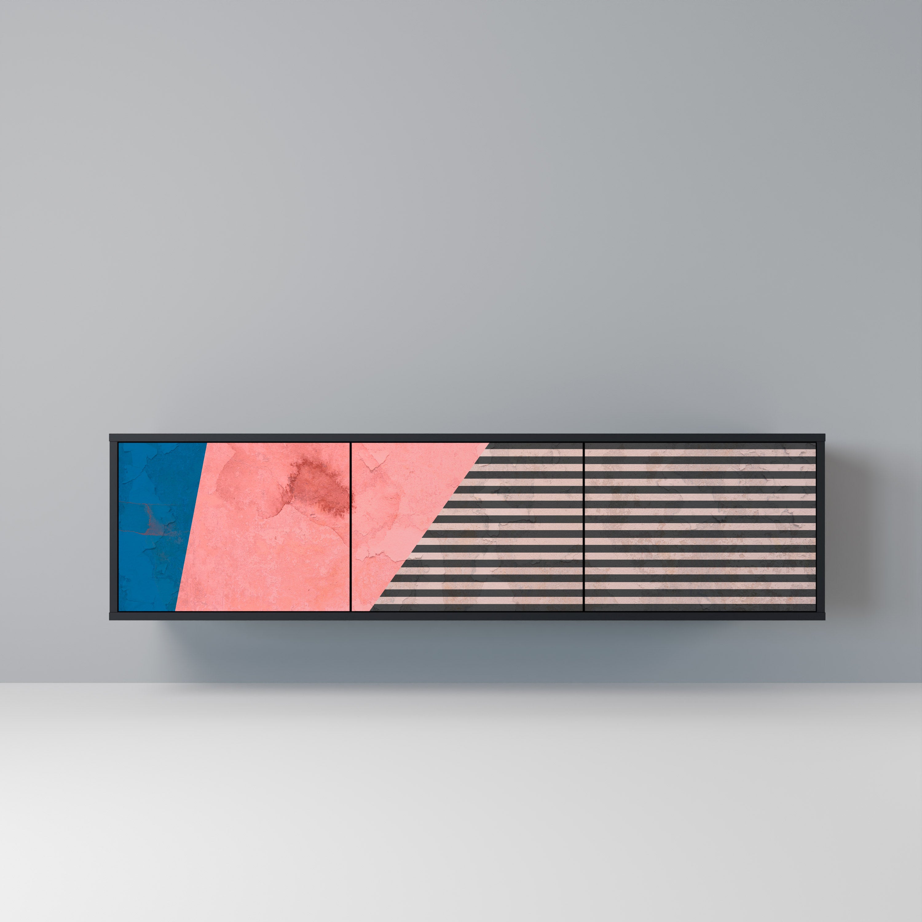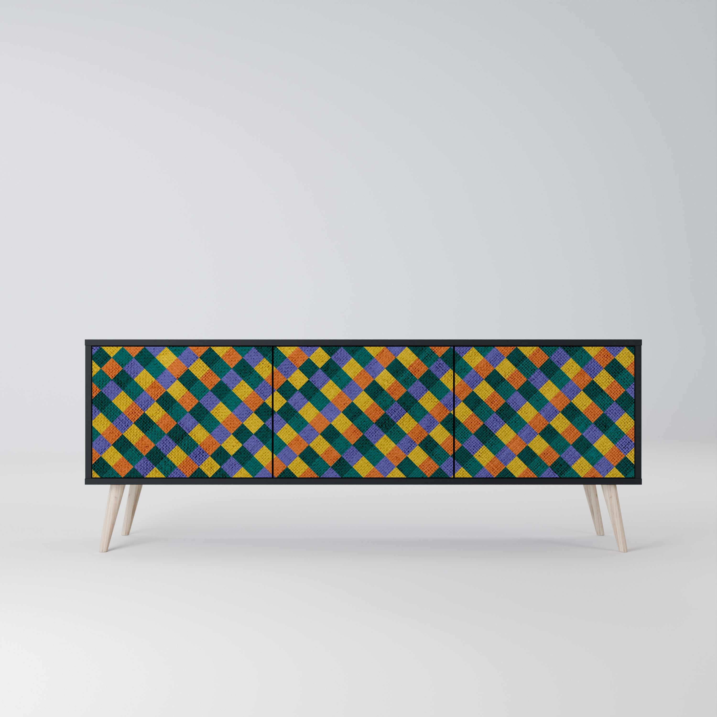 Mueble de TV de 3 puertas COLORFUL TRIANGLES en acabado negro Mueble de TV de 3 puertas COLORFUL TRIANGLES en acabado negro