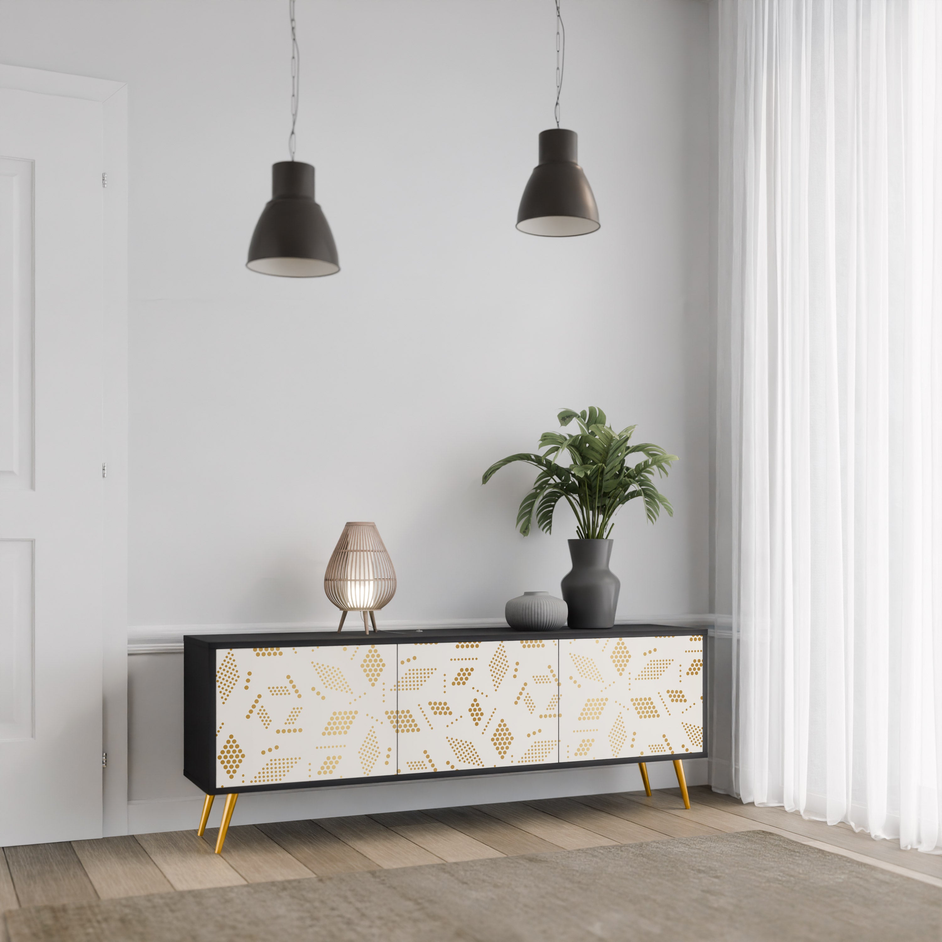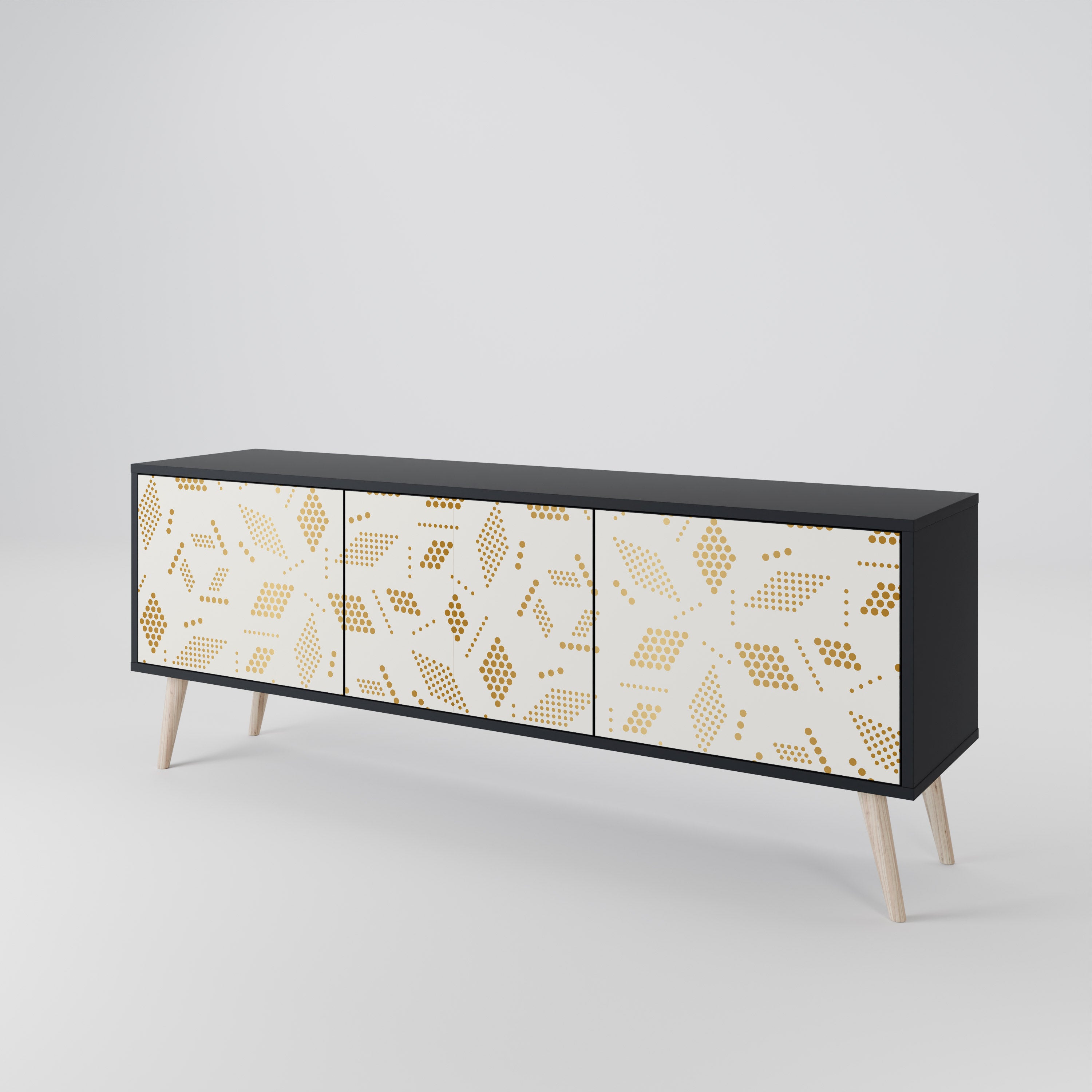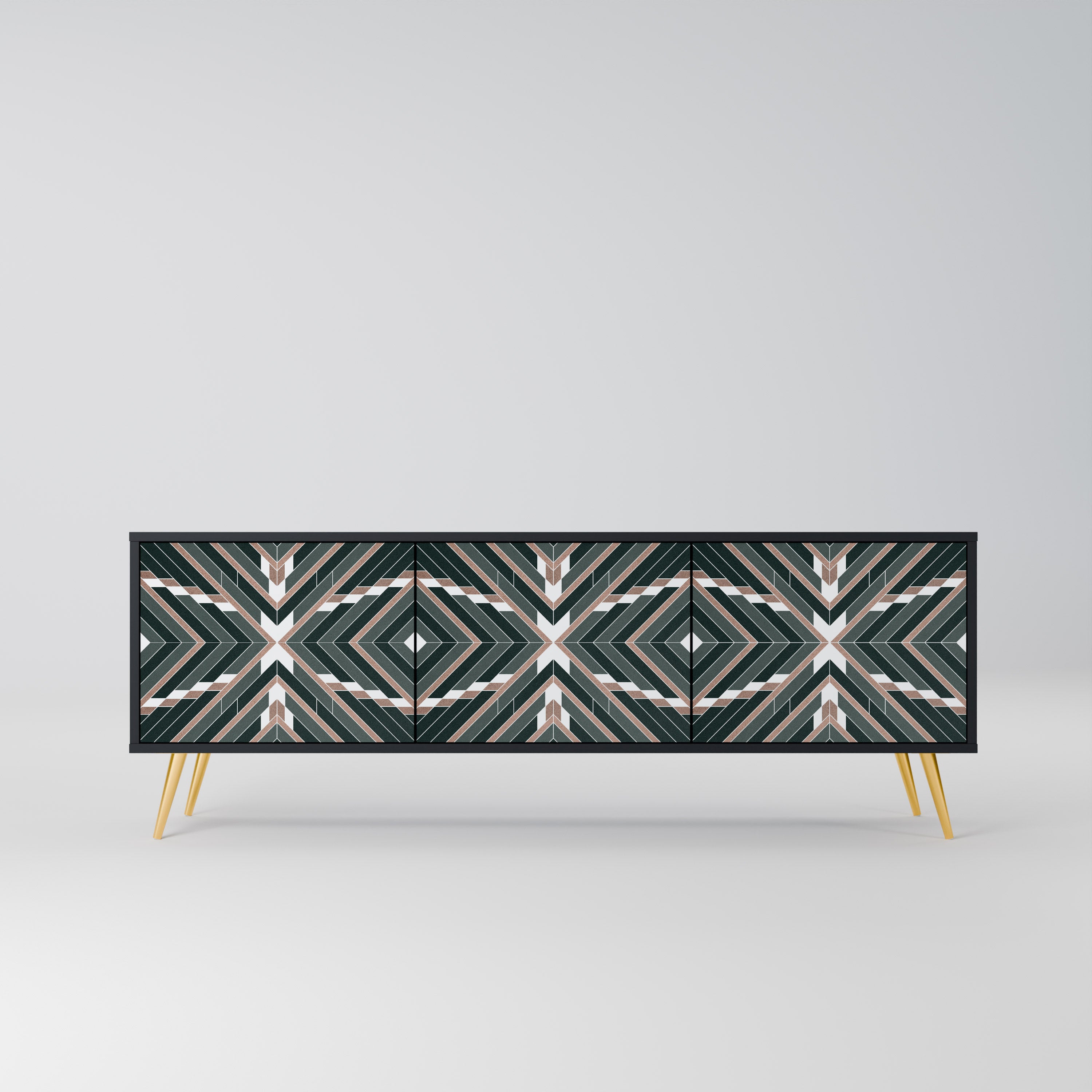 Mueble de TV de 3 puertas ARTISTIC GEOMETRY en acabado negro Mueble de TV de 3 puertas ARTISTIC GEOMETRY en acabado negro