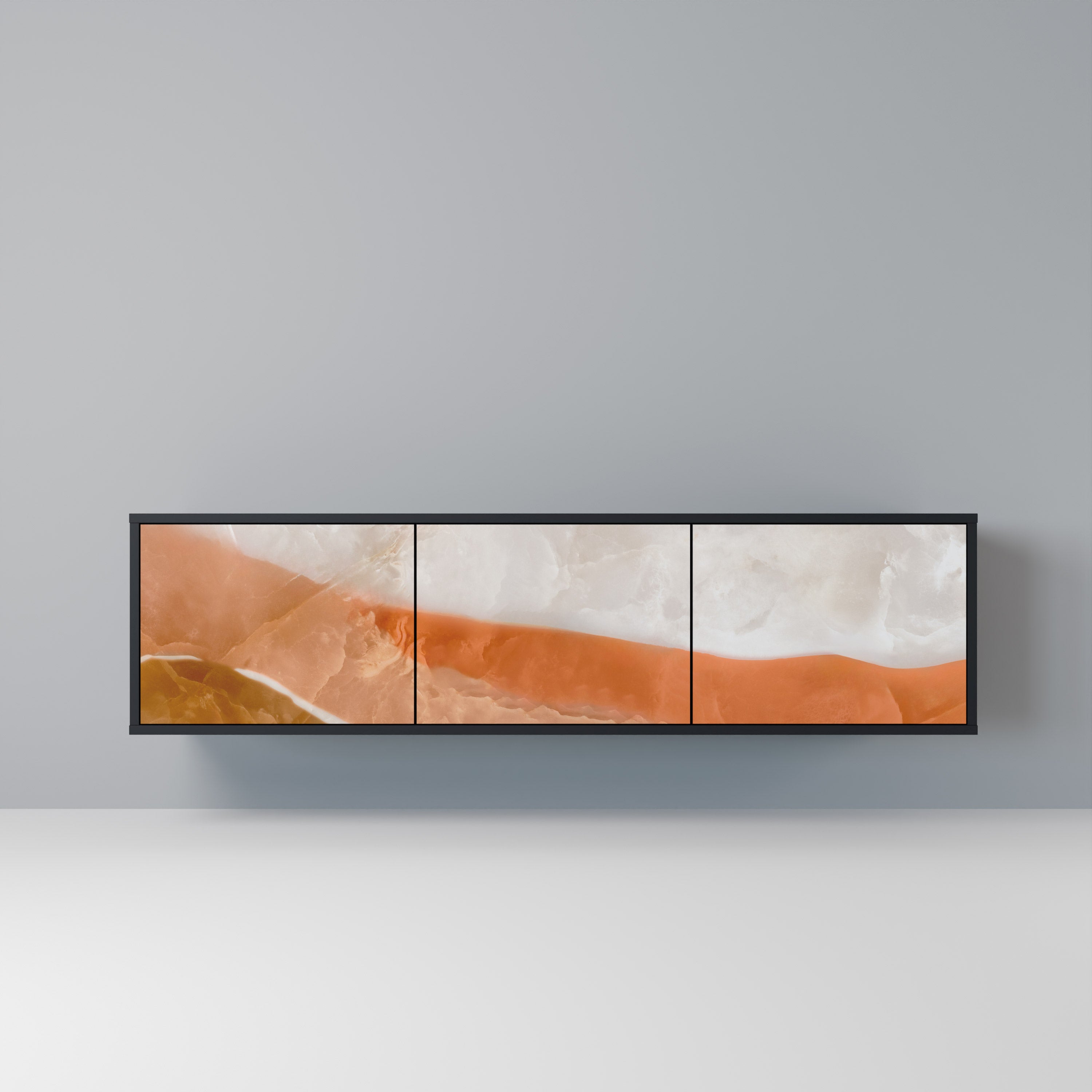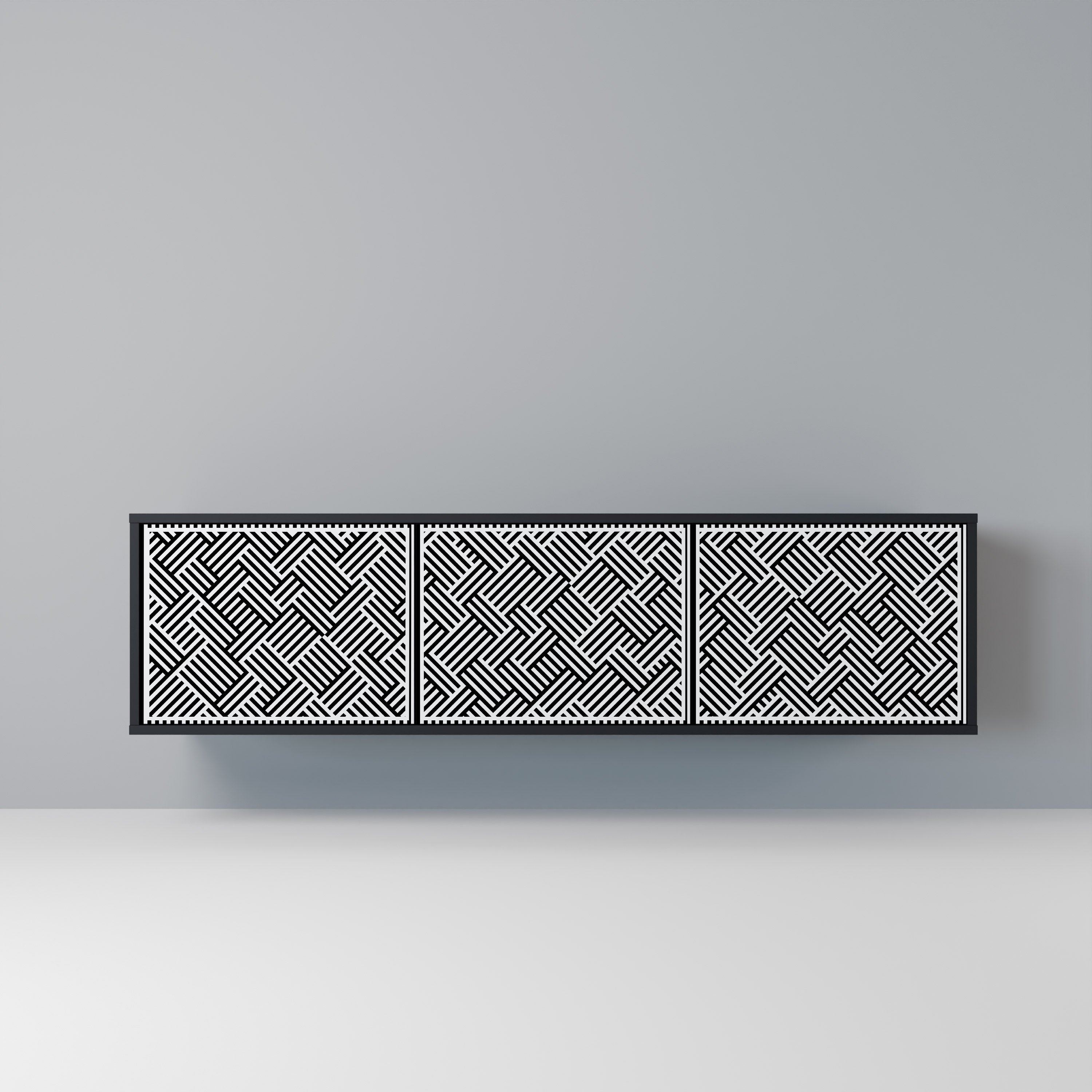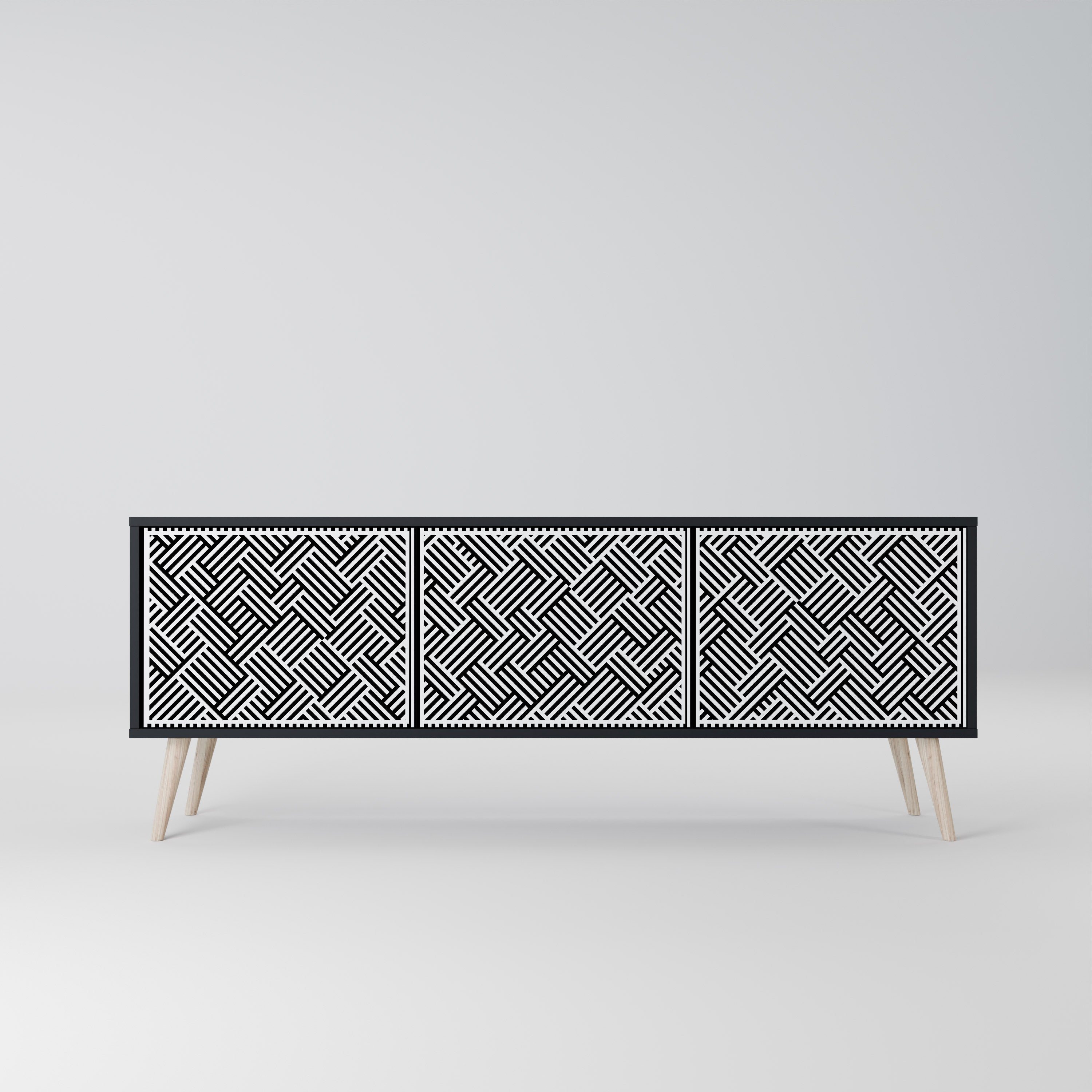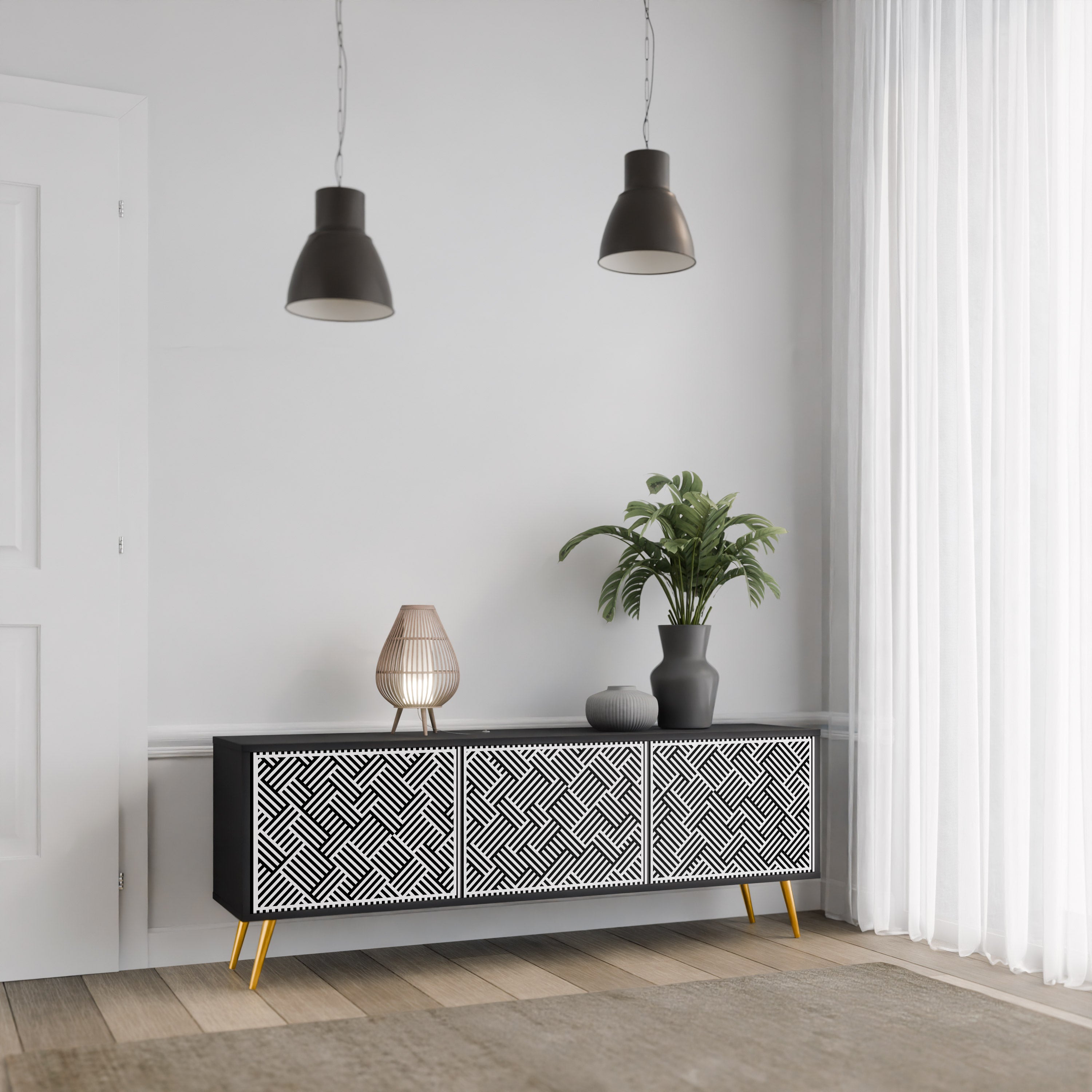 Mueble de TV de 3 puertas ARTISTIC GEOMETRY en acabado negro Mueble de TV de 3 puertas ARTISTIC GEOMETRY en acabado negro