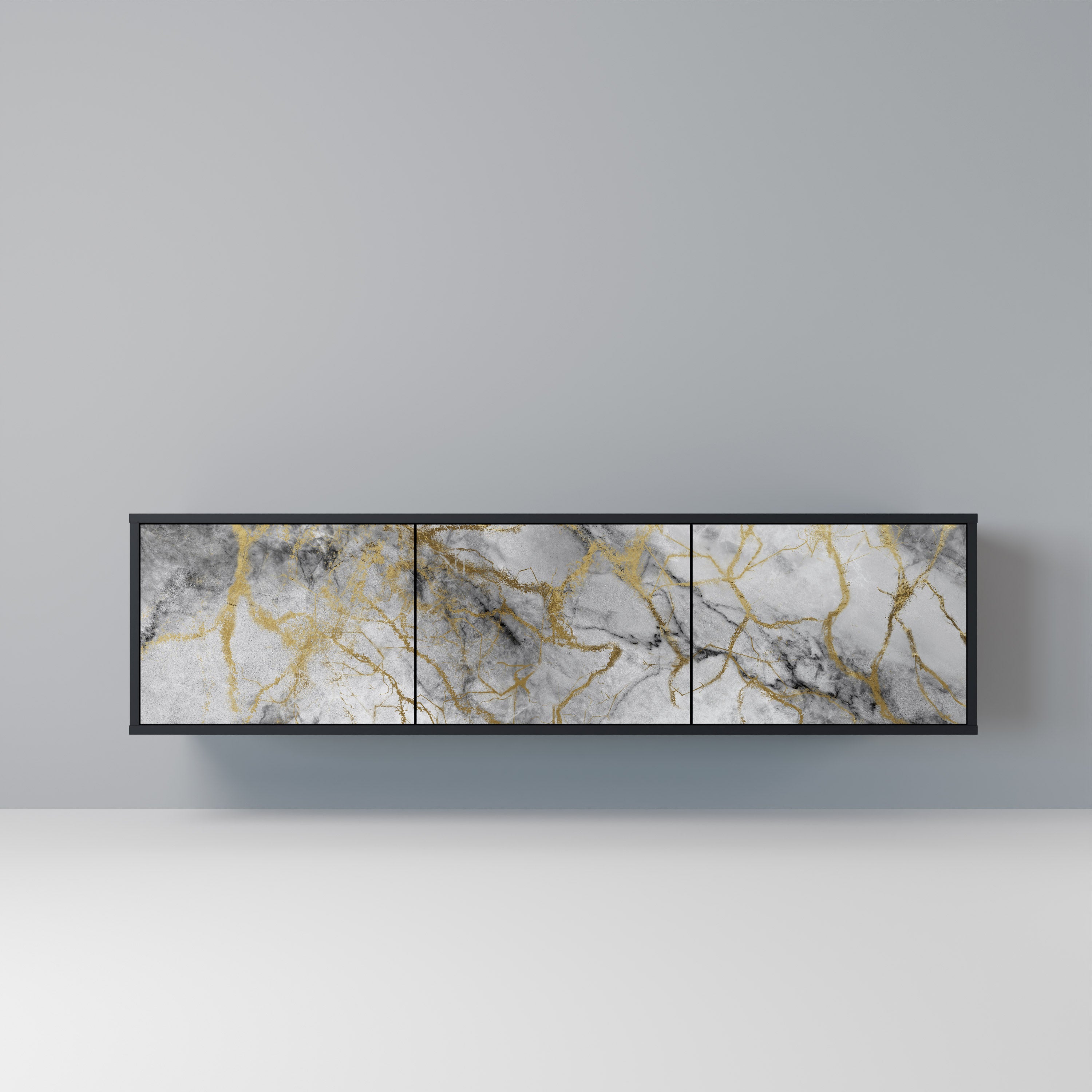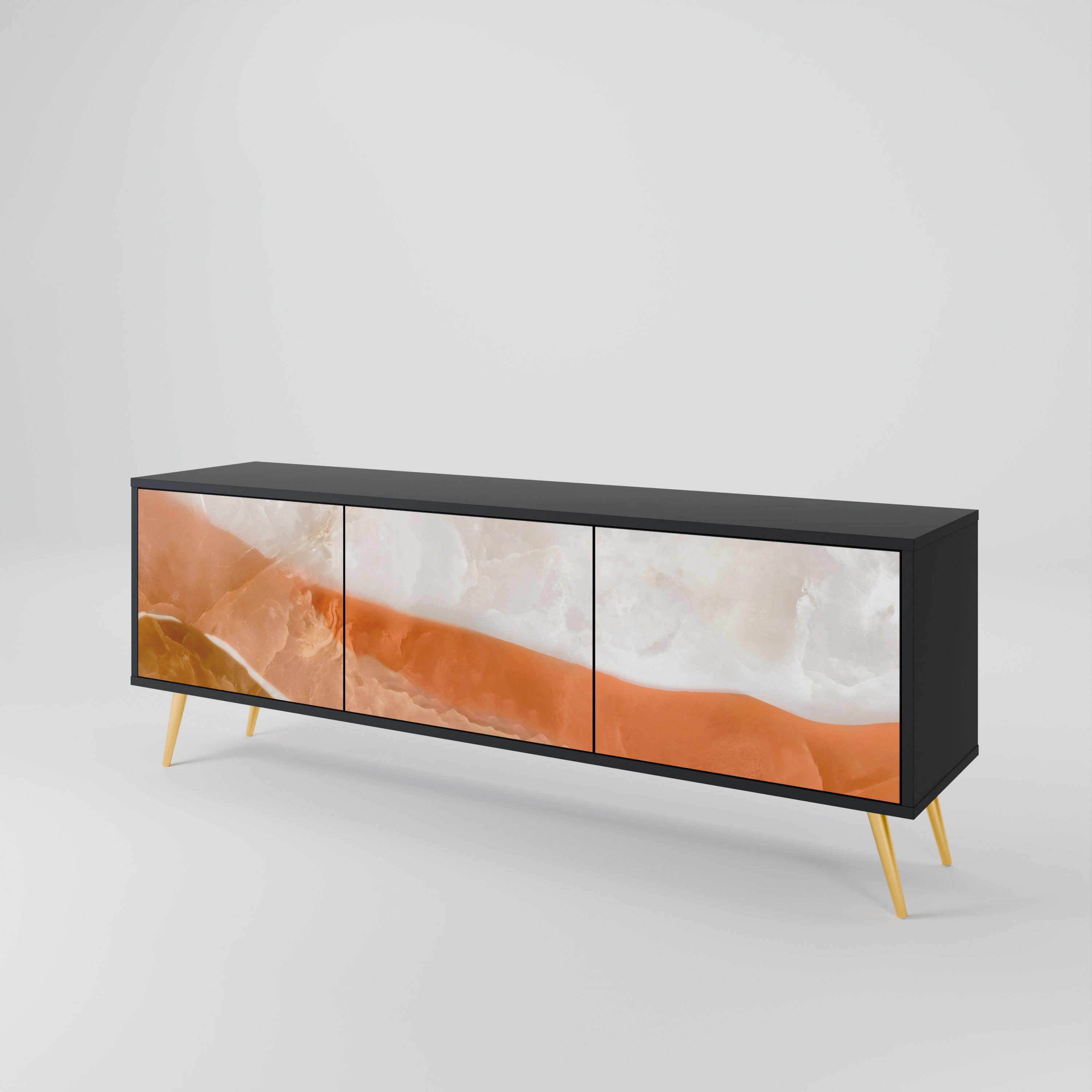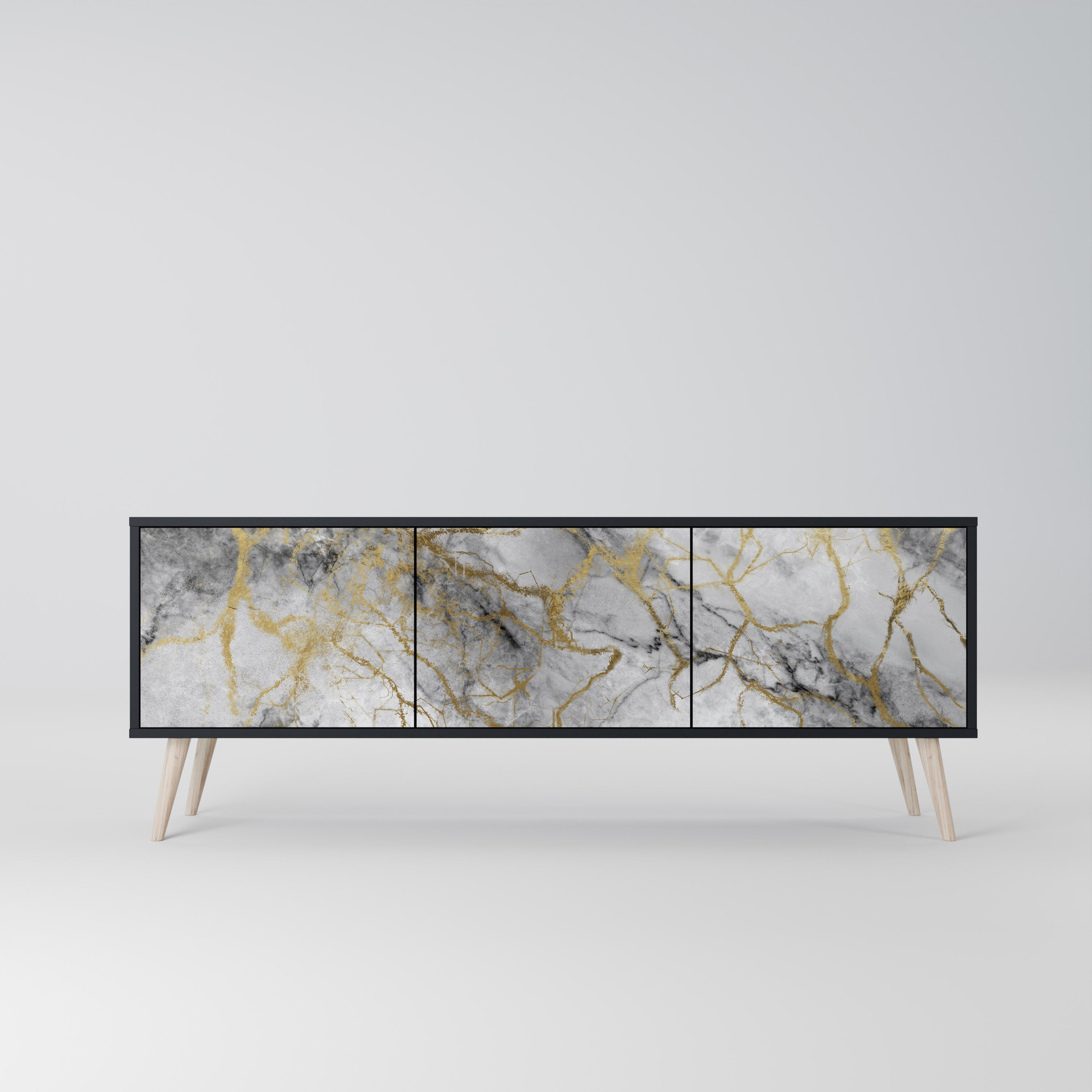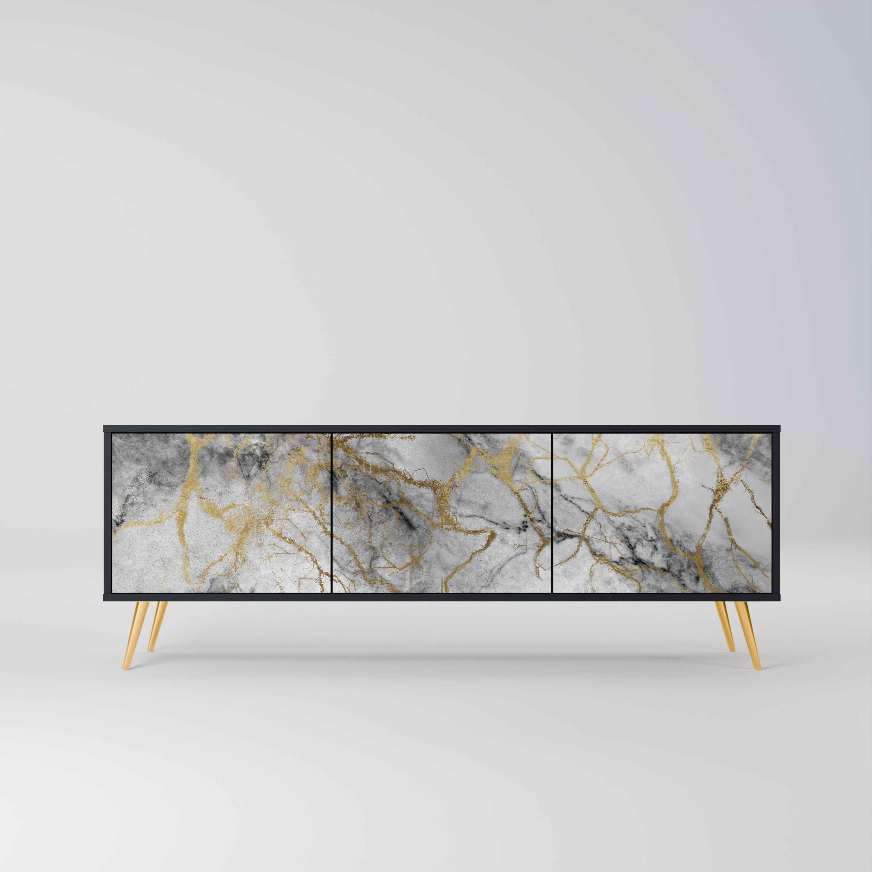 Mueble de TV de 3 puertas GOLD DUST con acabado negro Mueble de TV de 3 puertas GOLD DUST con acabado negro
