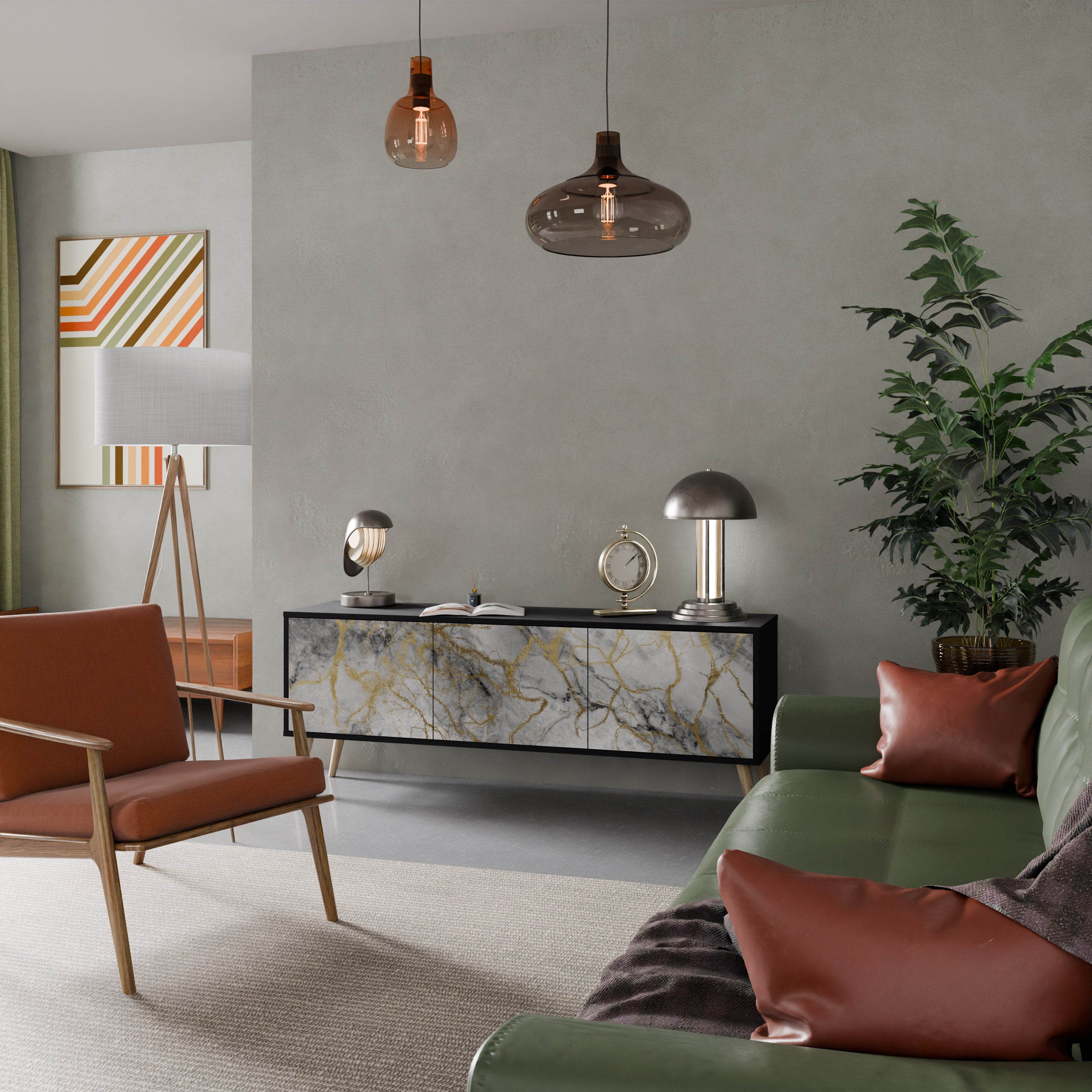 €419,00Mueble de TV de 3 puertas GOLD DUST con acabado negro