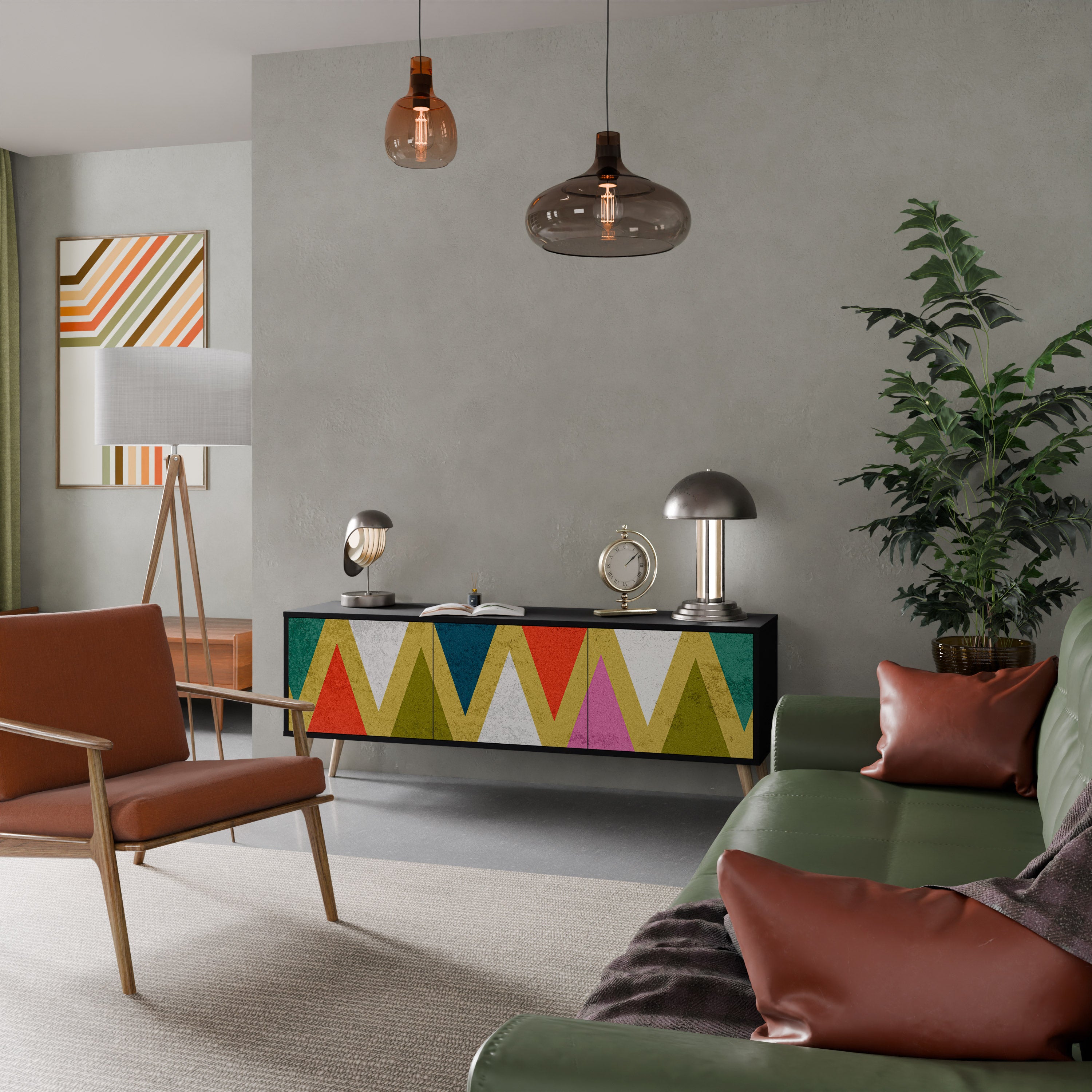 €419,00Mueble de TV de 3 puertas COLORFUL TRIANGLES en acabado negro