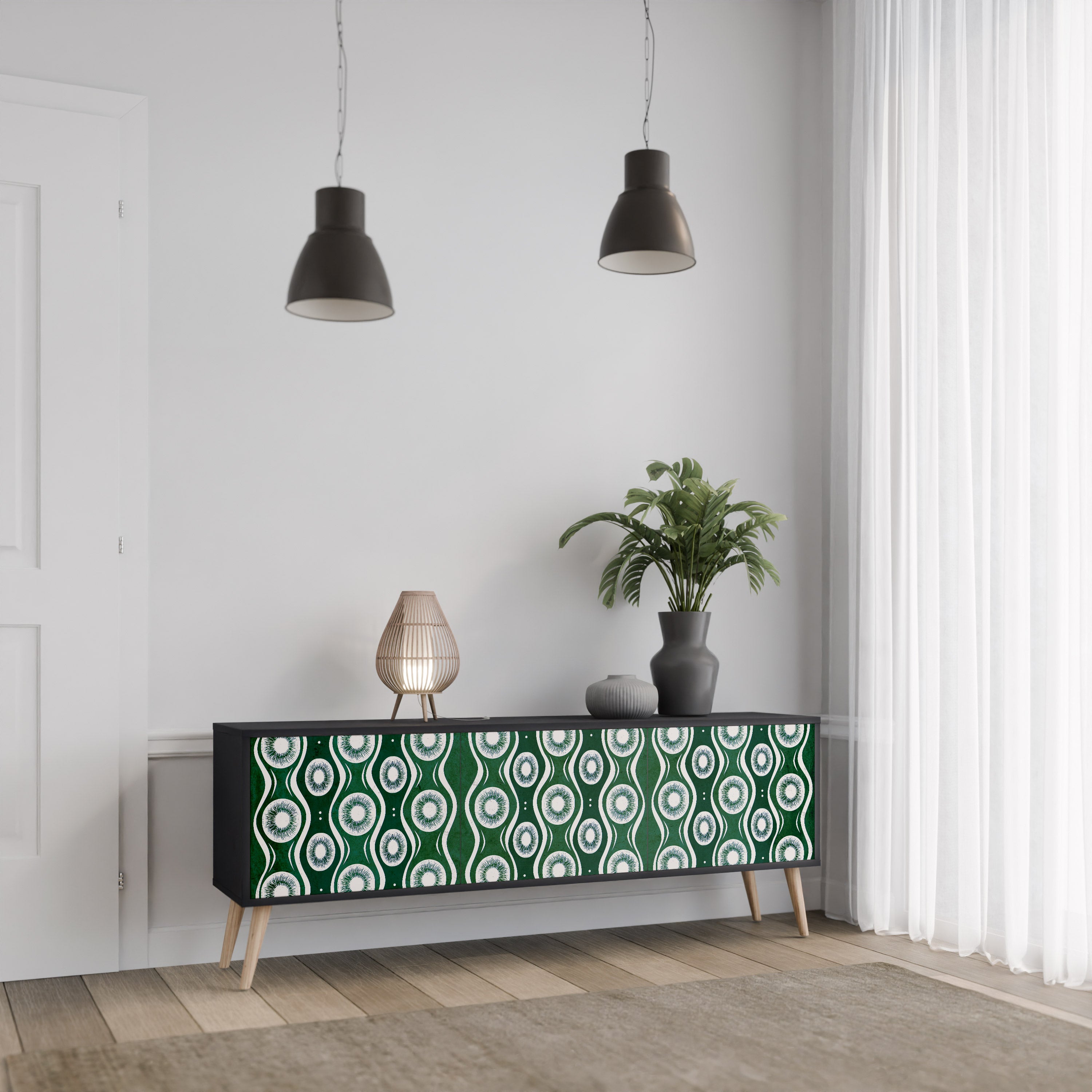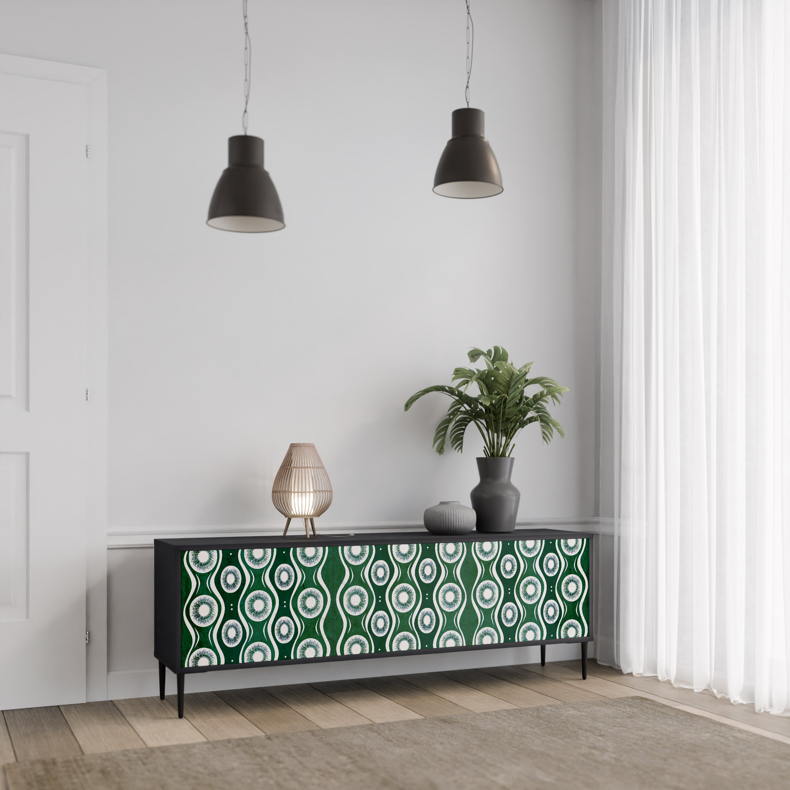 Mueble de TV de 3 puertas GREEN EYES con acabado negro Mueble de TV de 3 puertas GREEN EYES con acabado negro