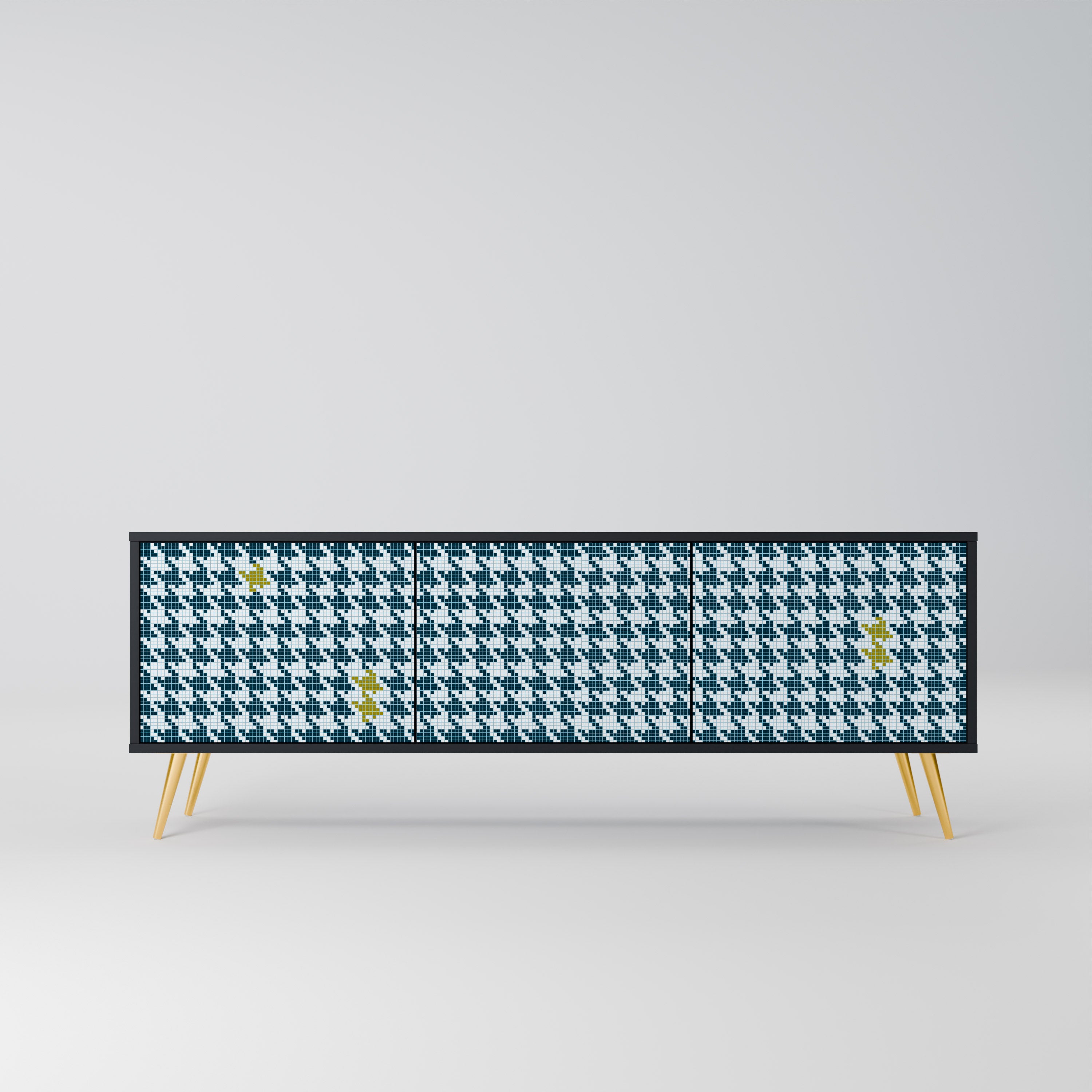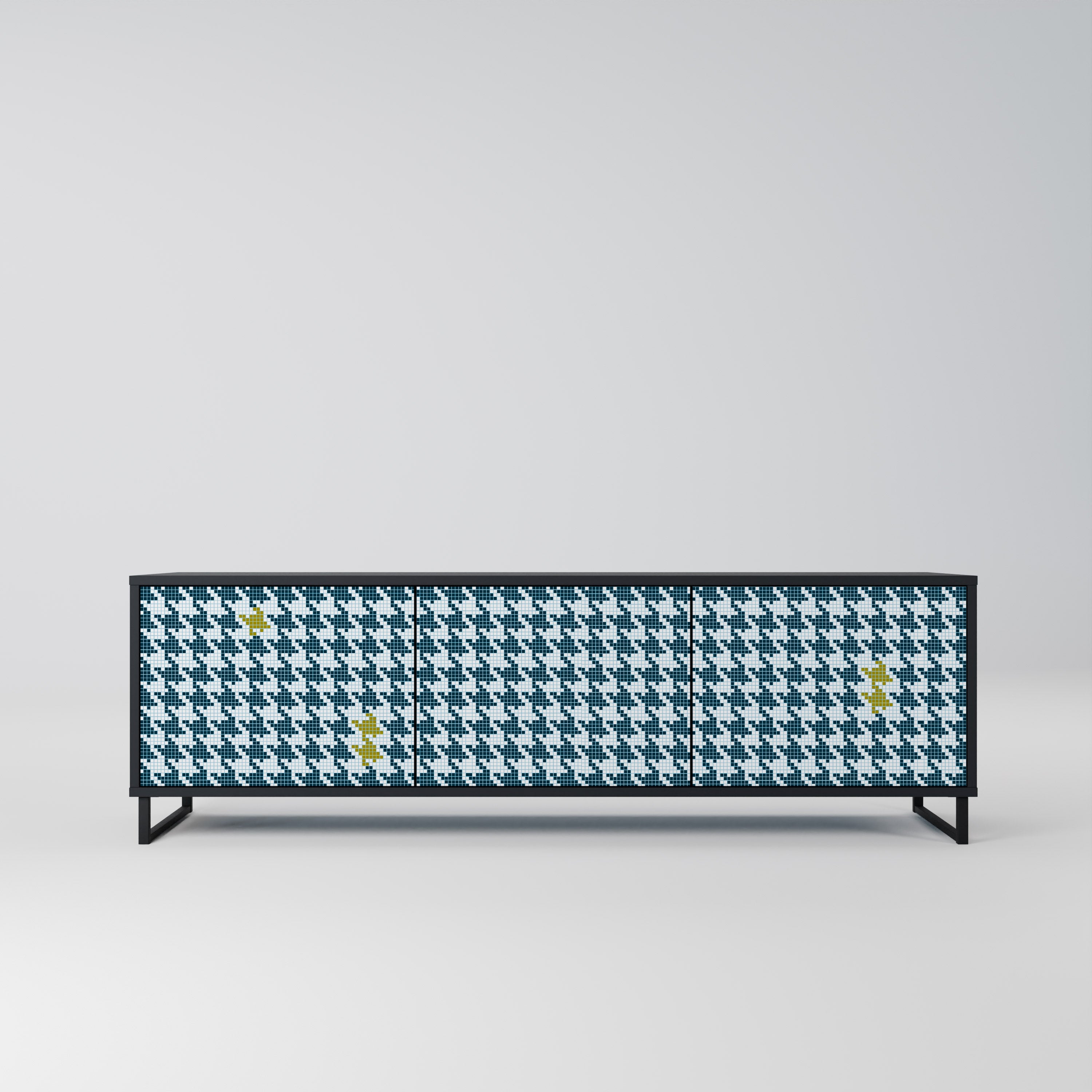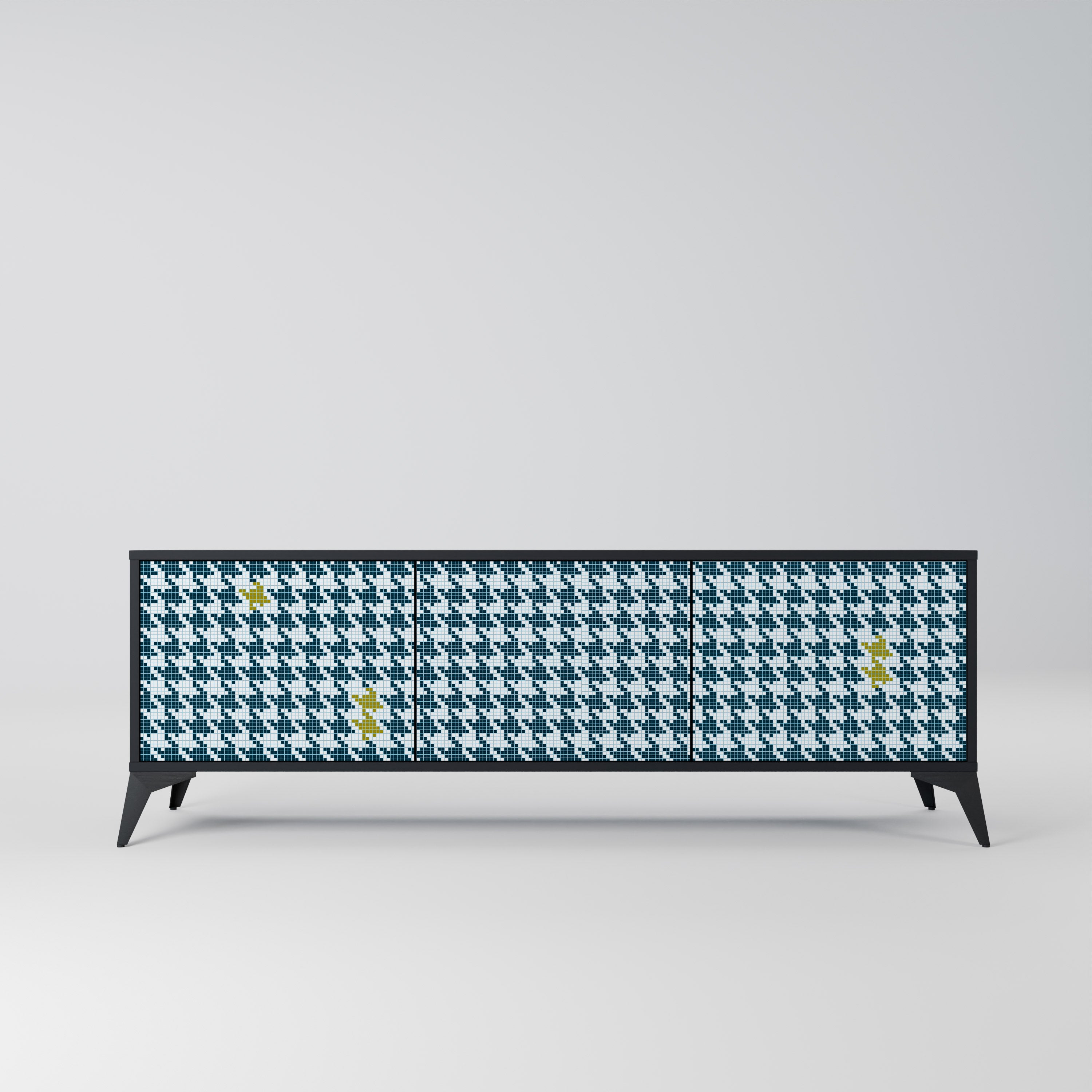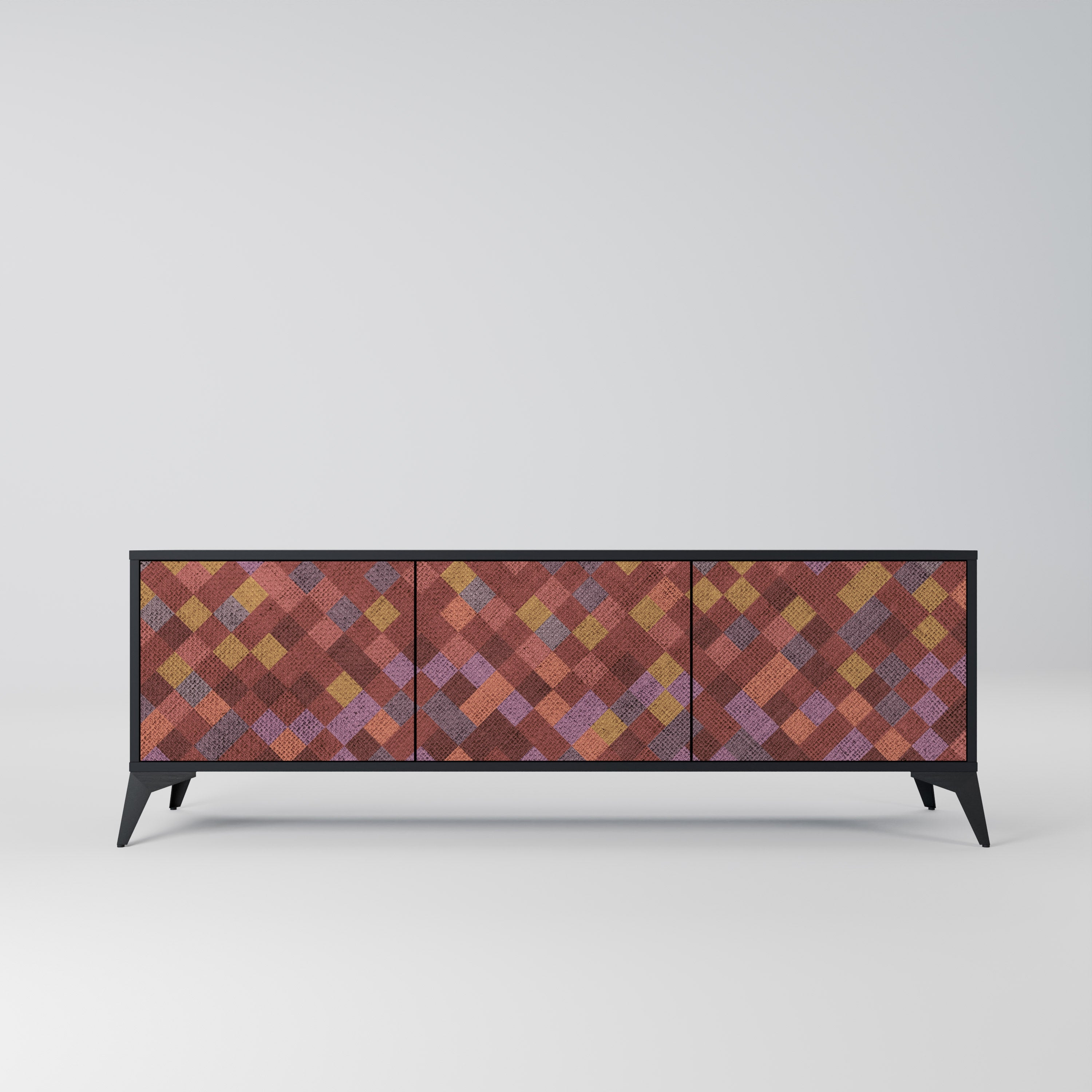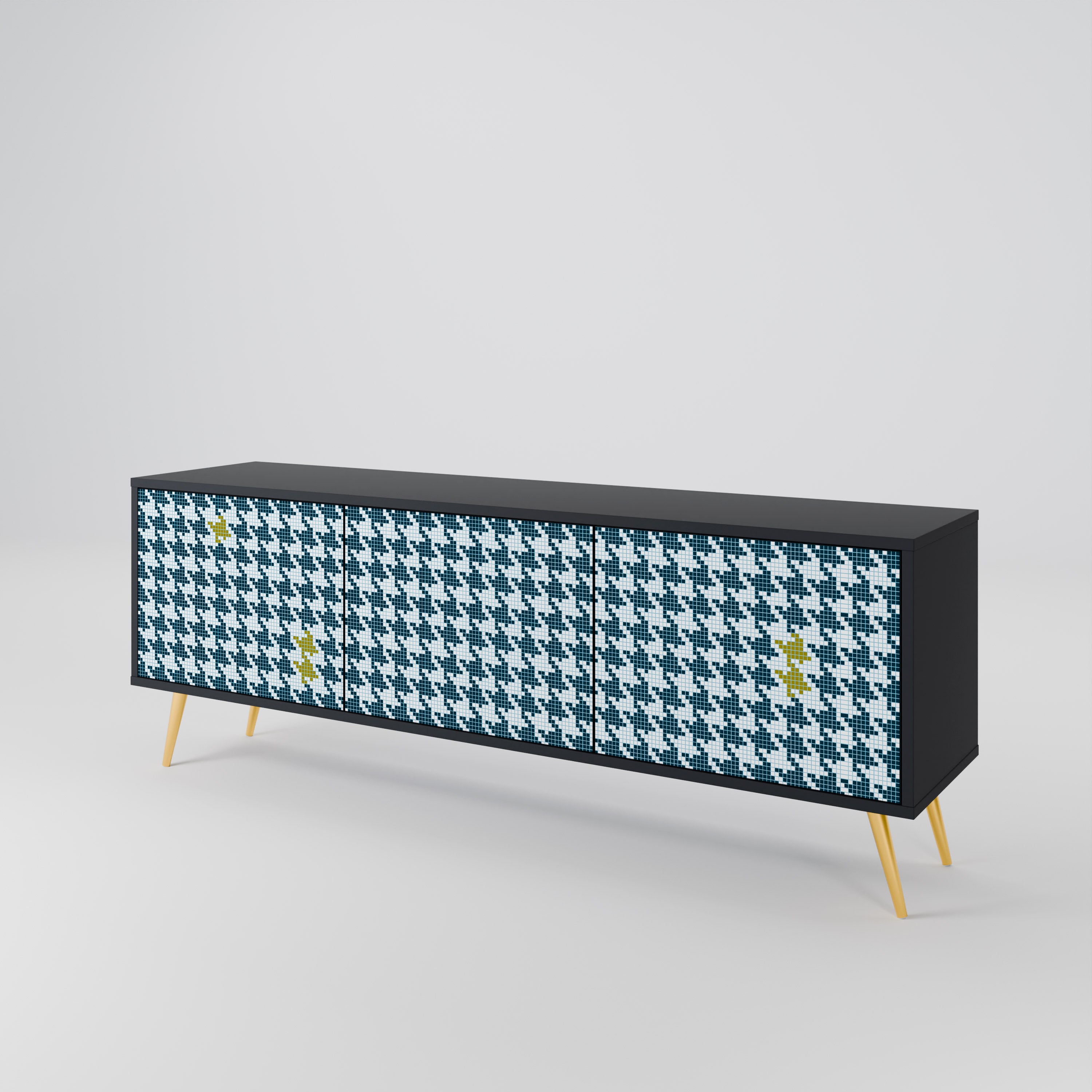 Mueble de TV de 3 puertas con diseño de parches vibrantes en acabado negro Mueble de TV de 3 puertas con diseño de parches vibrantes en acabado negro