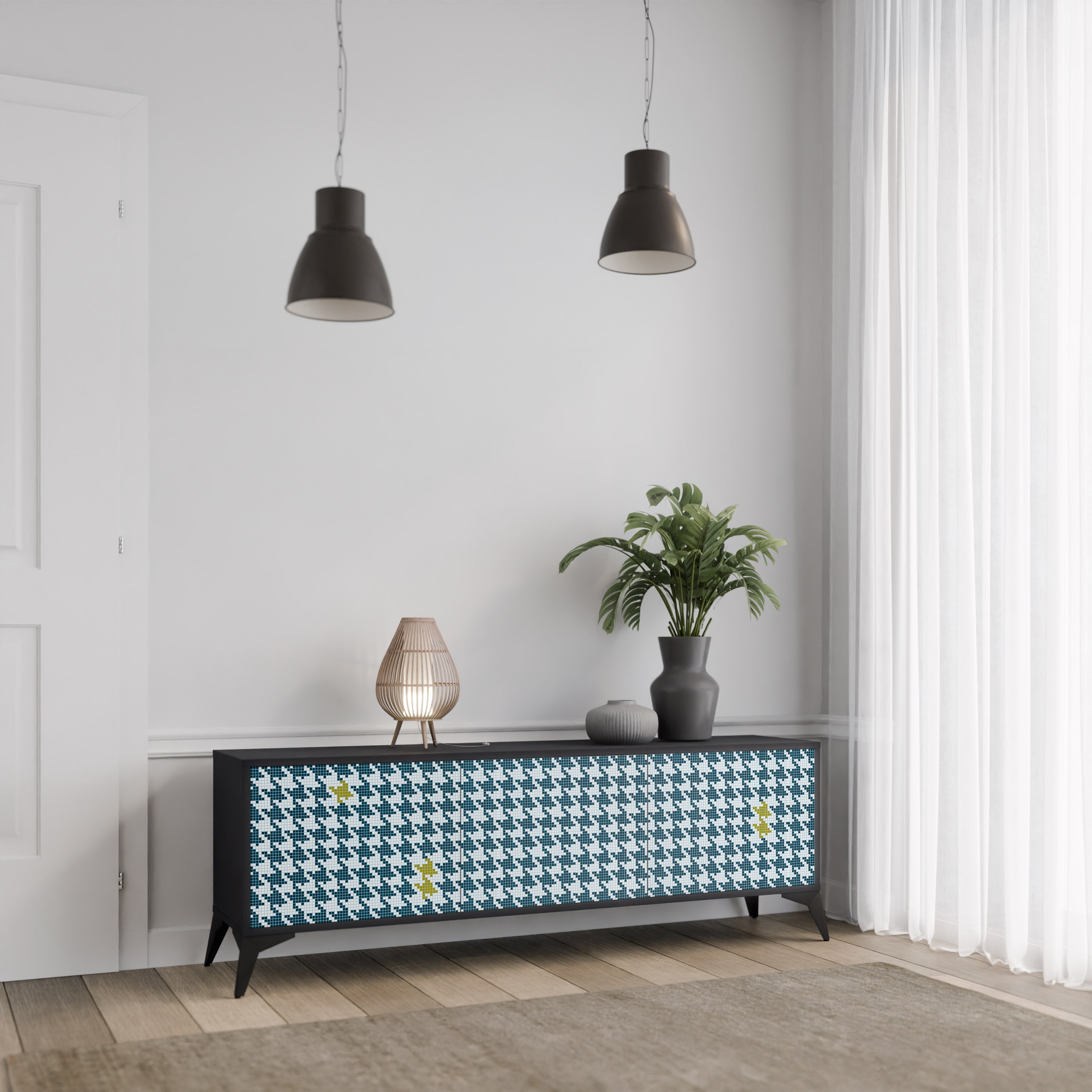 €419,00Mueble de TV de 3 puertas con diseño de parches vibrantes en acabado negro