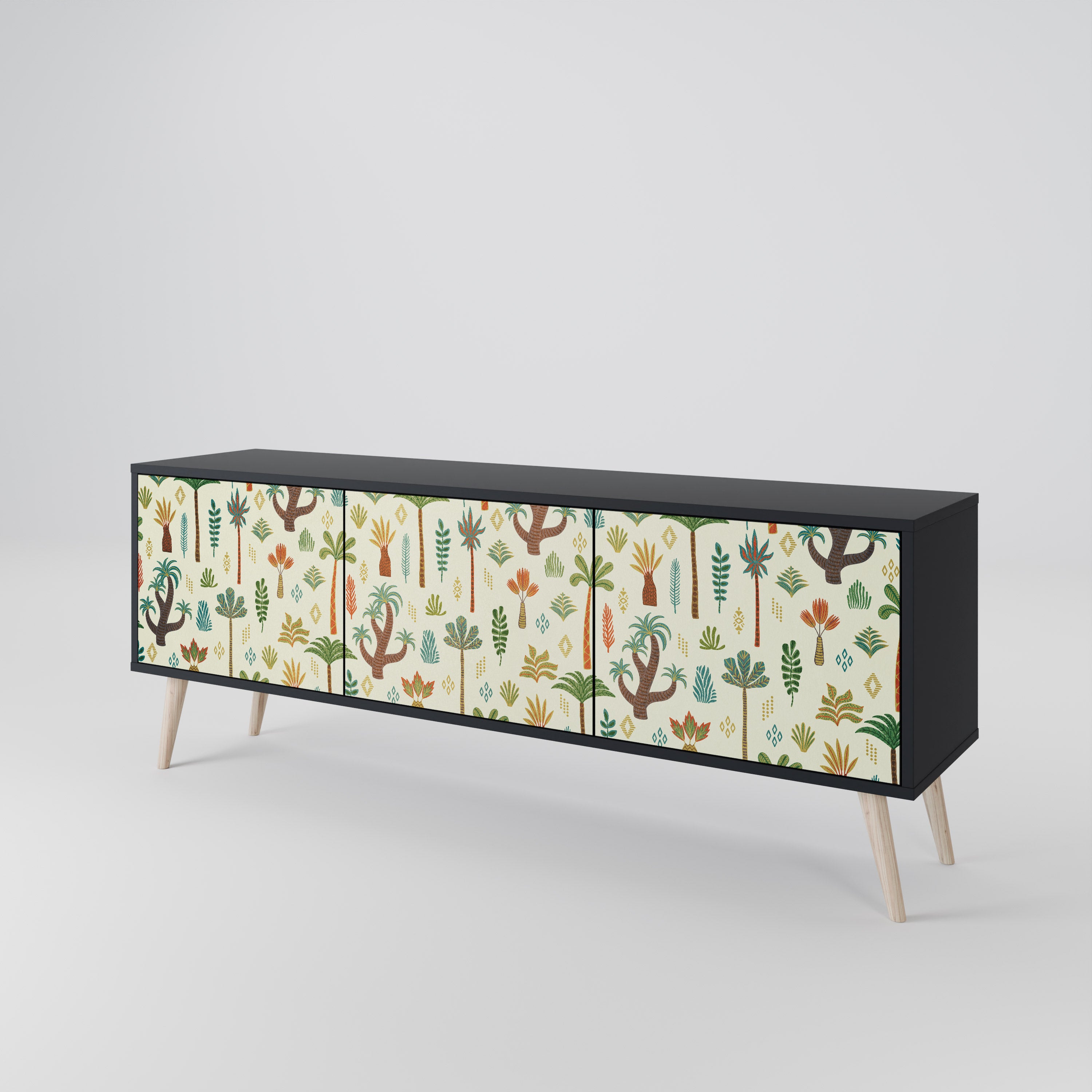 Mueble de TV de 3 puertas LEAVES ON GREEN con acabado negro Mueble de TV de 3 puertas LEAVES ON GREEN con acabado negro
