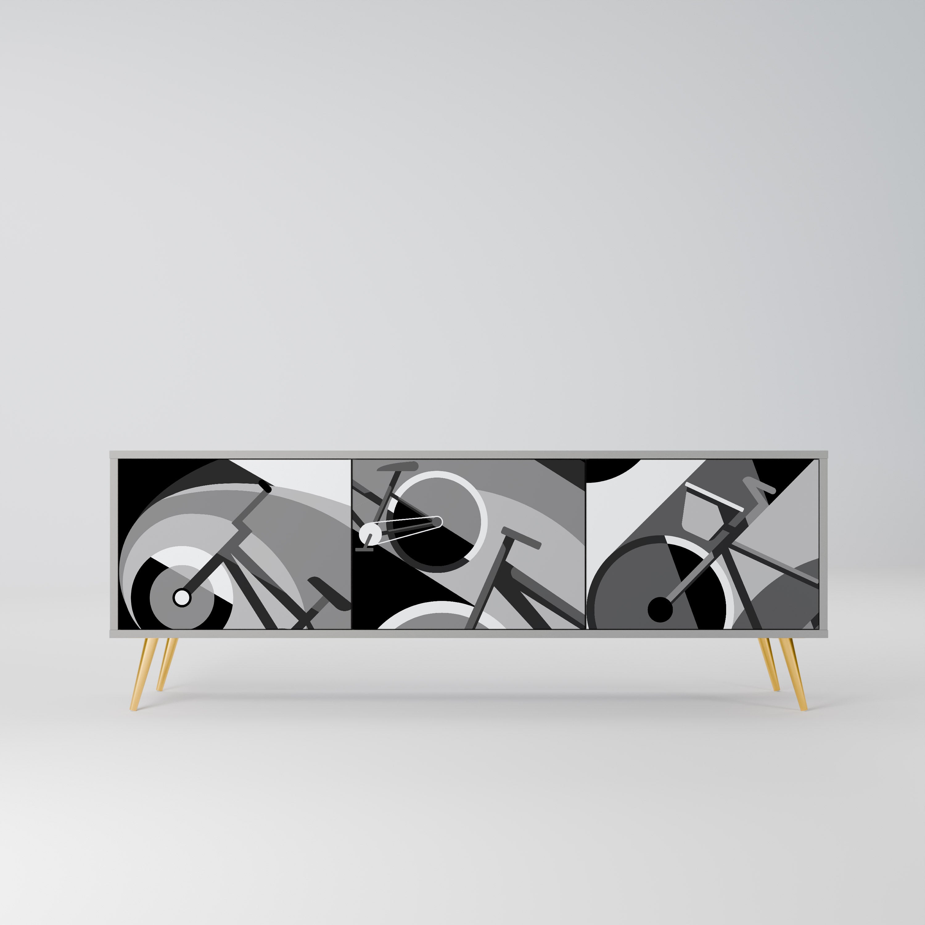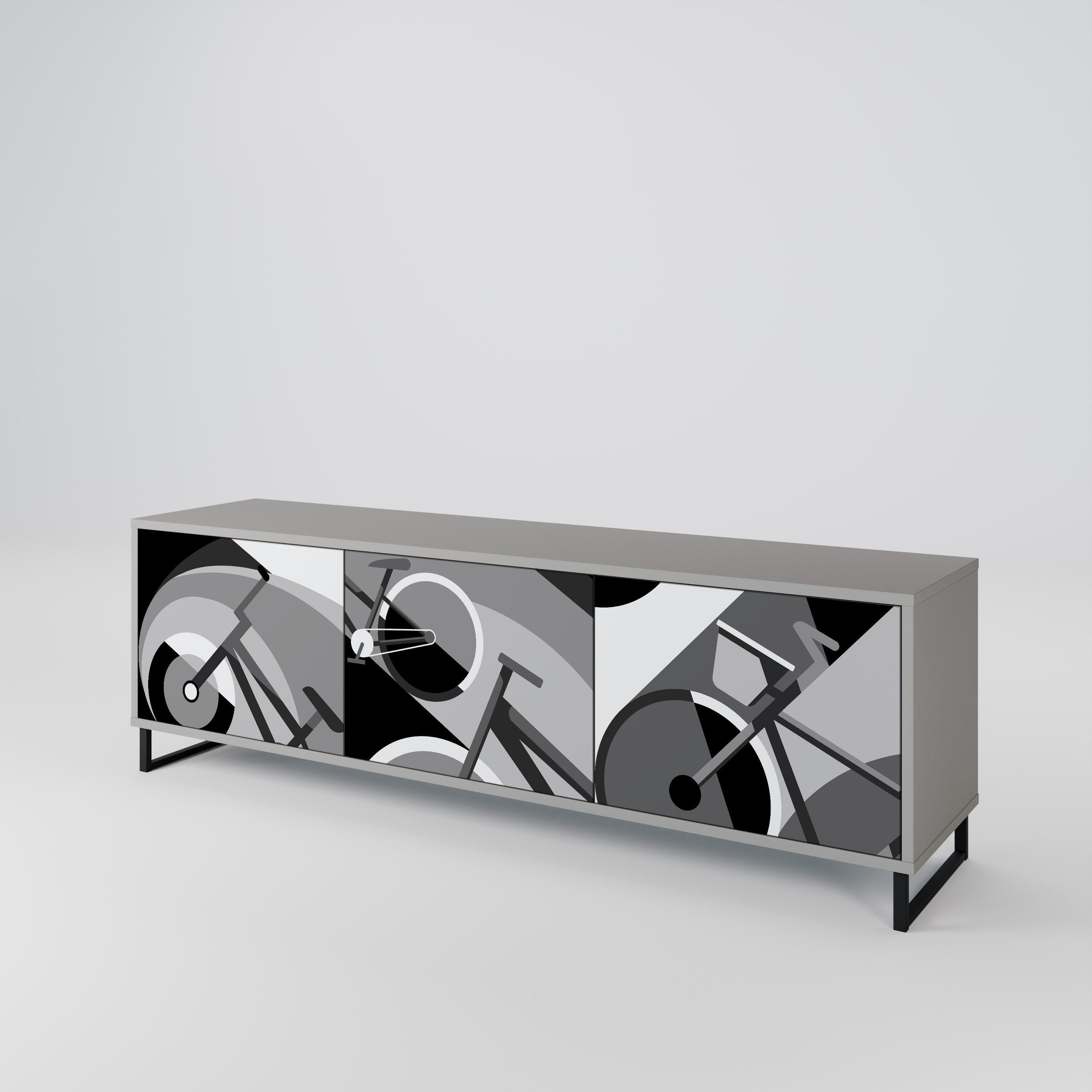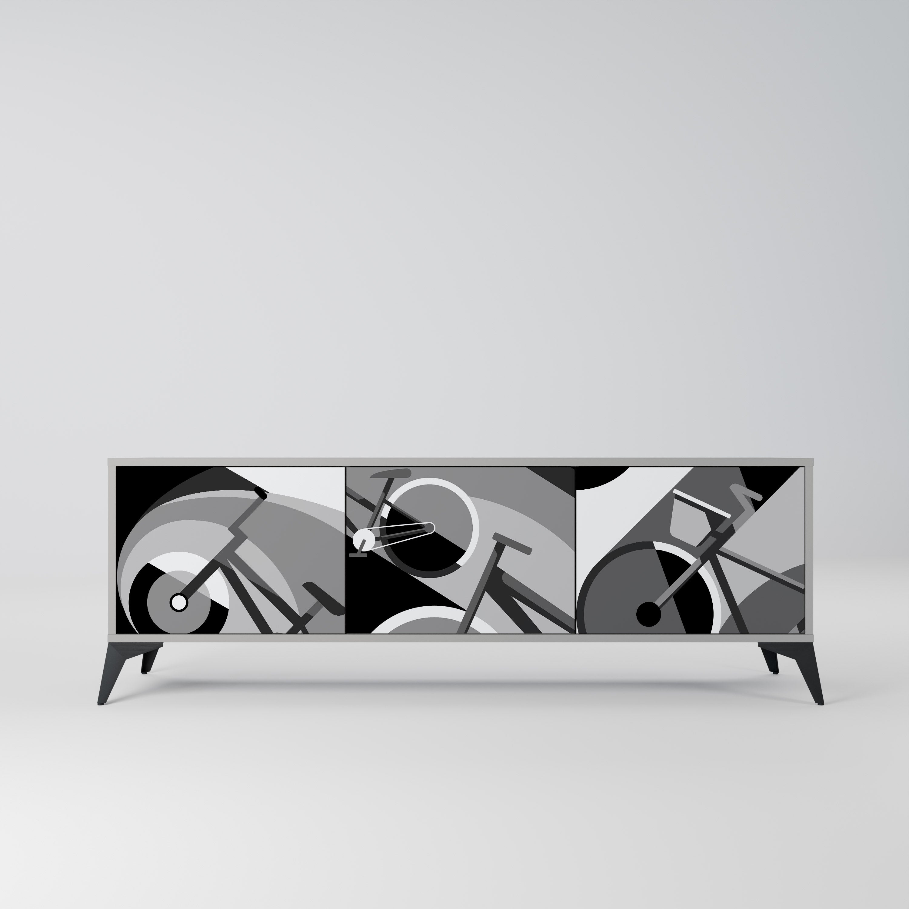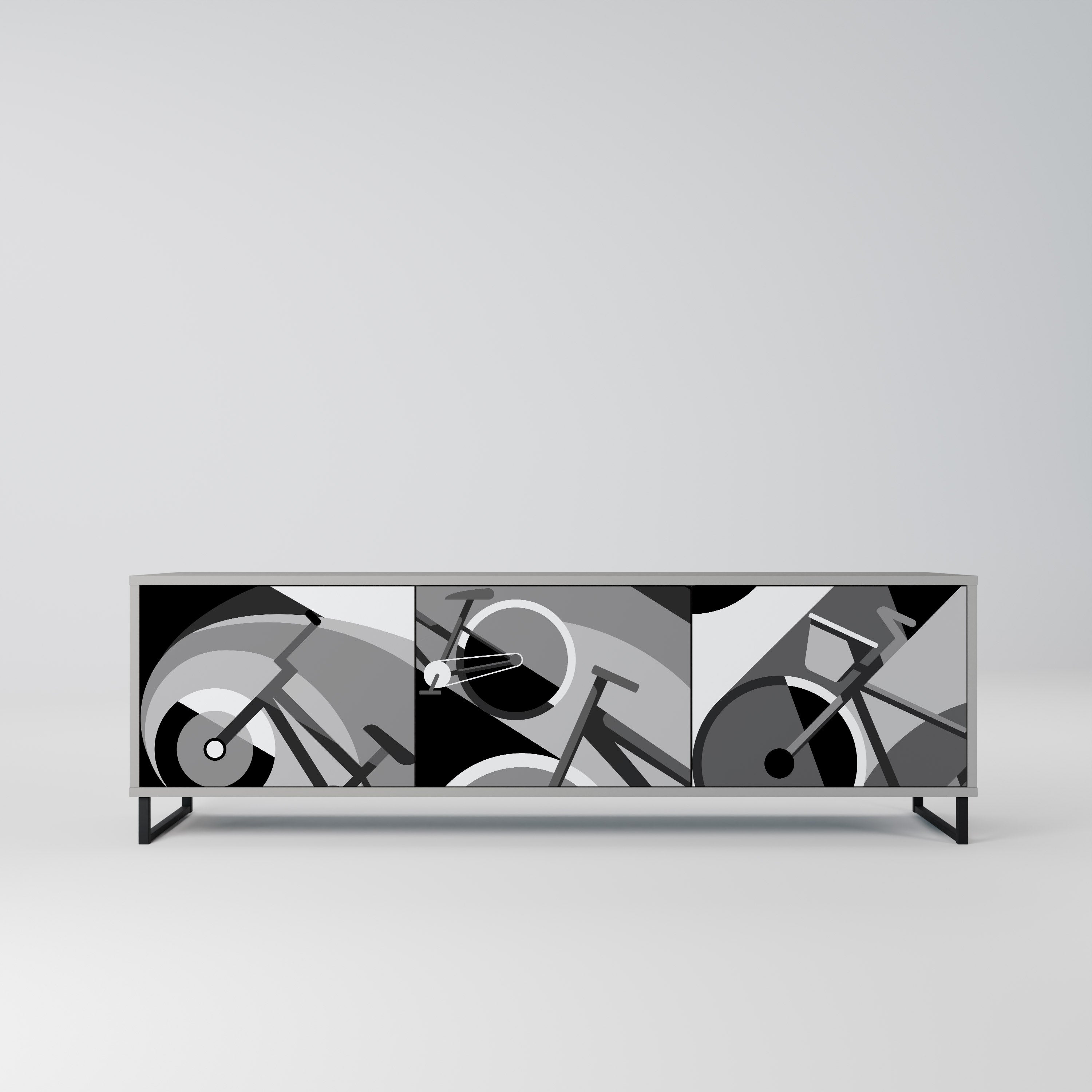 Mueble de TV BIKE DREAMS de 3 puertas con acabado gris Mueble de TV BIKE DREAMS de 3 puertas con acabado gris