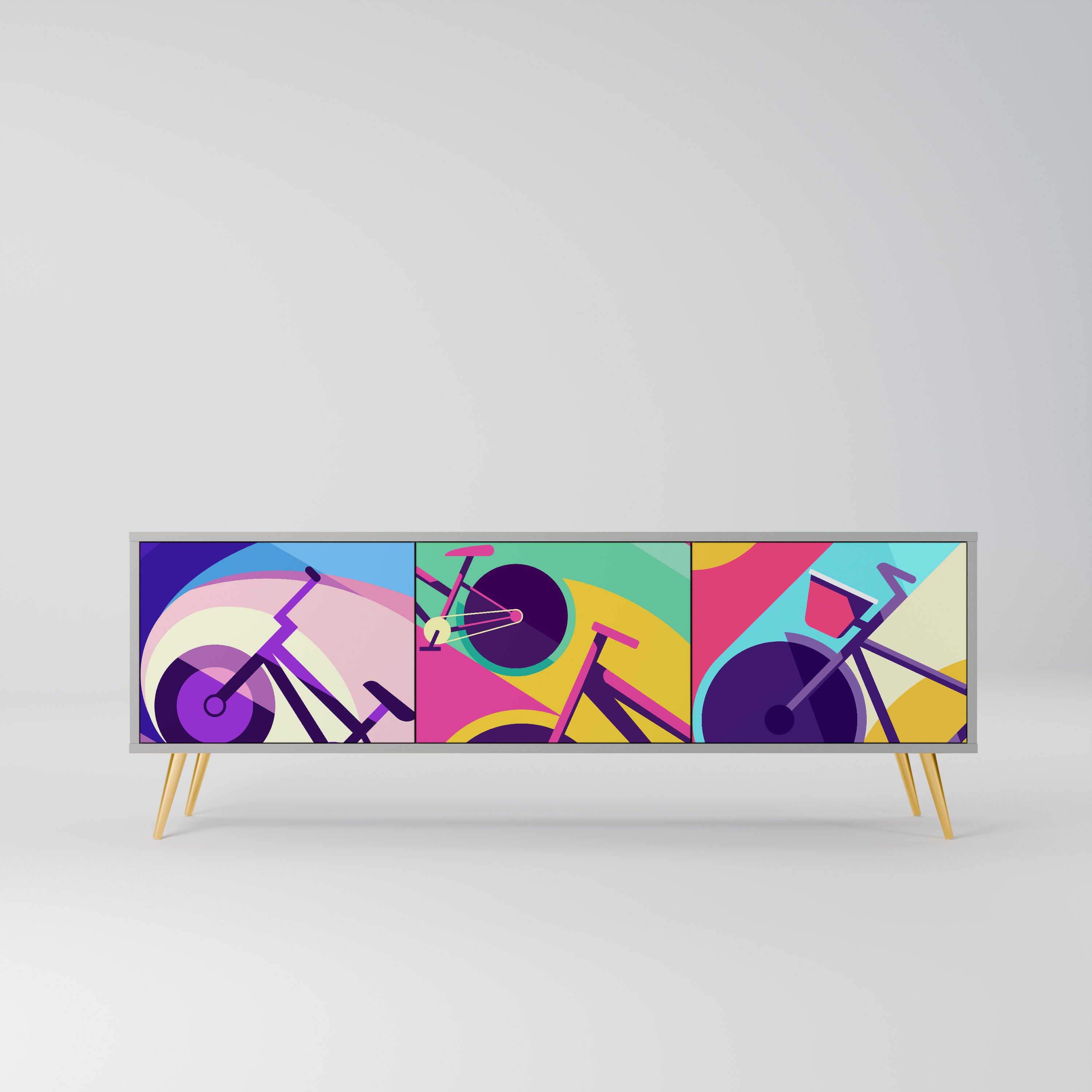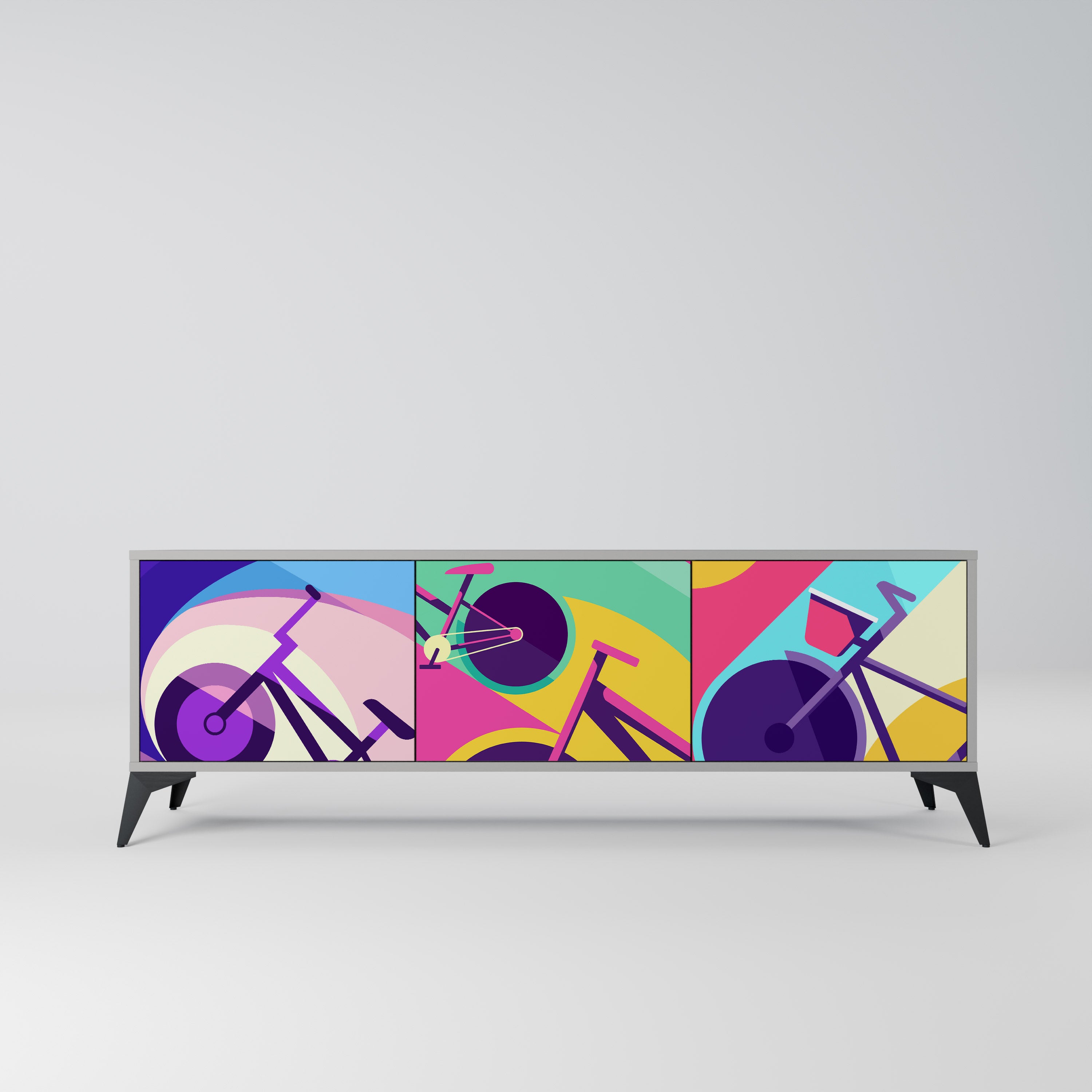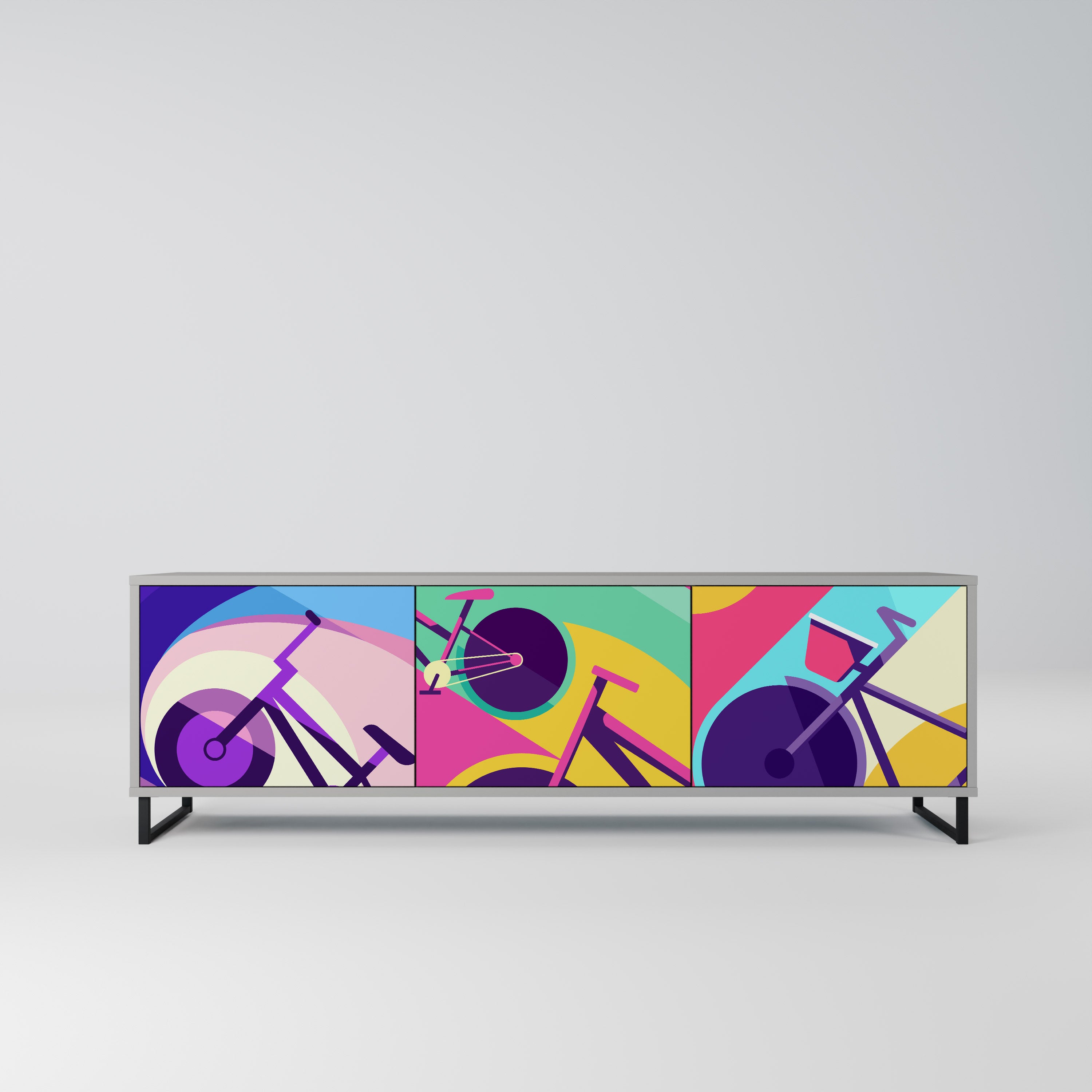 Mueble de TV BIKE DREAMS de 3 puertas con acabado gris Mueble de TV BIKE DREAMS de 3 puertas con acabado gris