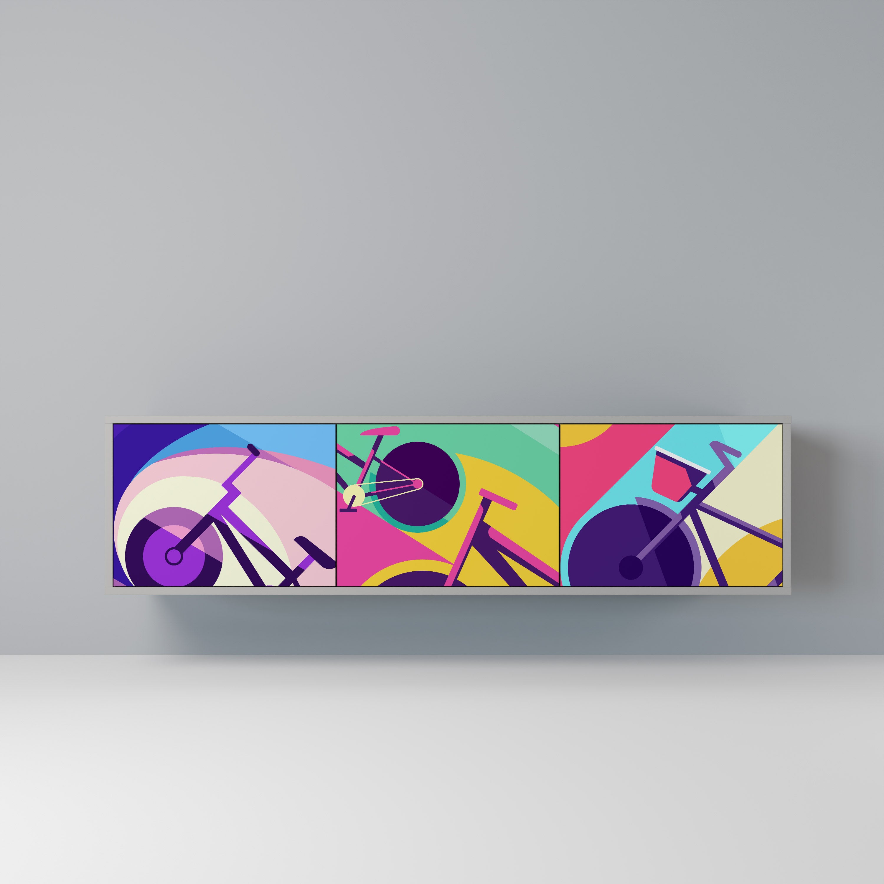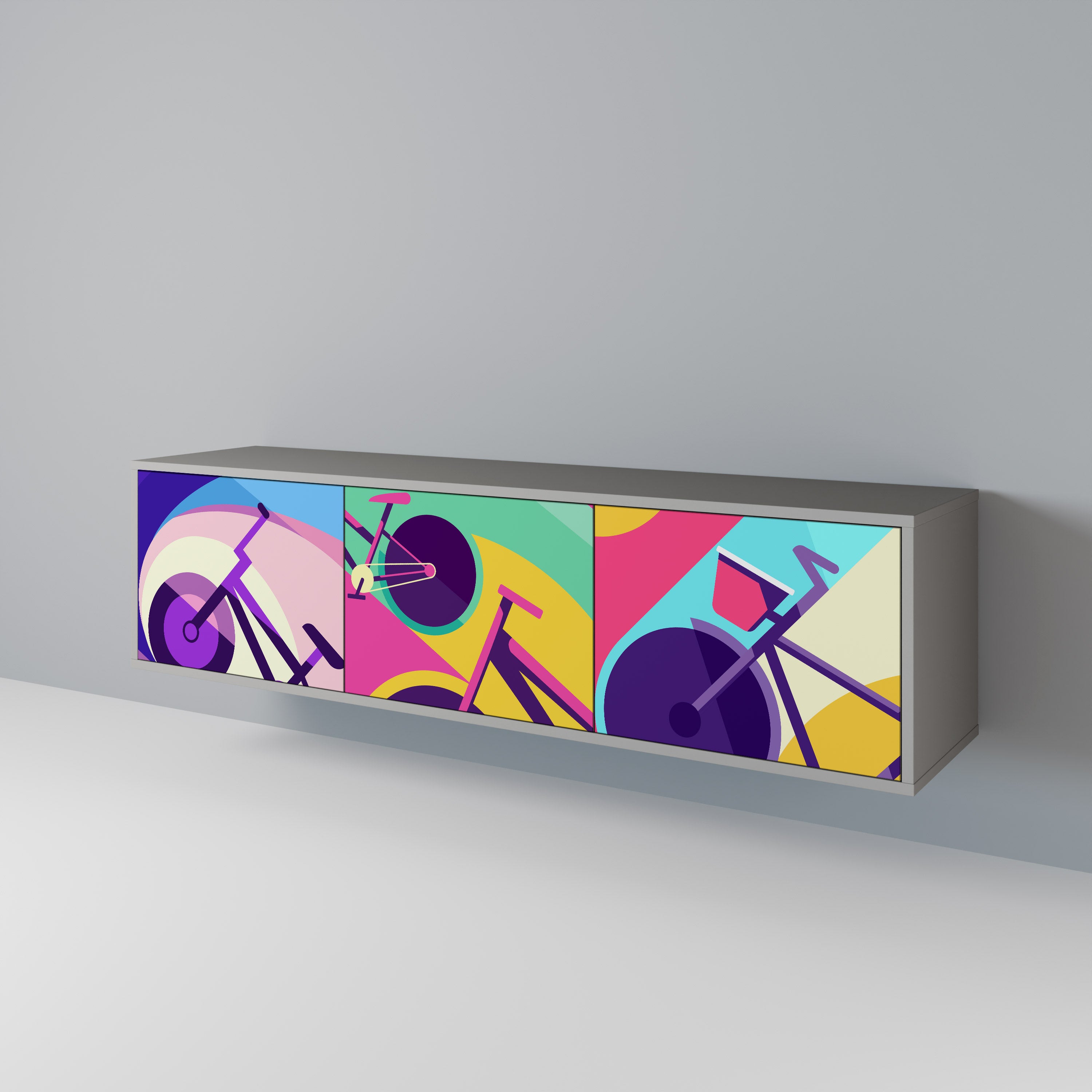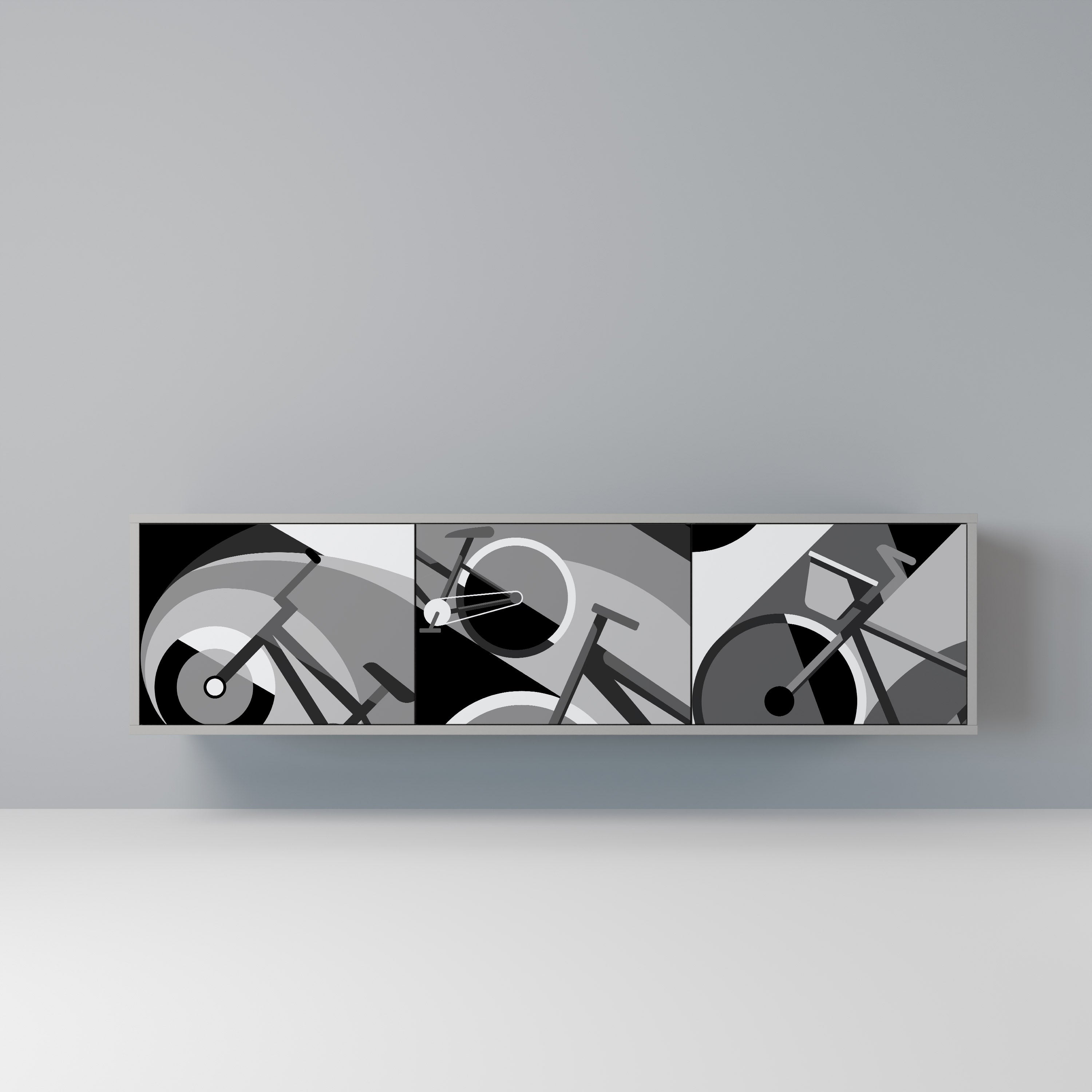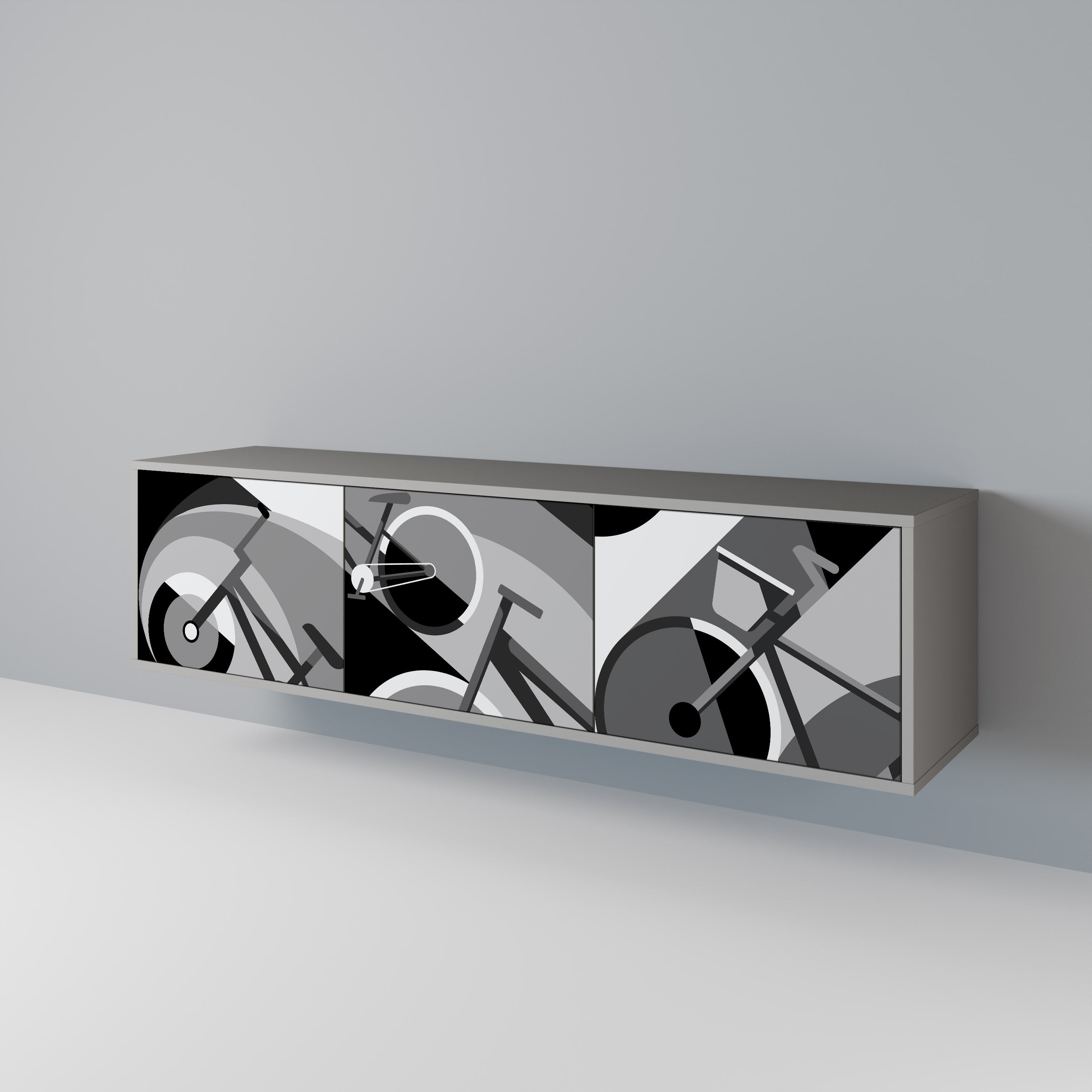 Mueble de TV BIKE DREAMS de 3 puertas con acabado gris Mueble de TV BIKE DREAMS de 3 puertas con acabado gris