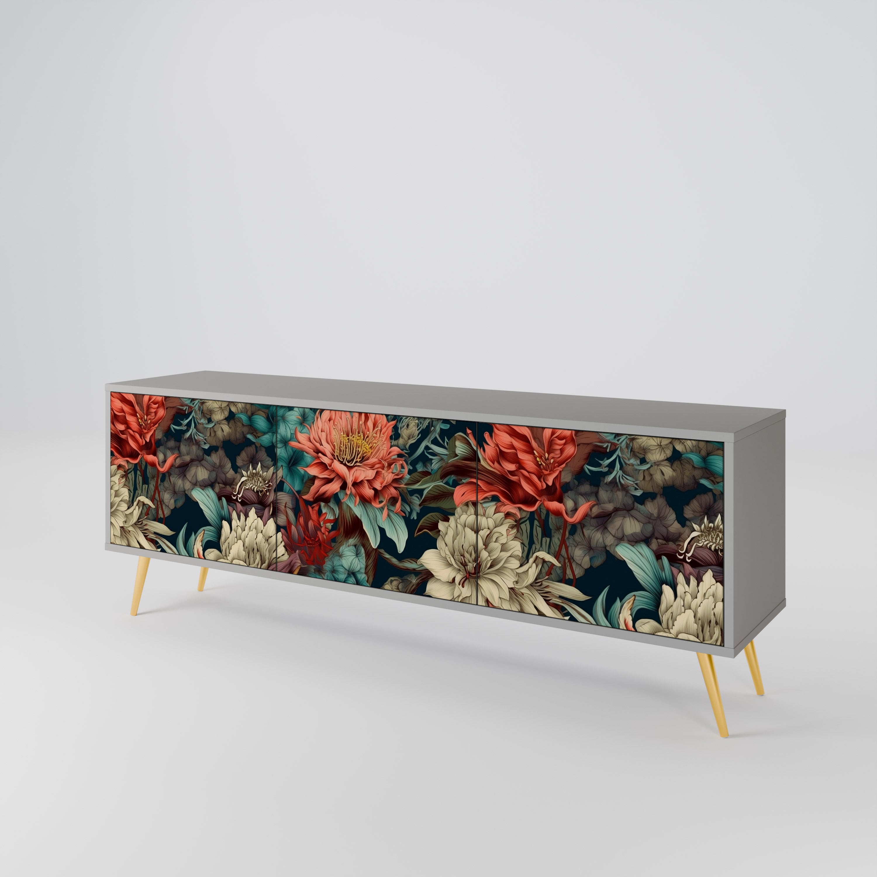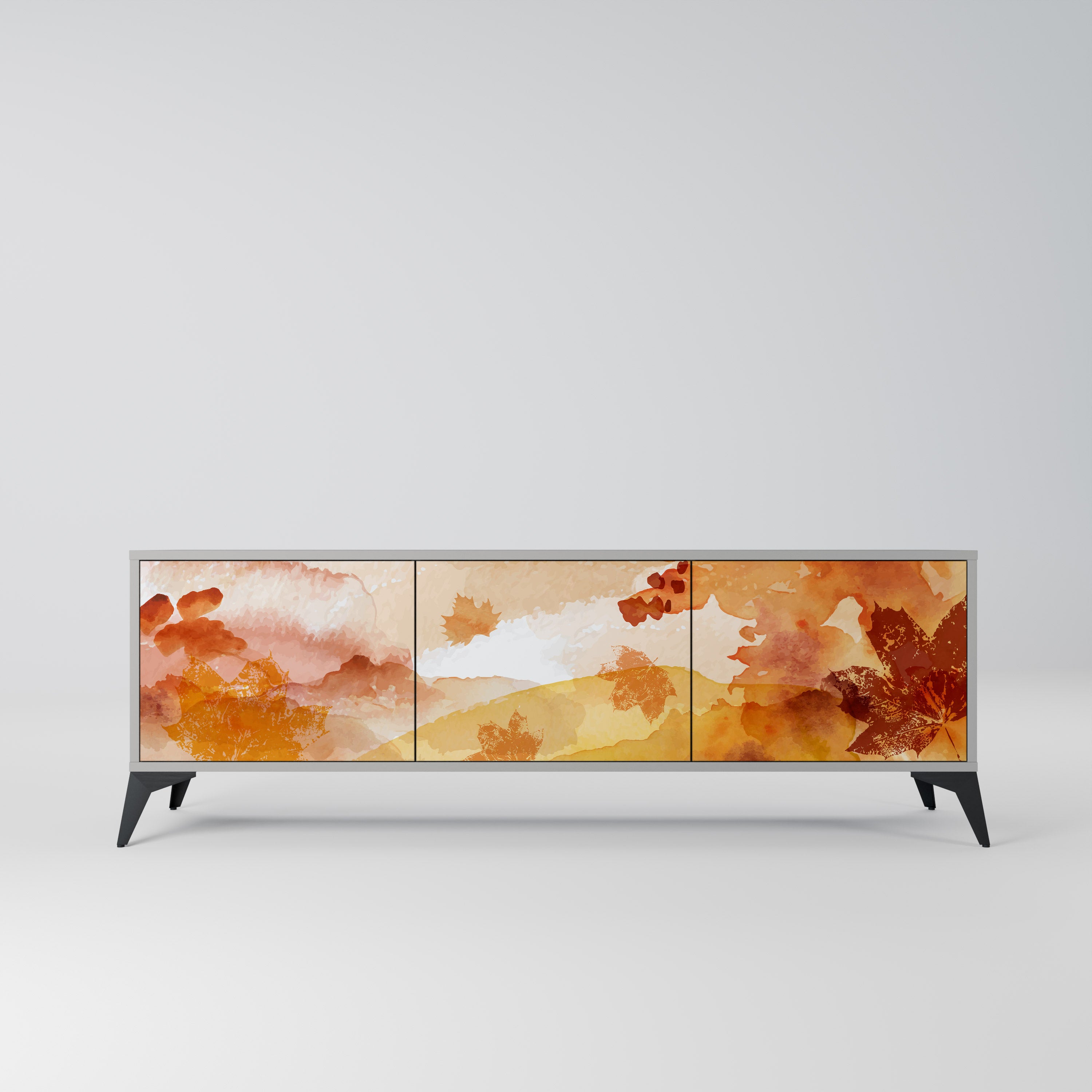 Mueble de TV de 3 puertas TRACES OF AUTUMN en acabado gris Mueble de TV de 3 puertas TRACES OF AUTUMN en acabado gris