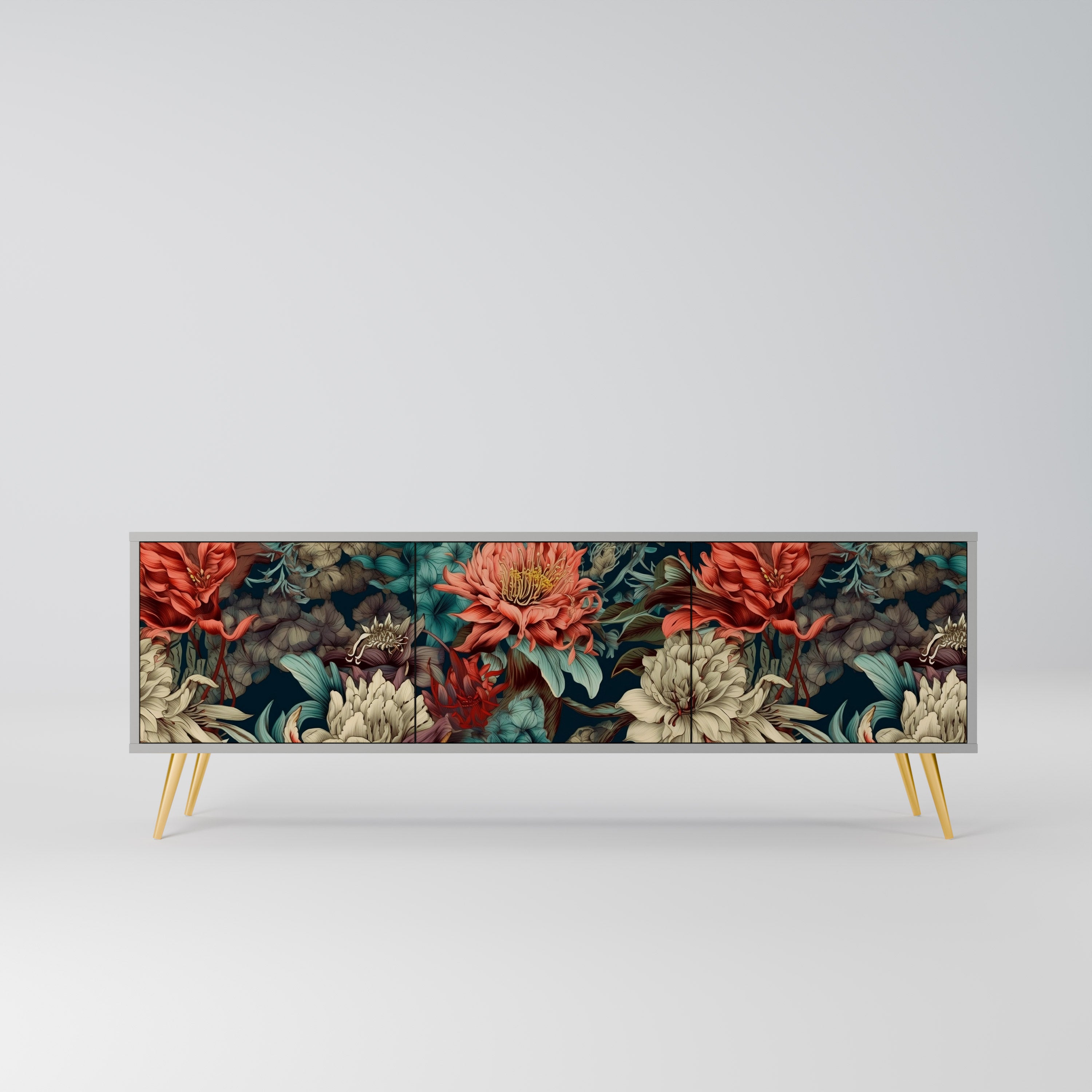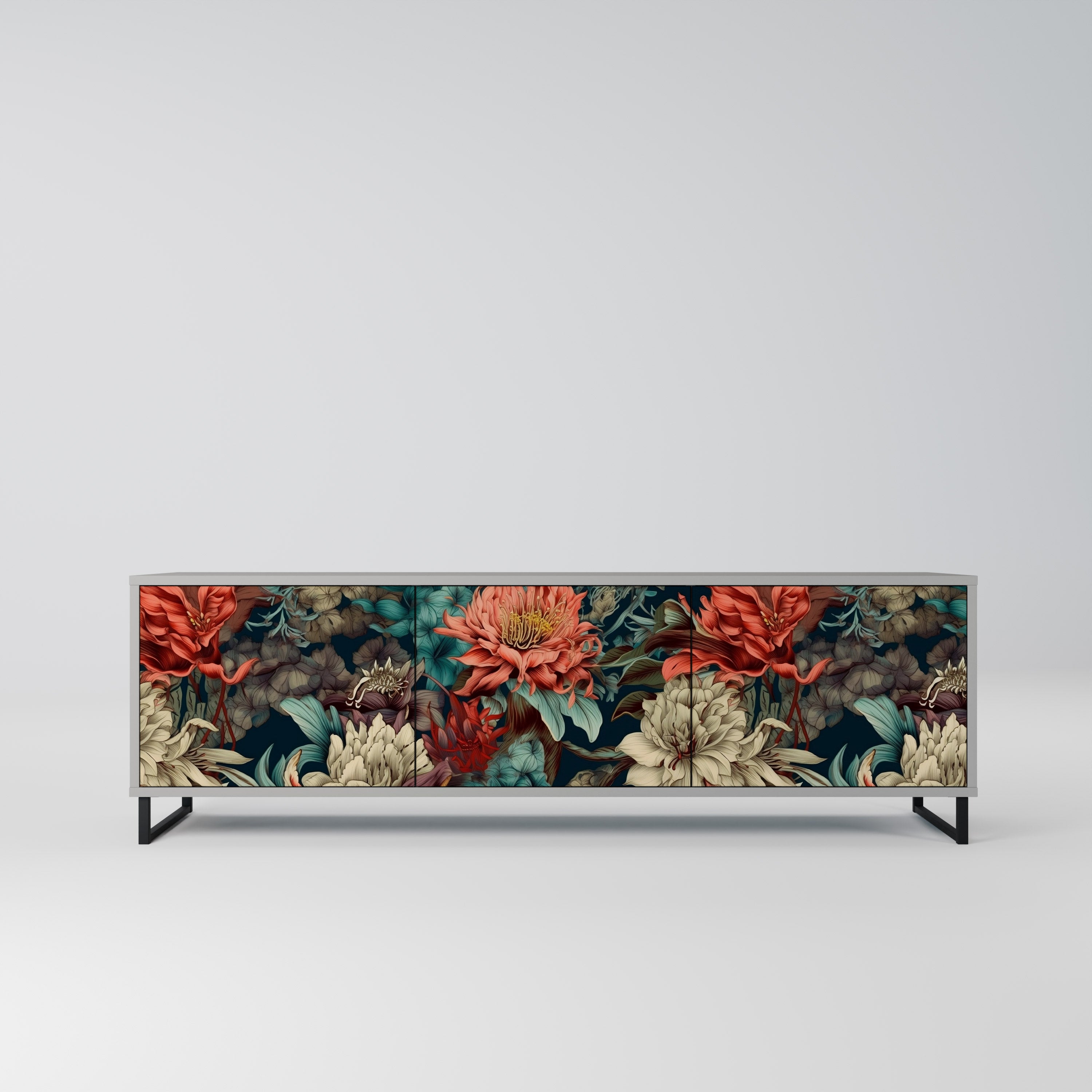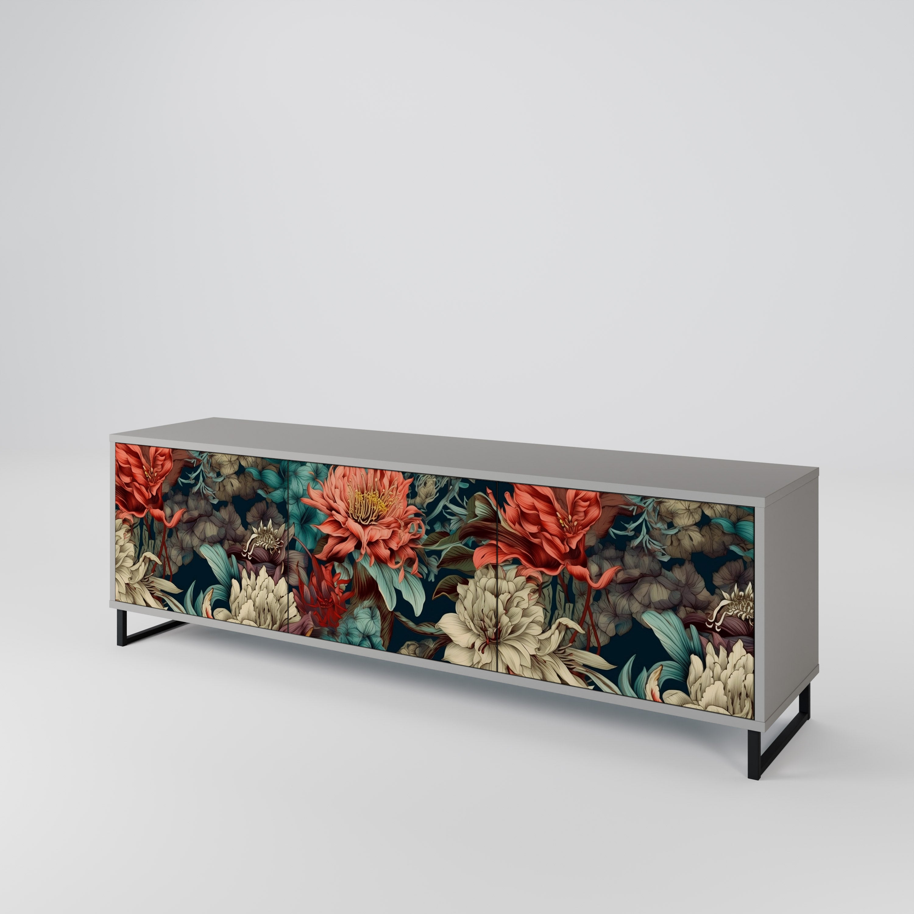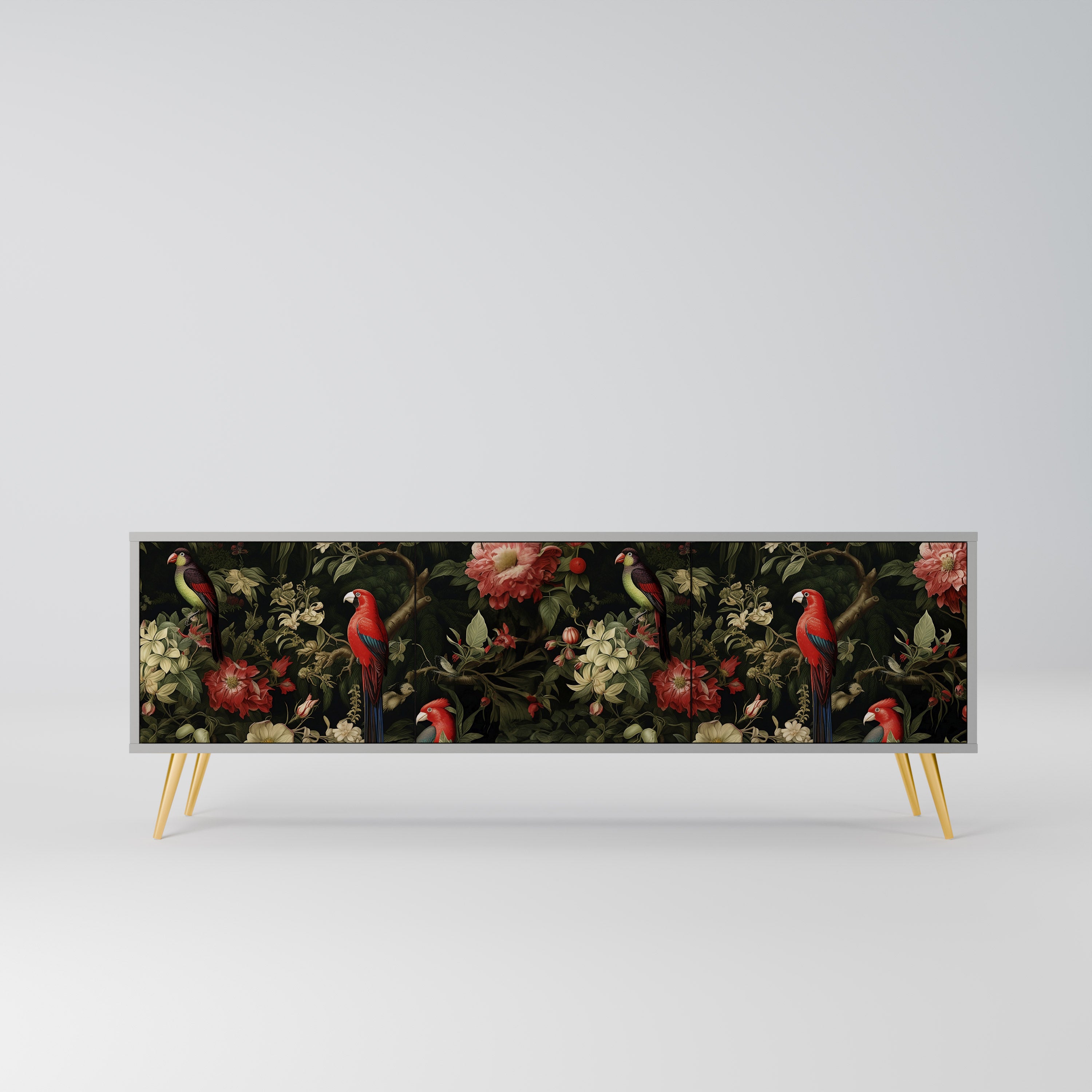 COMPOSICIÓN TROPICAL Mueble de TV de 3 puertas en acabado gris COMPOSICIÓN TROPICAL Mueble de TV de 3 puertas en acabado gris