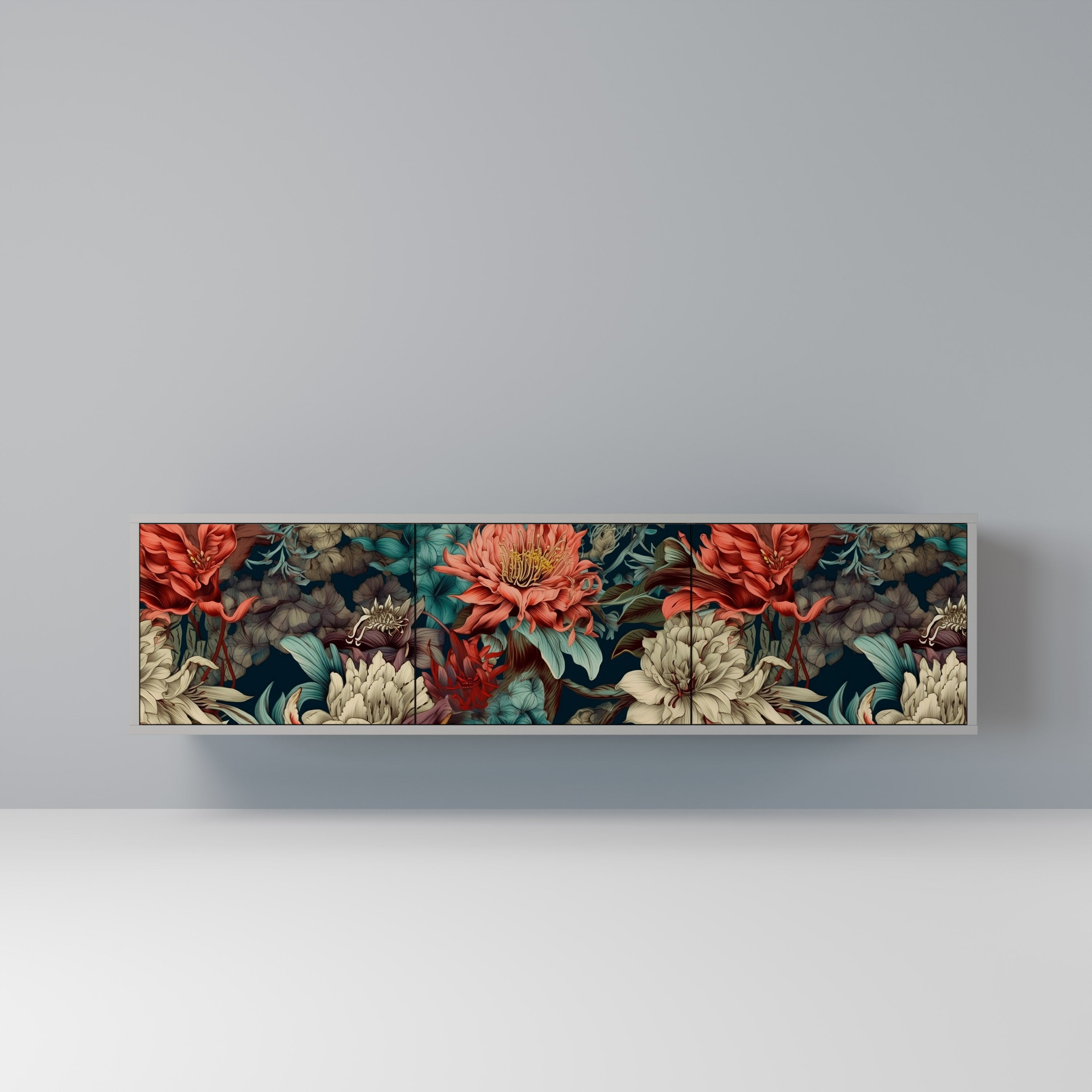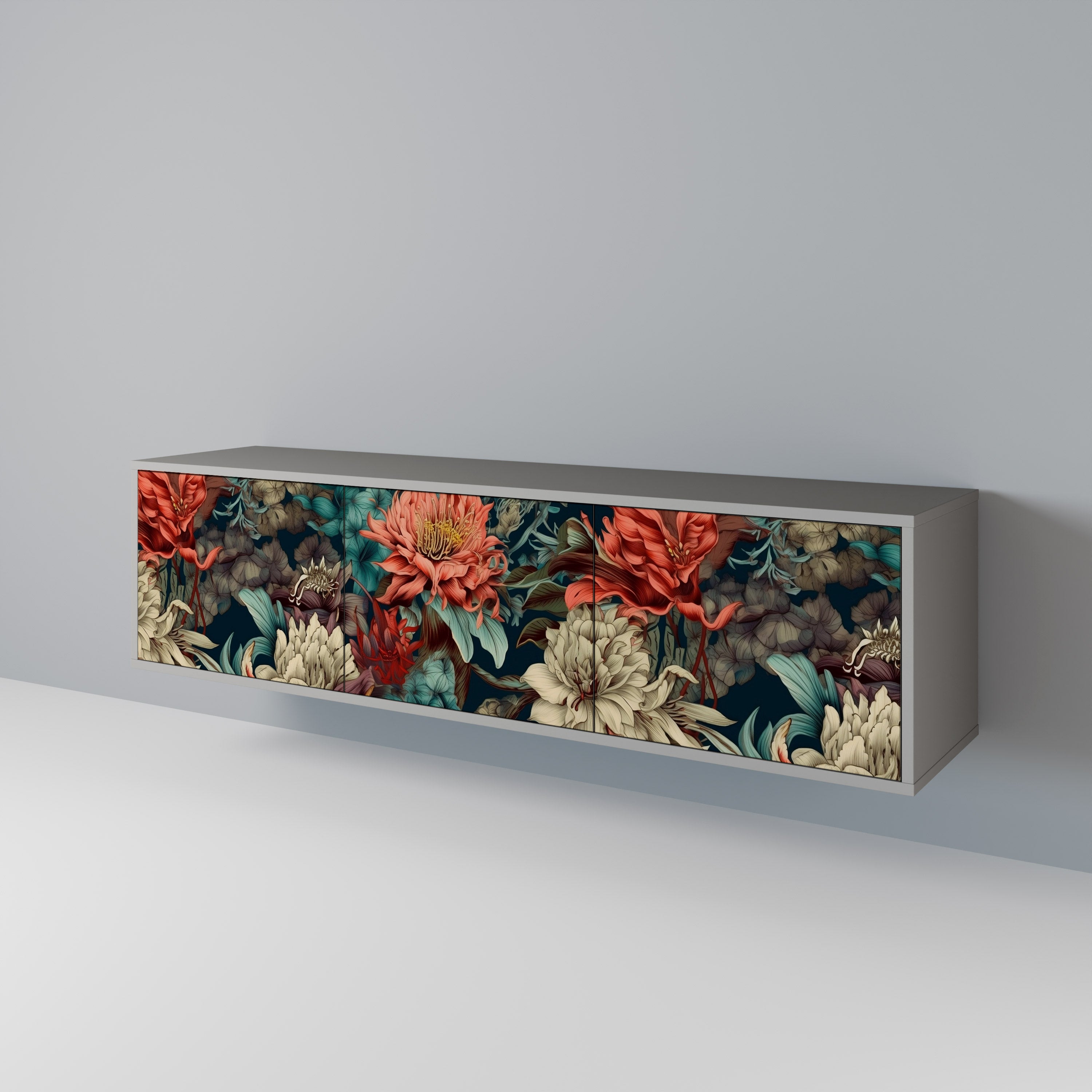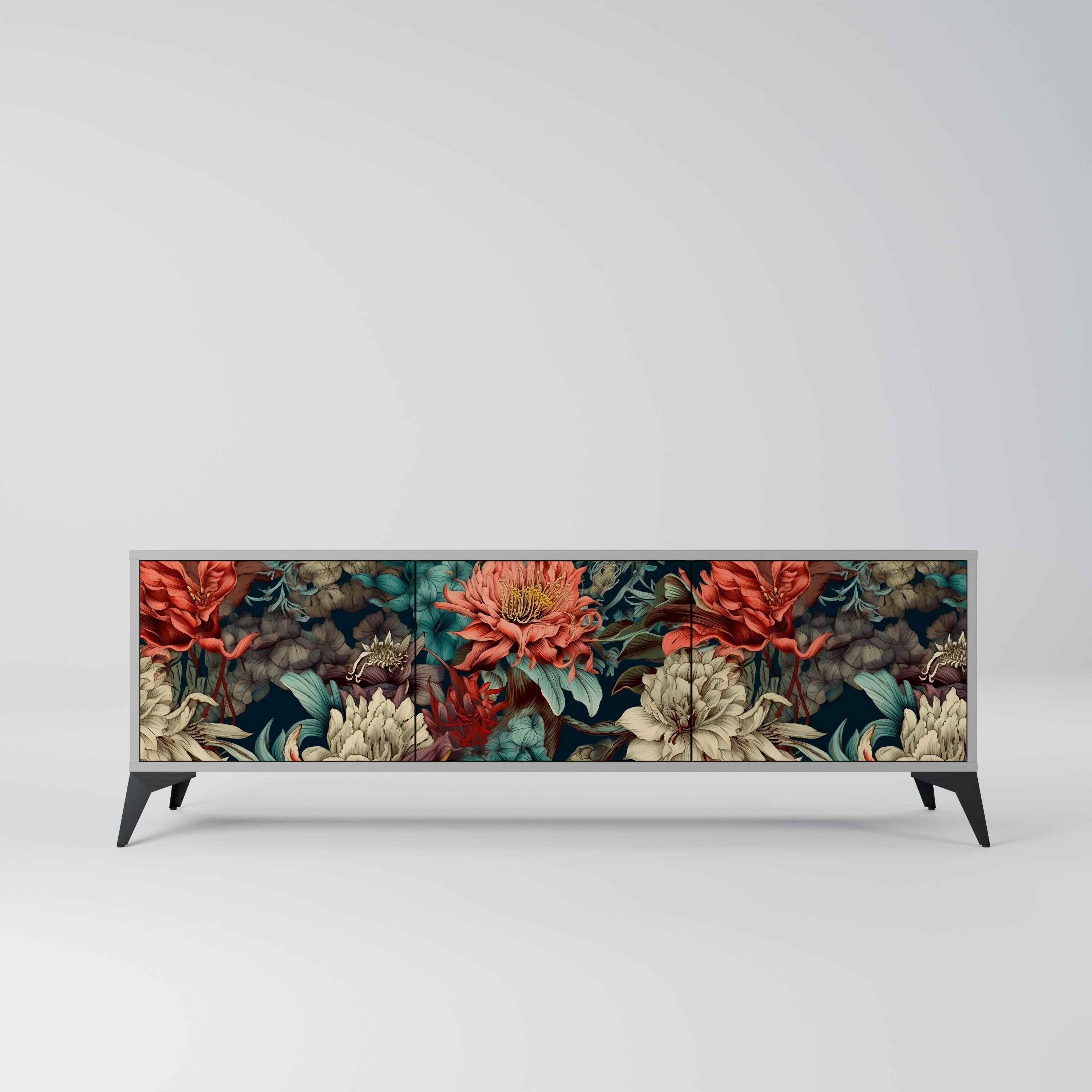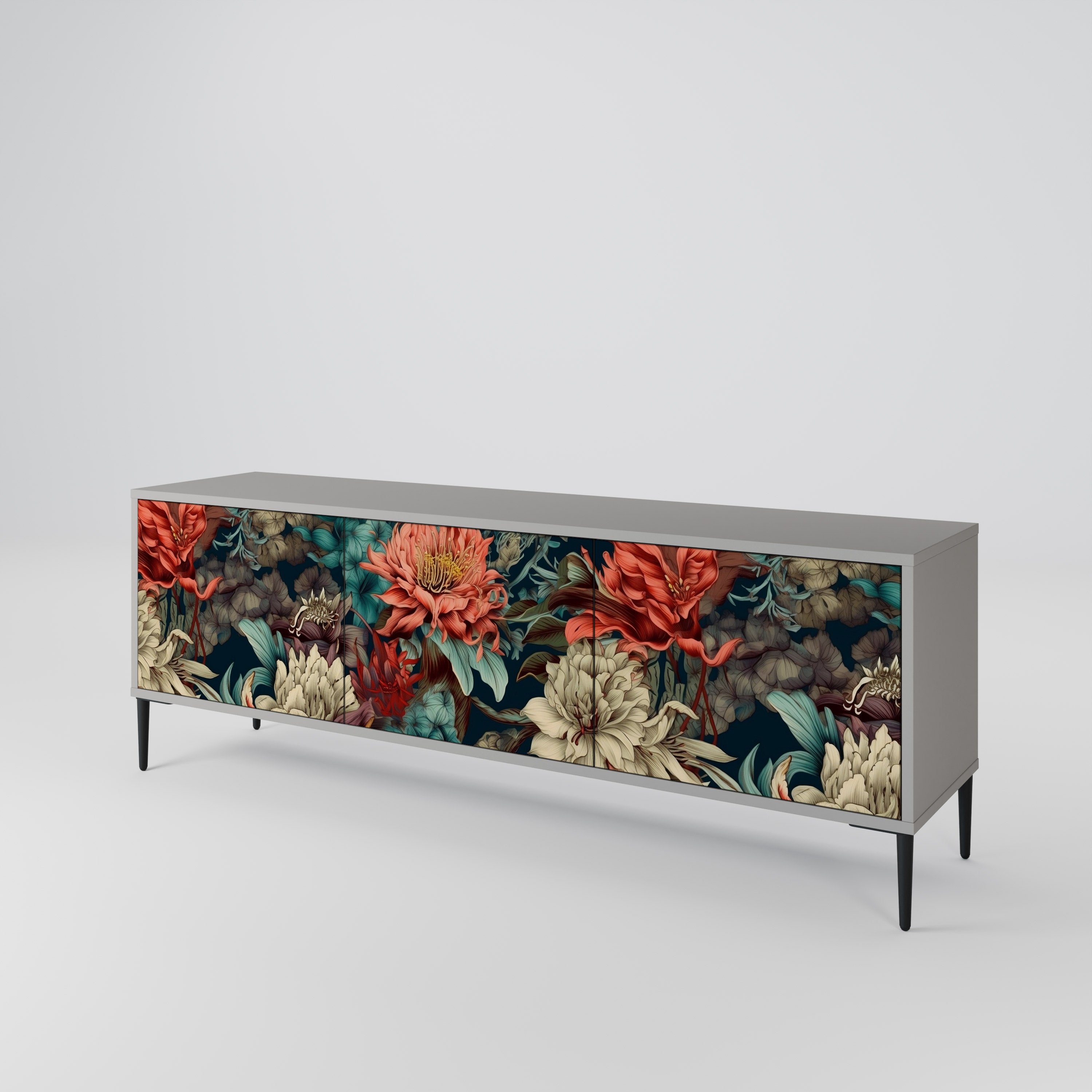 COMPOSICIÓN TROPICAL Mueble de TV de 3 puertas en acabado gris COMPOSICIÓN TROPICAL Mueble de TV de 3 puertas en acabado gris