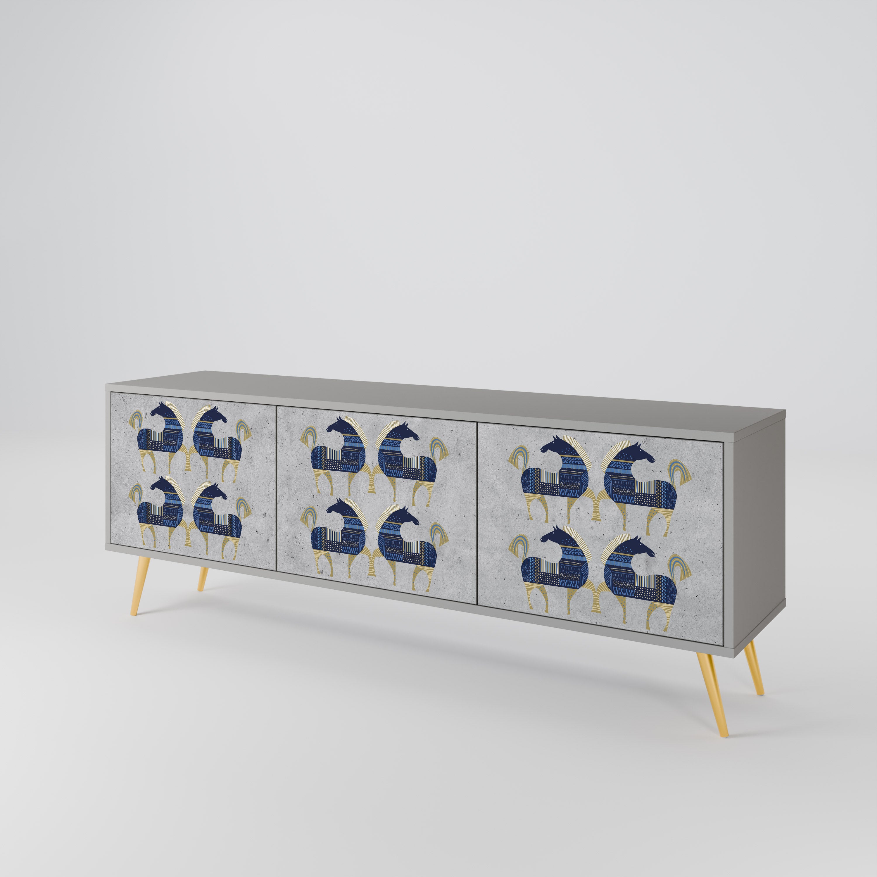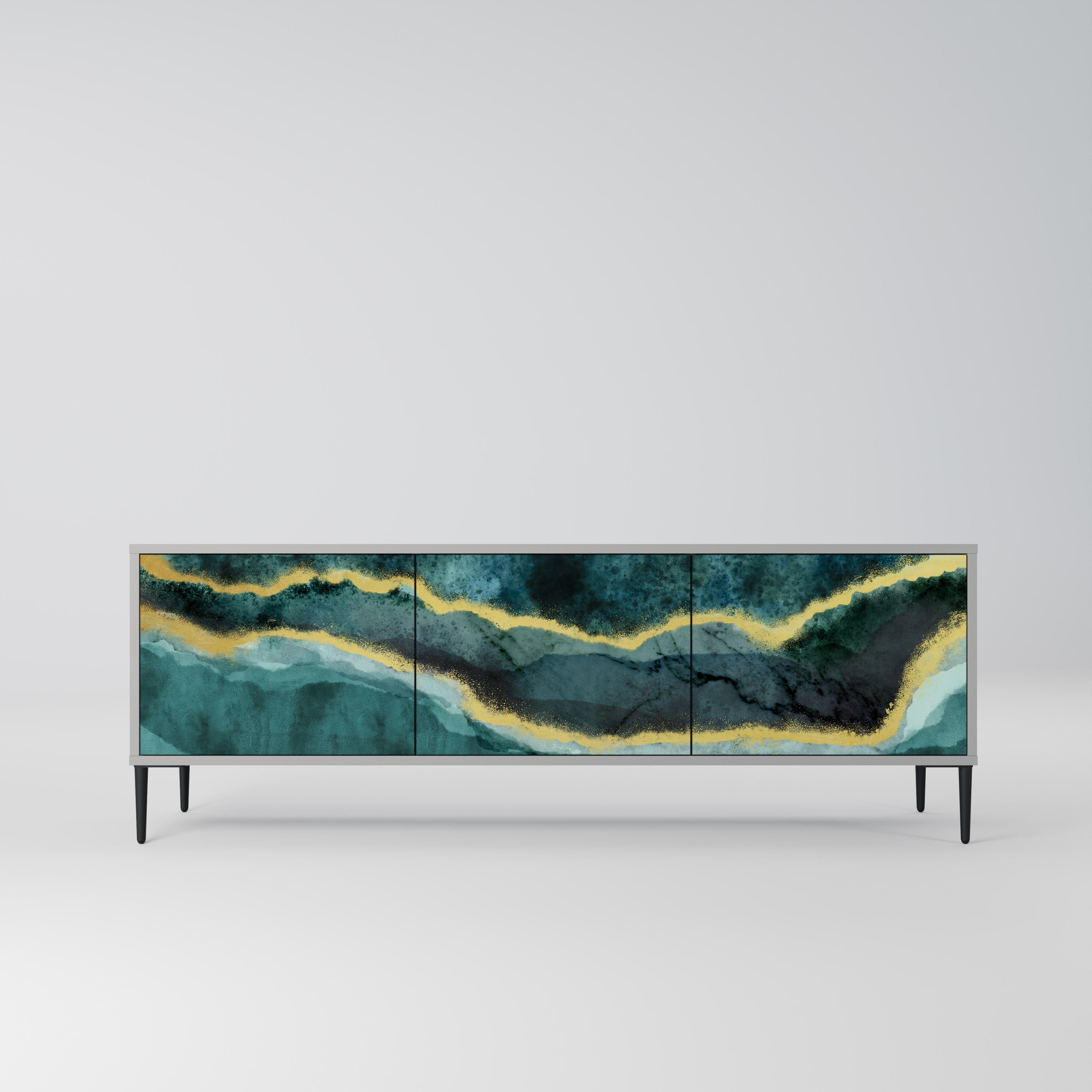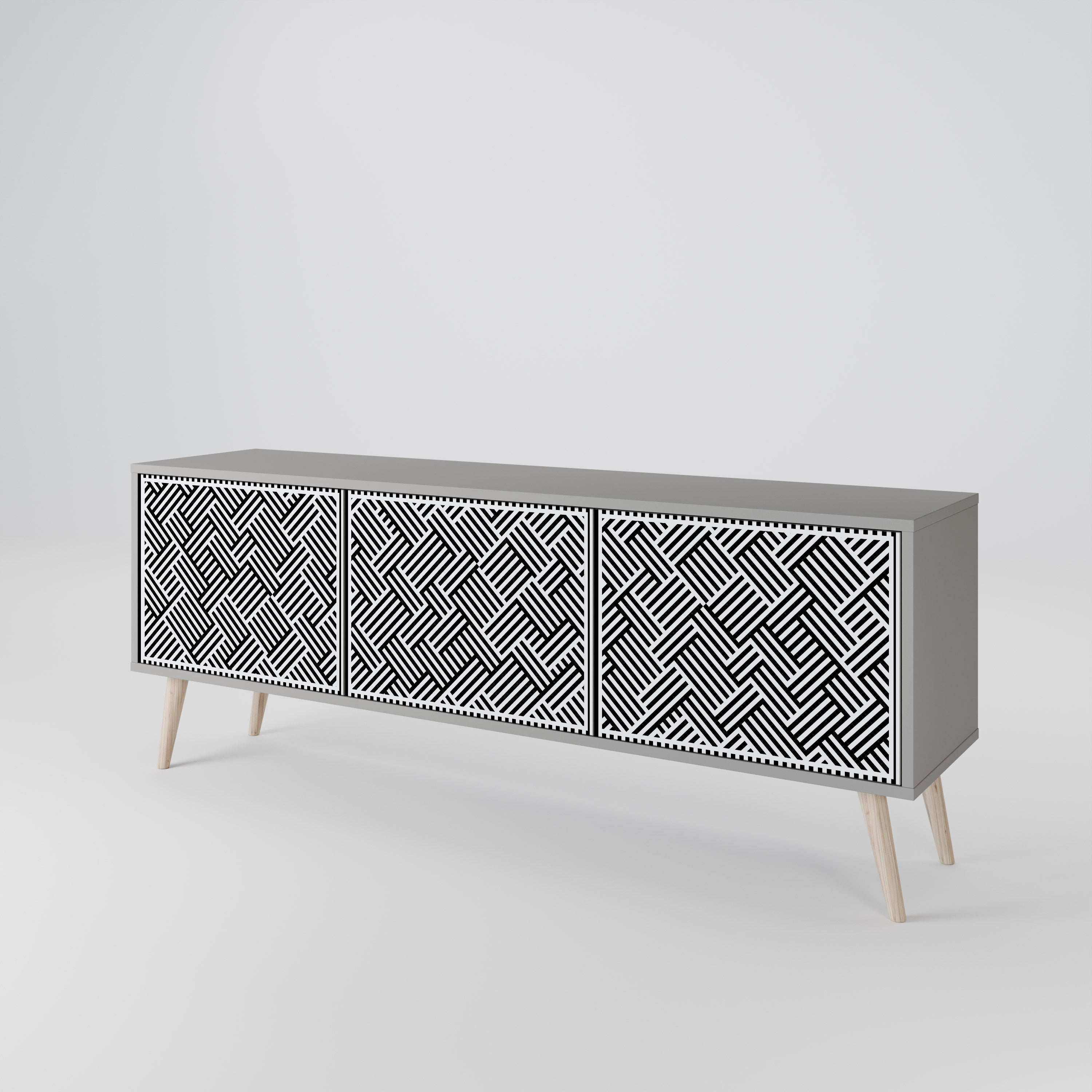 Mueble de TV de 3 puertas ARTISTIC GEOMETRY en acabado gris Mueble de TV de 3 puertas ARTISTIC GEOMETRY en acabado gris