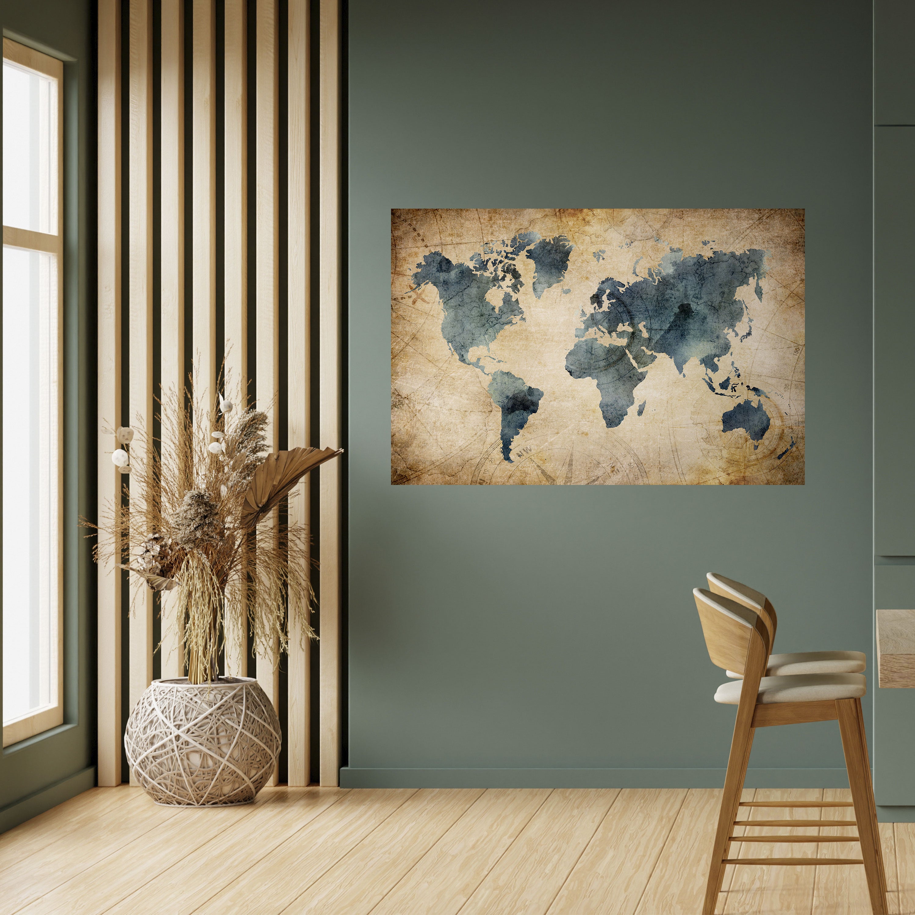 Póster horizontal autoadhesivo con mapa azul dorado Póster horizontal autoadhesivo con mapa azul dorado