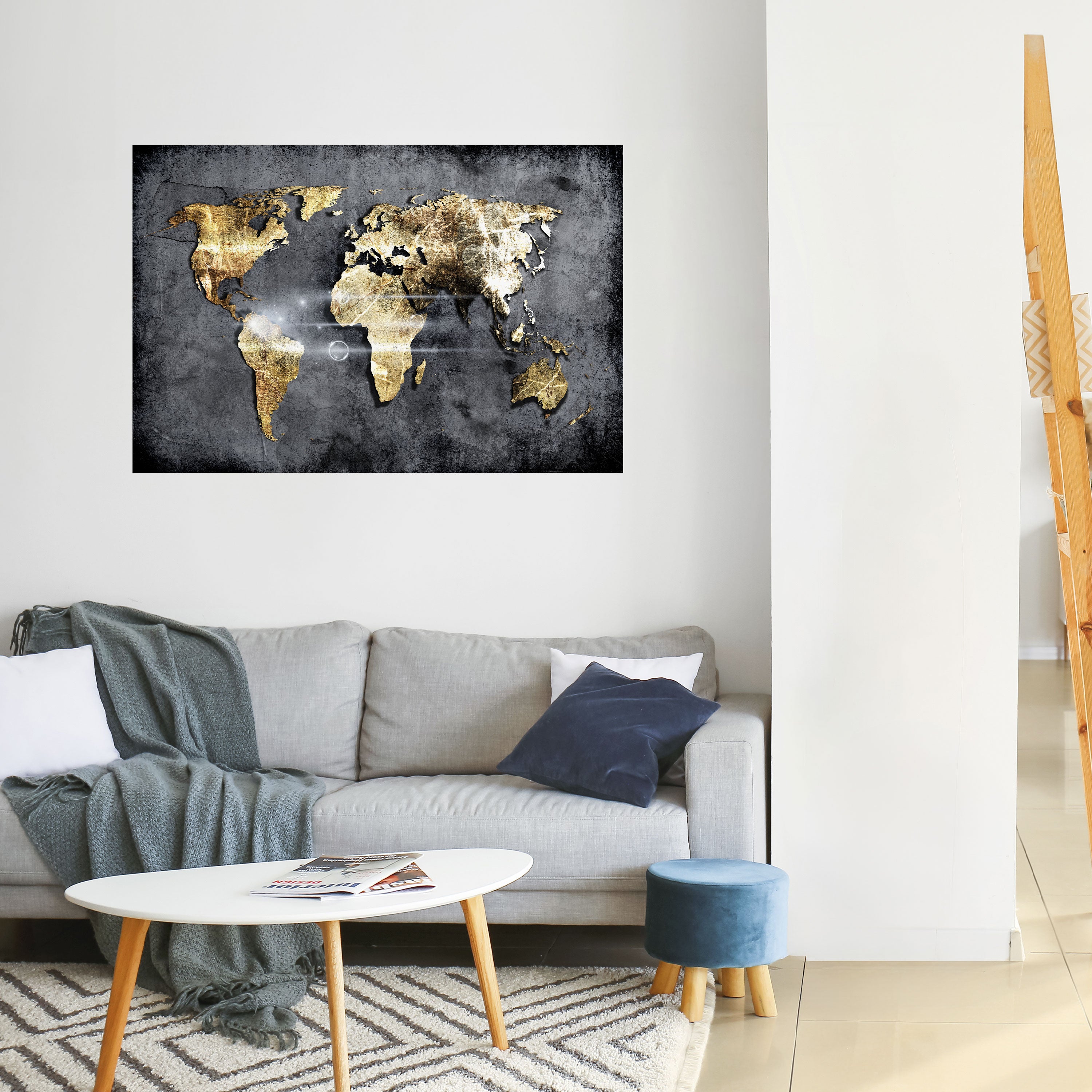 Póster horizontal autoadhesivo con mapa de visión del mundo metálico Póster horizontal autoadhesivo con mapa de visión del mundo metálico