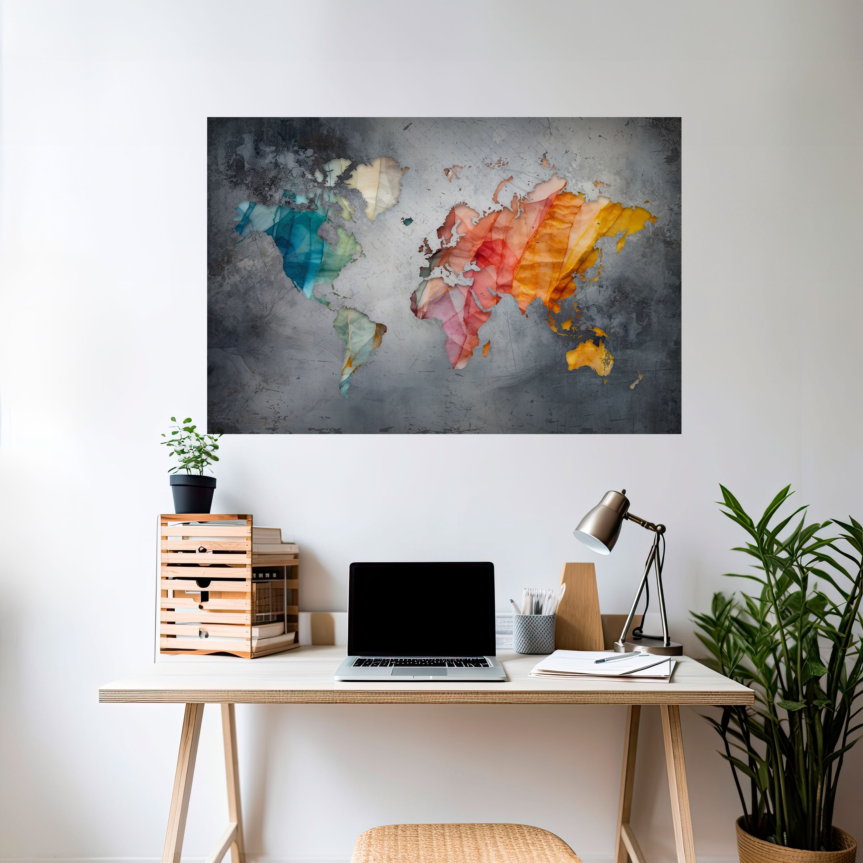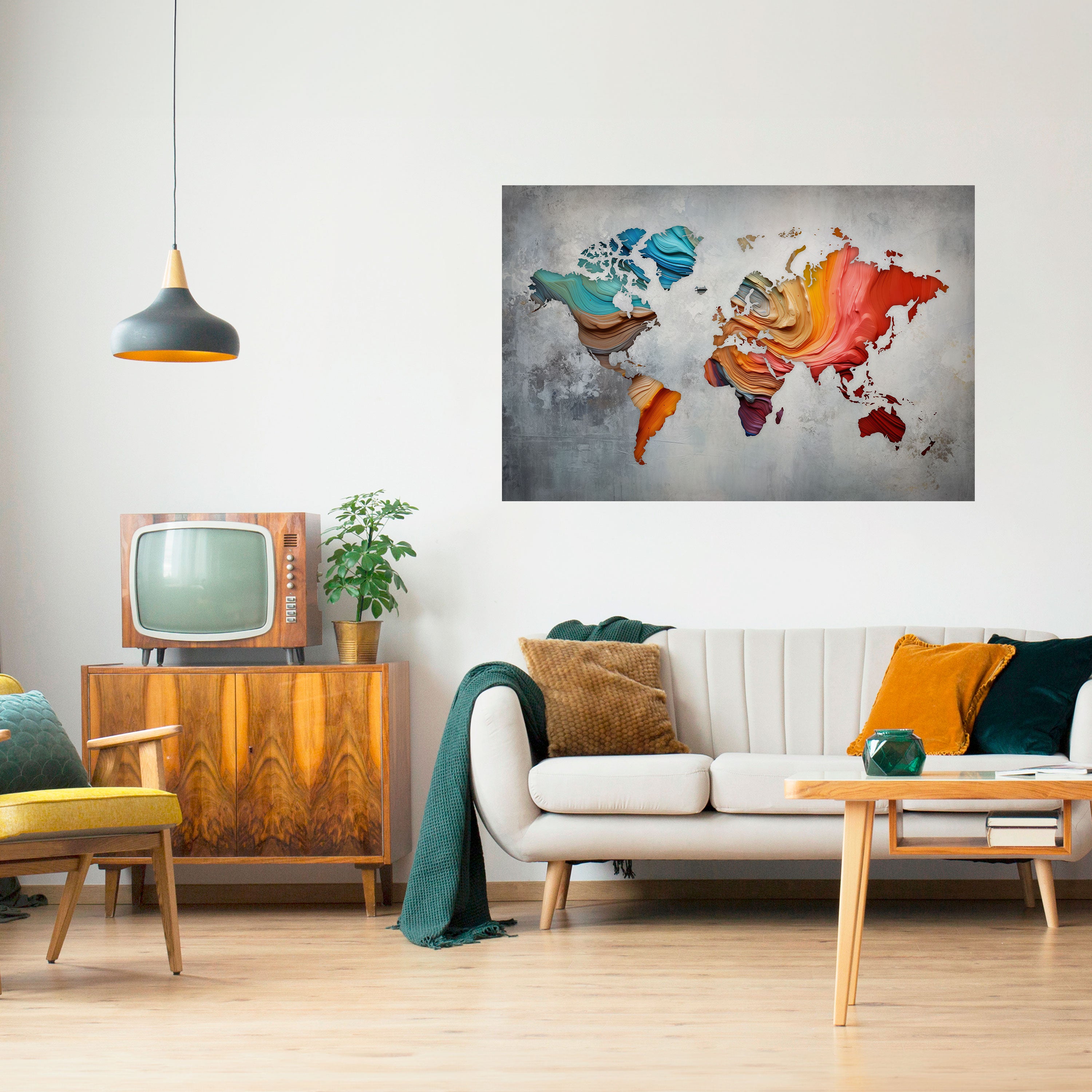 Póster horizontal autoadhesivo con mapa del mundo colorido Póster horizontal autoadhesivo con mapa del mundo colorido