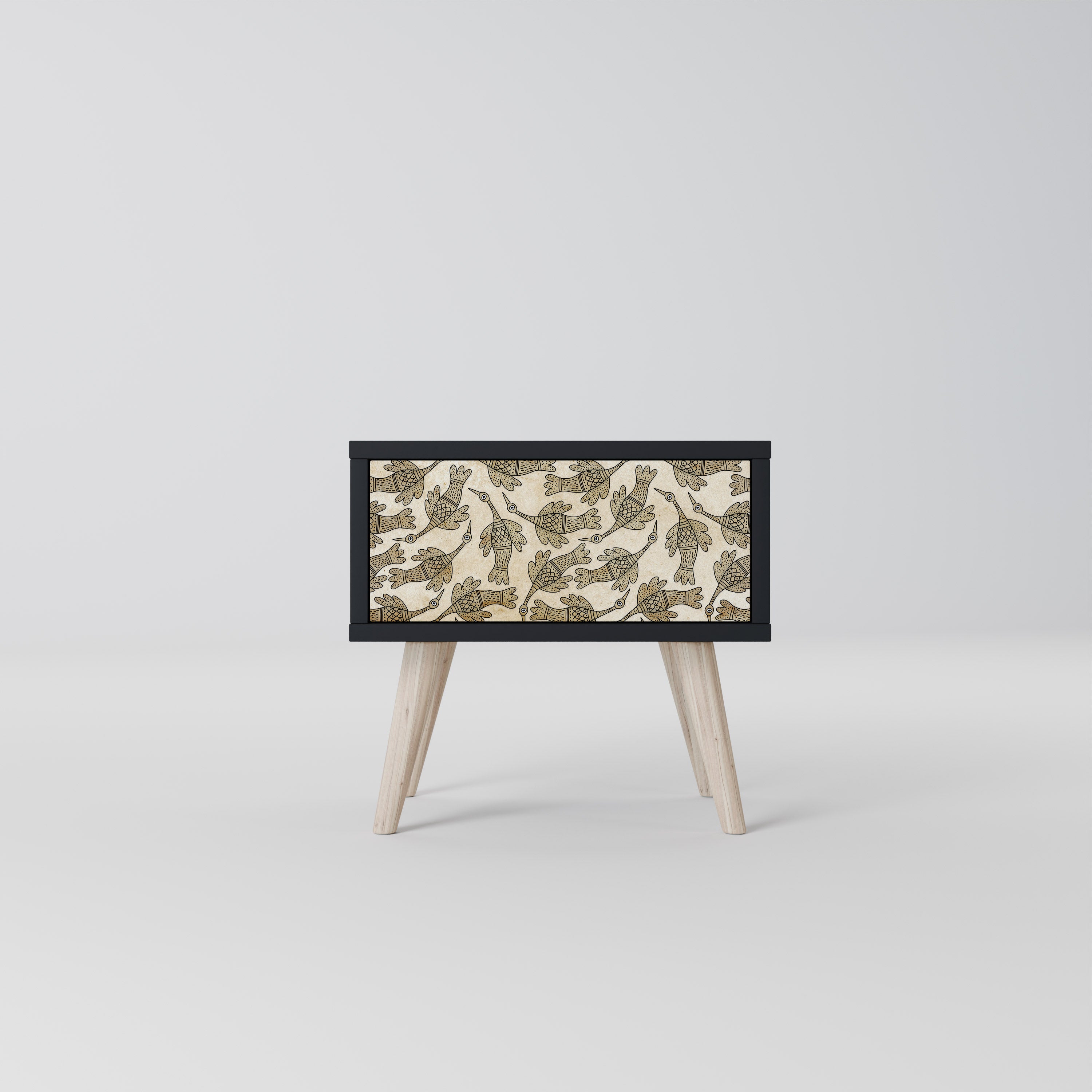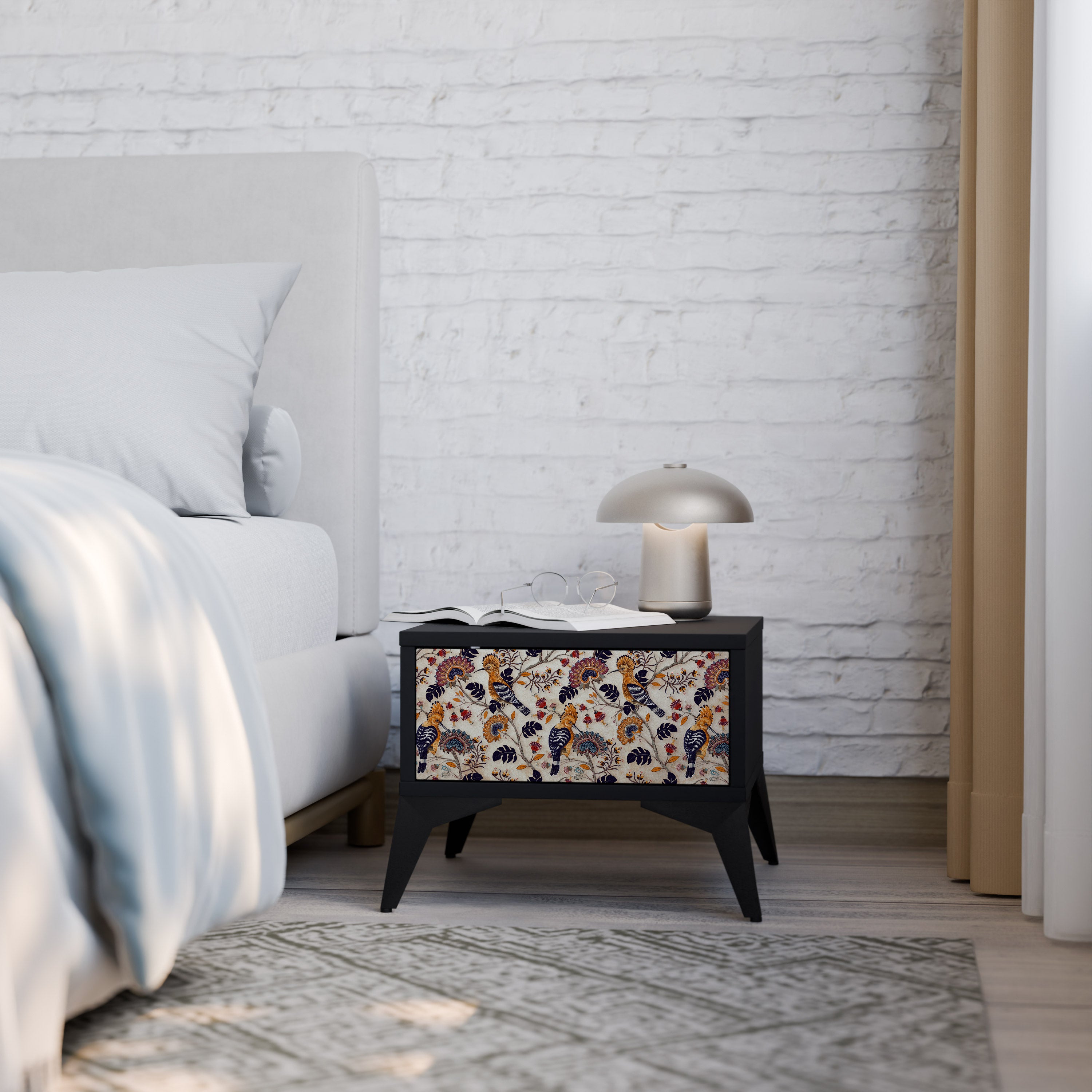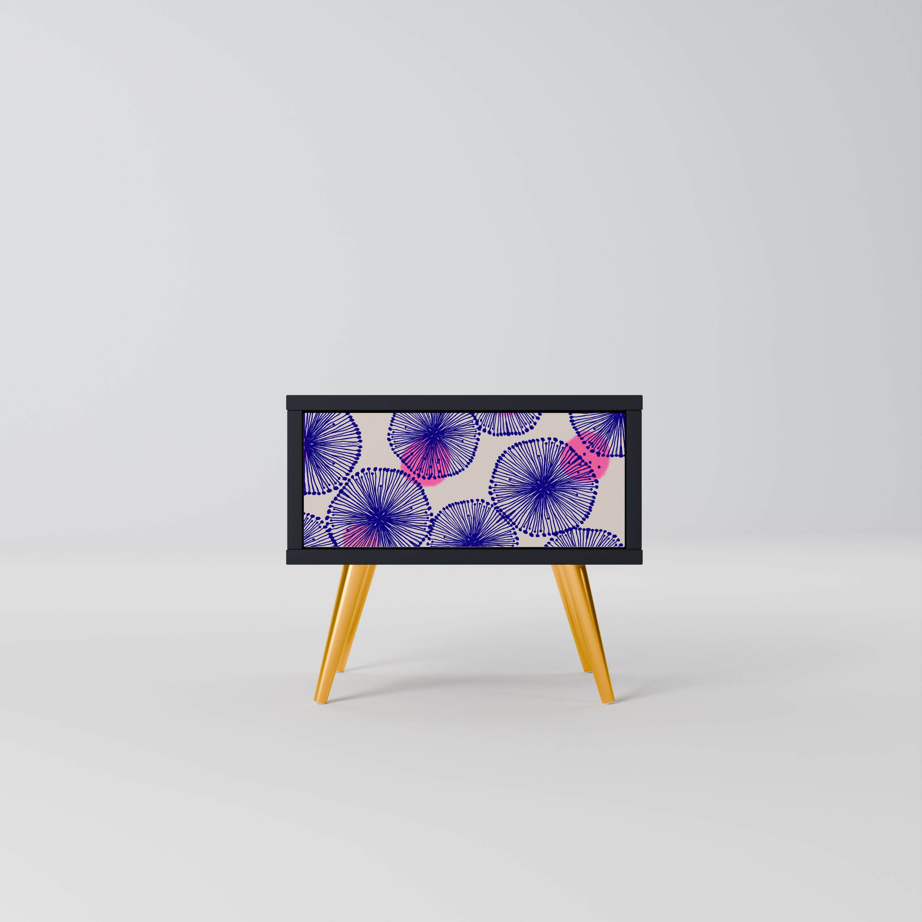 FLOWERS ON NAVY BLUE Nightstand in Black Finish FLOWERS ON NAVY BLUE Nightstand in Black Finish