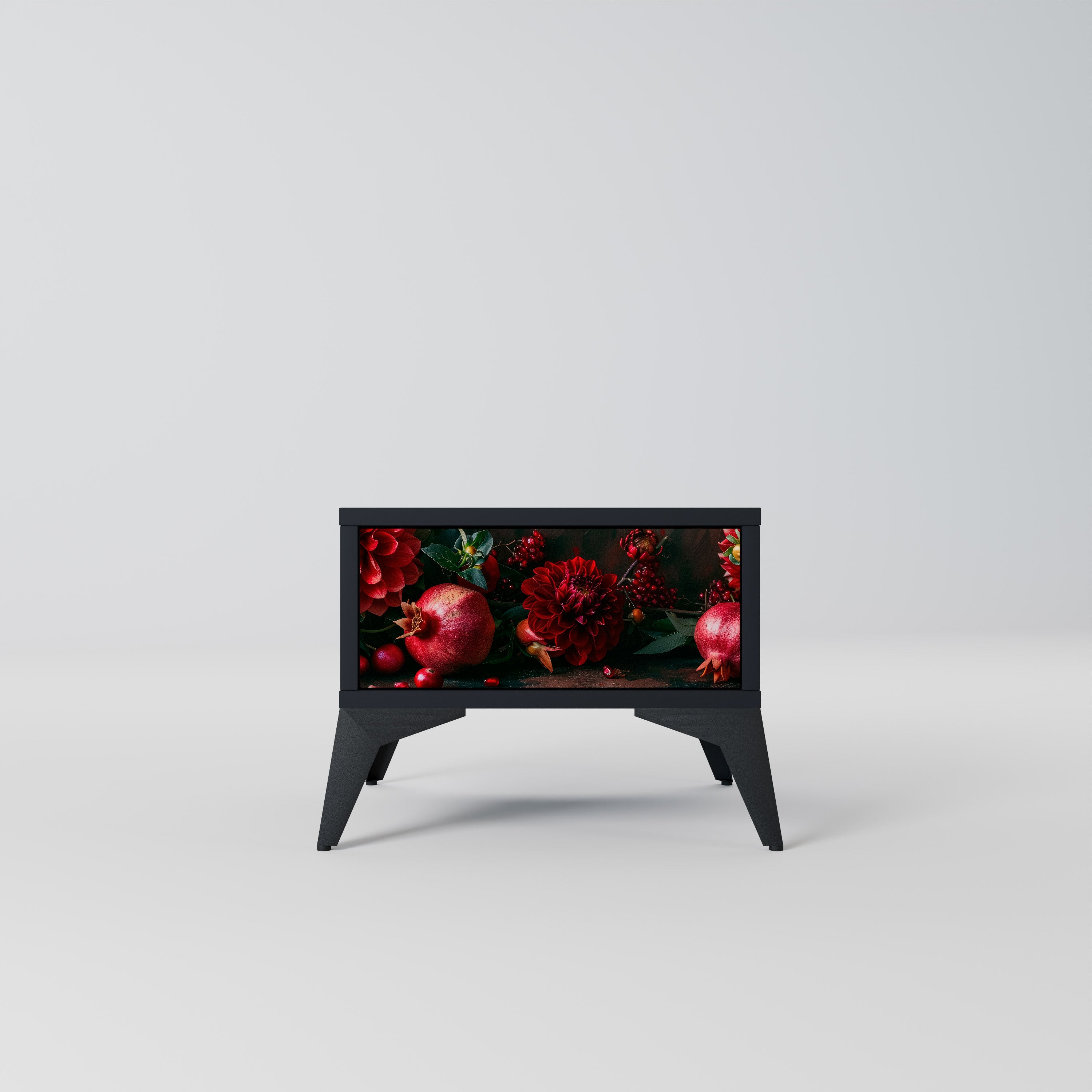 DAHLIAS AND POMEGRANATES Nightstand in Black Finish DAHLIAS AND POMEGRANATES Nightstand in Black Finish
