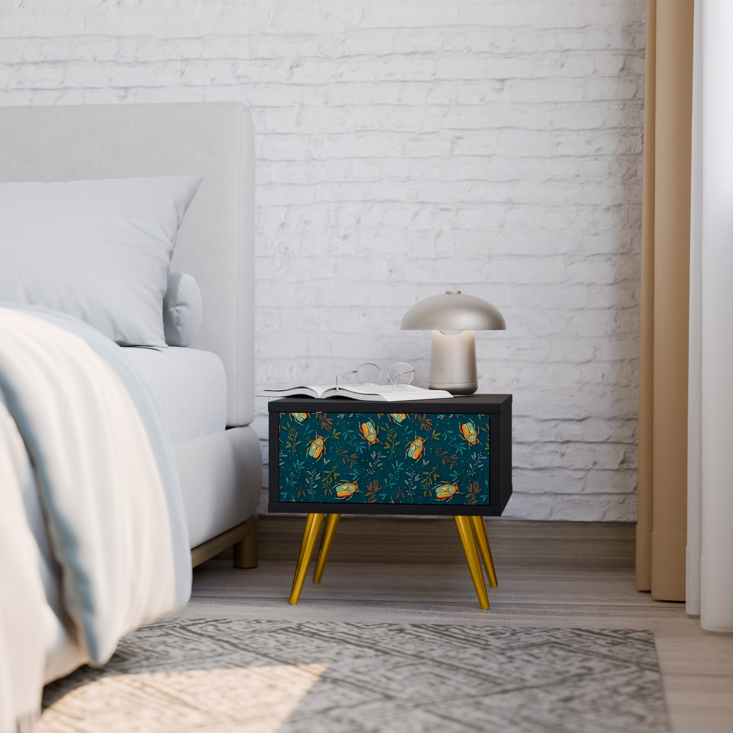 AUTUMN INSECTS Nightstand in Black Finish