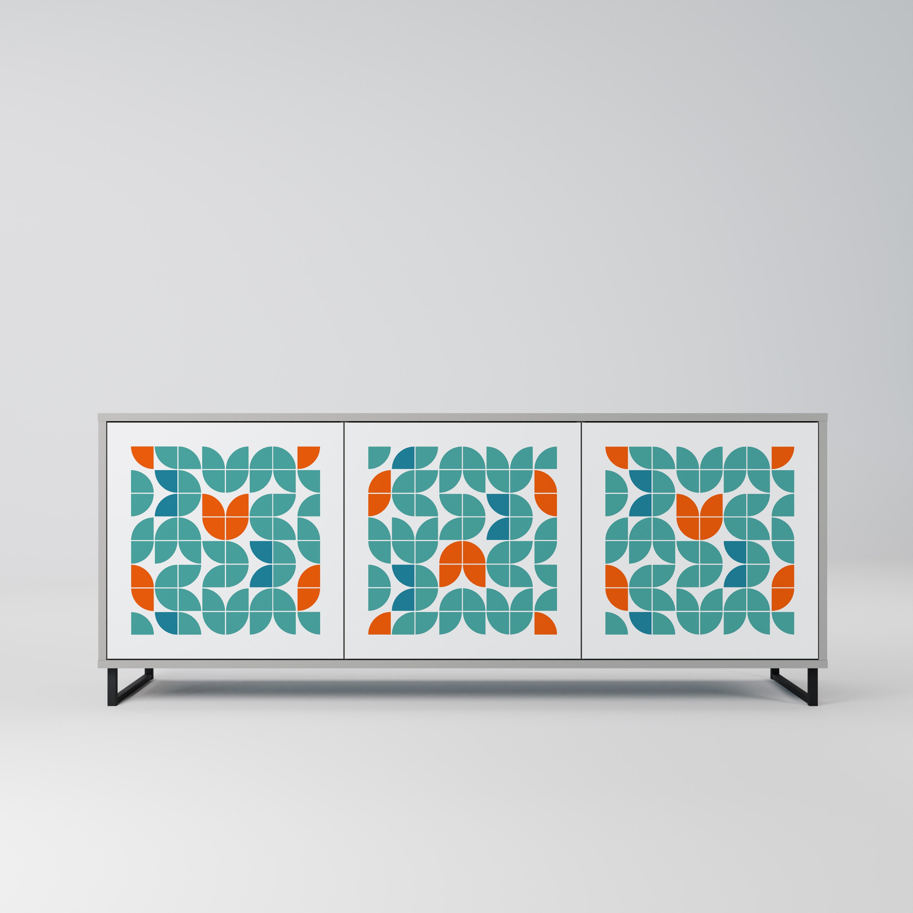 SCANDIC FLOWERET 3-Door Sideboard in Grey Finish SCANDIC FLOWERET 3-Door Sideboard in Grey Finish