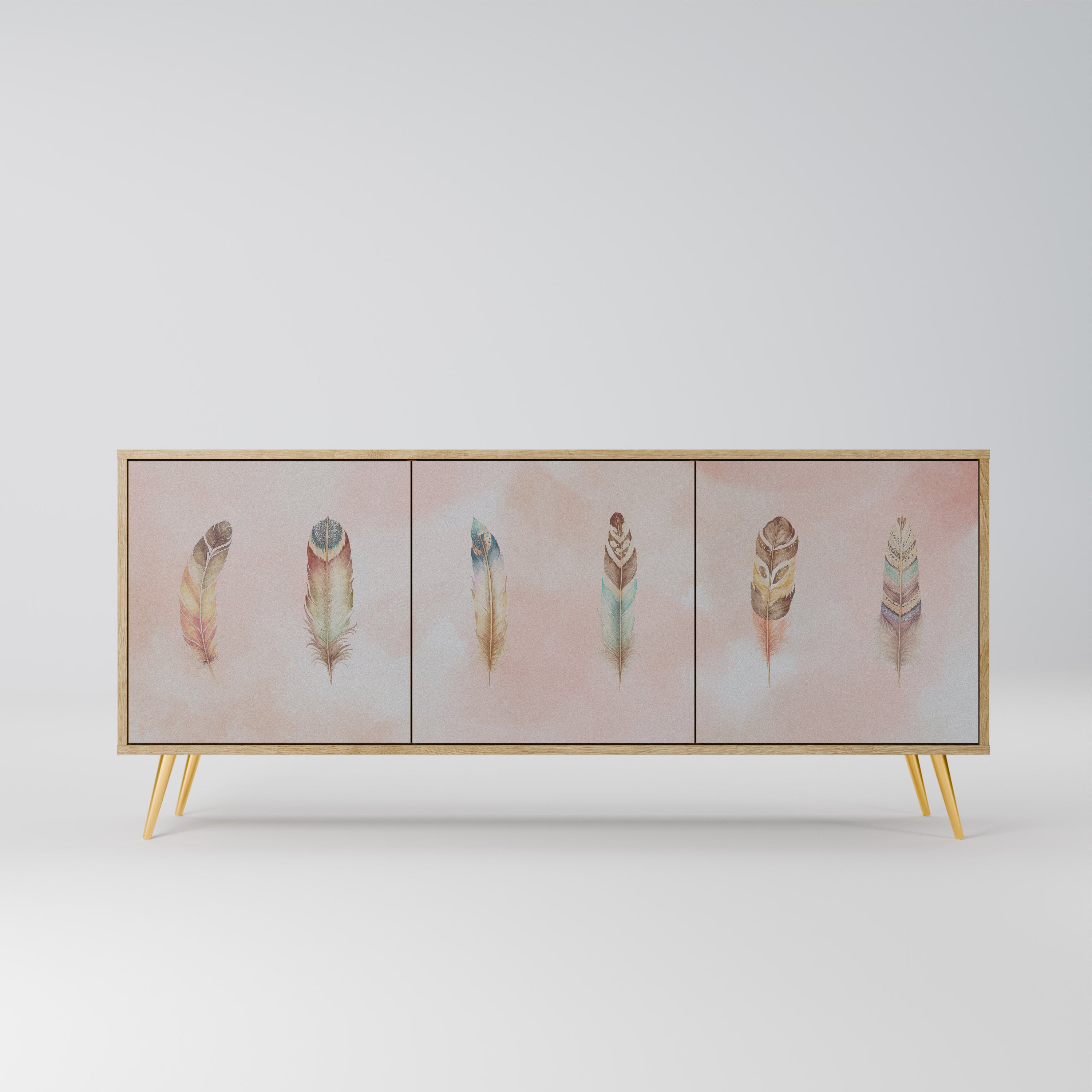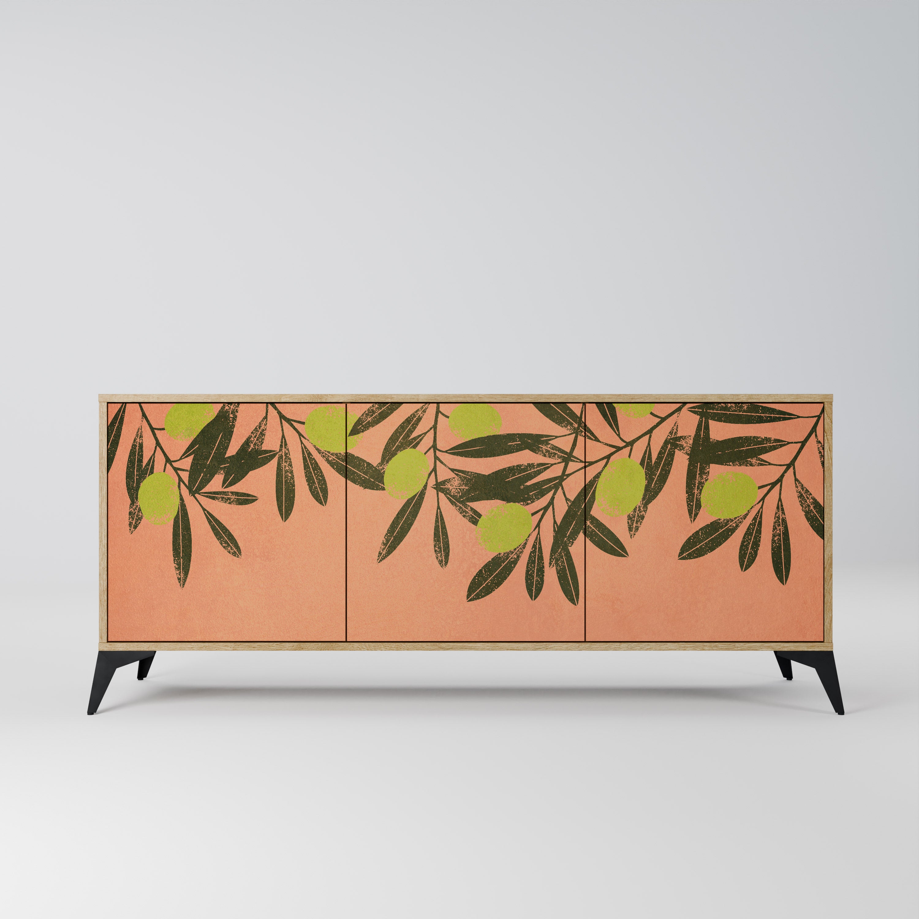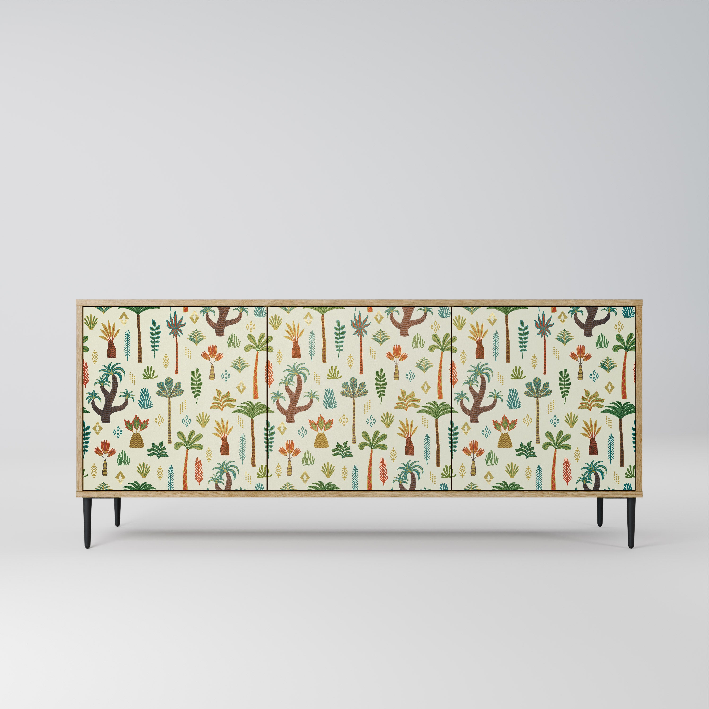 LEAVES ON BEIGE 3-Door Sideboard in Oak Effect LEAVES ON BEIGE 3-Door Sideboard in Oak Effect