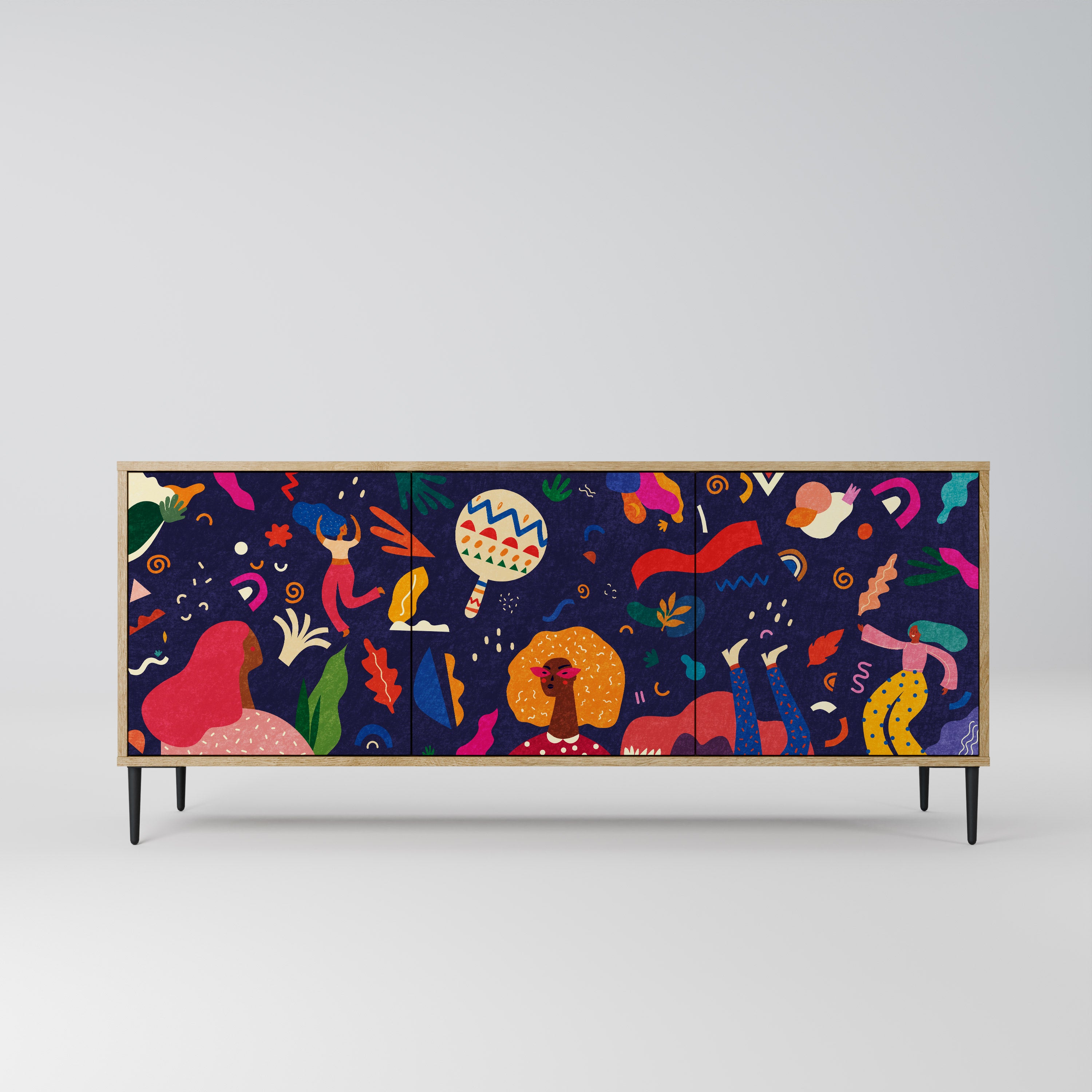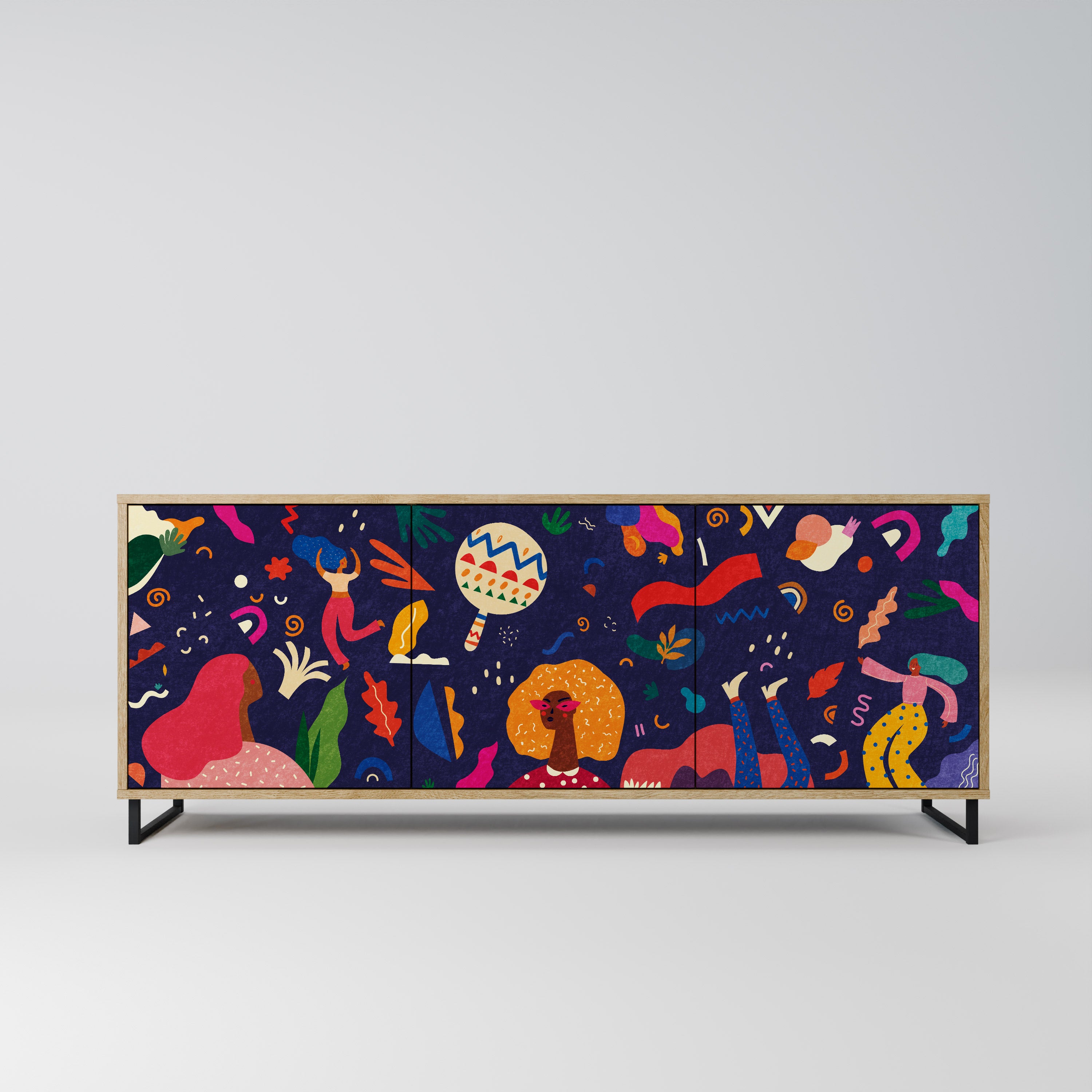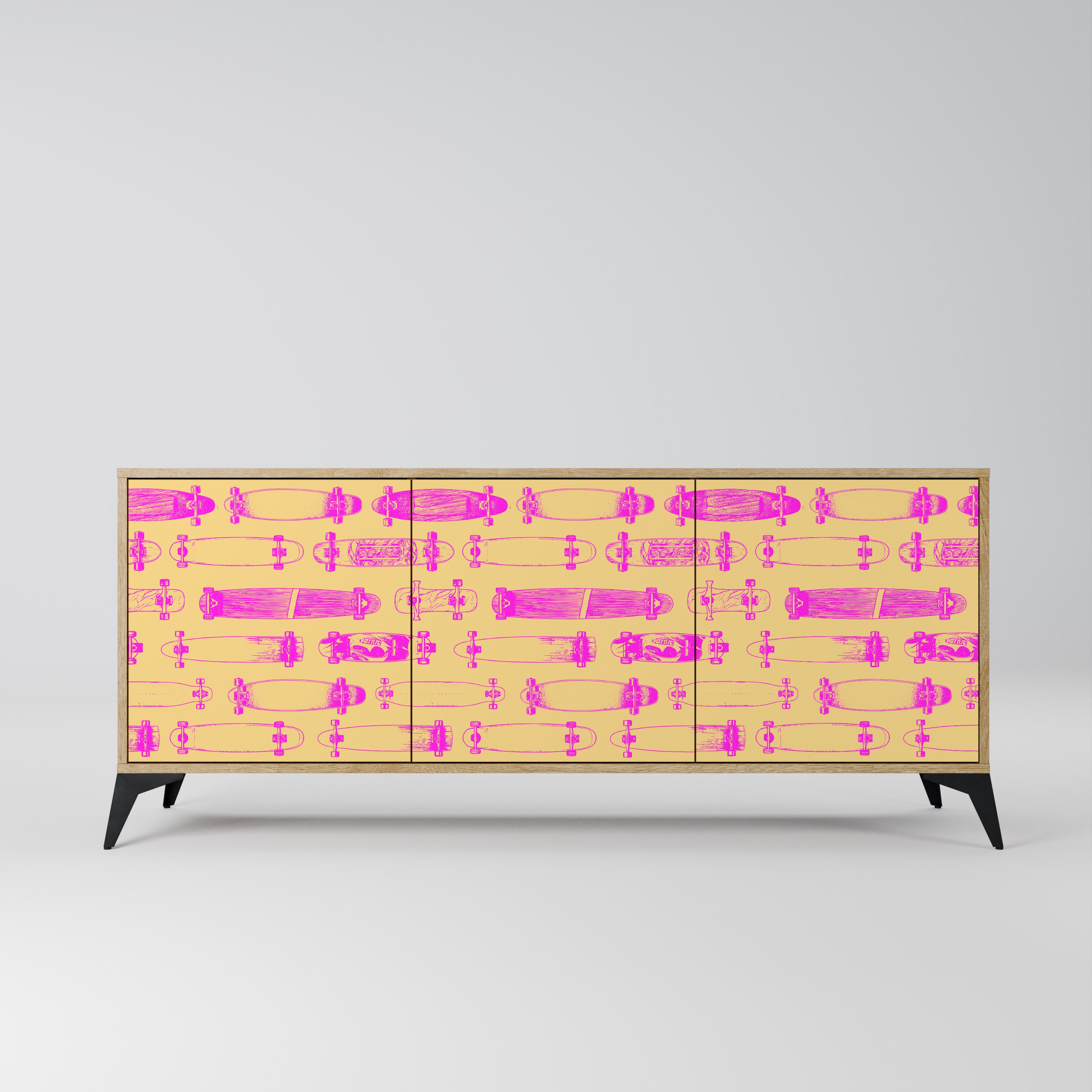 SKATEBOARD ARTISTRY 3-Door Sideboard in Oak Effect SKATEBOARD ARTISTRY 3-Door Sideboard in Oak Effect