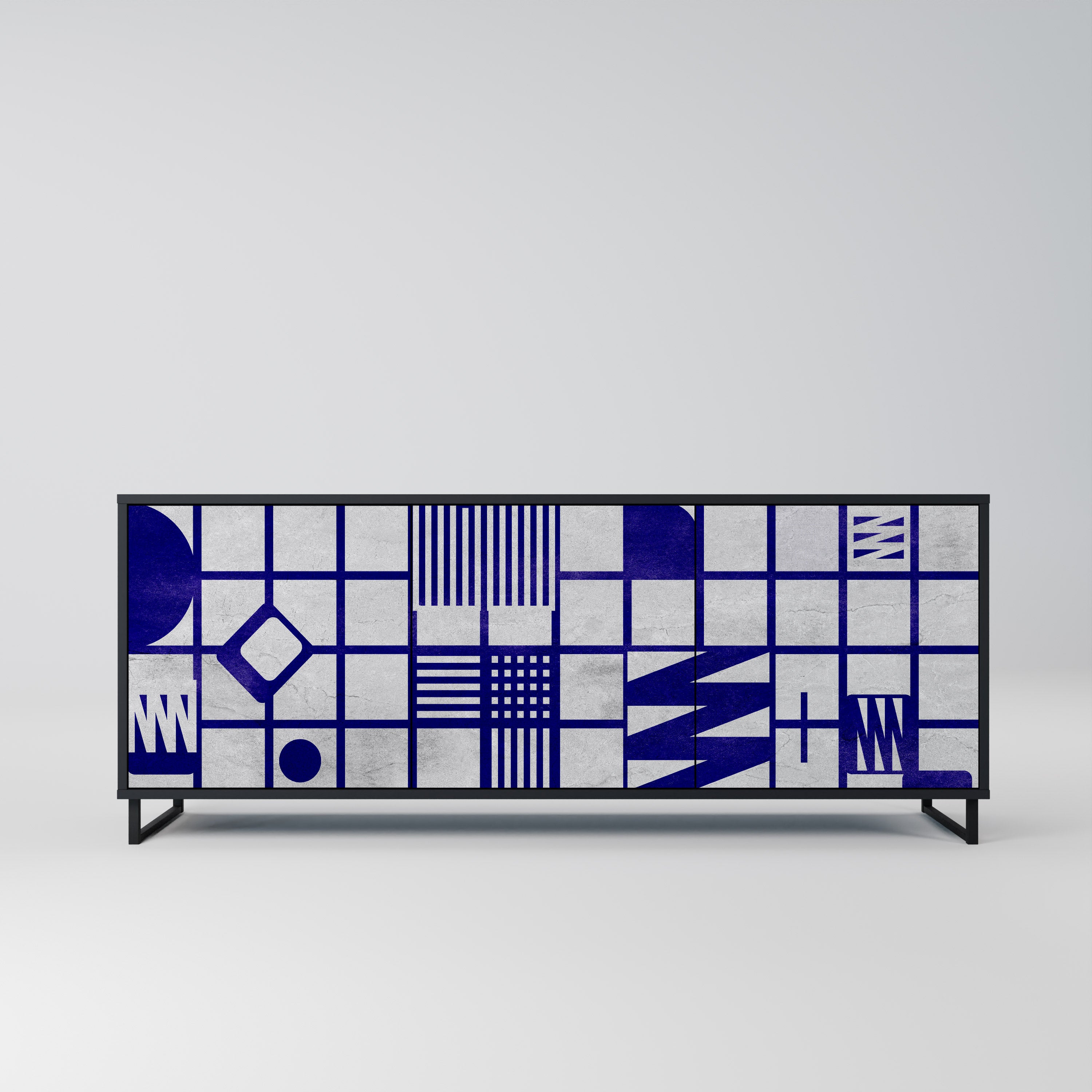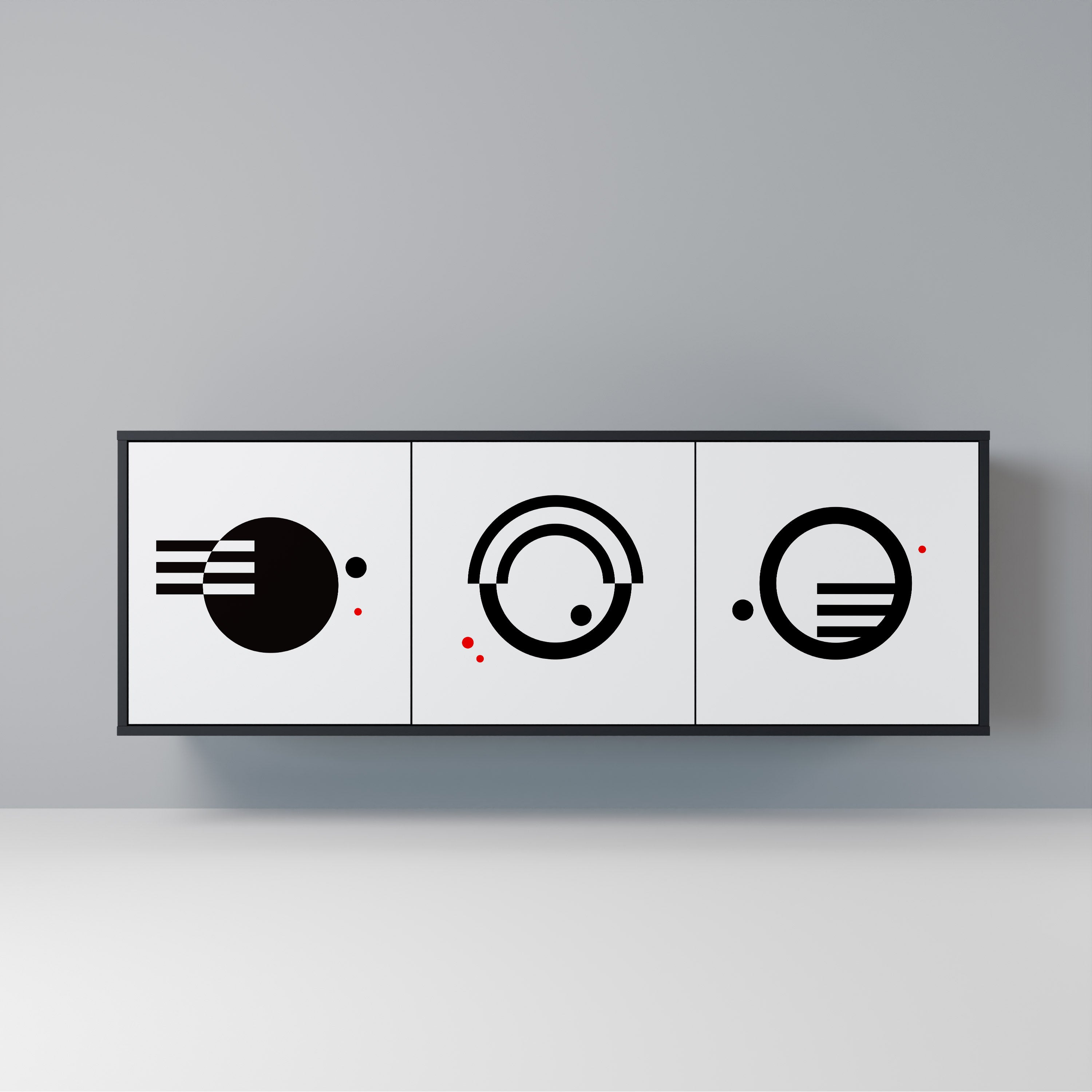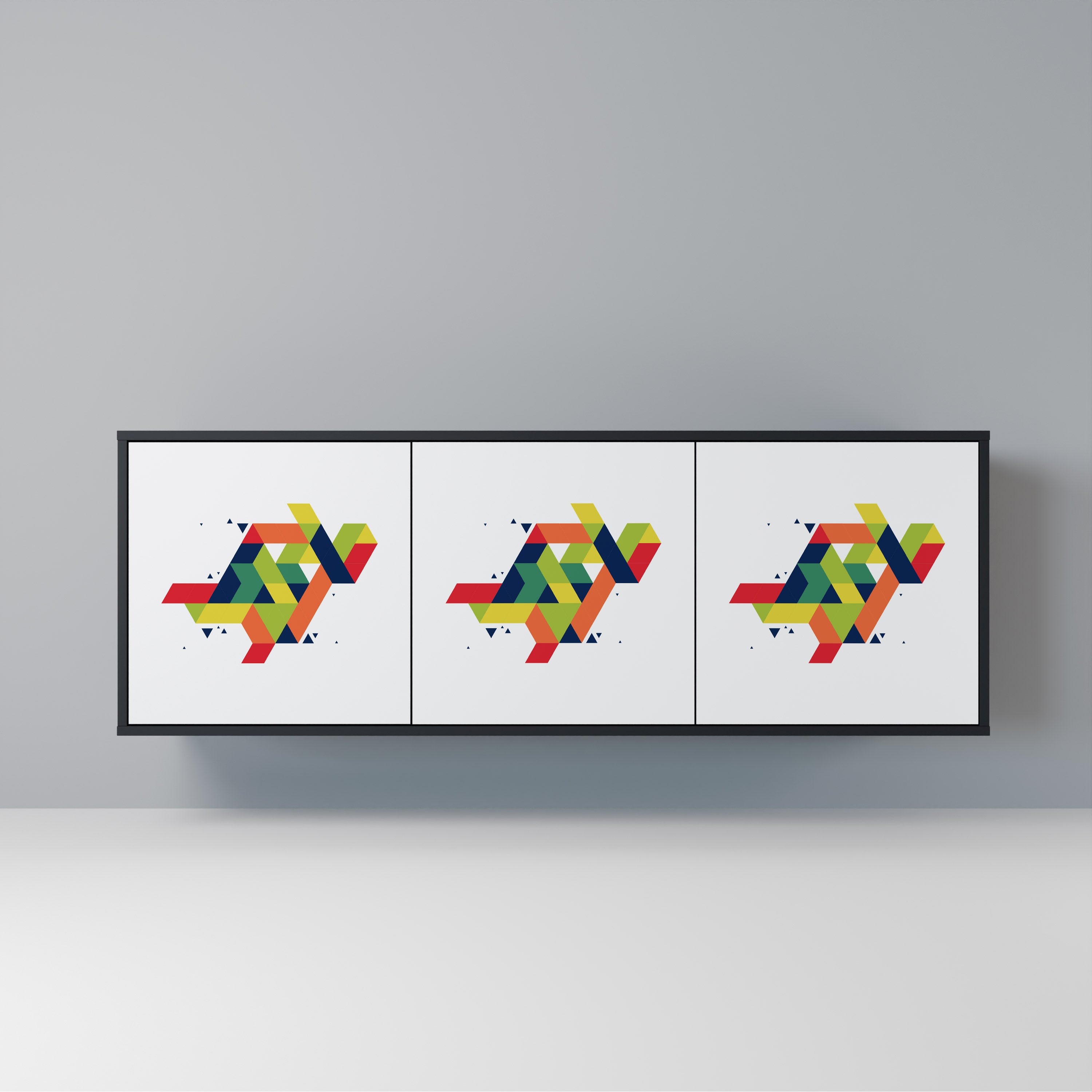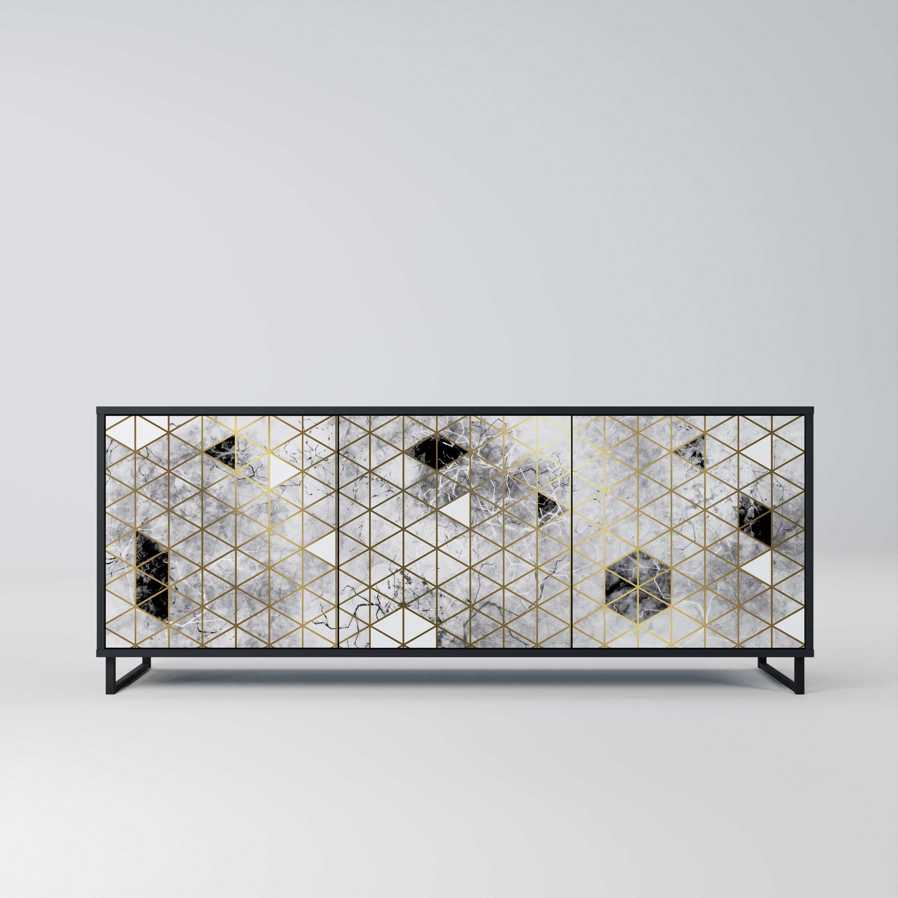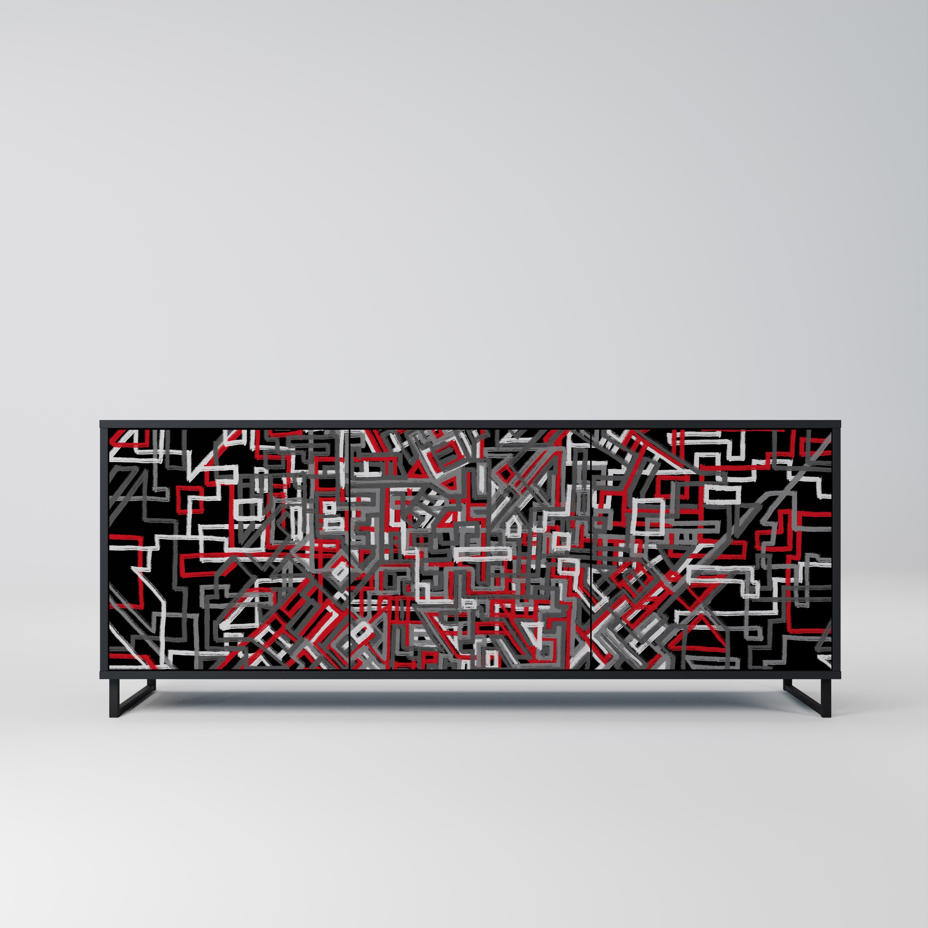 KALEIDOSCOPIC CUBISM 3-Door Sideboard in Black Finish KALEIDOSCOPIC CUBISM 3-Door Sideboard in Black Finish