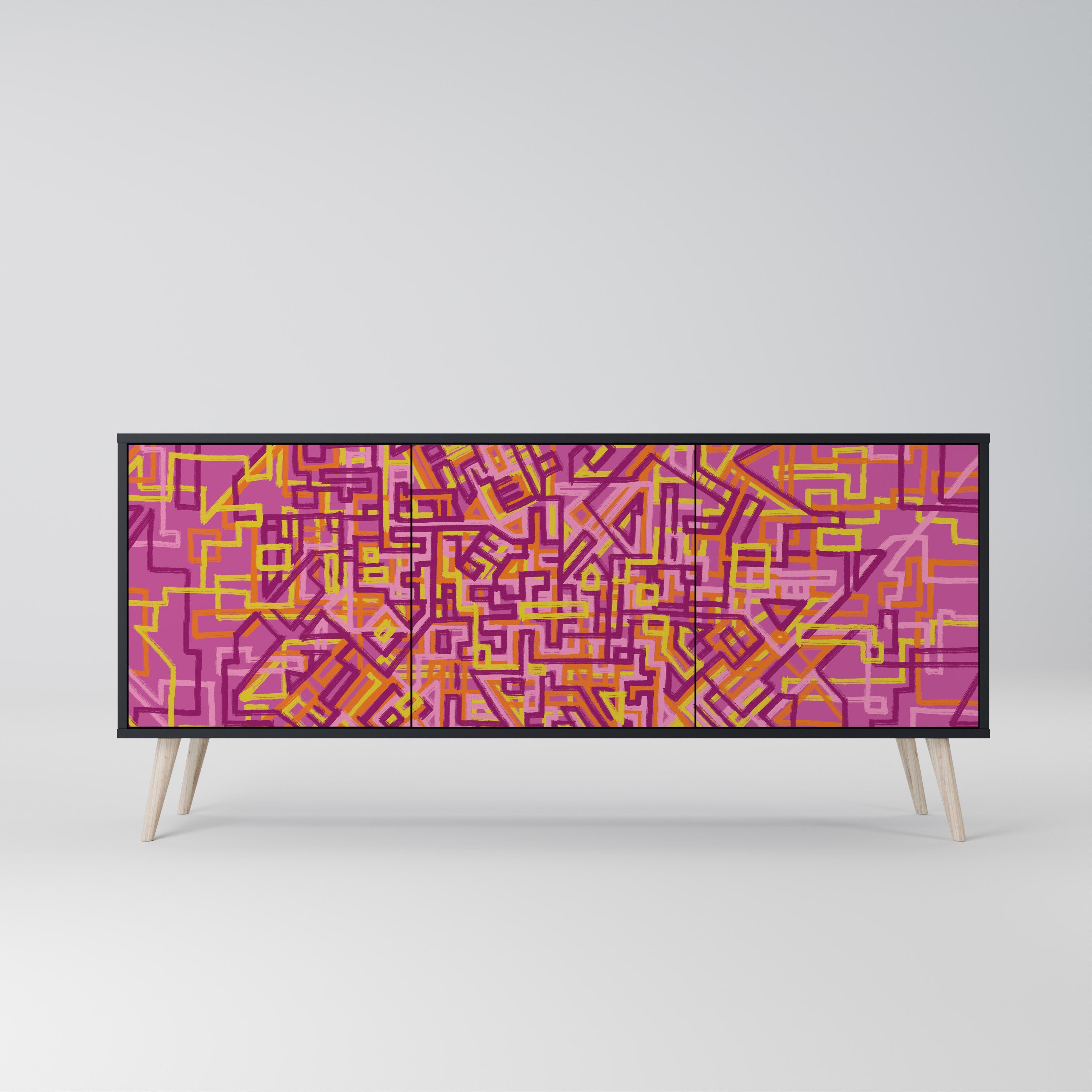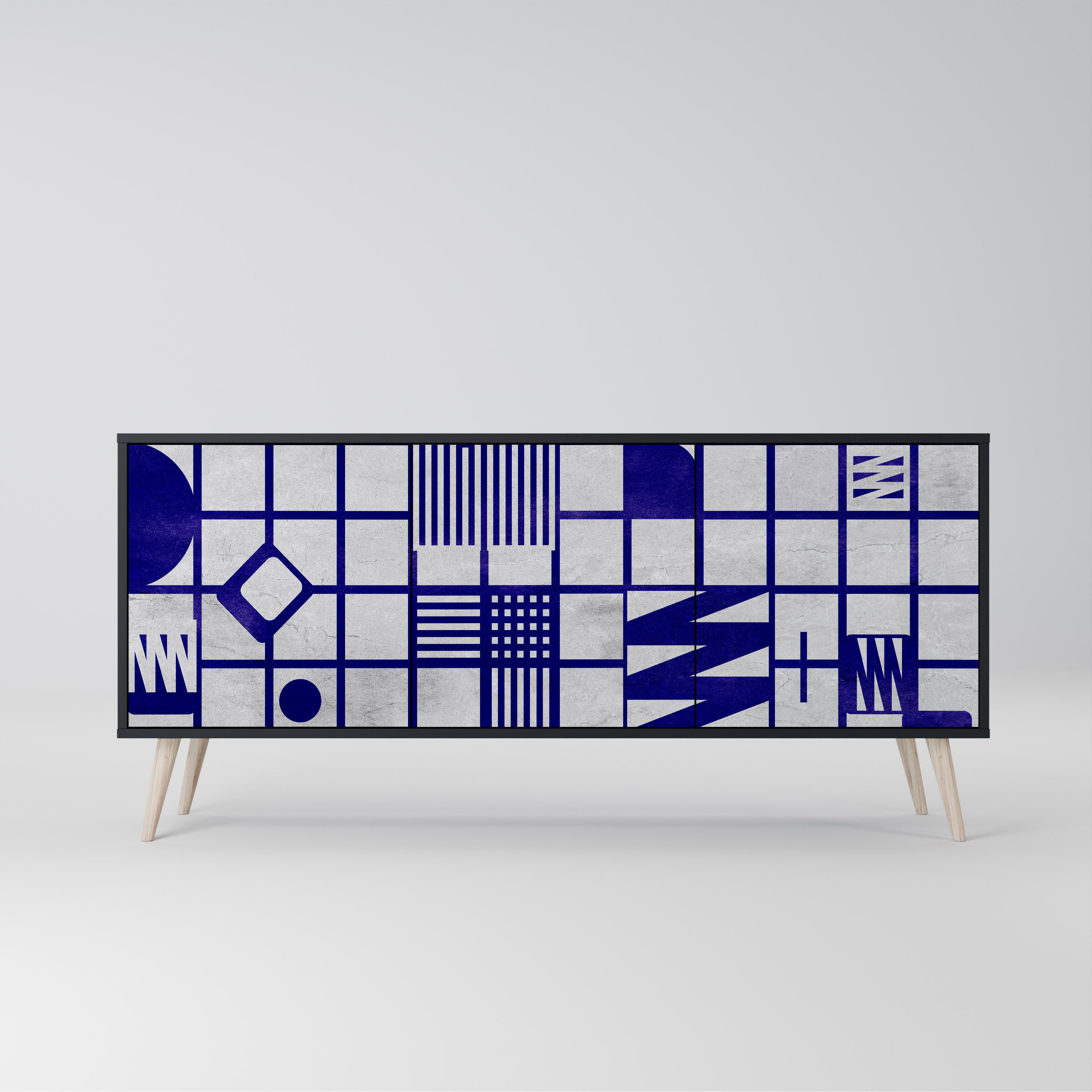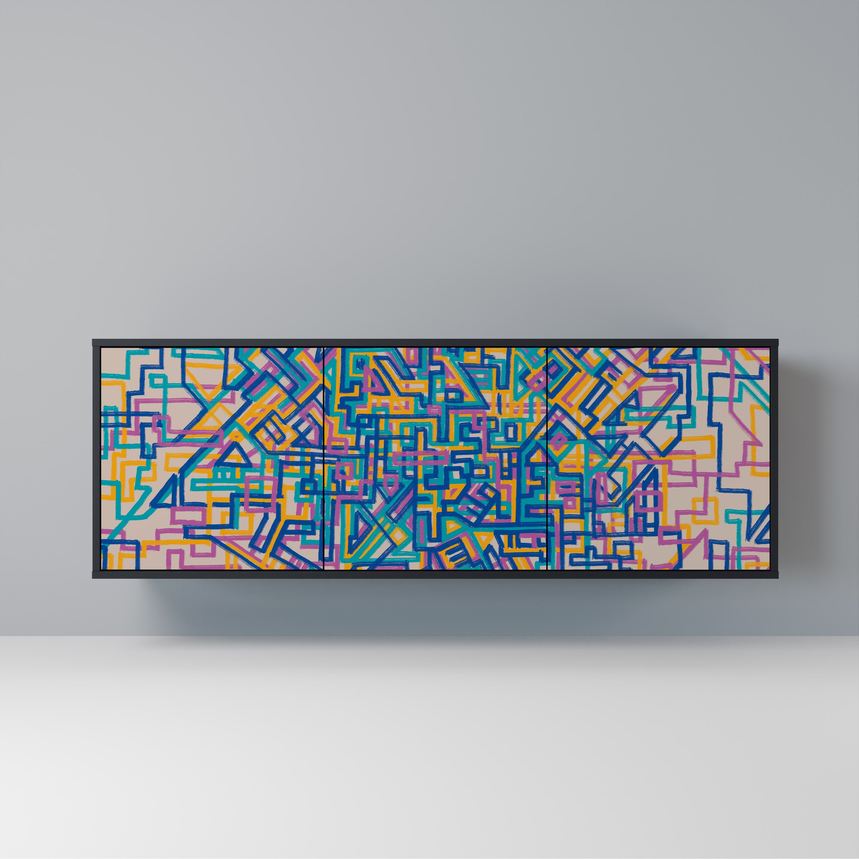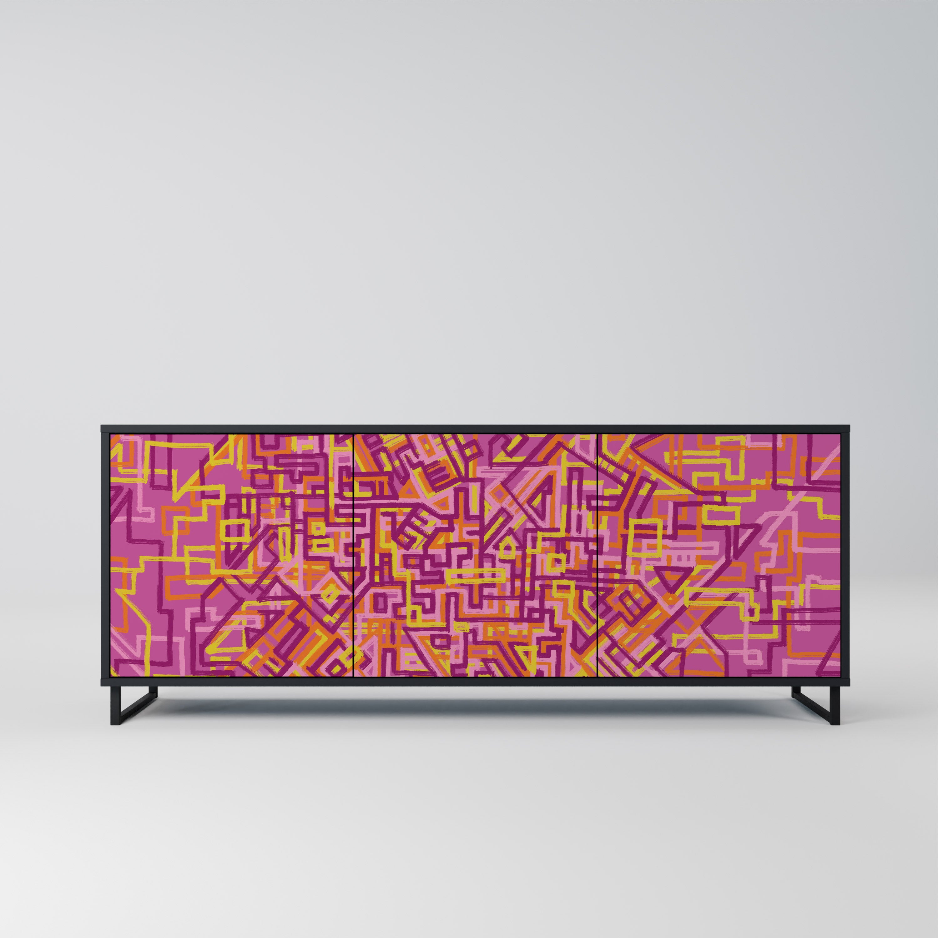 KALEIDOSCOPIC CUBISM 3-Door Sideboard in Black Finish KALEIDOSCOPIC CUBISM 3-Door Sideboard in Black Finish