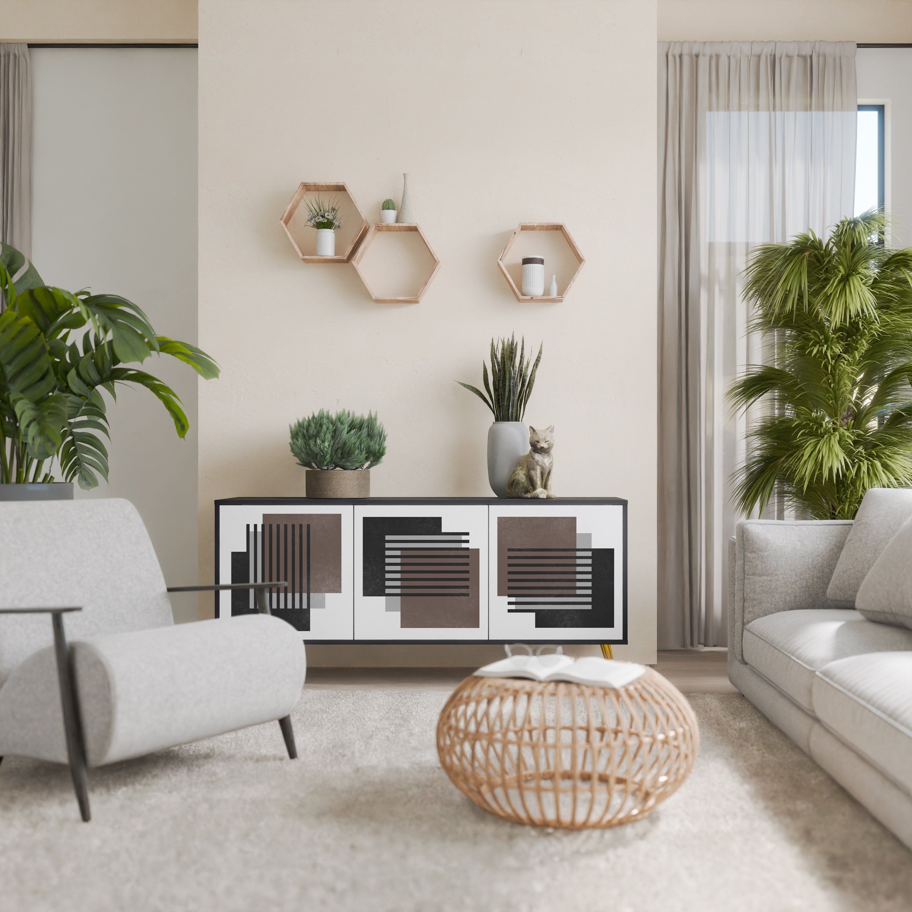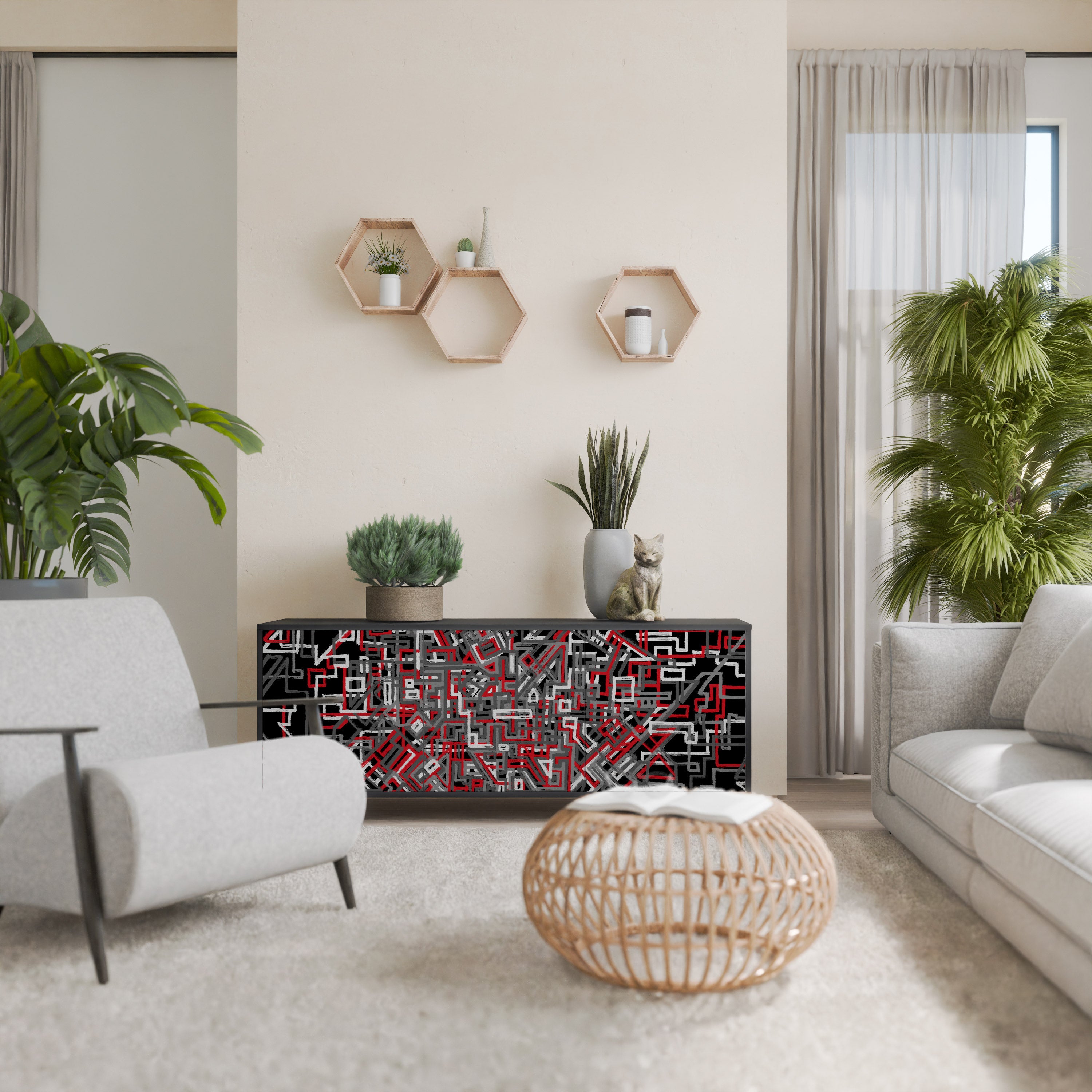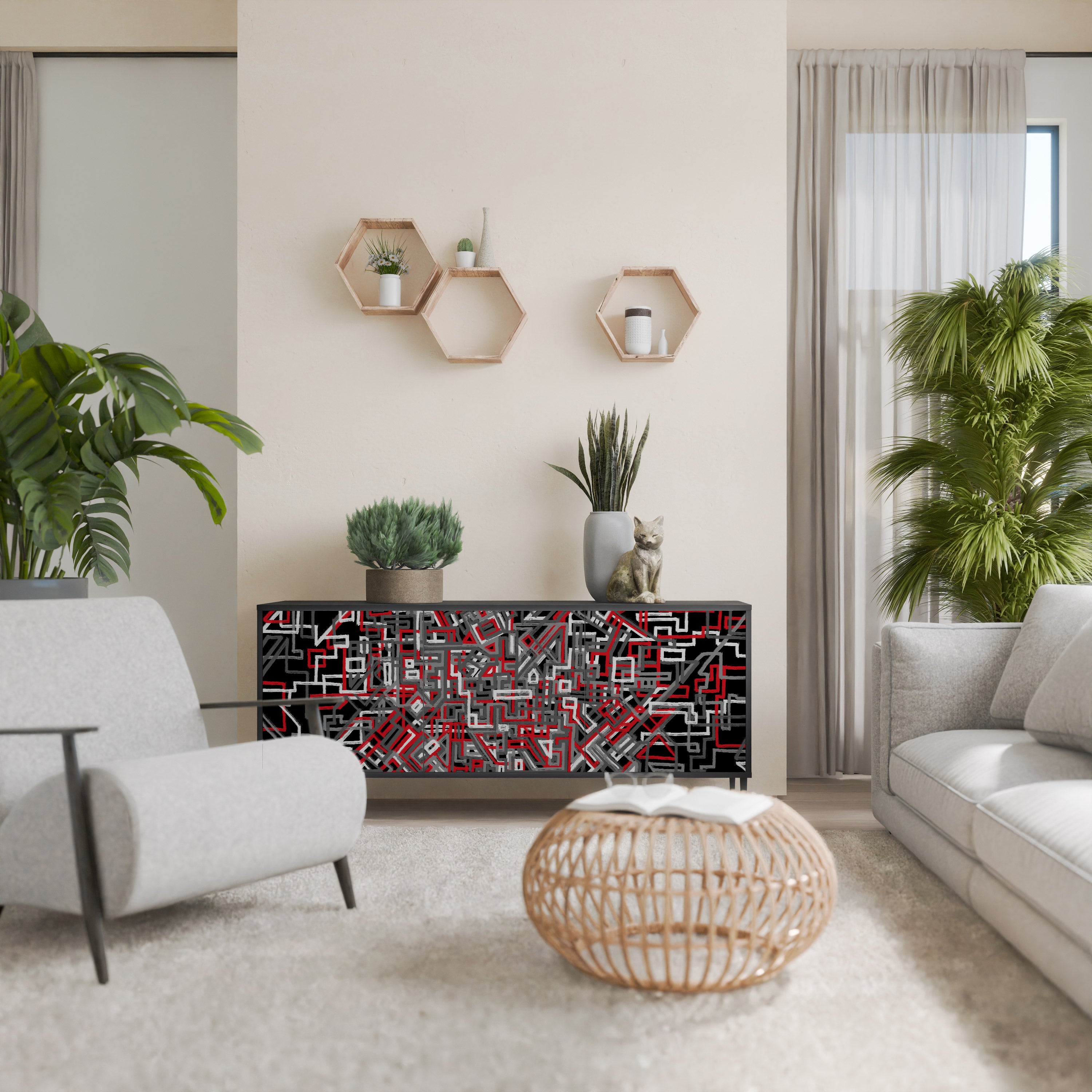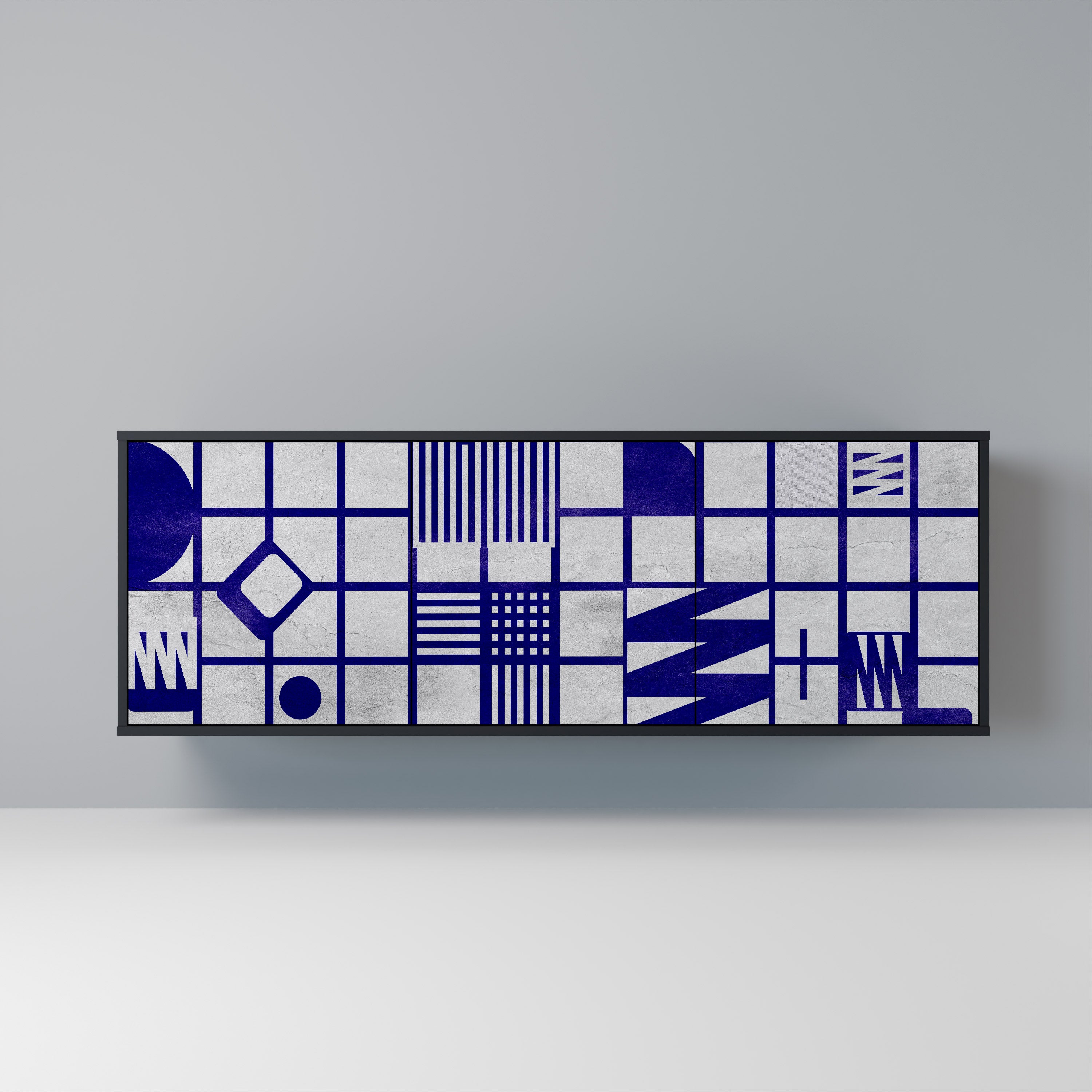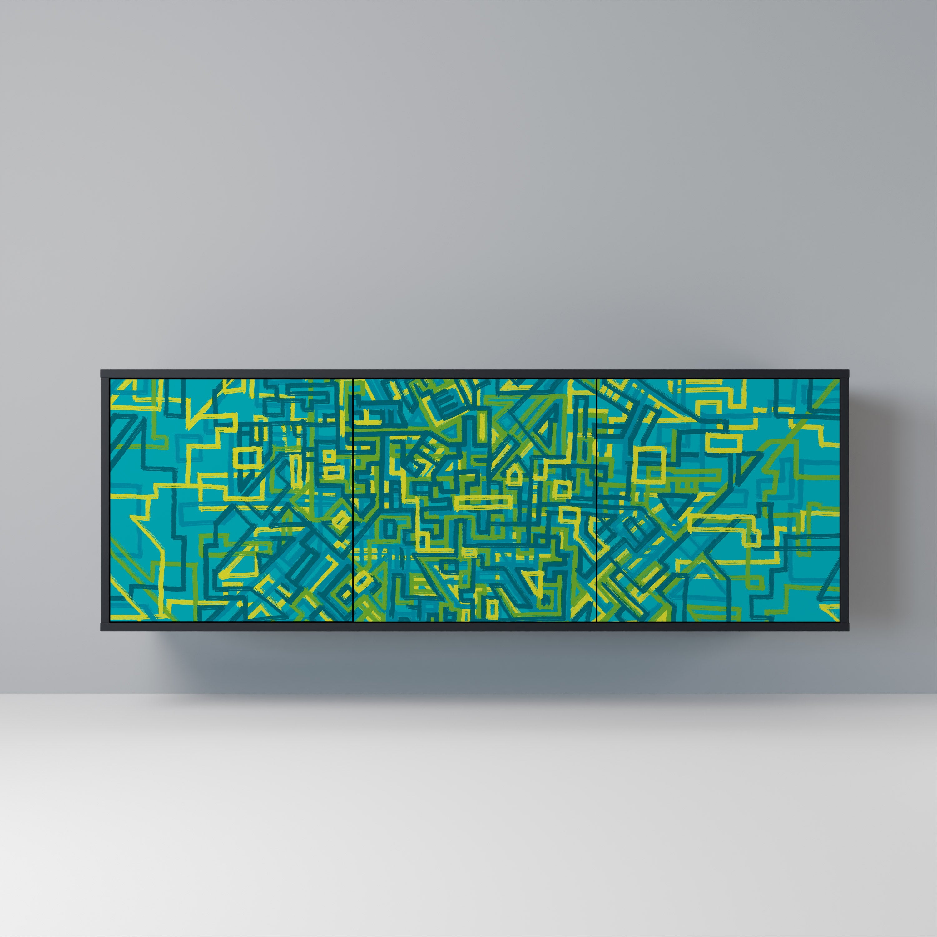 KALEIDOSCOPIC CUBISM 3-Door Sideboard in Black Finish KALEIDOSCOPIC CUBISM 3-Door Sideboard in Black Finish