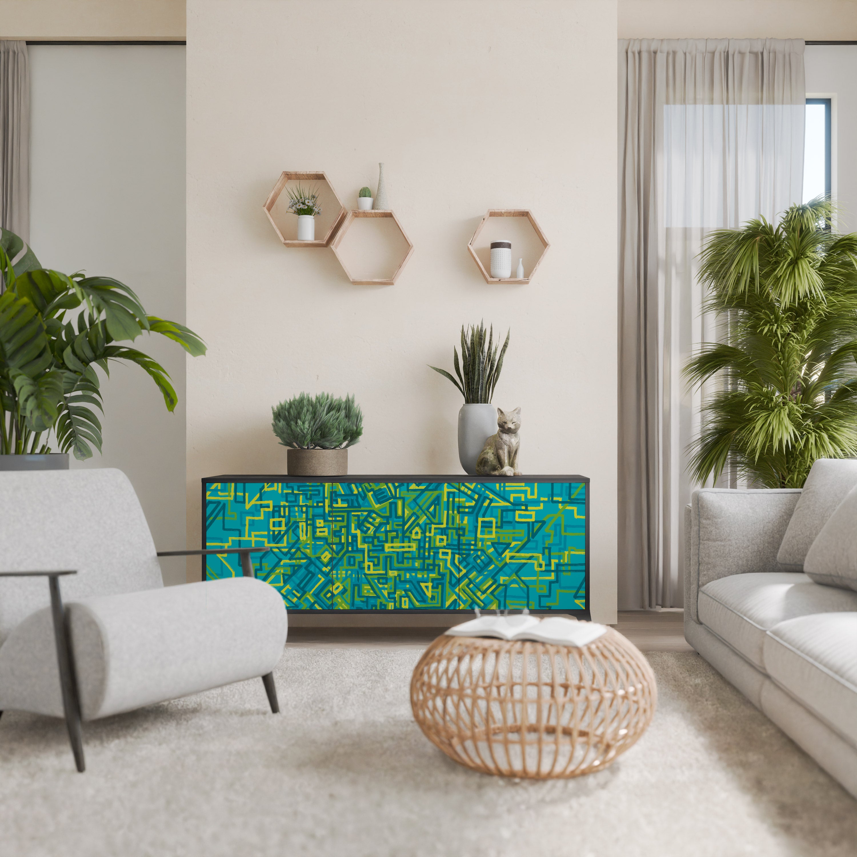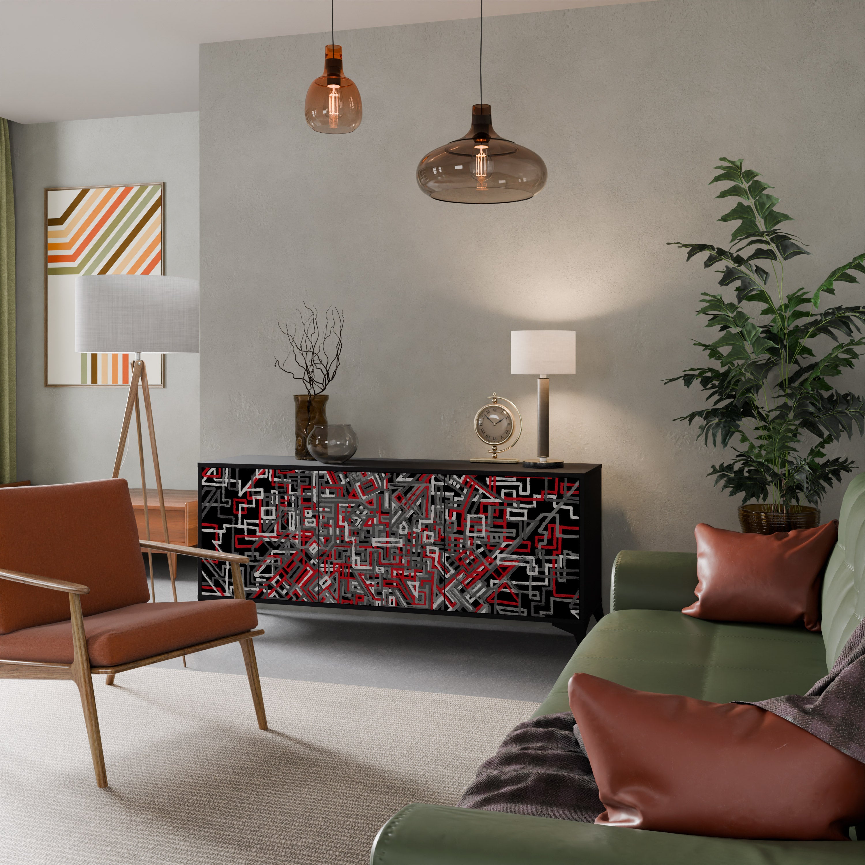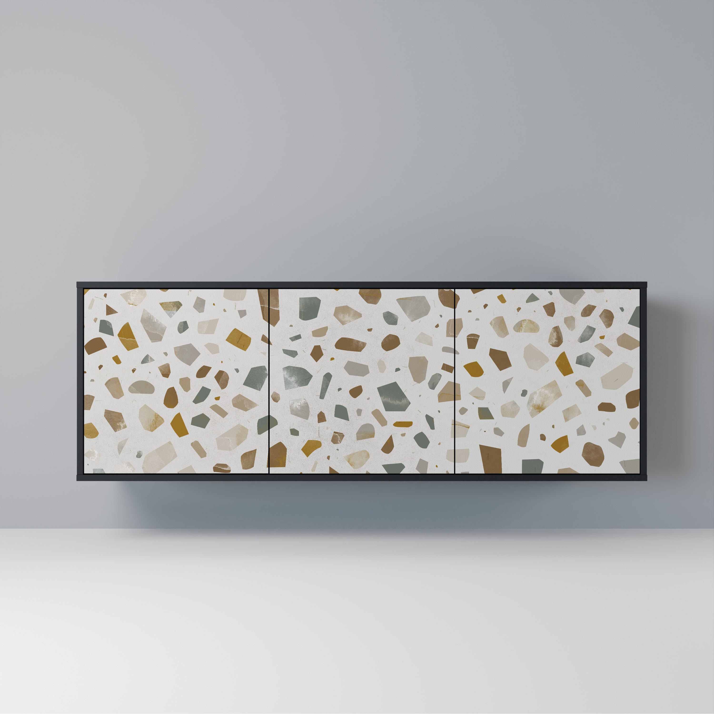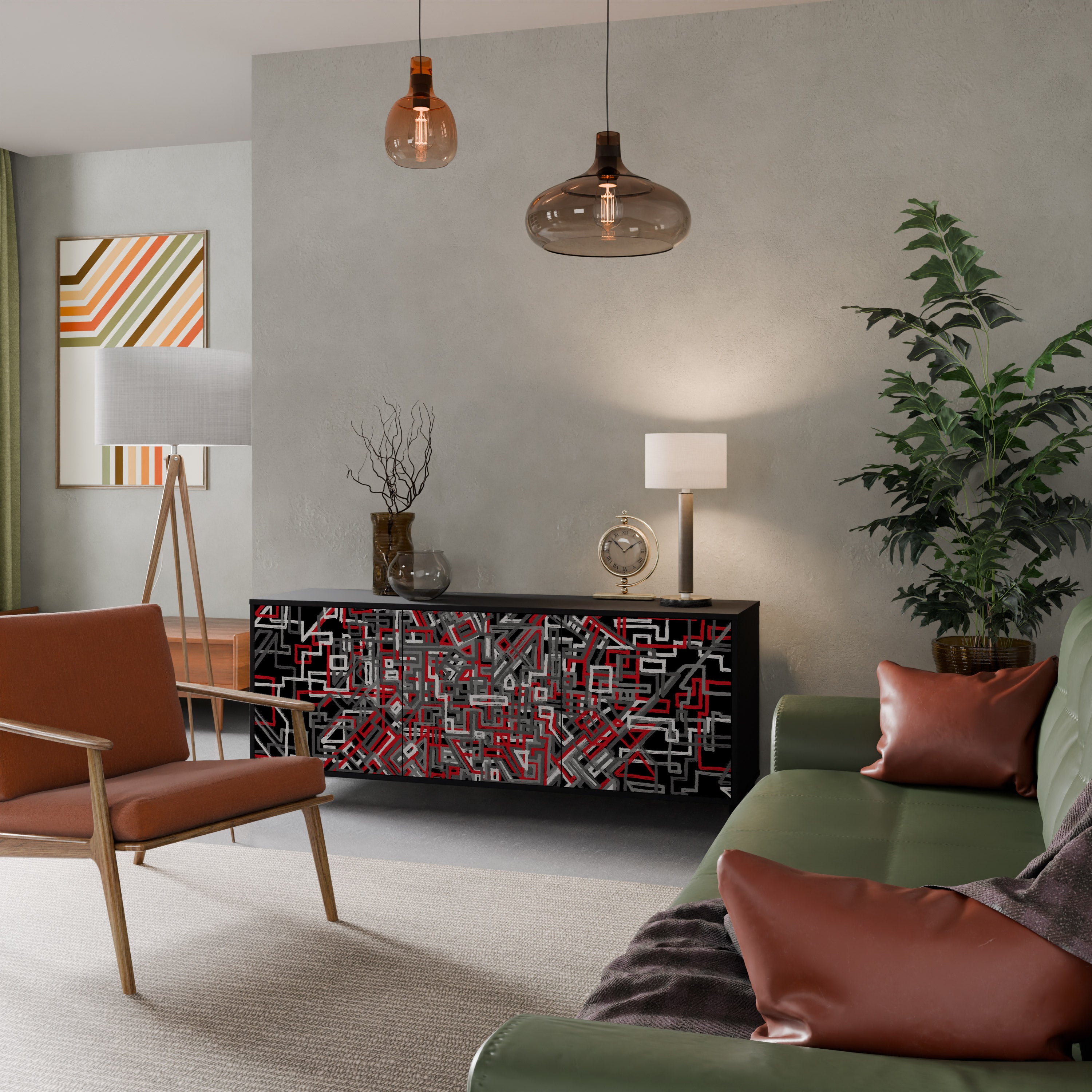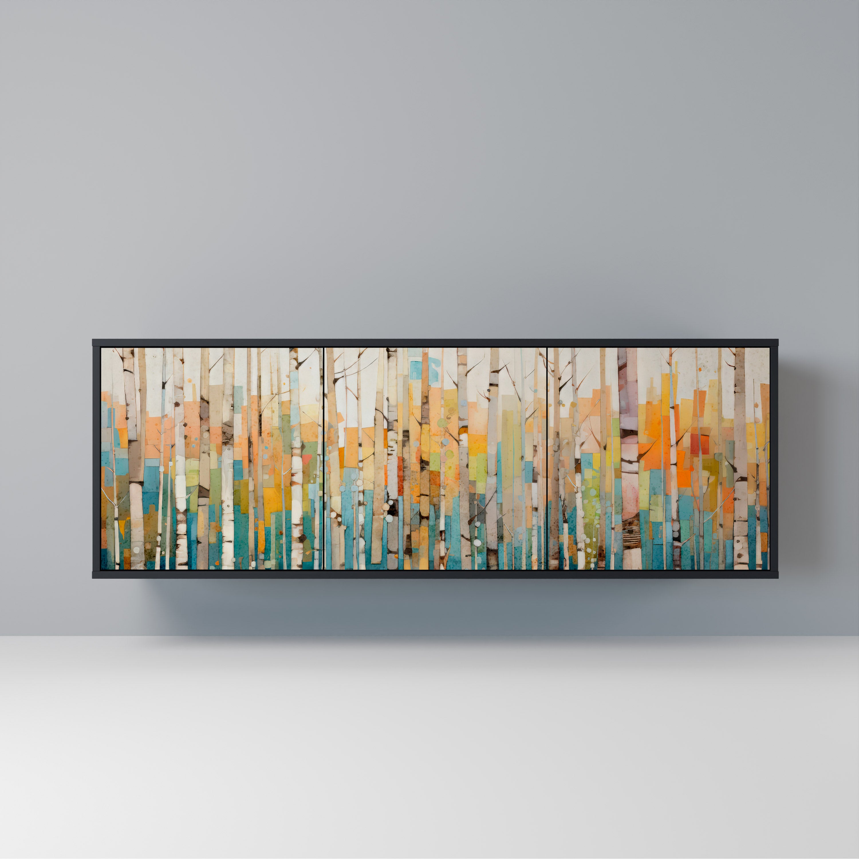 KALEIDOSCOPIC CUBISM 3-Door Sideboard in Black Finish KALEIDOSCOPIC CUBISM 3-Door Sideboard in Black Finish