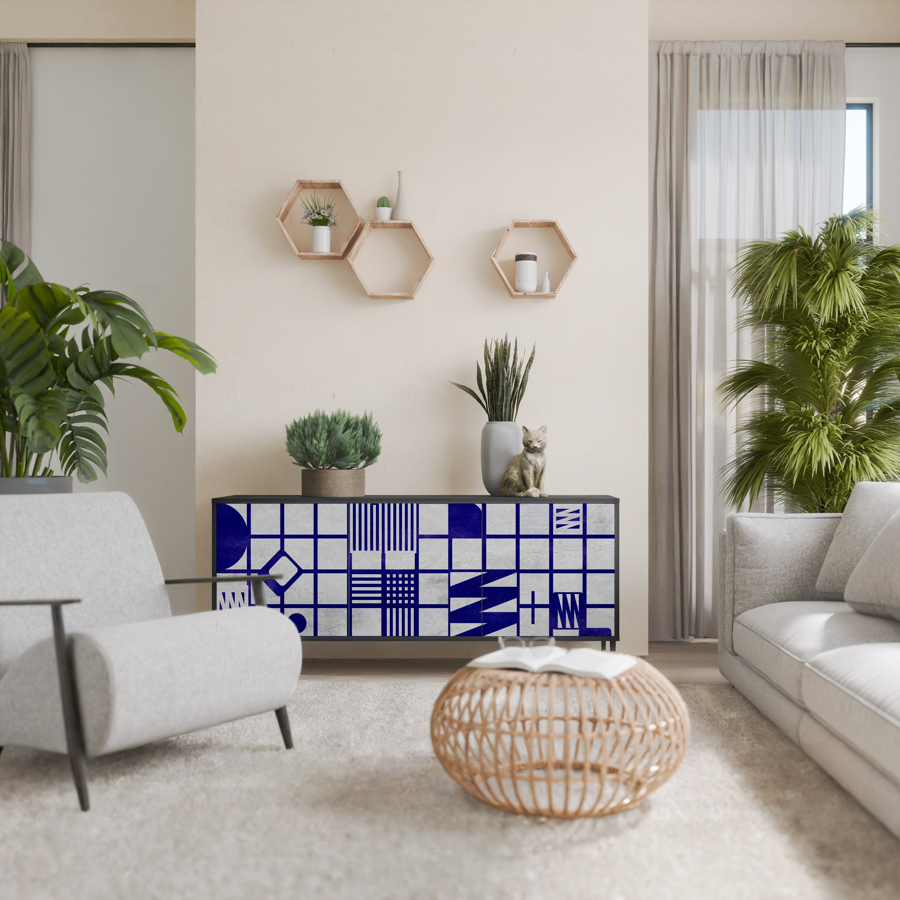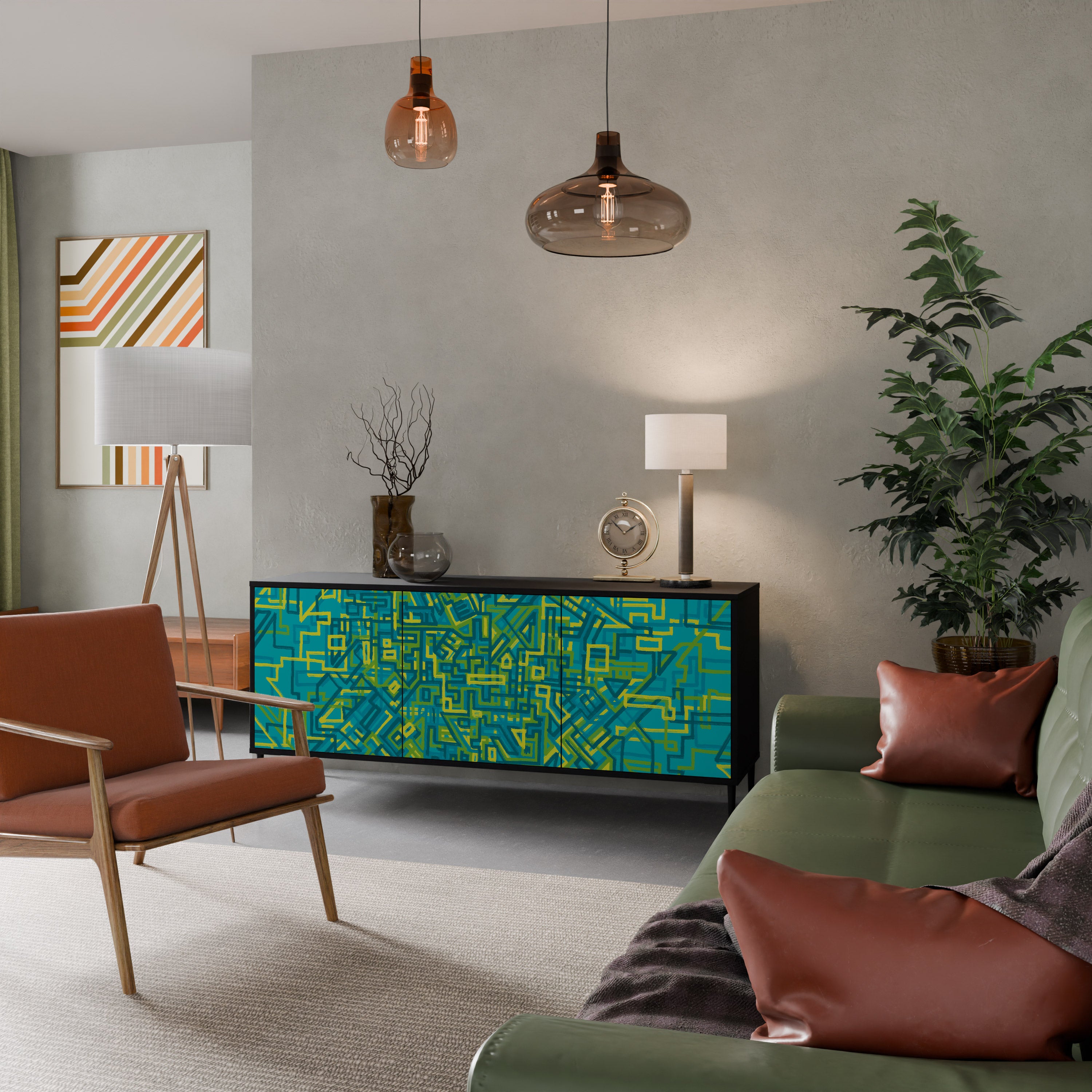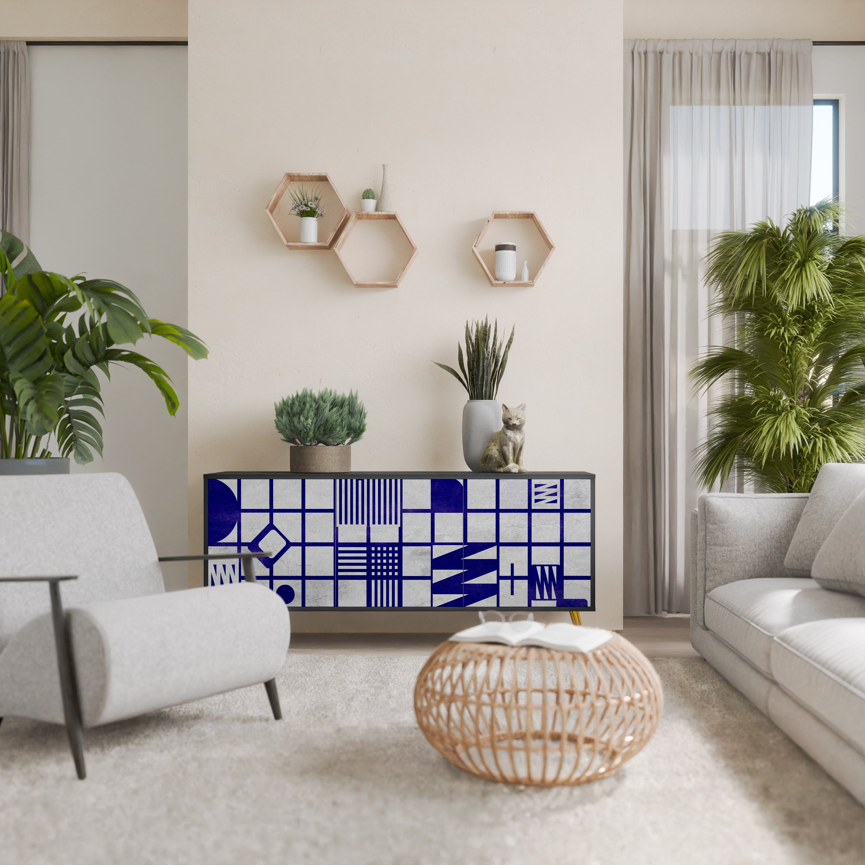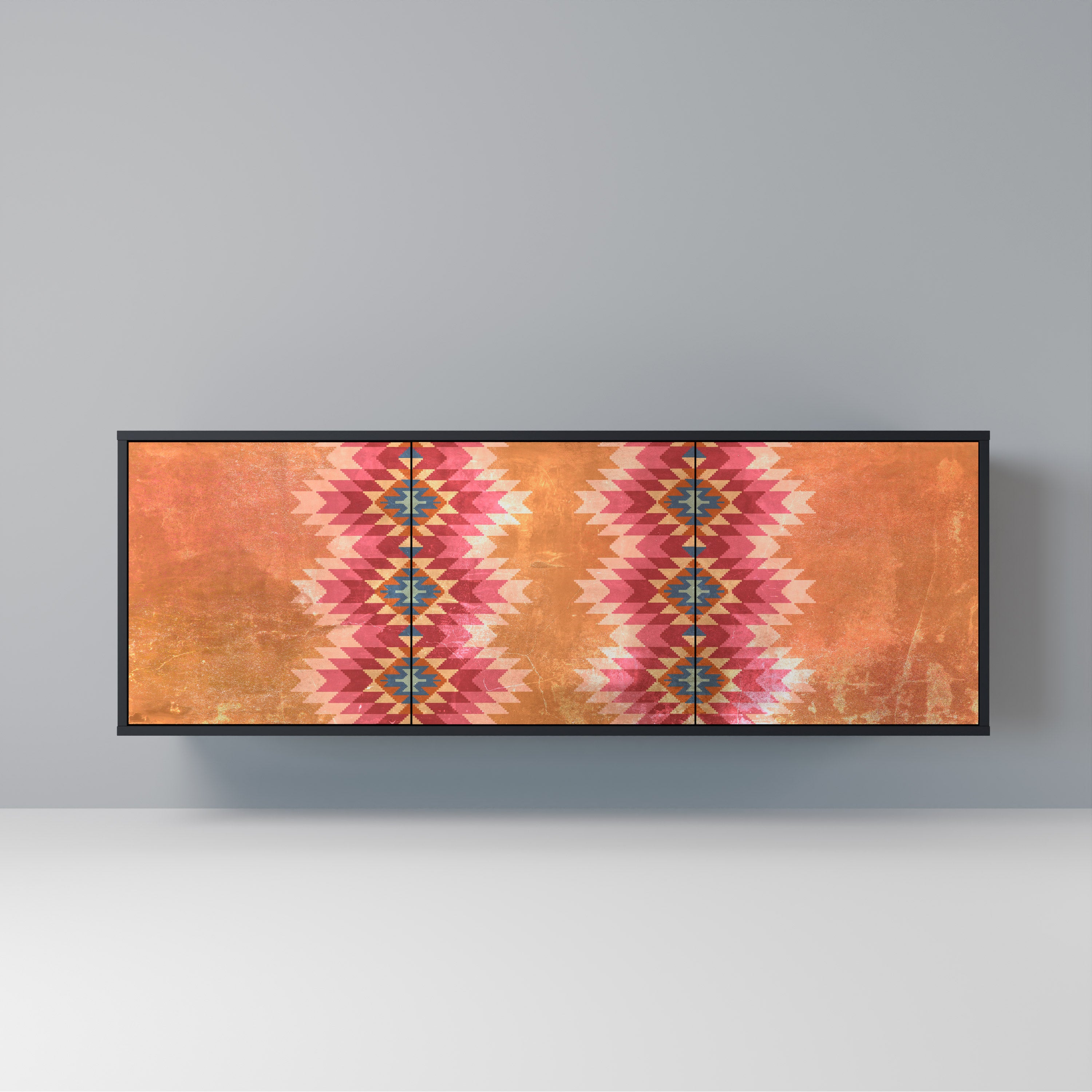 KALEIDOSCOPIC CUBISM 3-Door Sideboard in Black Finish KALEIDOSCOPIC CUBISM 3-Door Sideboard in Black Finish