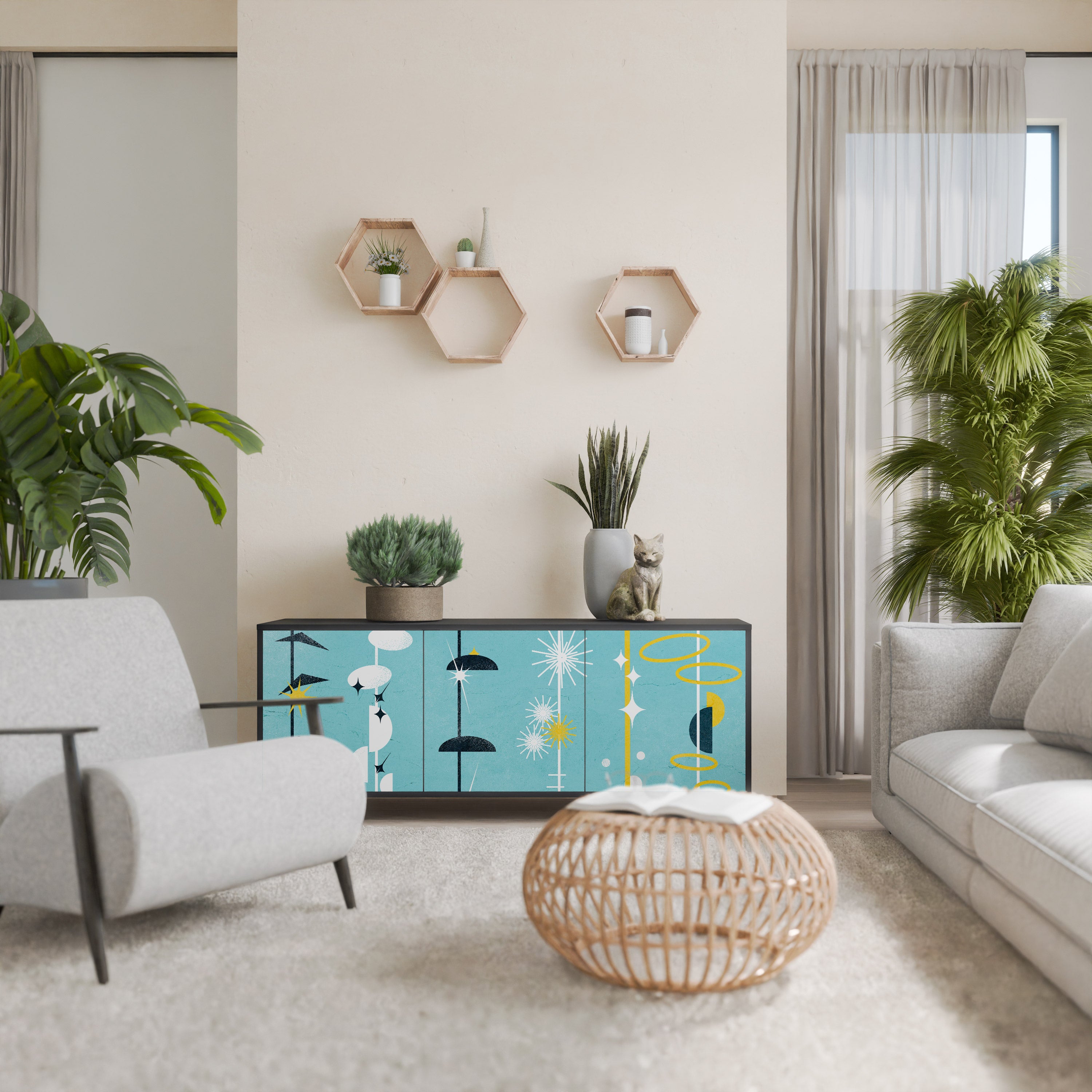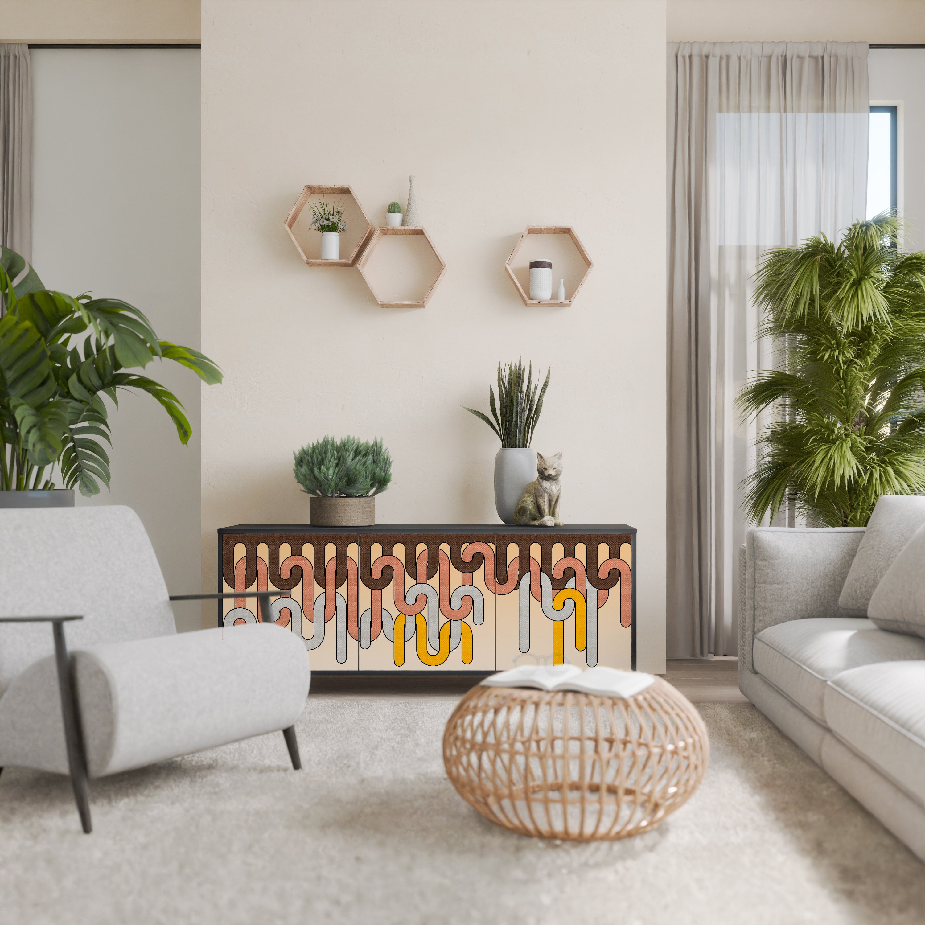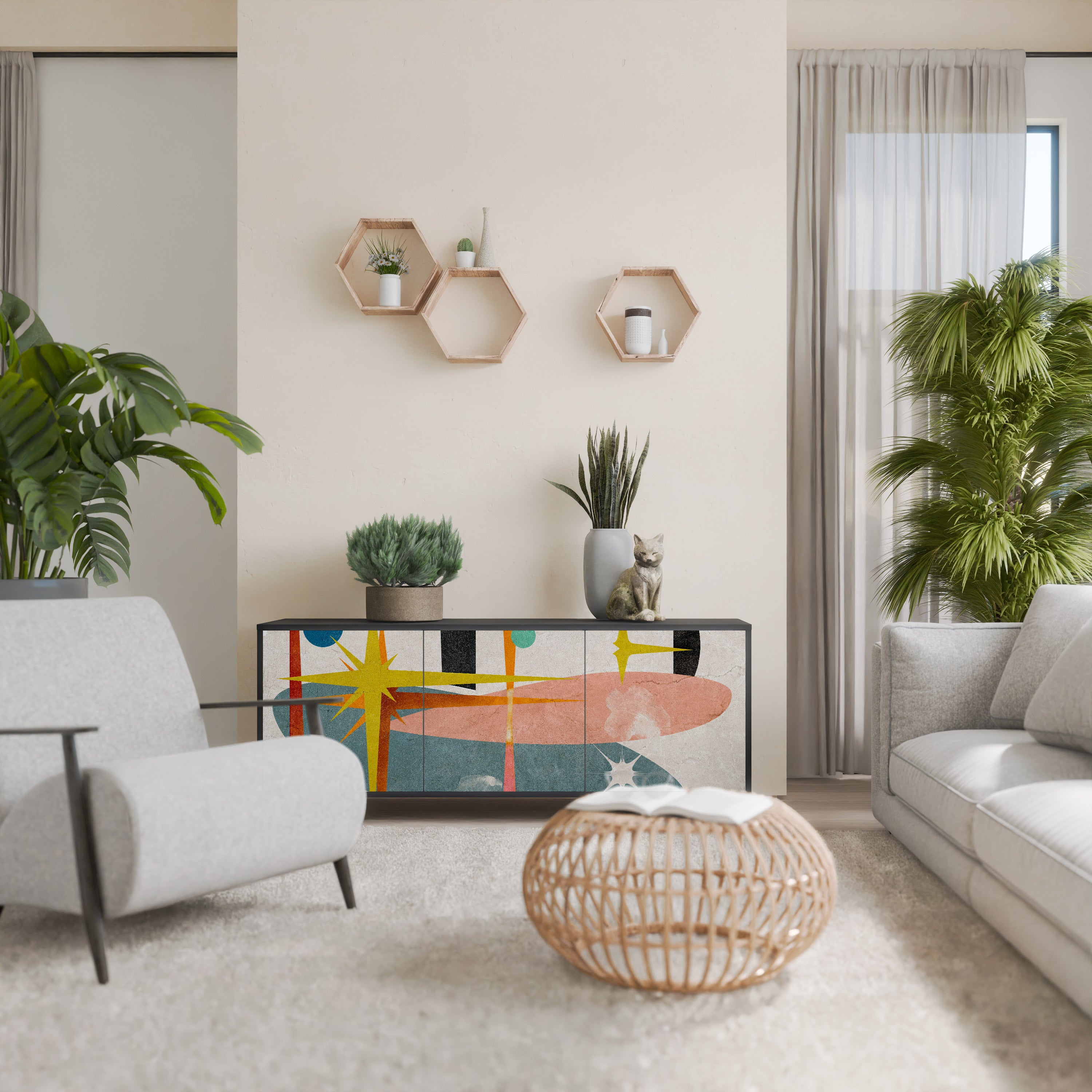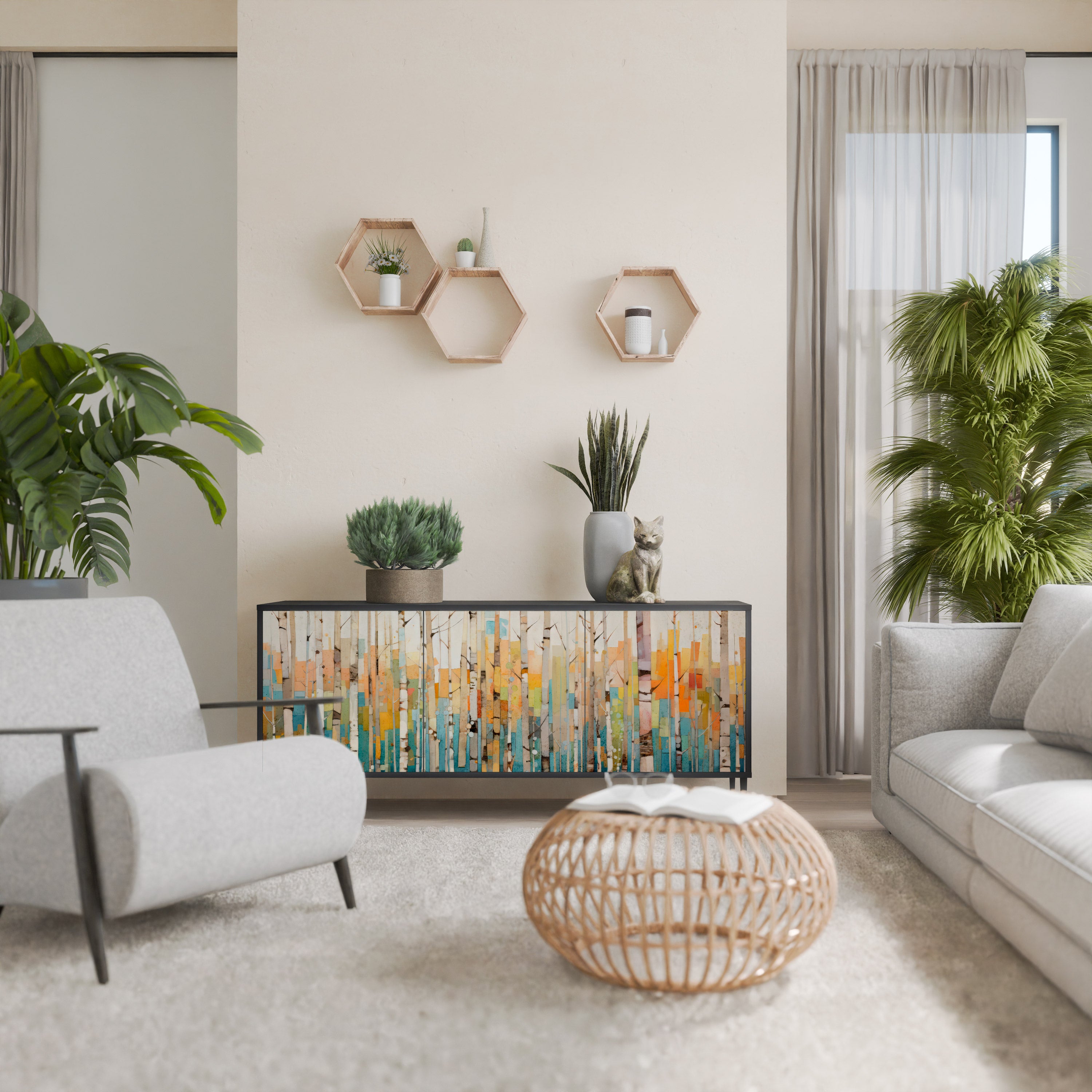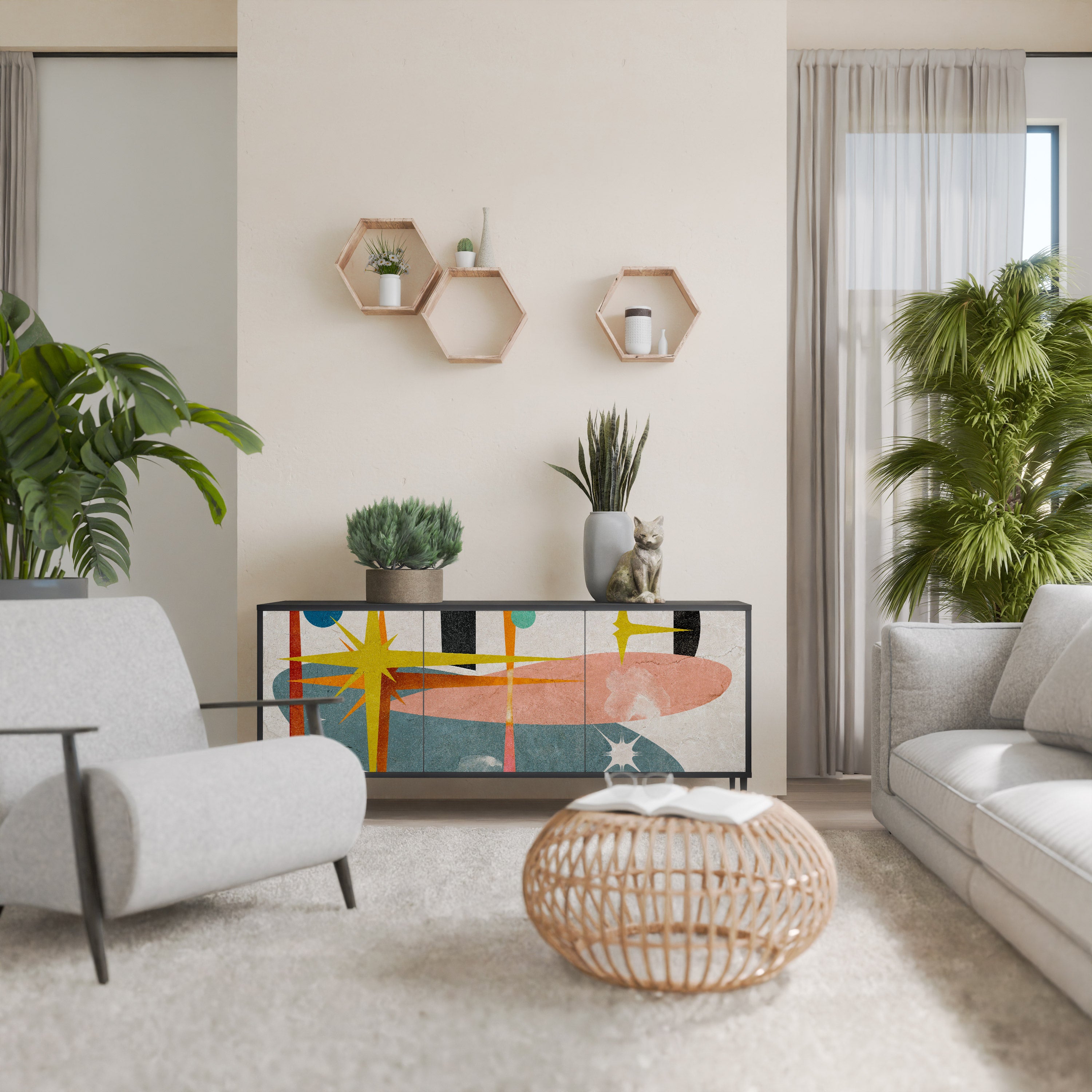 KALEIDOSCOPIC CUBISM 3-Door Sideboard in Black Finish KALEIDOSCOPIC CUBISM 3-Door Sideboard in Black Finish