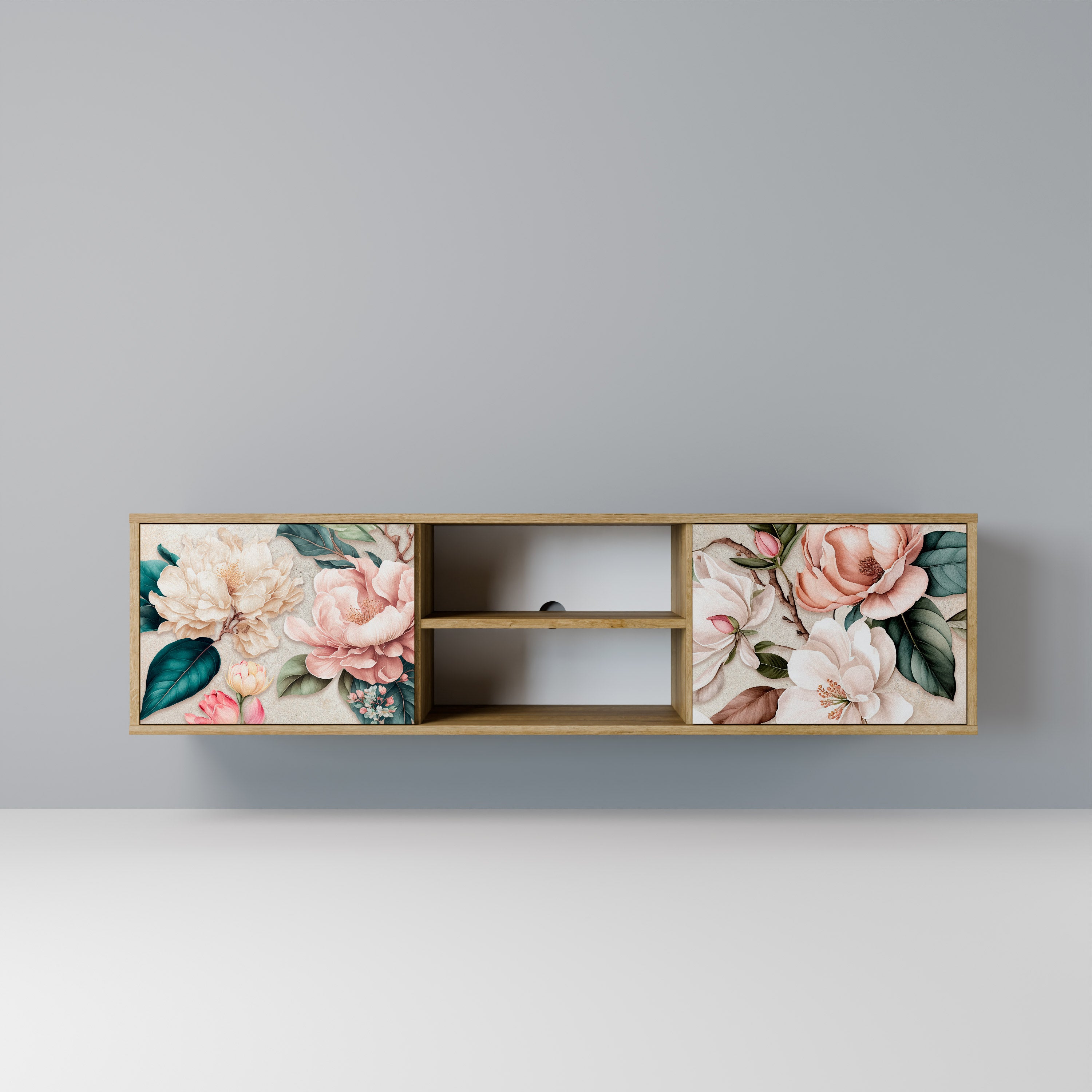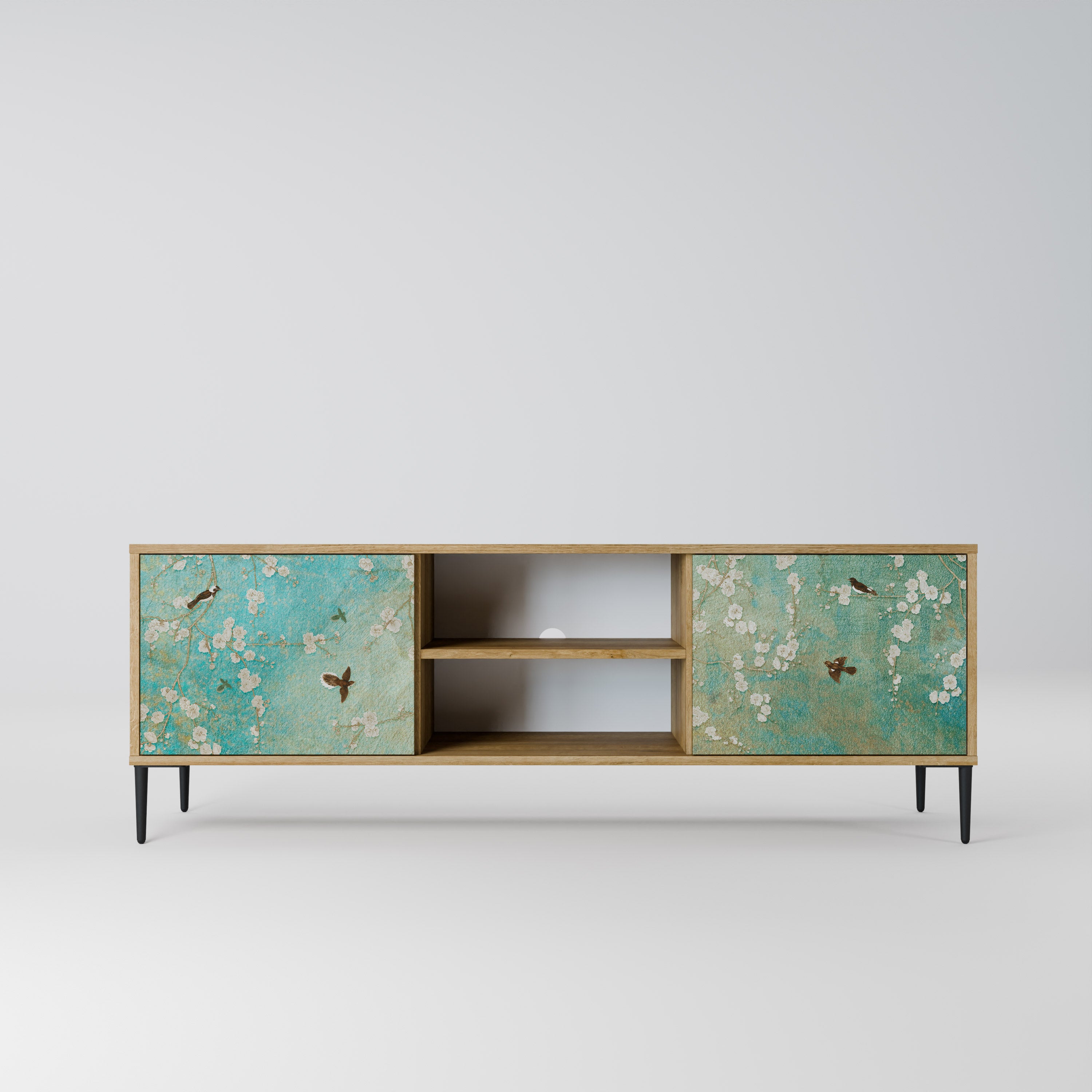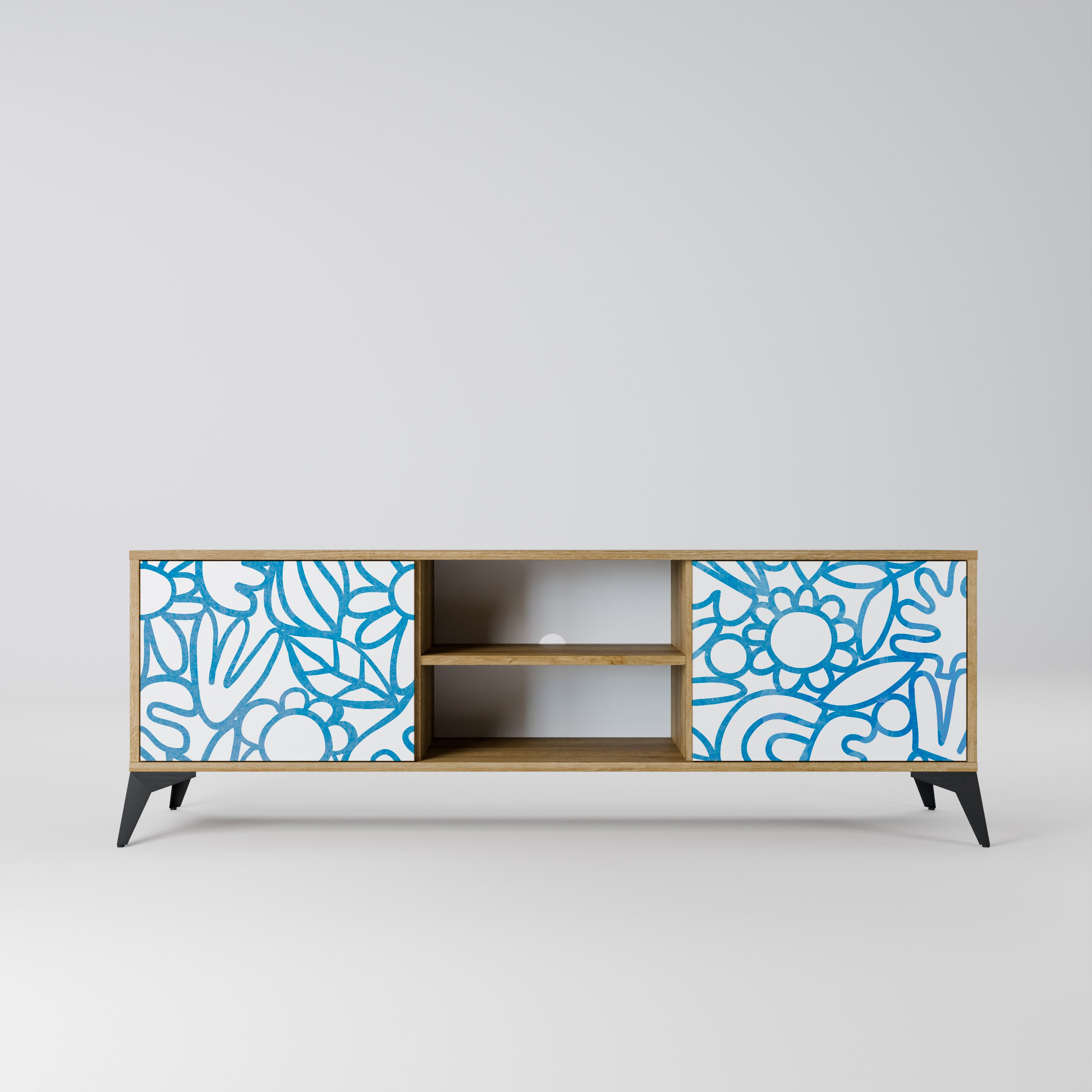 FLOWERS ON NAVY BLUE 2-Door TV Stand in Oak Effect FLOWERS ON NAVY BLUE 2-Door TV Stand in Oak Effect