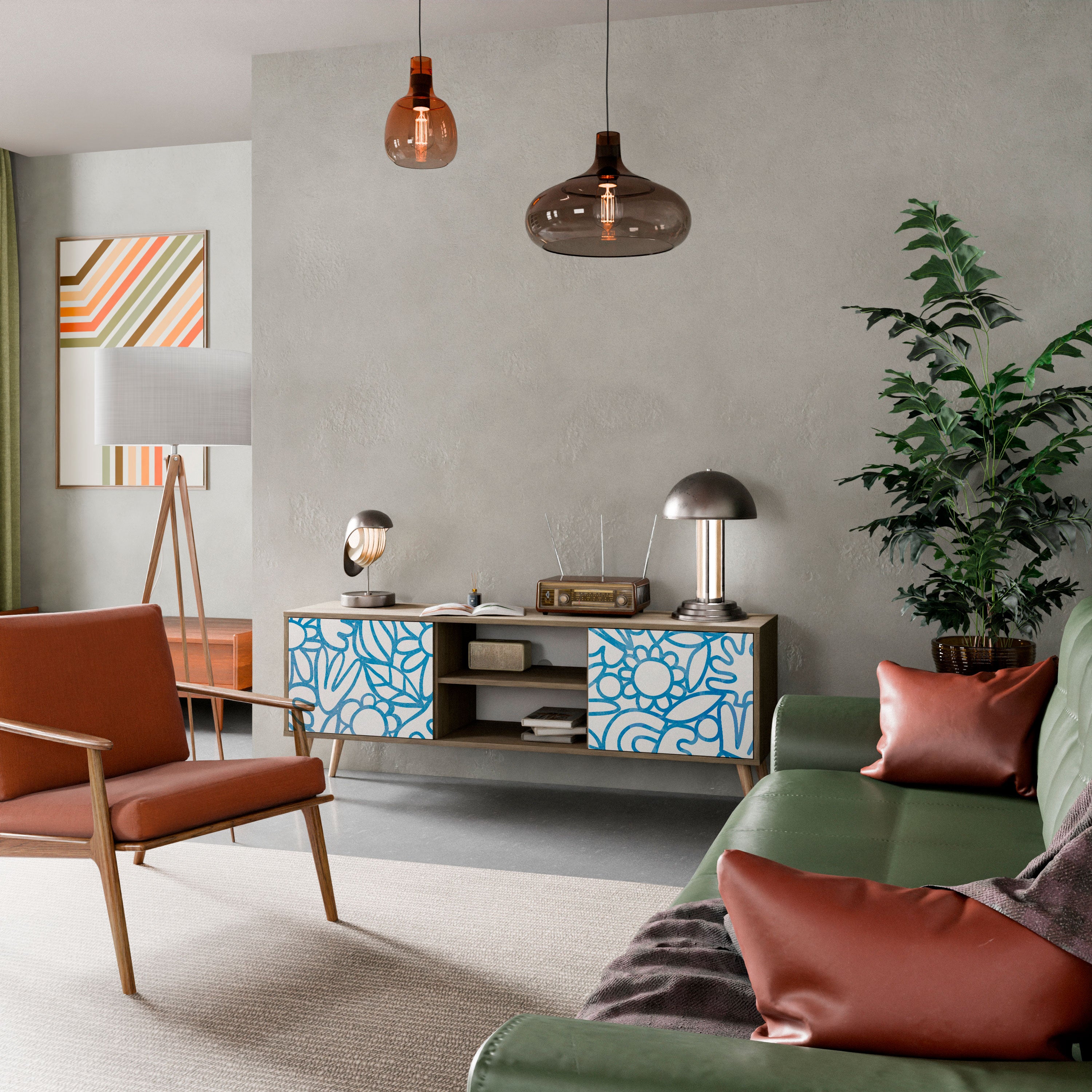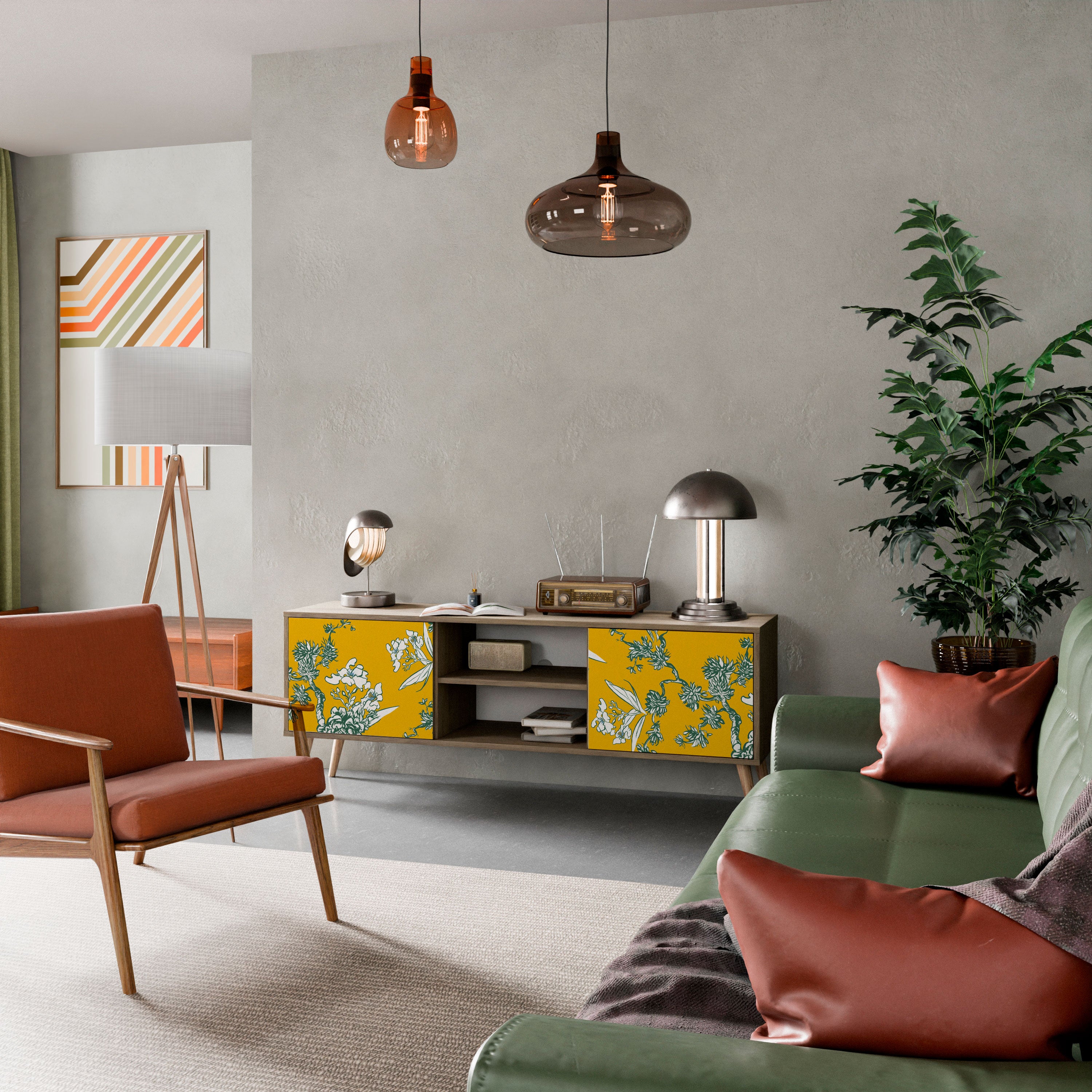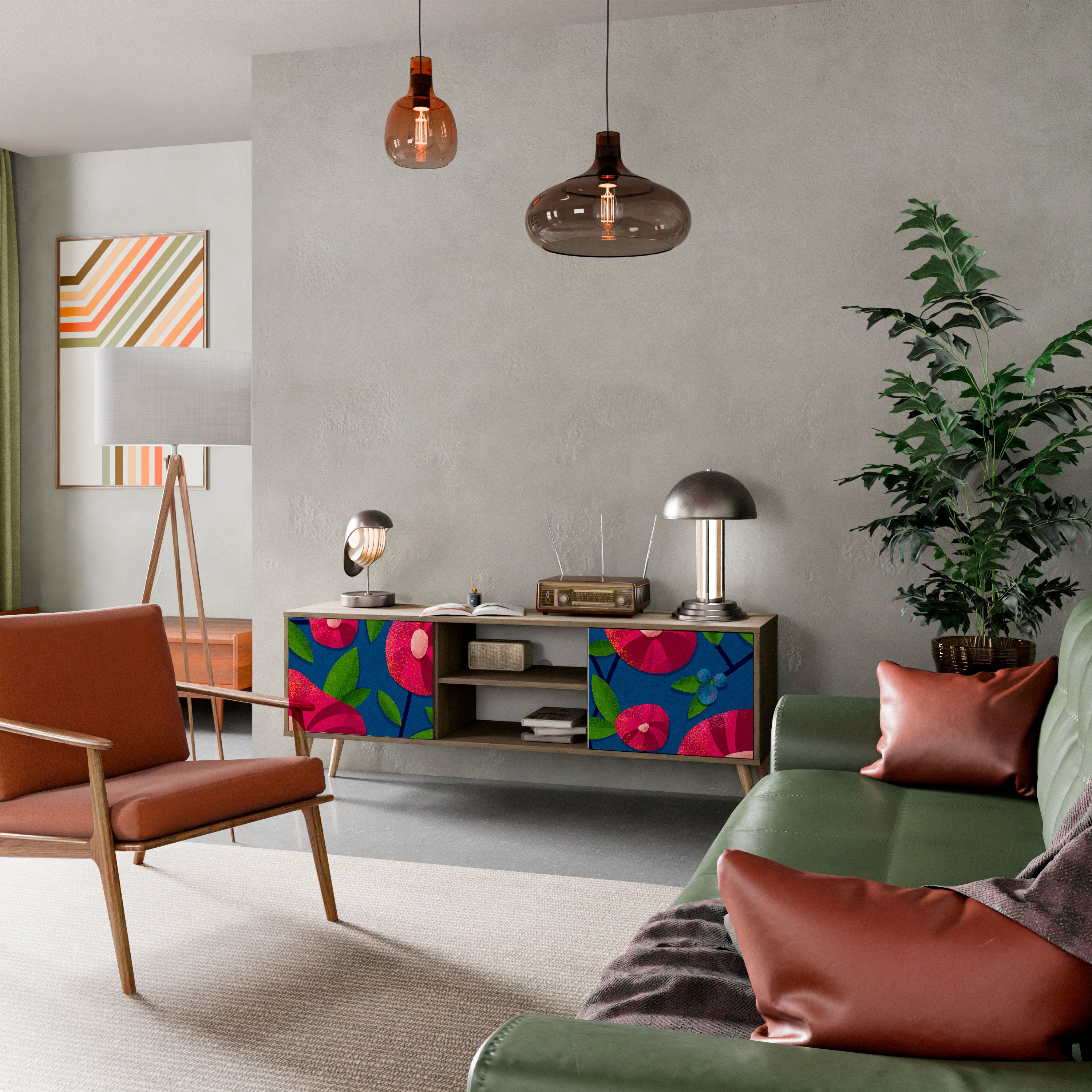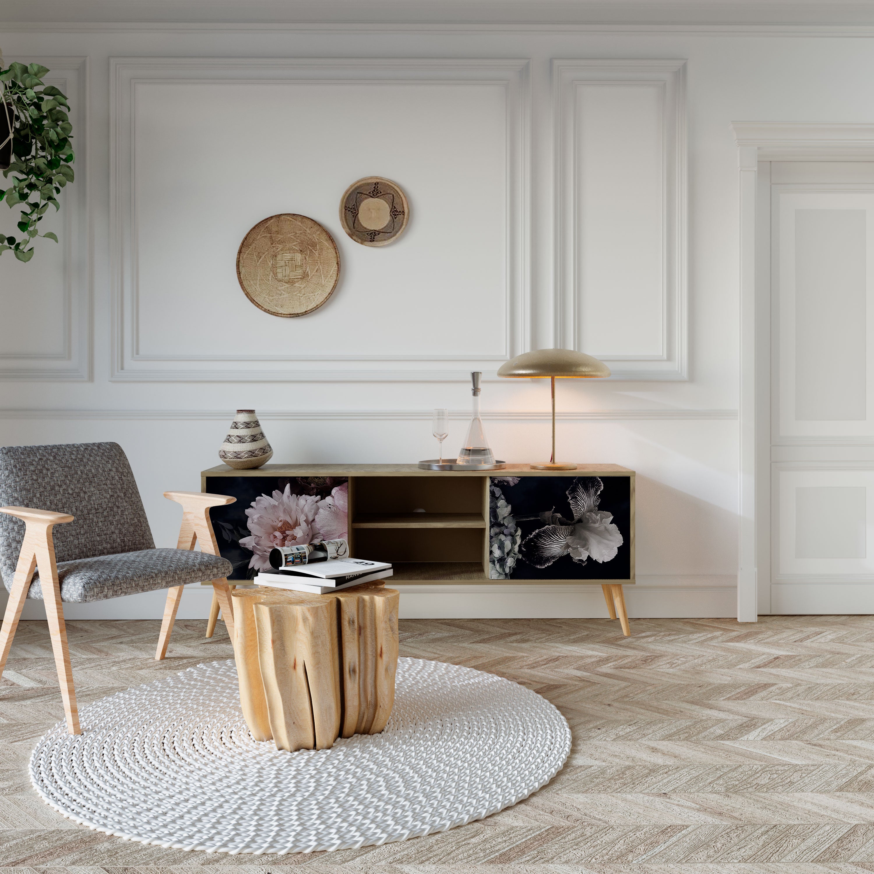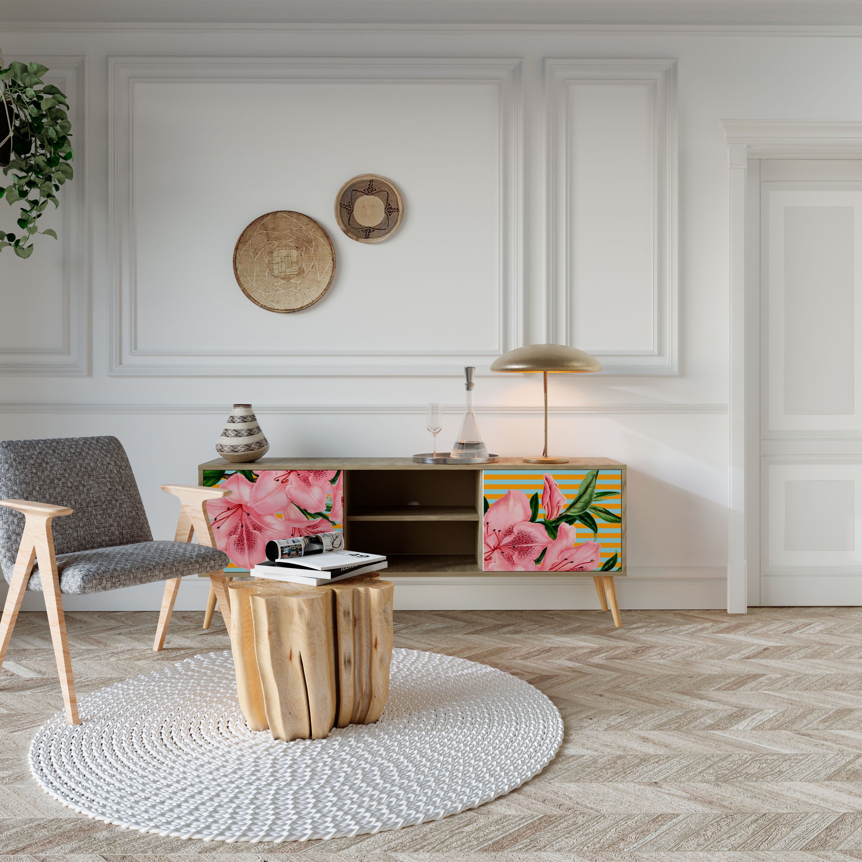 SUCCULENTS KALEIDOSCOPE 2-Door TV Stand in Oak Effect SUCCULENTS KALEIDOSCOPE 2-Door TV Stand in Oak Effect