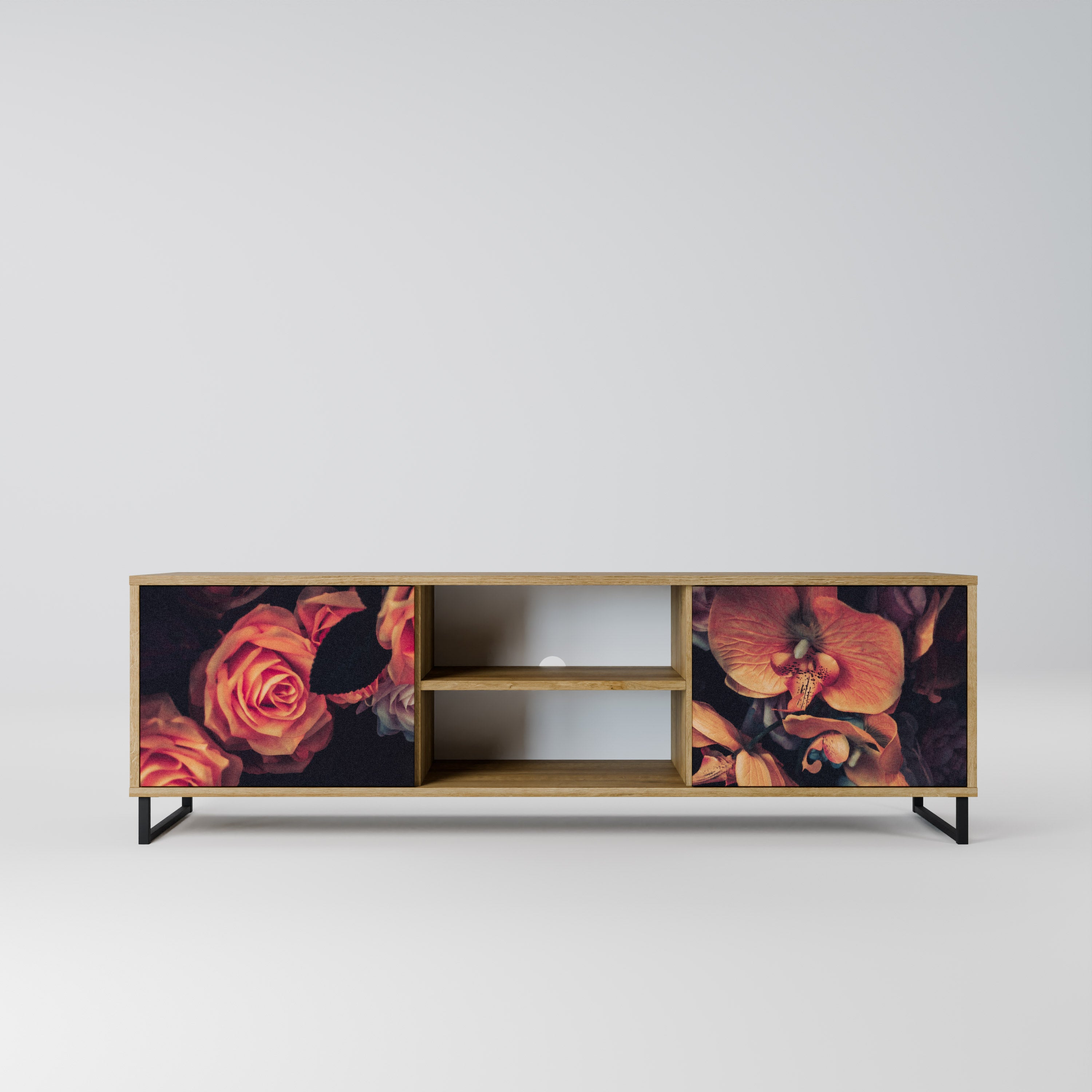 FLORAL NOIR 2-Door TV Stand in Oak Effect -