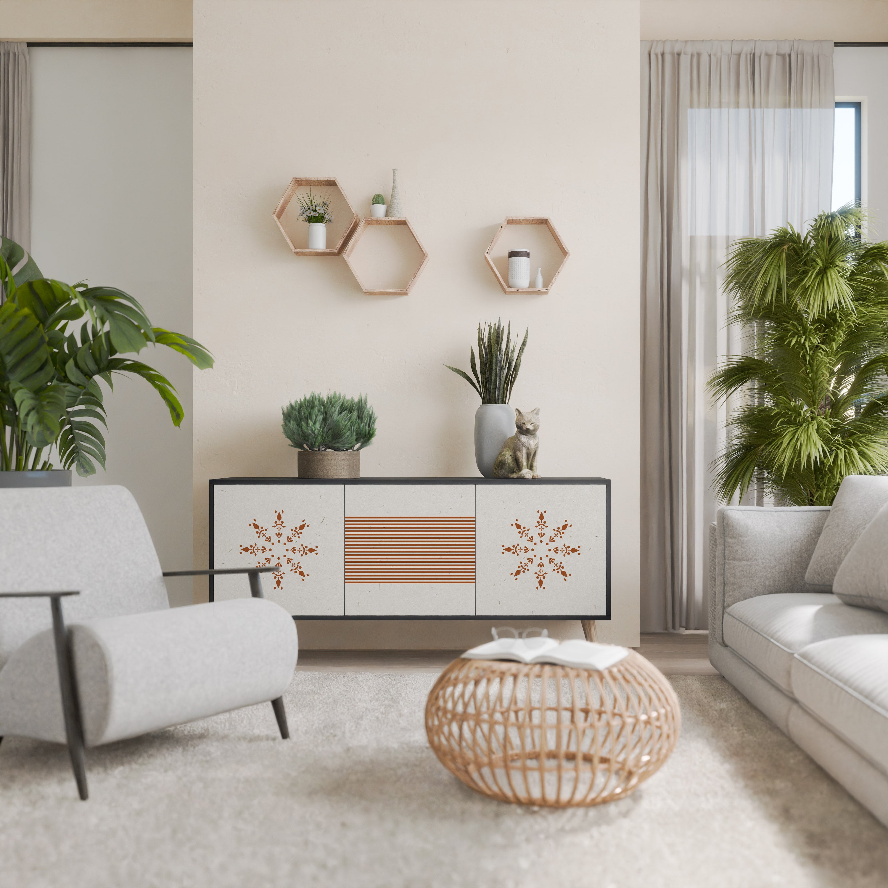 Elegance and functionality in a single piece of furniture – our 3-Door Sideboard with a black body is the perfect solution for lovers of stylish, modern interiors. The black body emphasizes the bold character of the furniture, while the fronts with a unique print add an artistic touch. It fits perfectly in the living room, bedroom, or office, complementing both modern and industrial arrangements.
