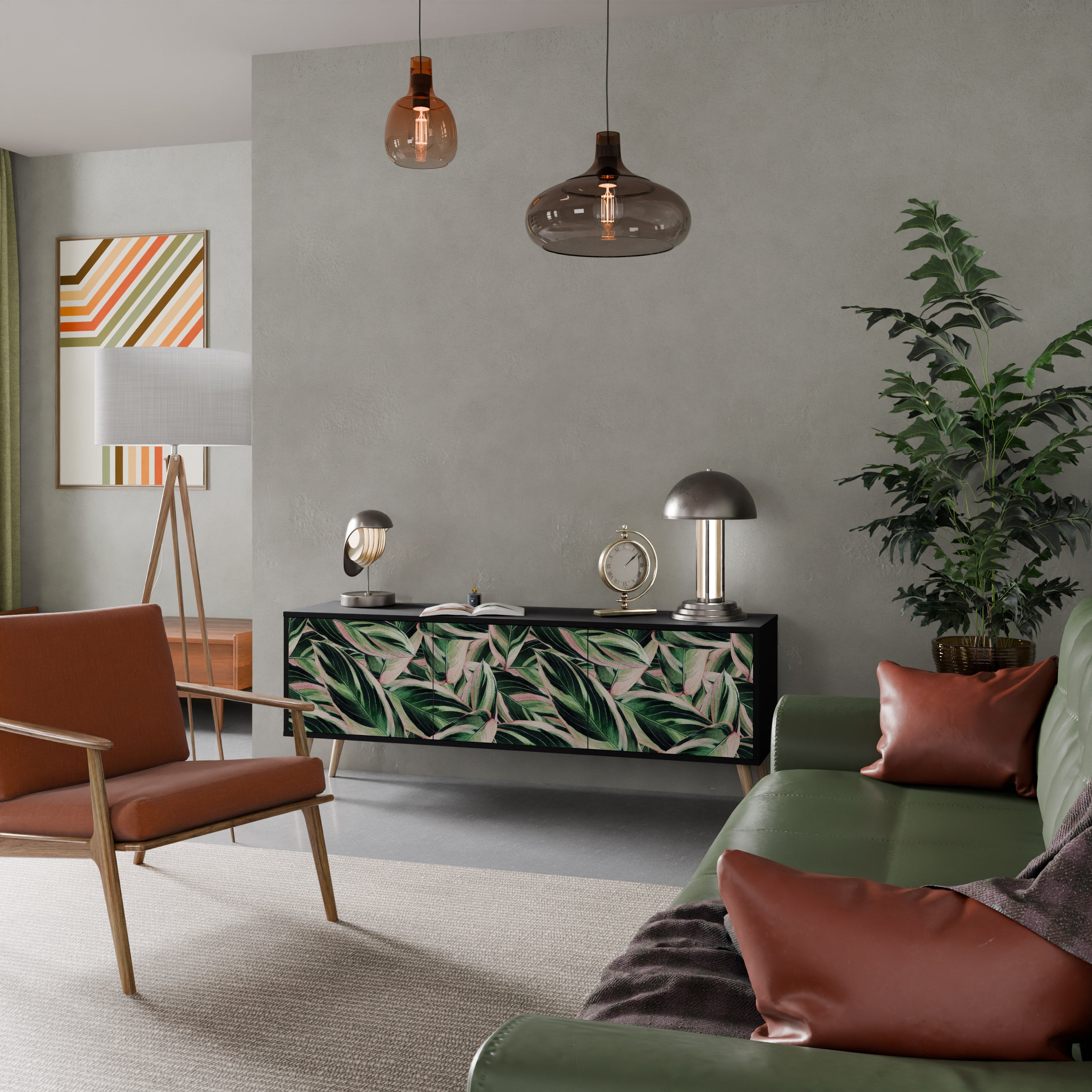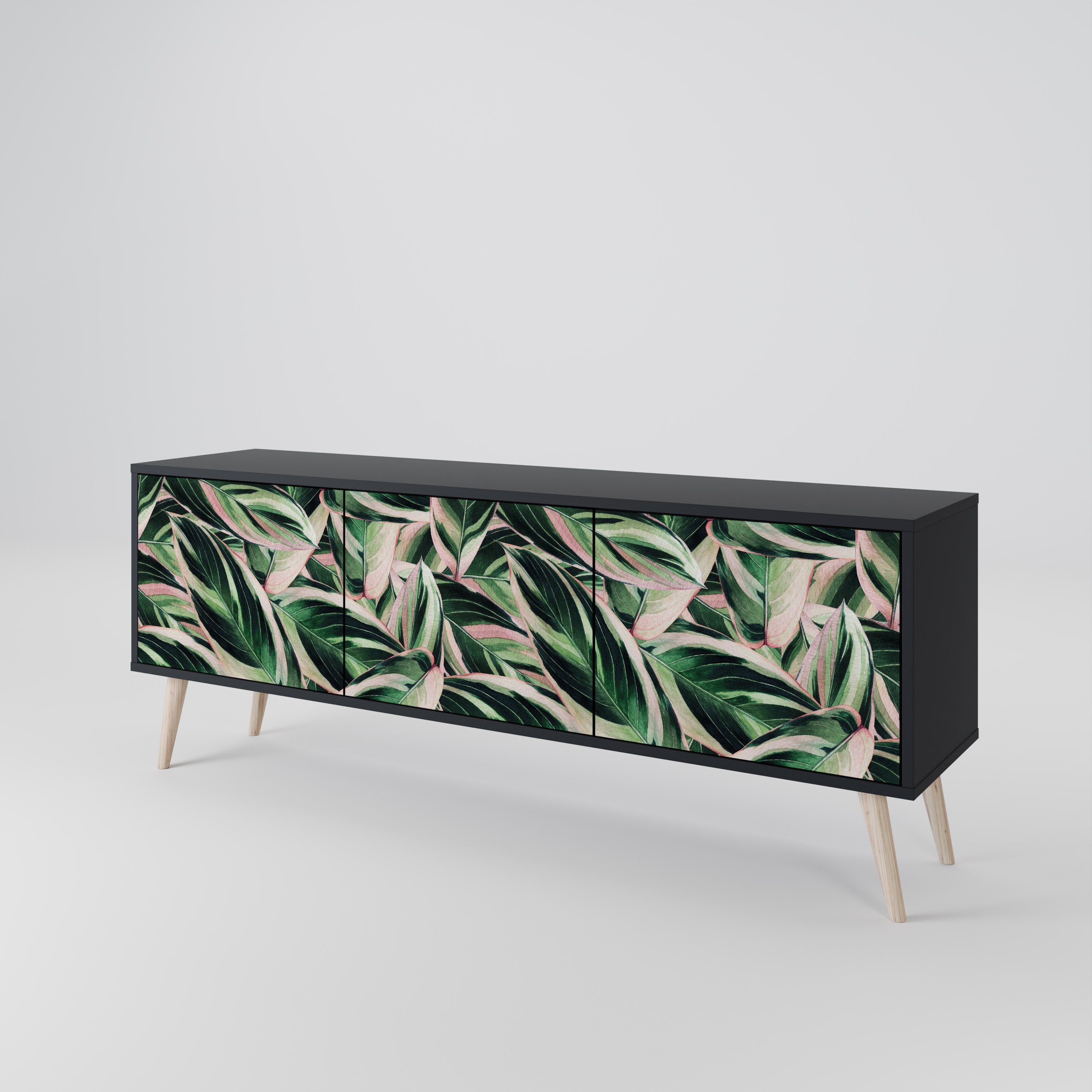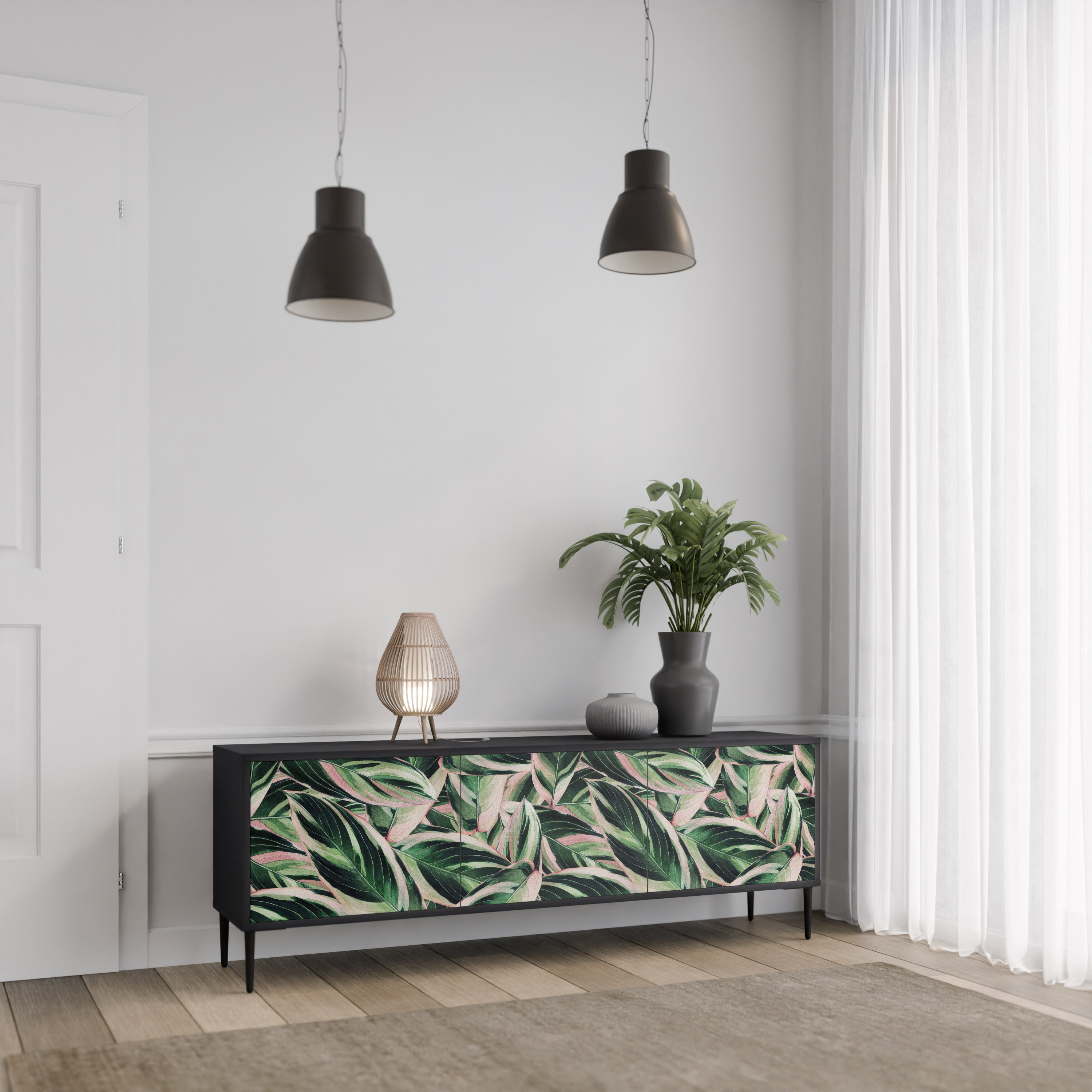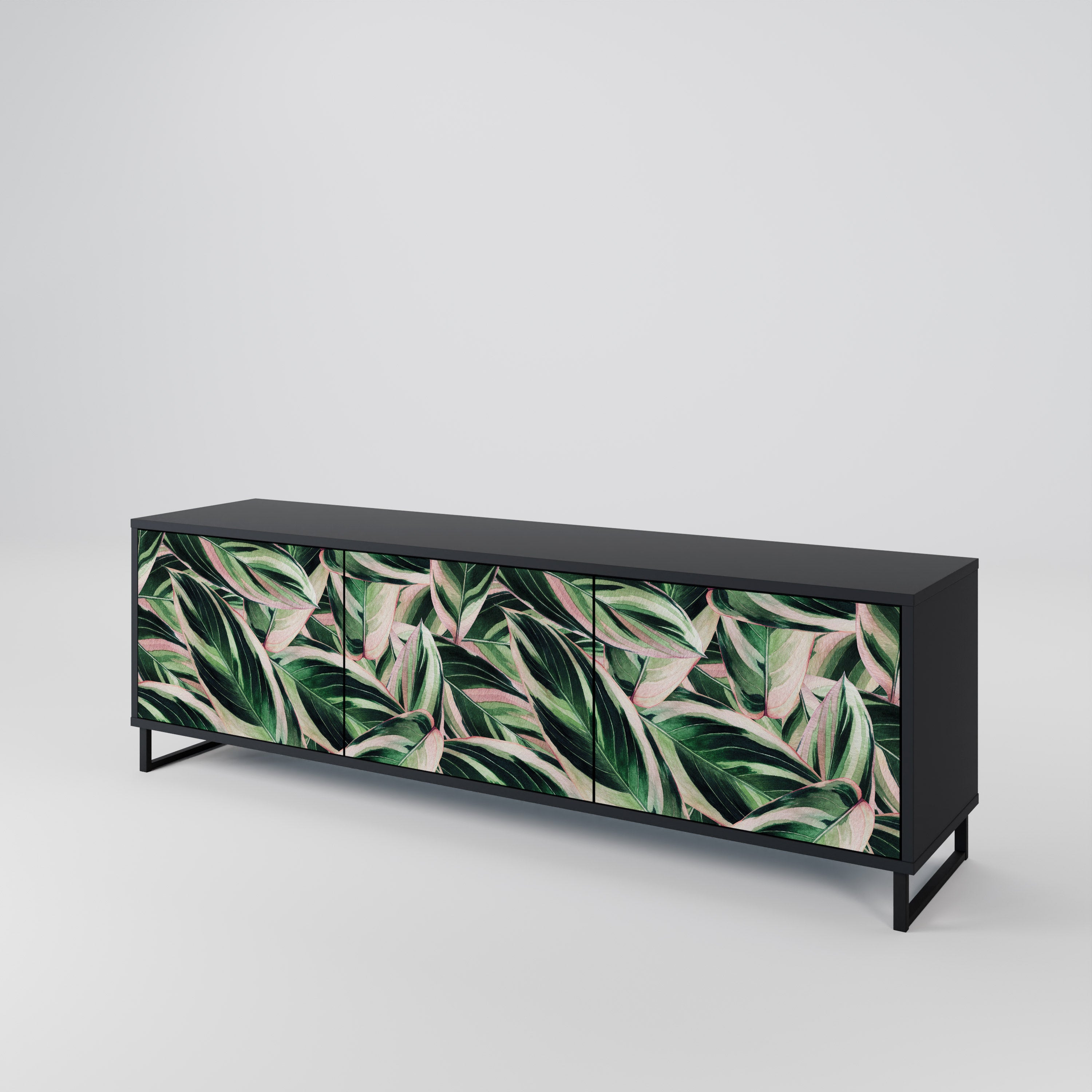 The black body of the stand creates a bold, modern accent that pairs beautifully with industrial and minimalist arrangements. The fronts with a designer print add character and uniqueness, making this piece not only practical but also a standout decorative element.