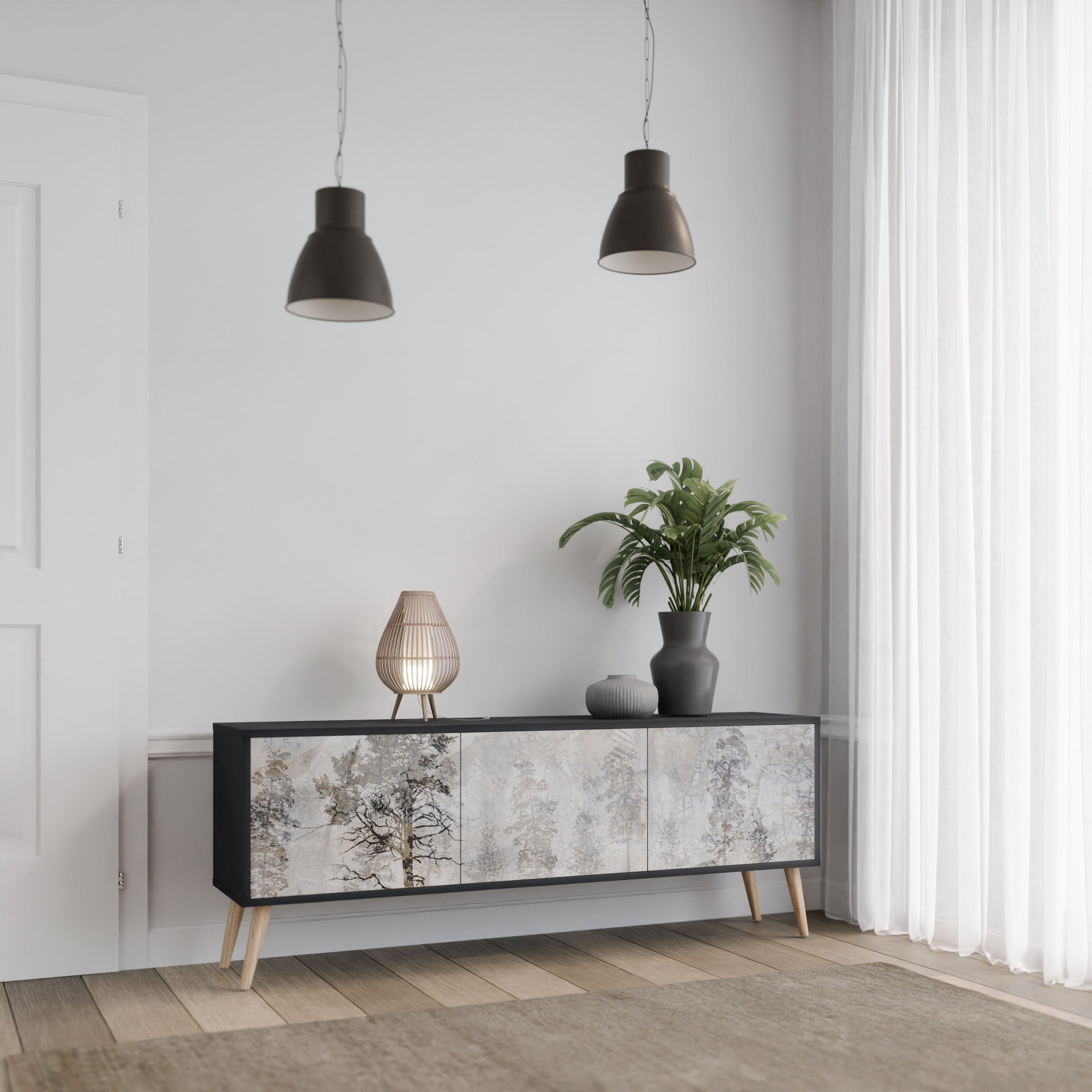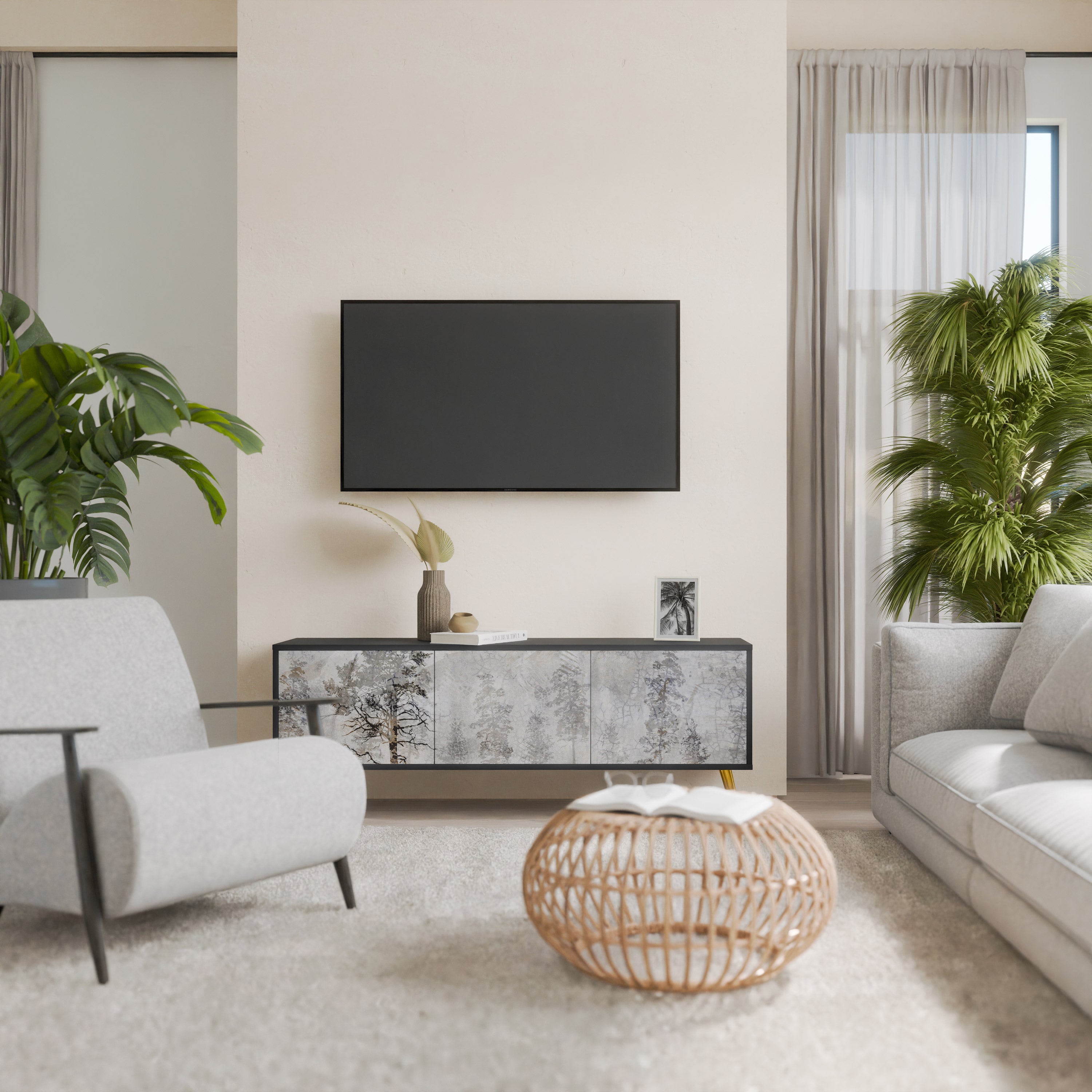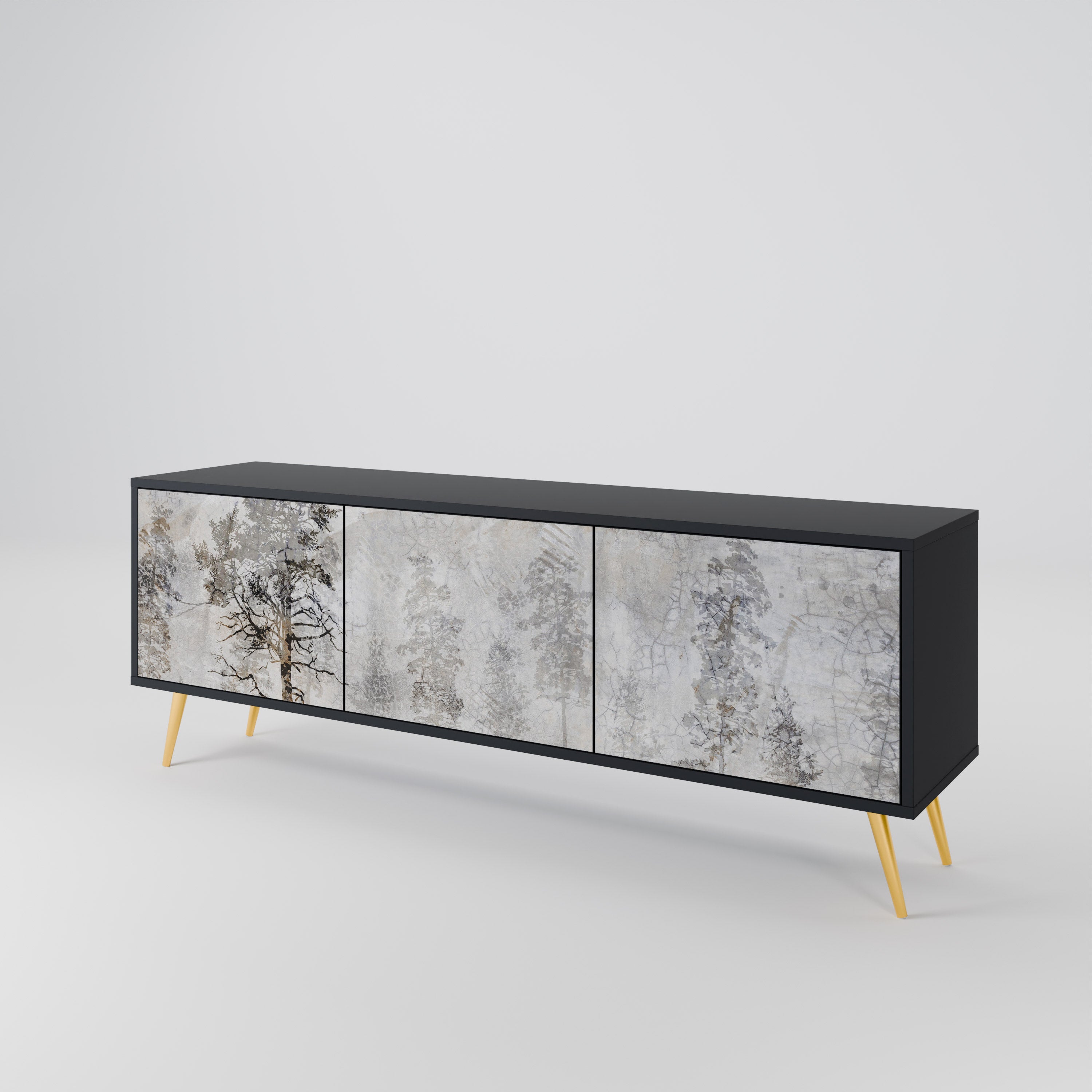 FADE IN THE TREES 3-Door TV Stand in Black Finish