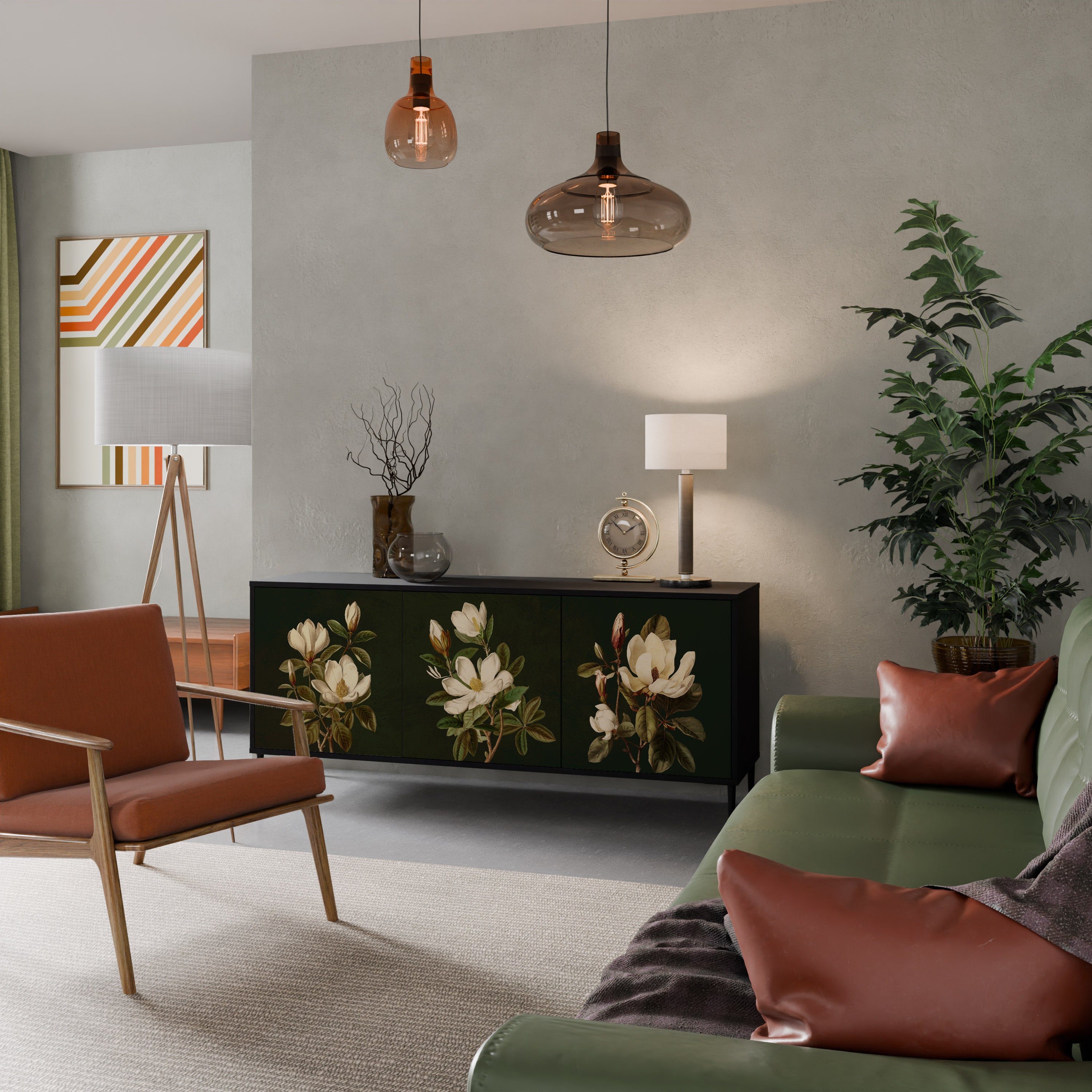 Elegance and functionality in a single piece of furniture – our 3-Door Sideboard with a black body is the perfect solution for lovers of stylish, modern interiors. The black body emphasizes the bold character of the furniture, while the fronts with a unique print add an artistic touch. It fits perfectly in the living room, bedroom, or office, complementing both modern and industrial arrangements.