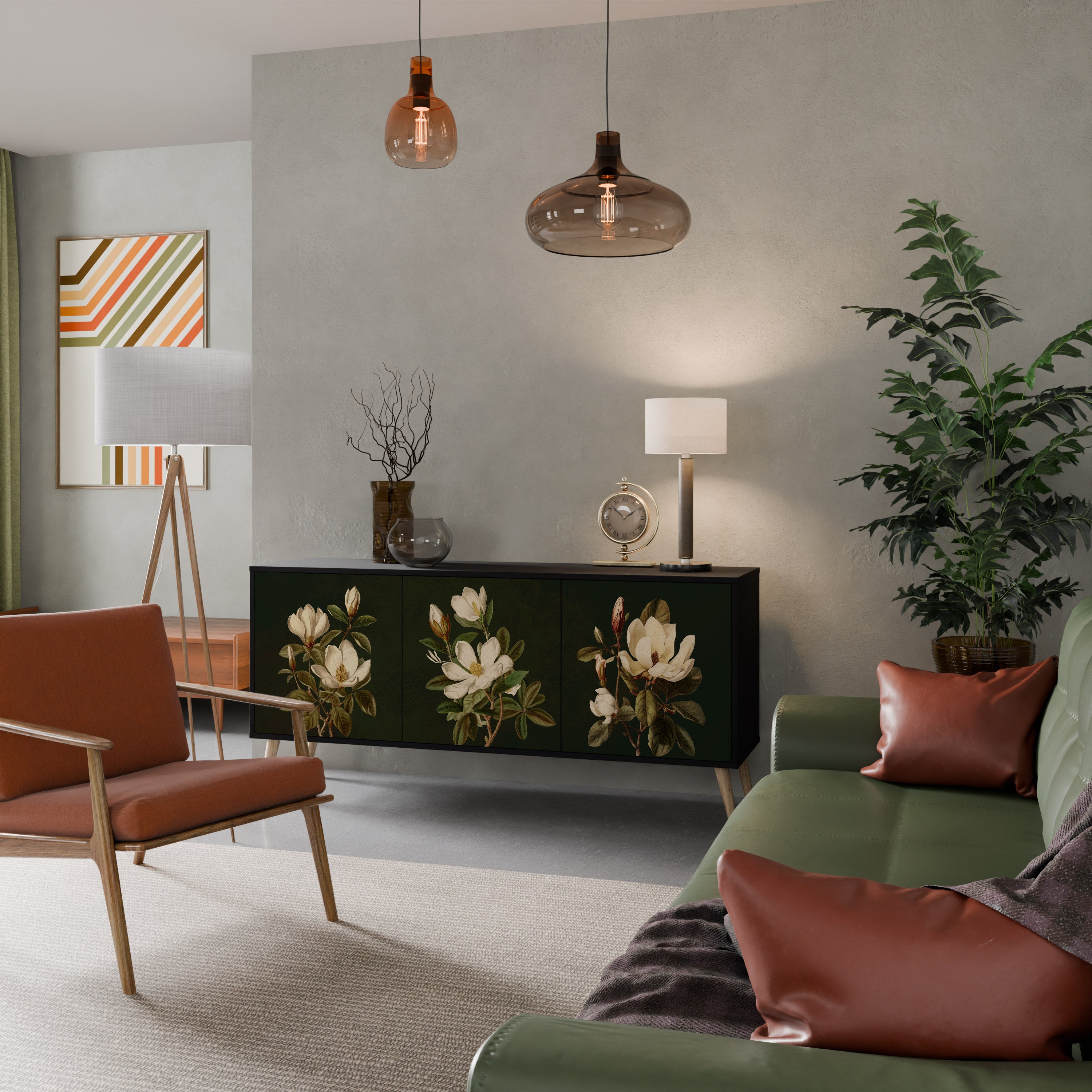 FLORAL NOIR 3-Door Sideboard in Black Finish