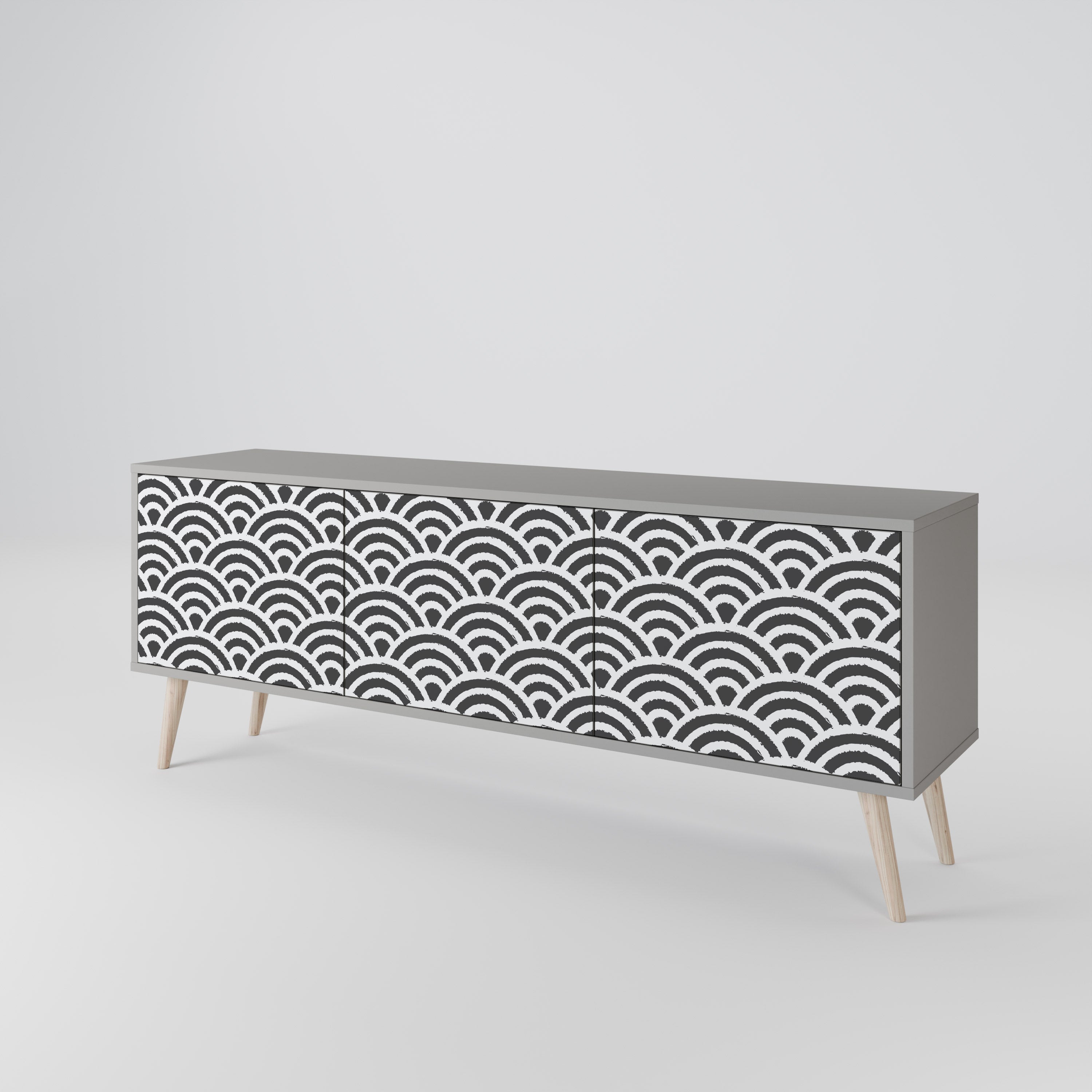 The grey body of the stand creates a refined, modern accent that pairs beautifully with industrial and minimalist arrangements. The fronts with a designer print add character and uniqueness, making this piece not only practical but also a standout decorative element.