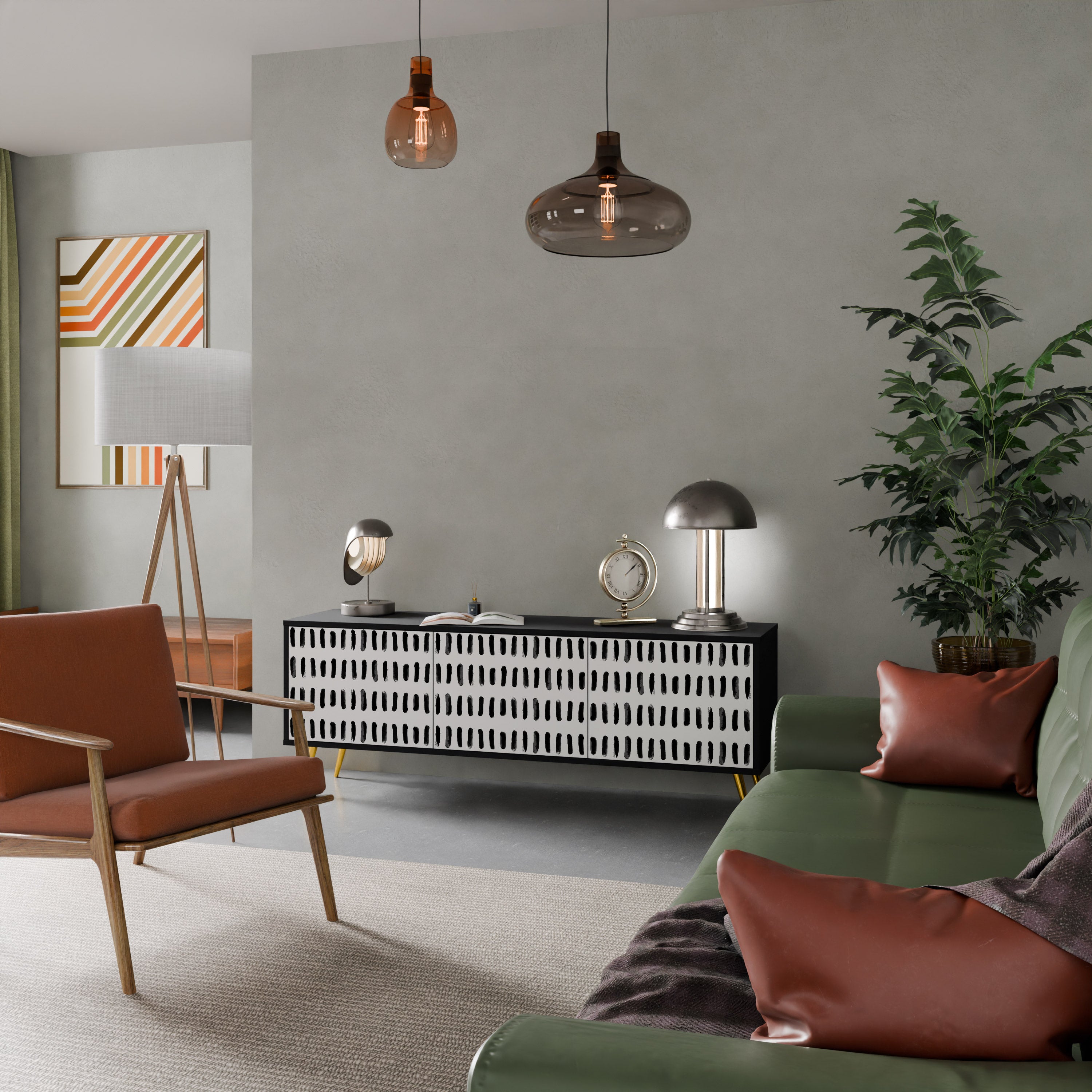 The black body of the stand creates a bold, modern accent that pairs beautifully with industrial and minimalist arrangements. The fronts with a designer print add character and uniqueness, making this piece not only practical but also a standout decorative element.